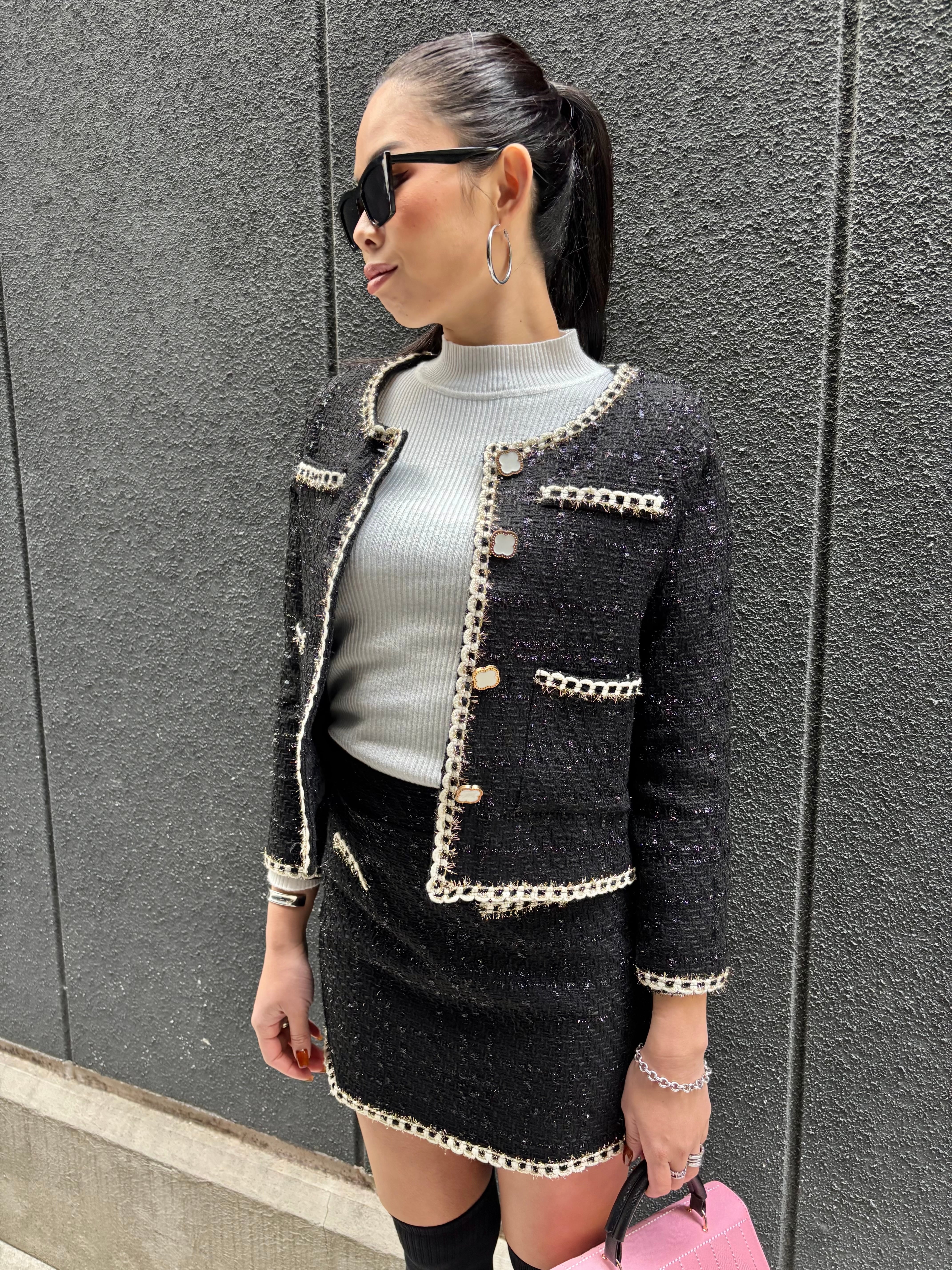 ジャケットとミニスカートの組み合わせは、さまざまなコーディネートが楽しめるのが魅力です。トップスにシンプルなTシャツを合わせたり、ブラウスで上品にまとめたりと、シーンごとにアレンジが可能です。自分らしいスタイルを演出してください!