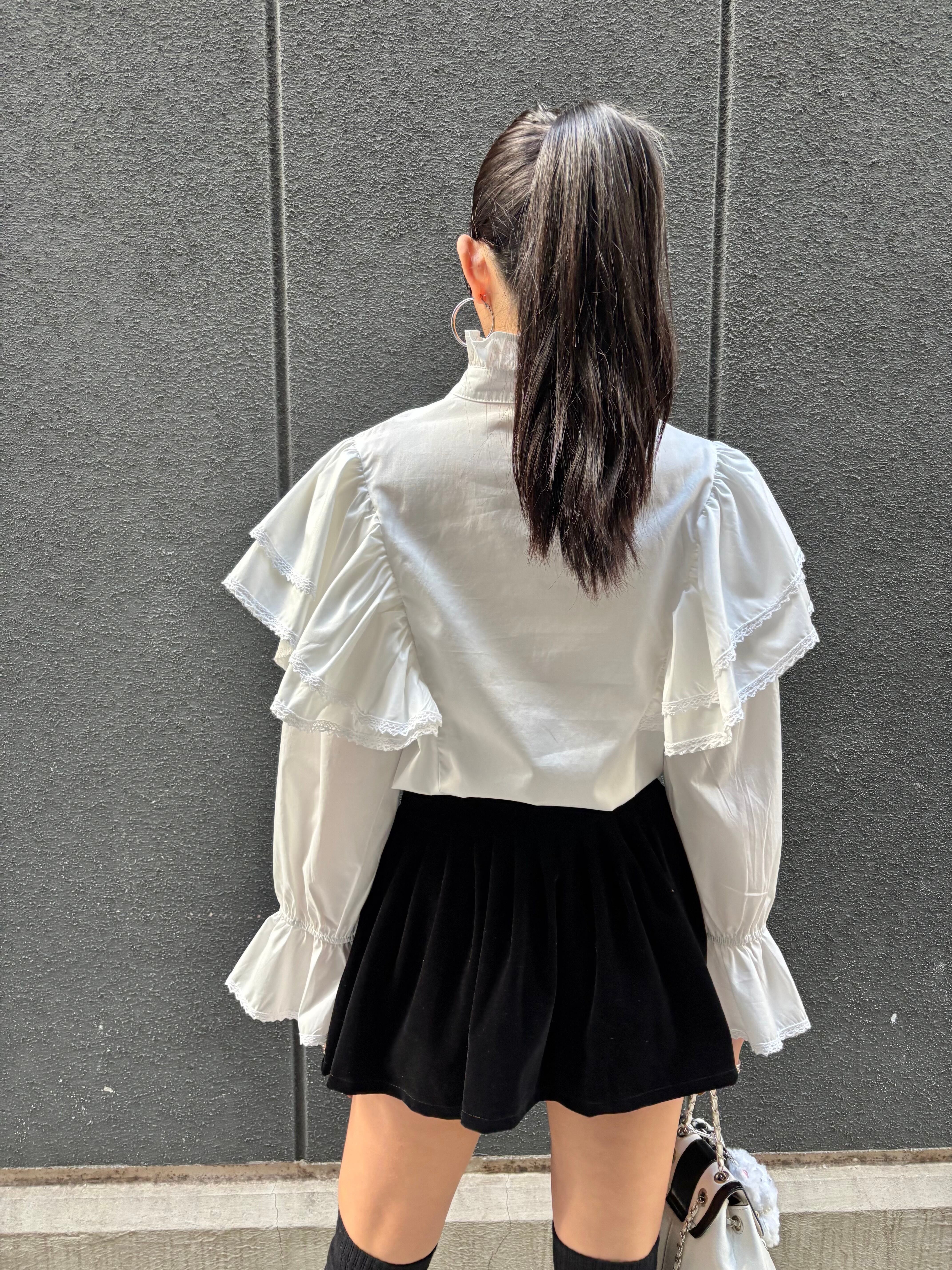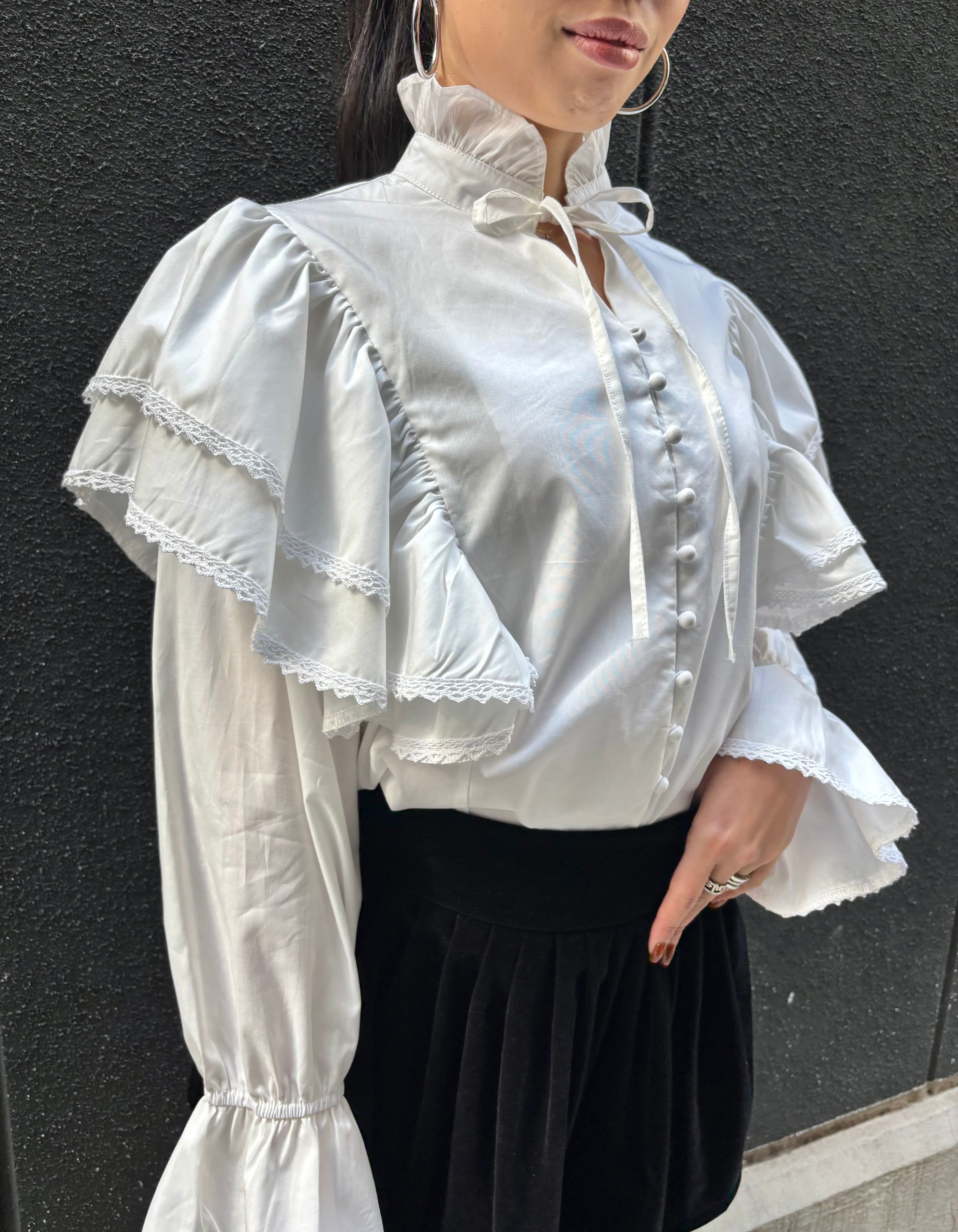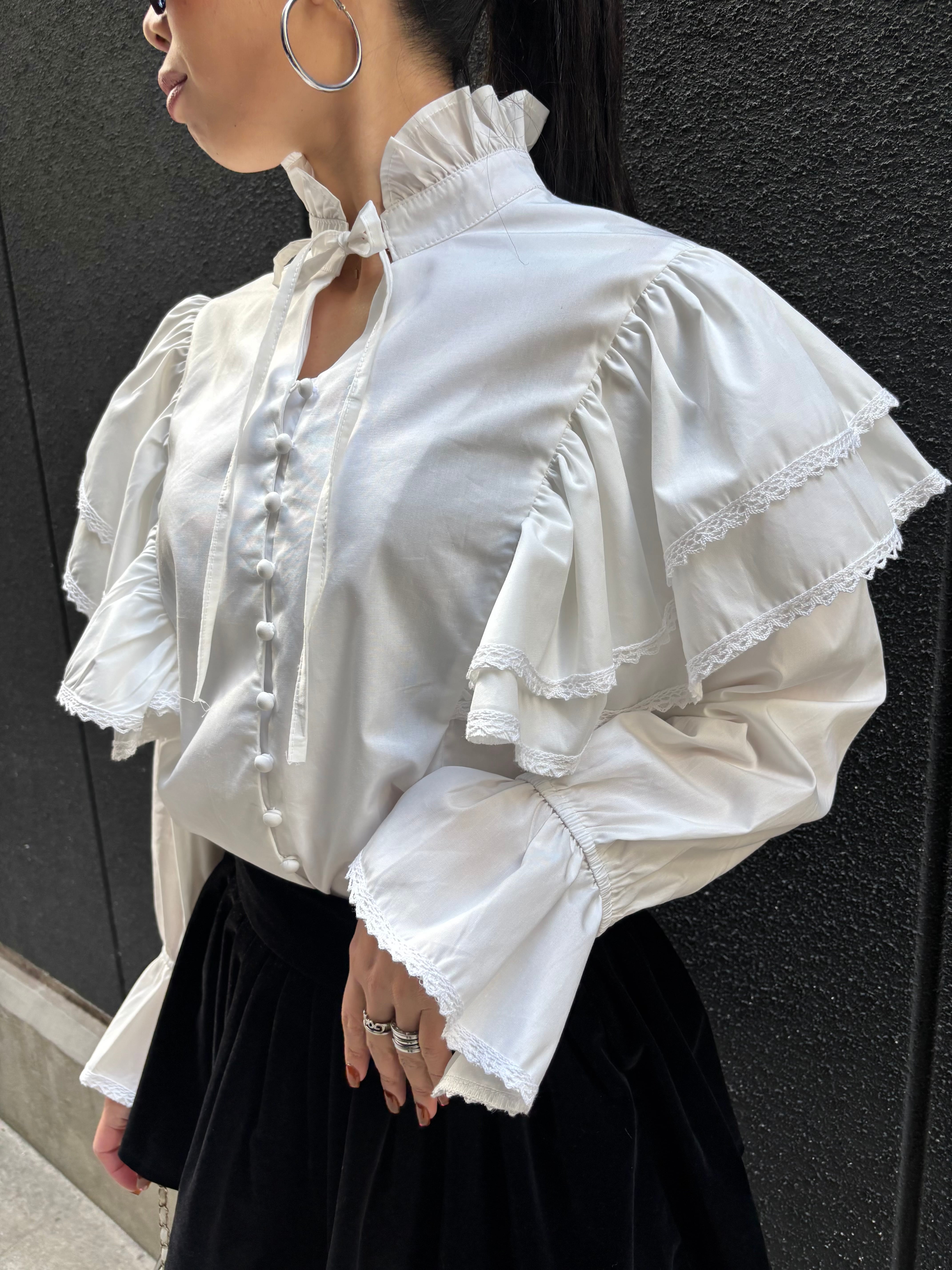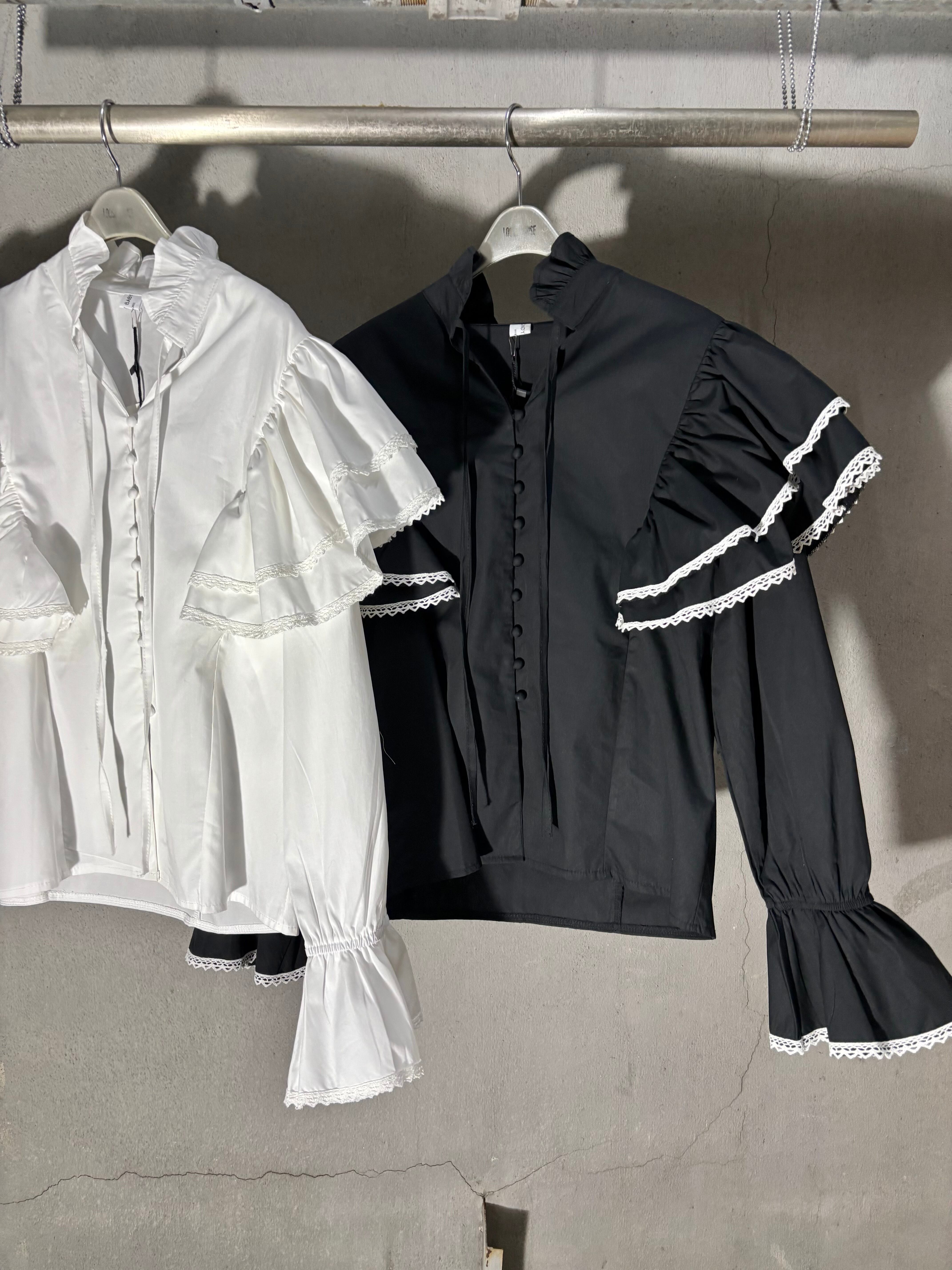 frill & lace trimming design blouse shirt シャツ ブラウス フリル レース