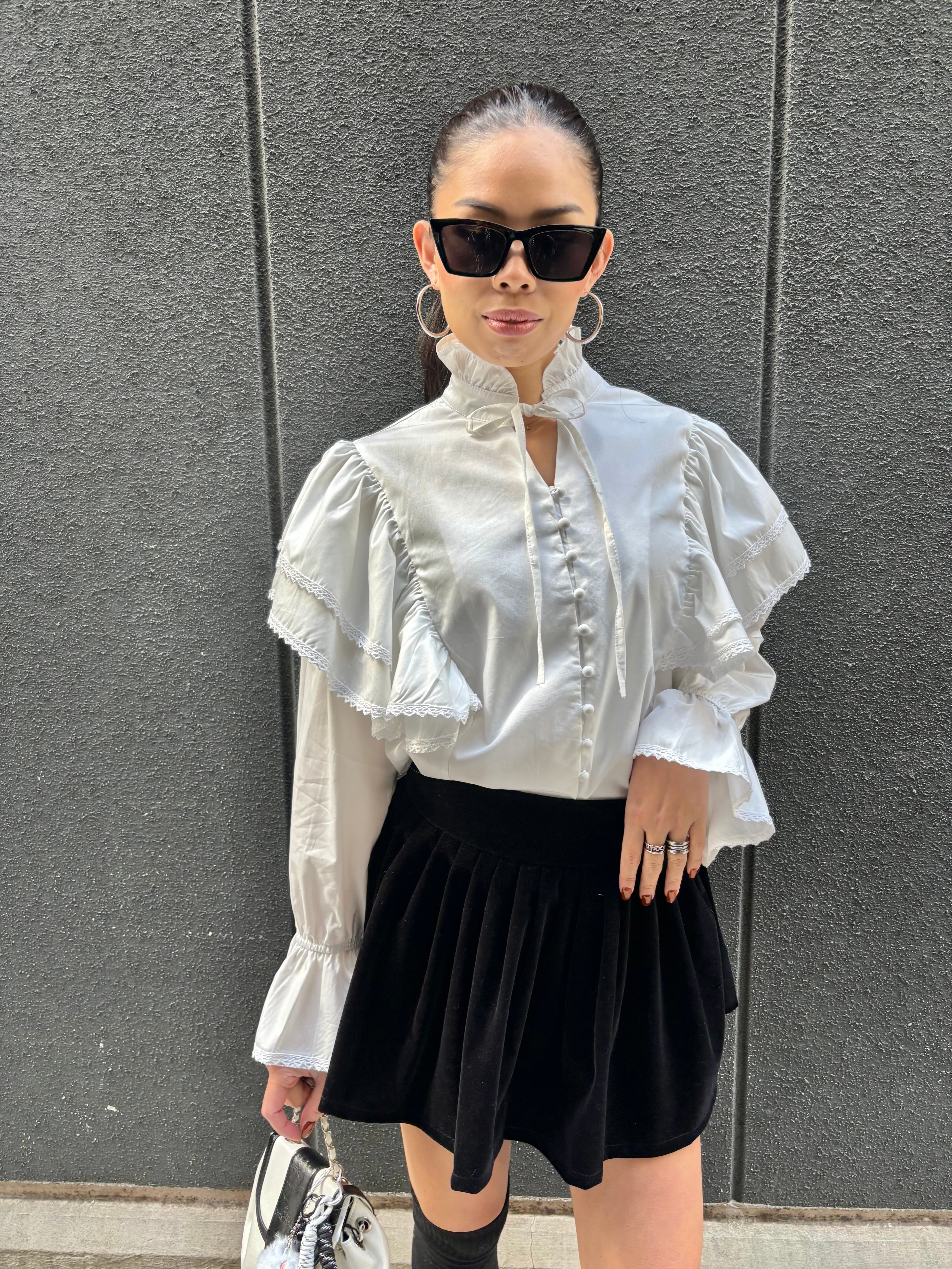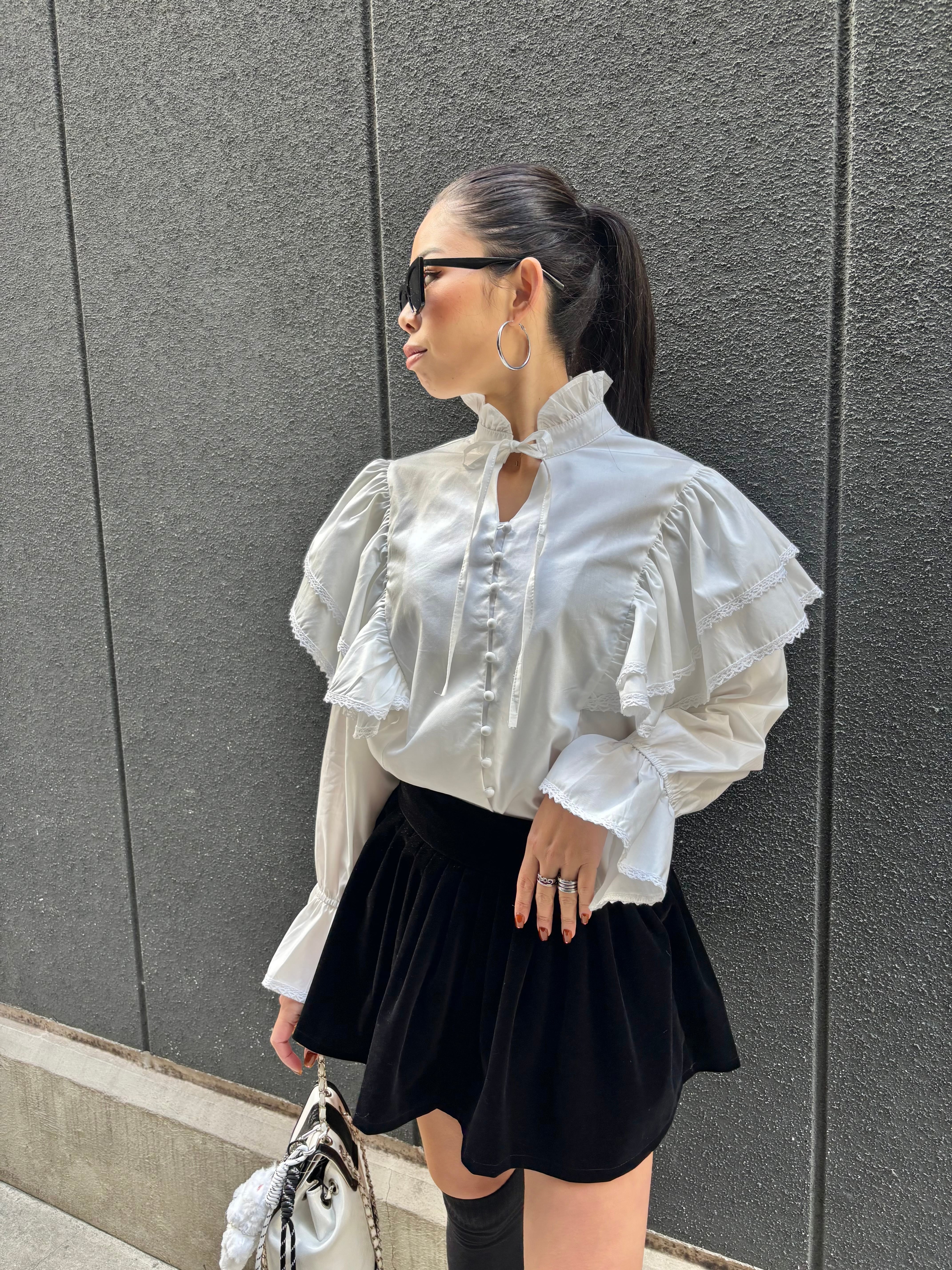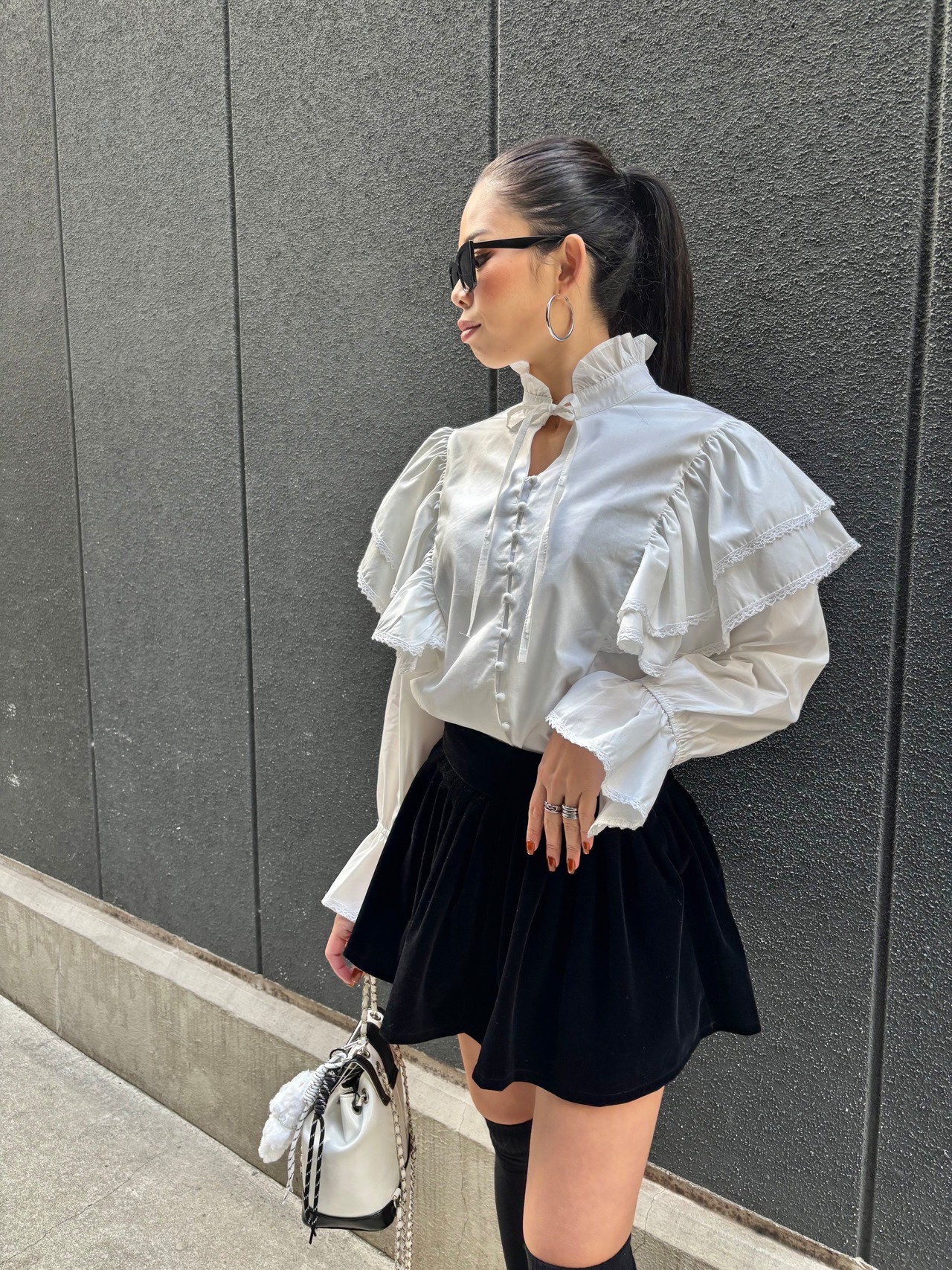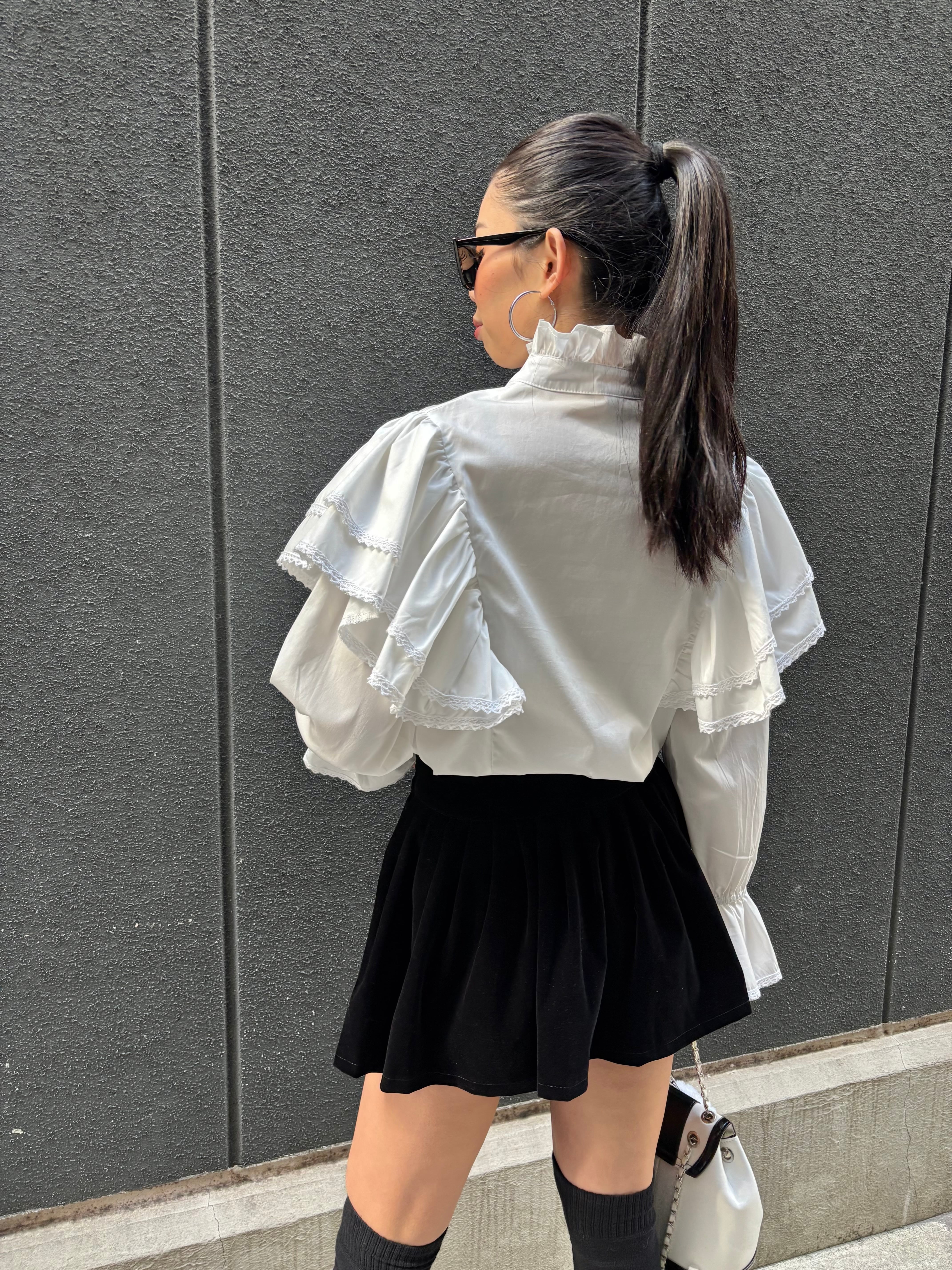 frill & lace trimming design blouse shirt シャツ ブラウス フリル レース