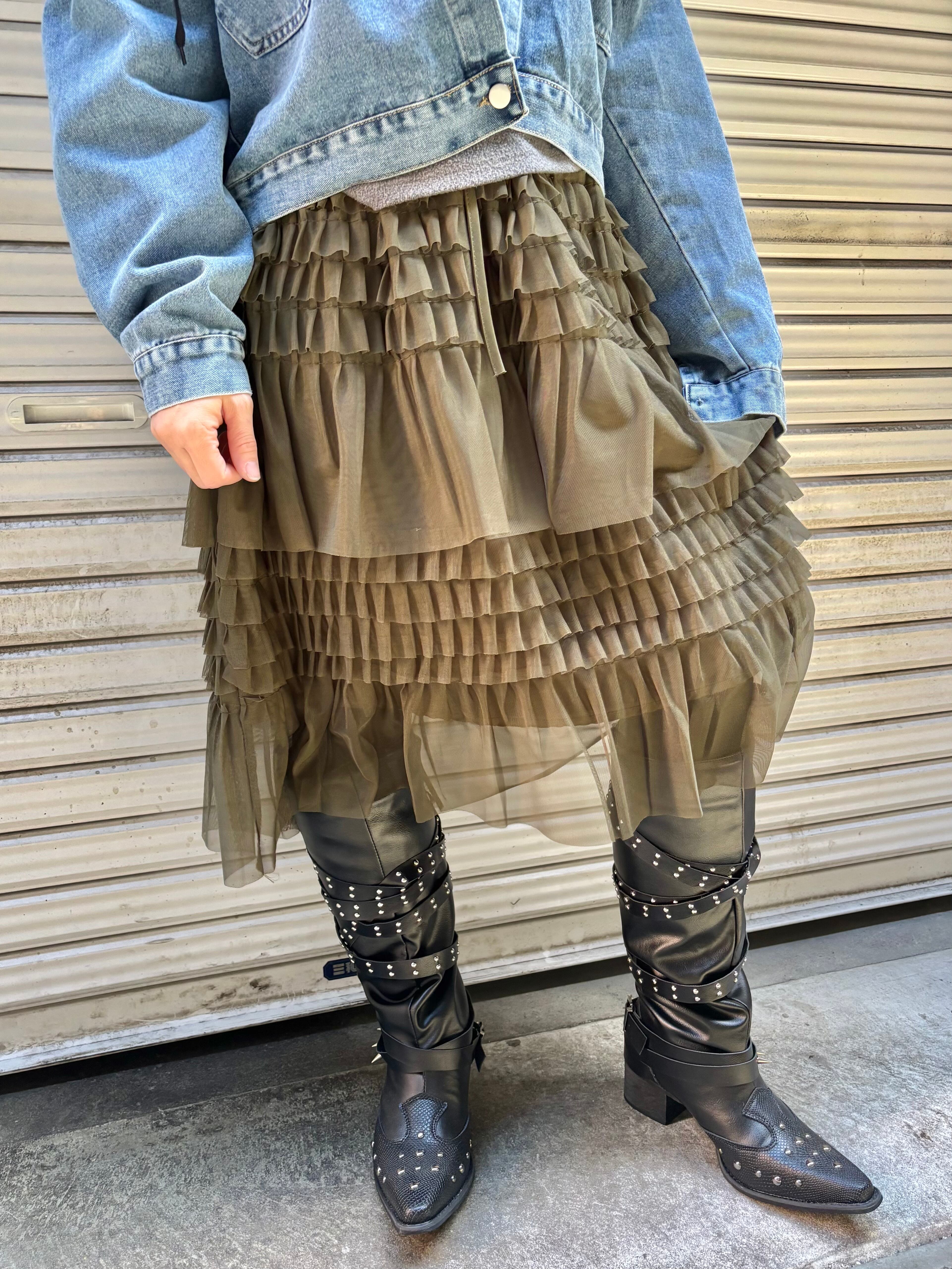 tulle frill design skirt スカート チュール フリル ゴムウエスト