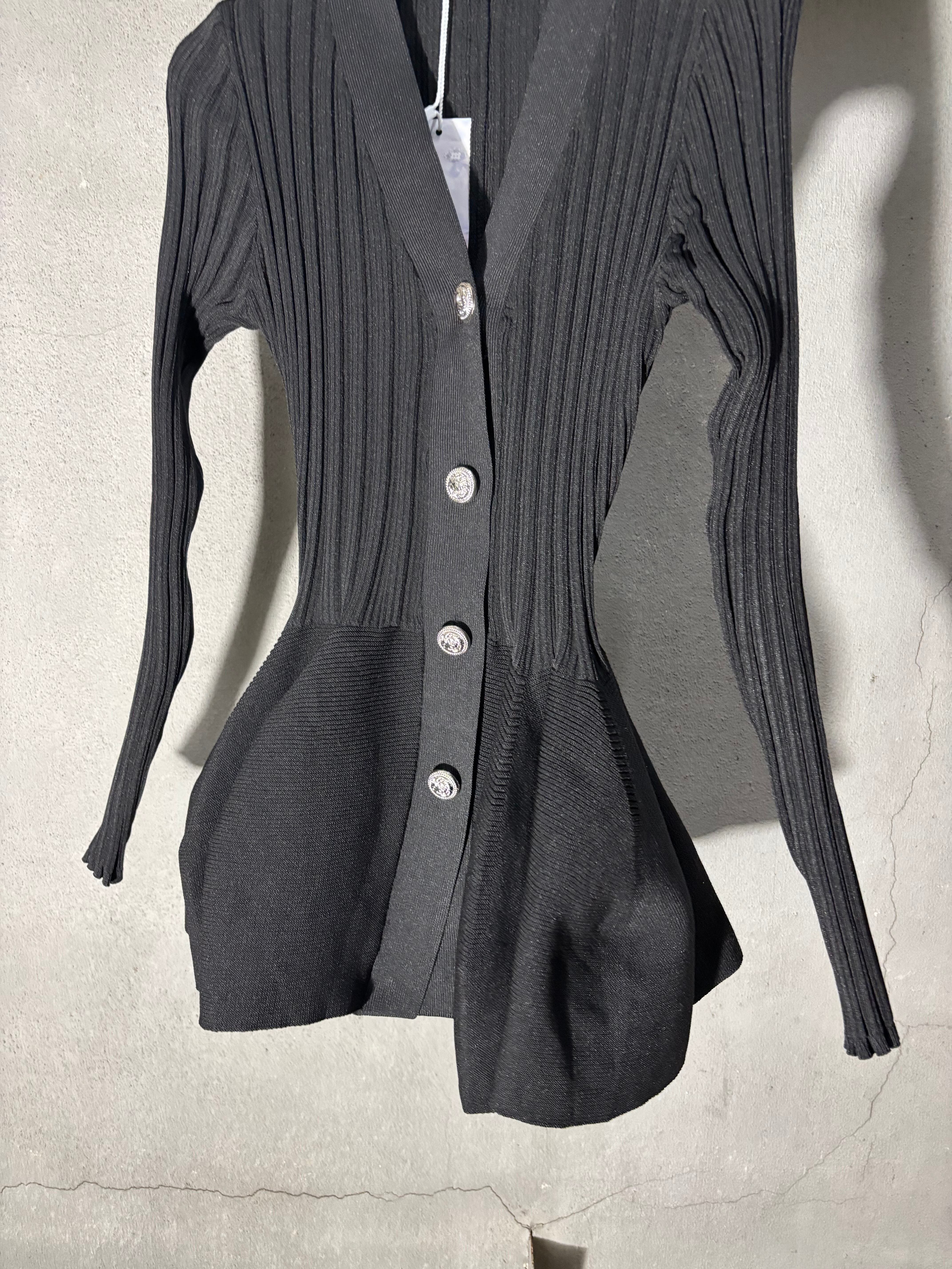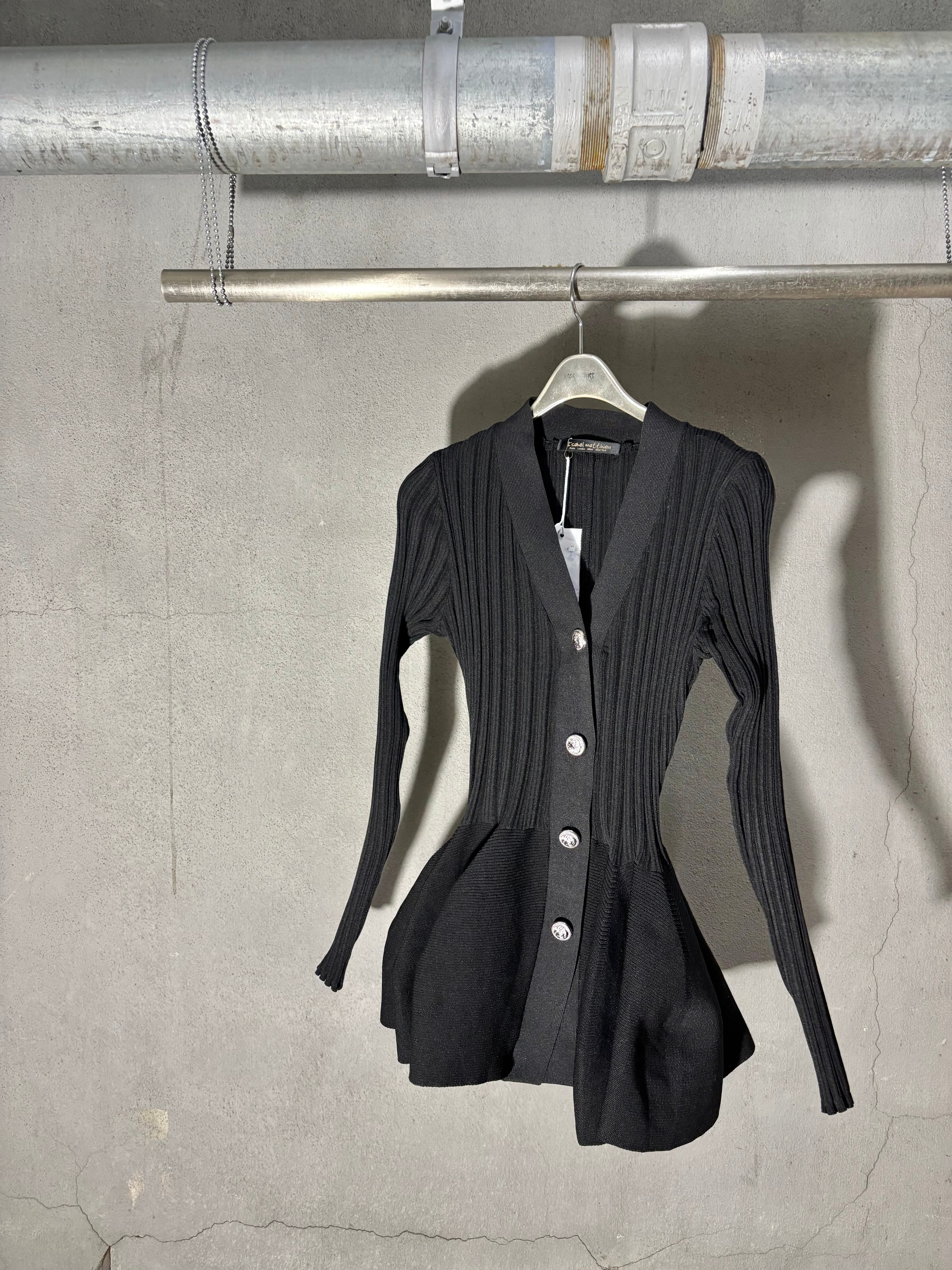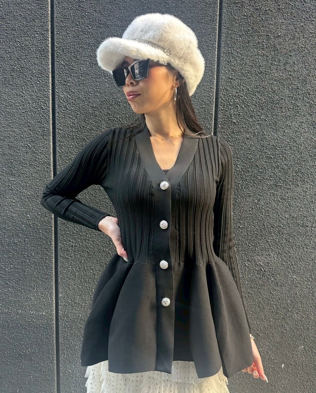 fit&flare × gold button design knit one-piece チュニック ニット ボタン ブラック 黒