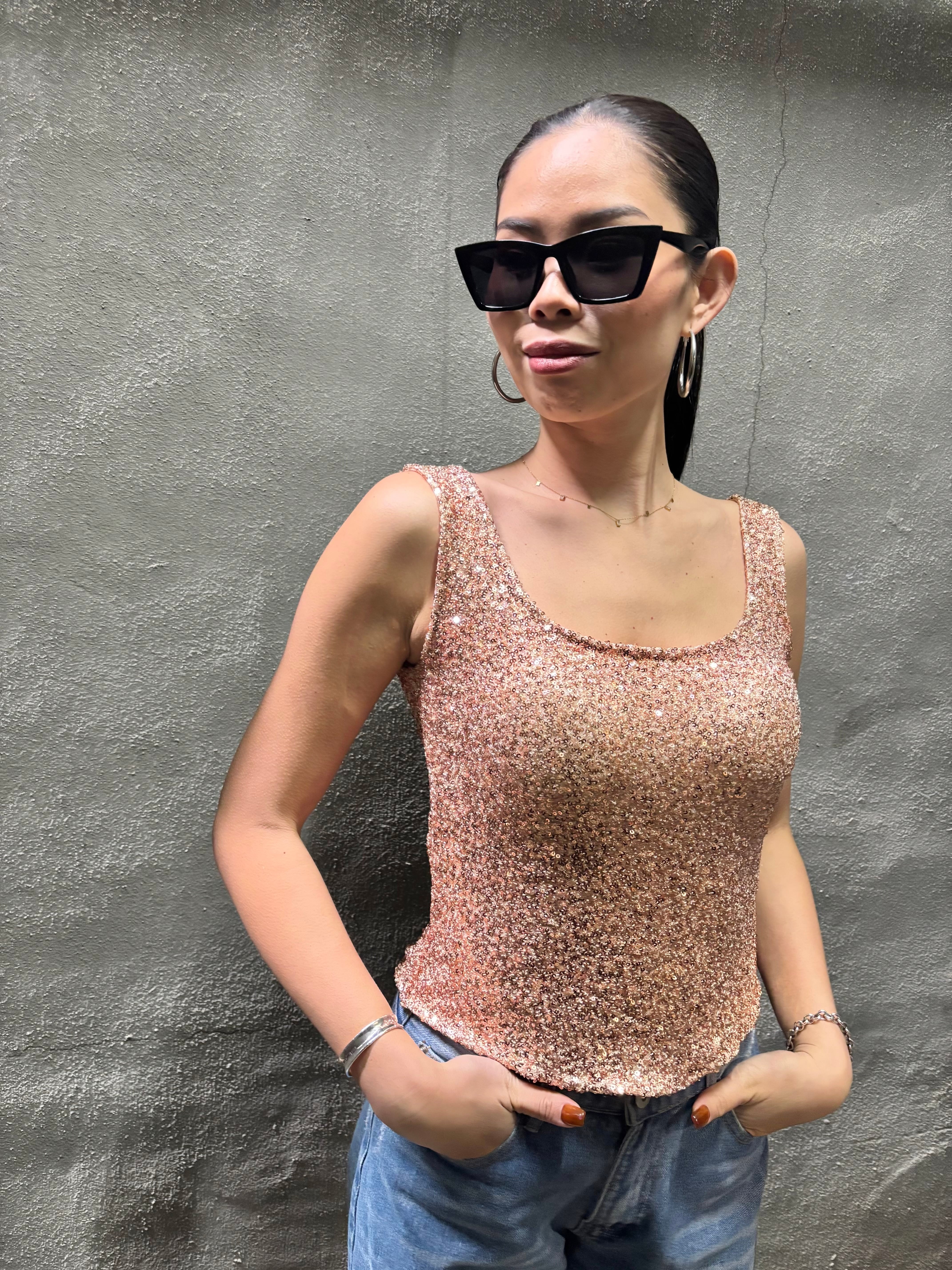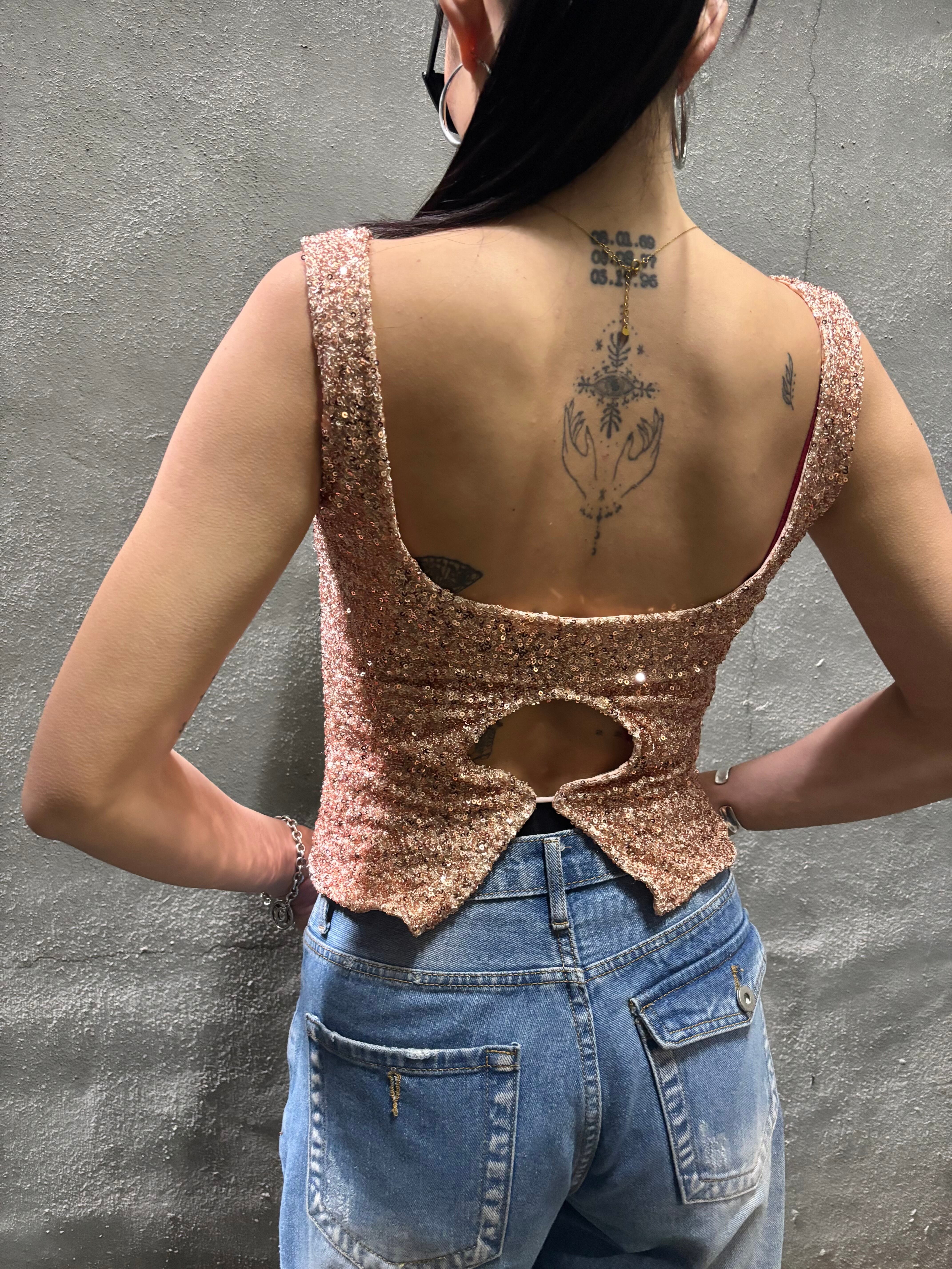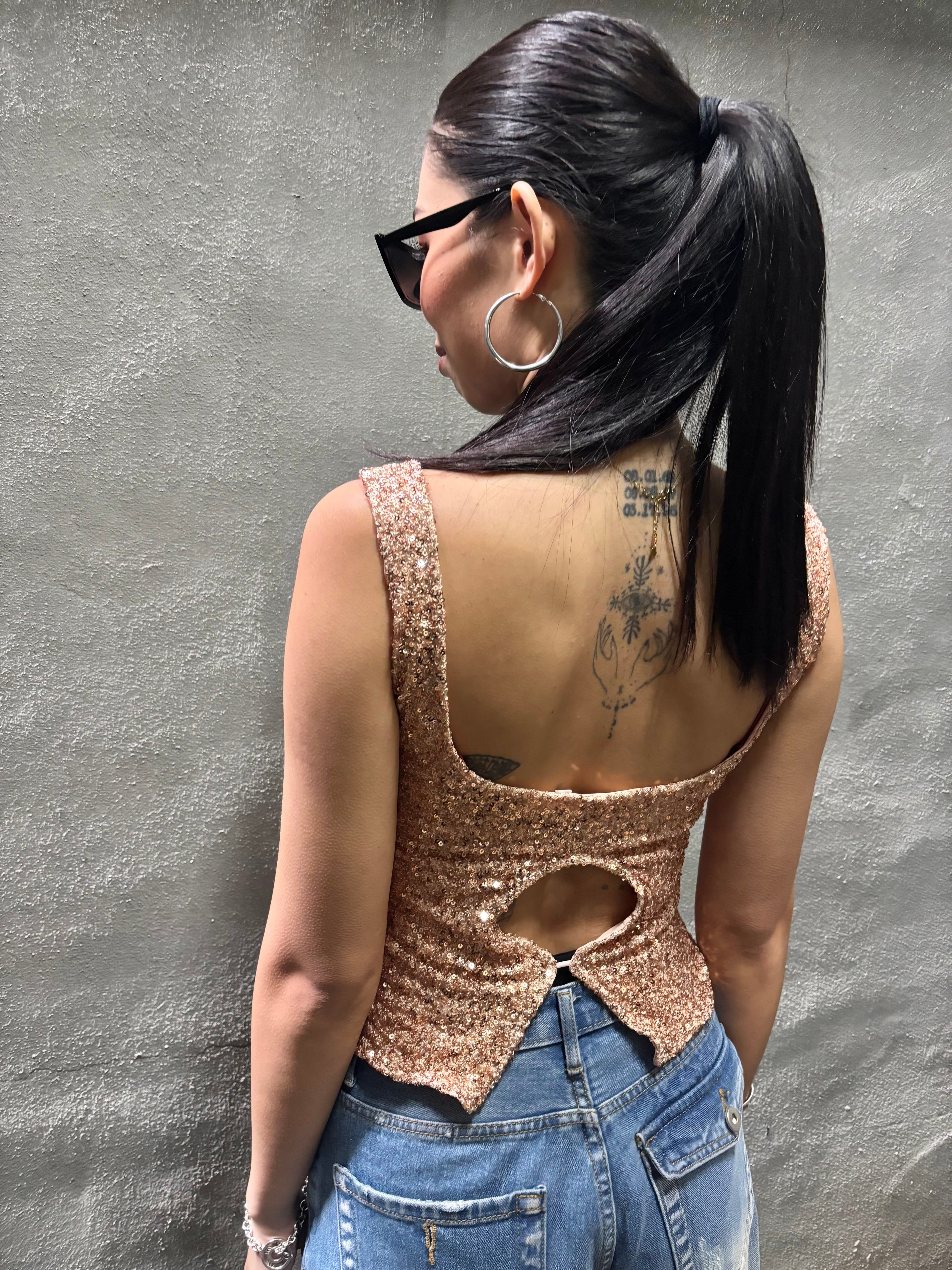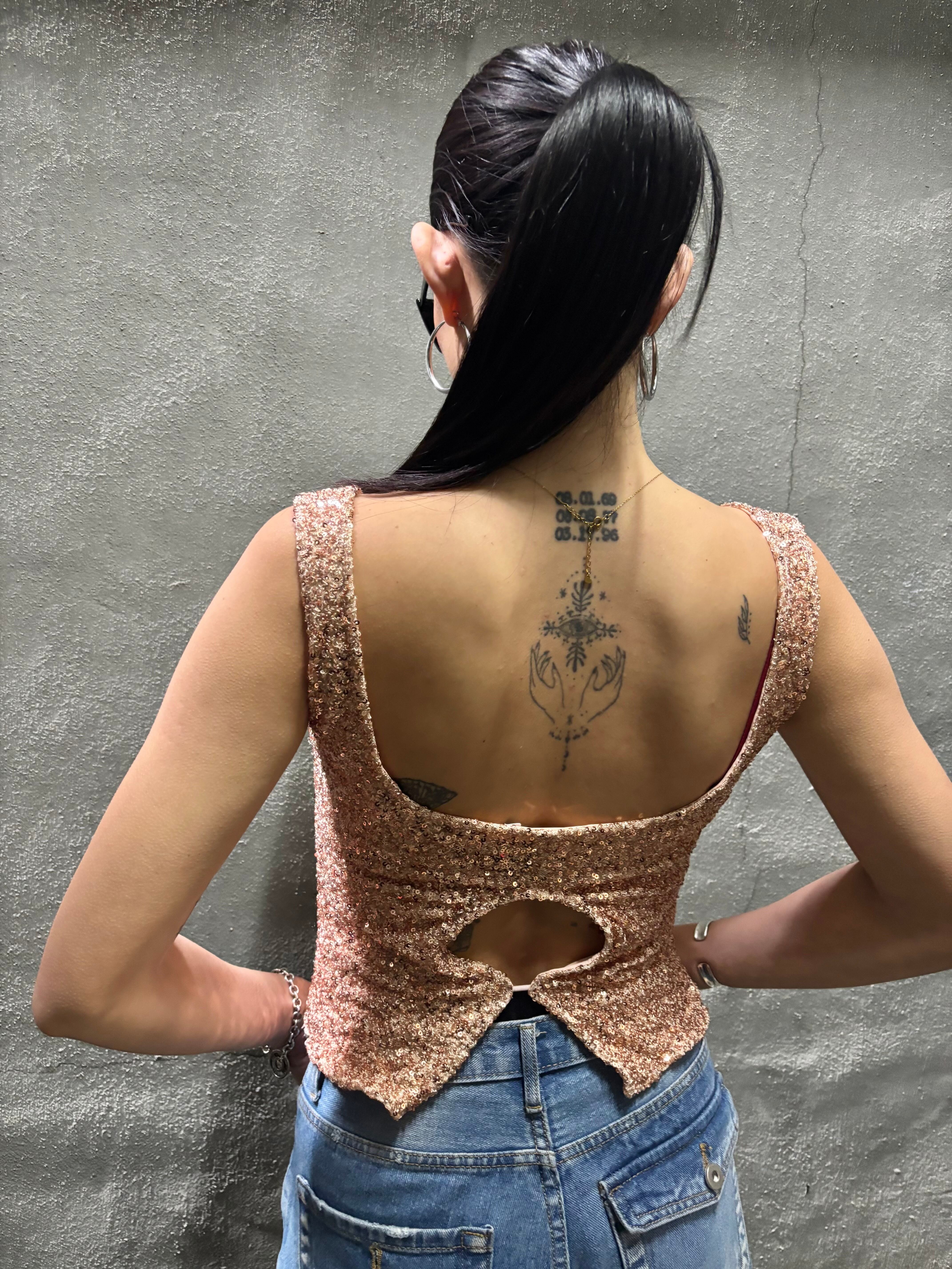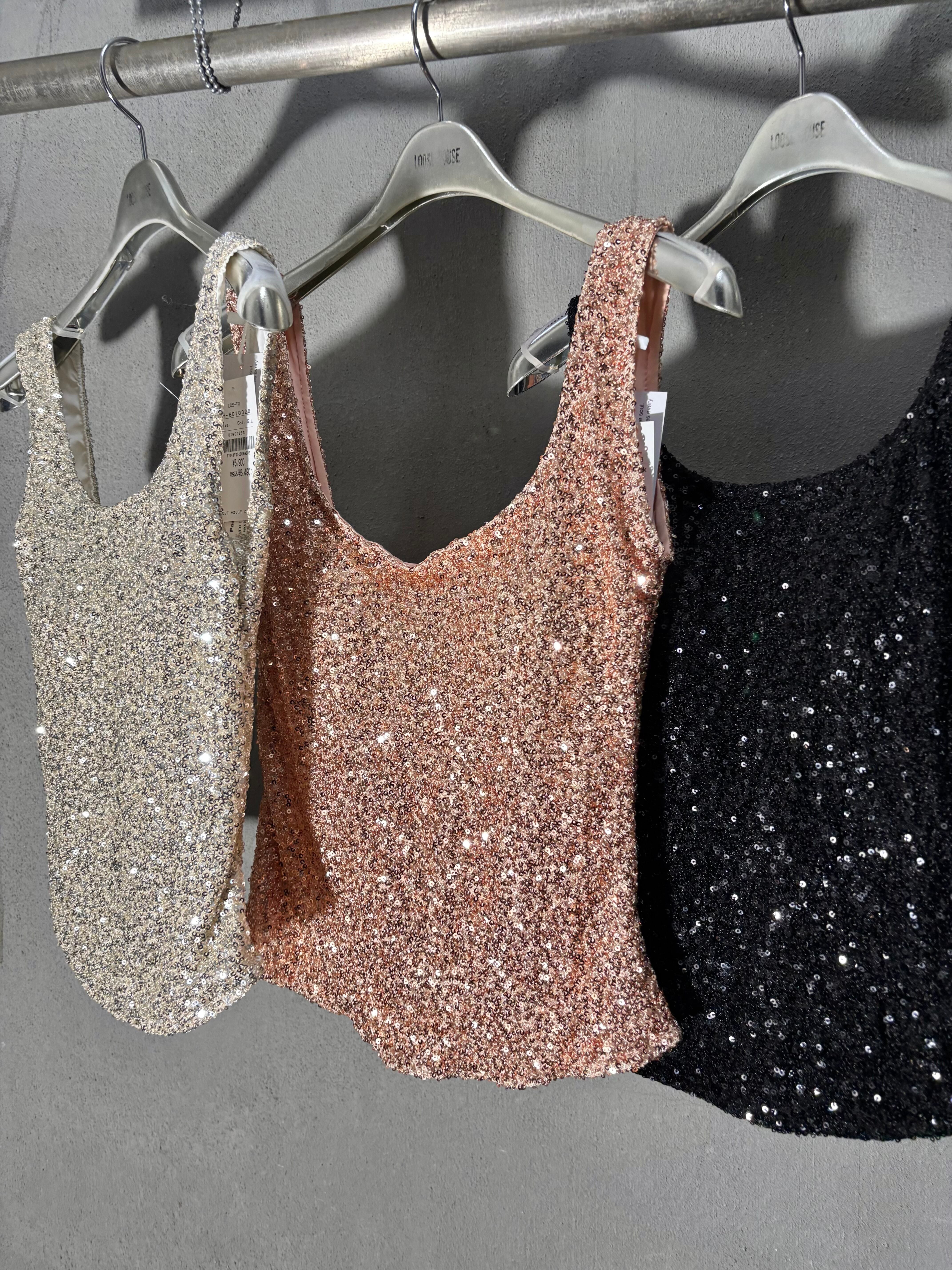spangle × back open design tanktops トップス タンクトップ スパンコール キラキラ 背中開き ストレッチ