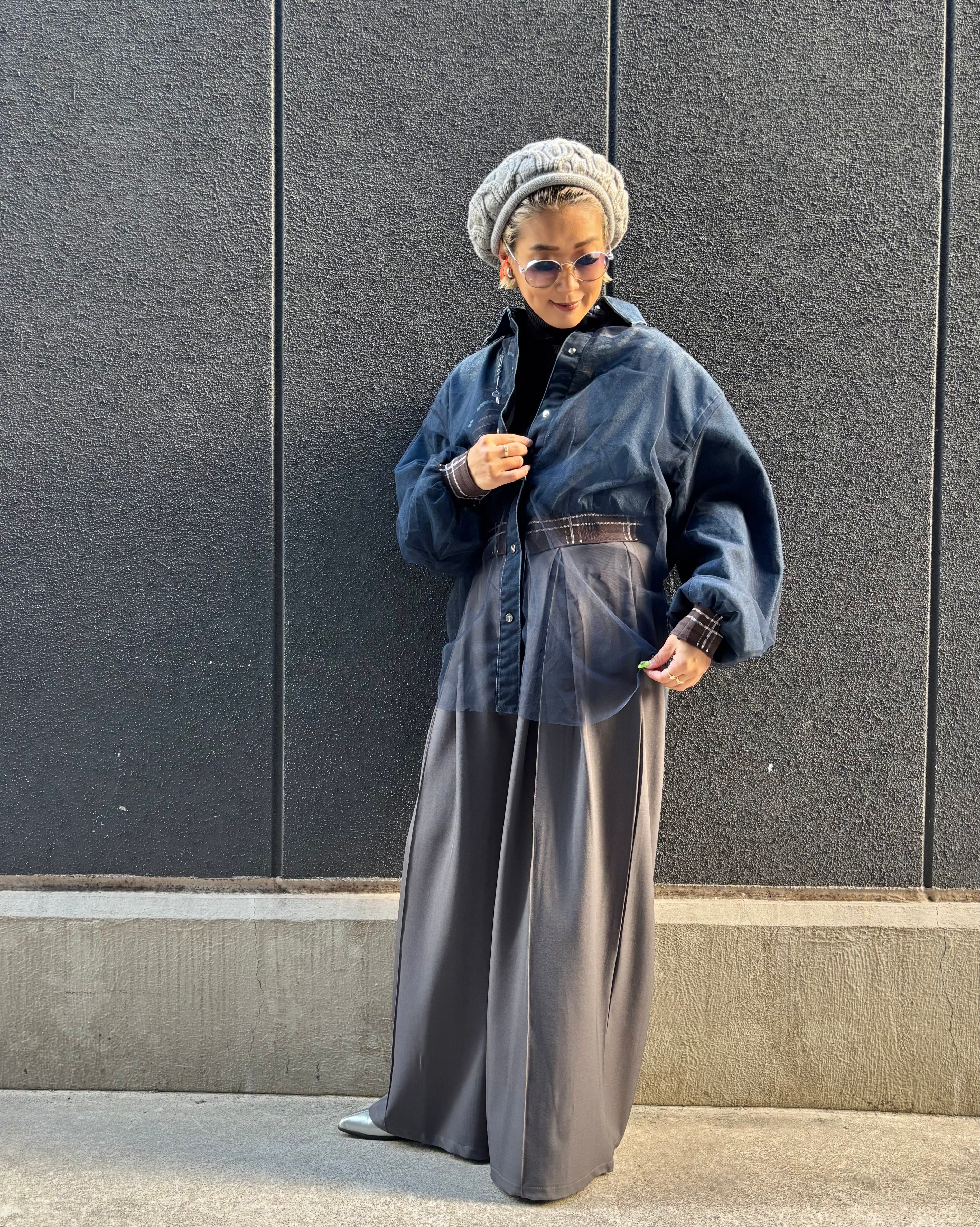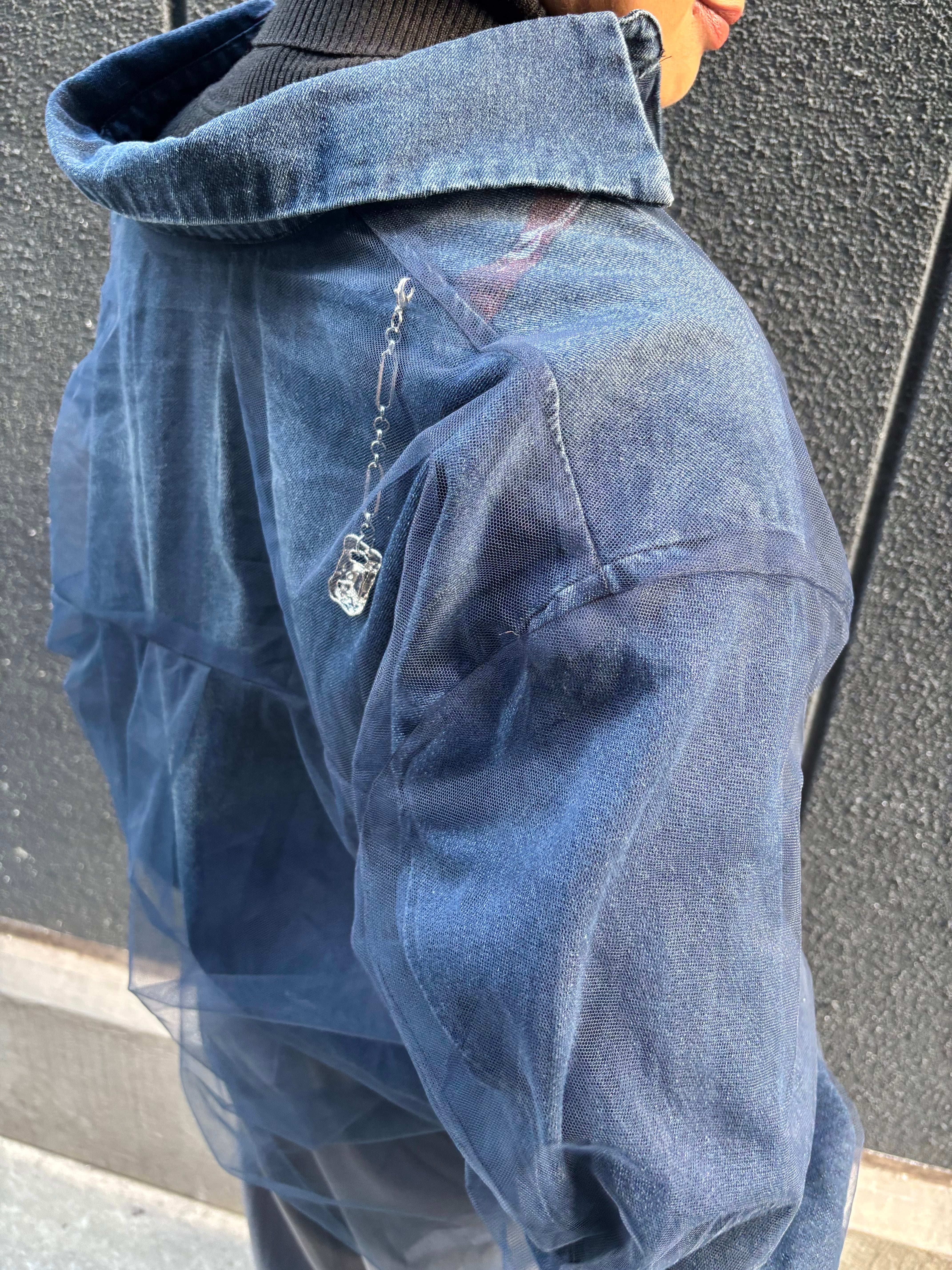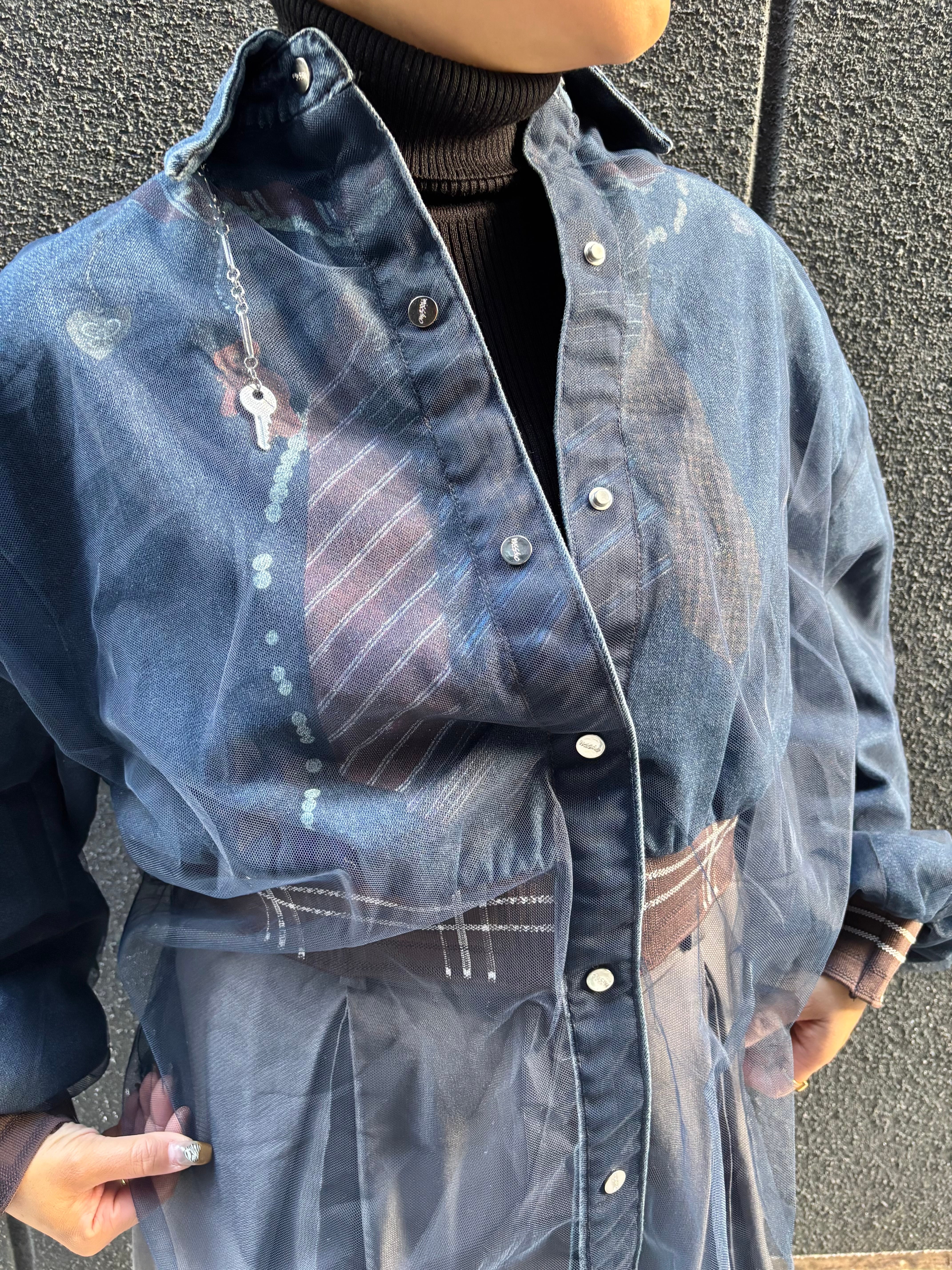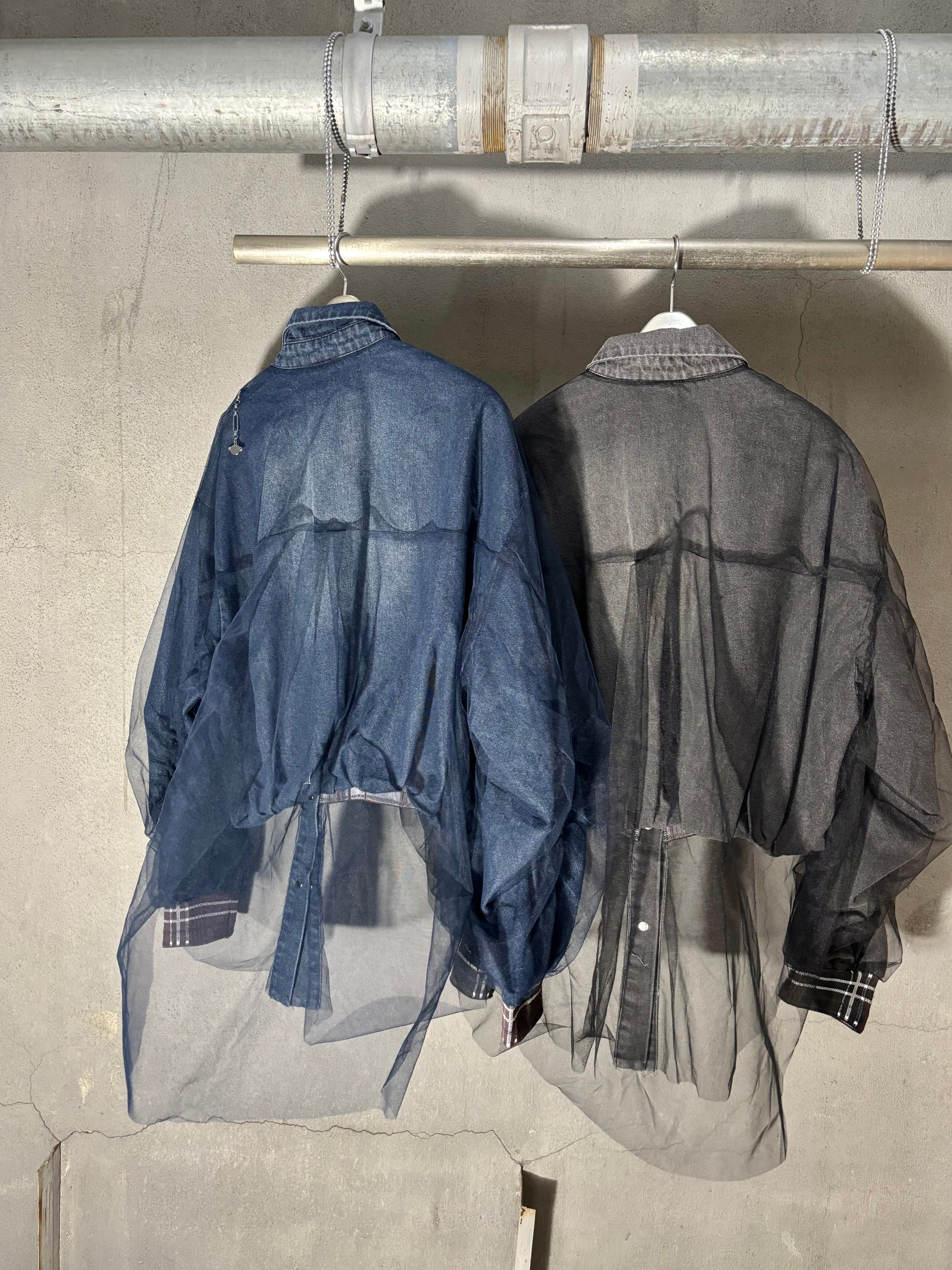 tulle cover design denim shirt jacket シャツ ジャケット デニム チュール カバー プリント