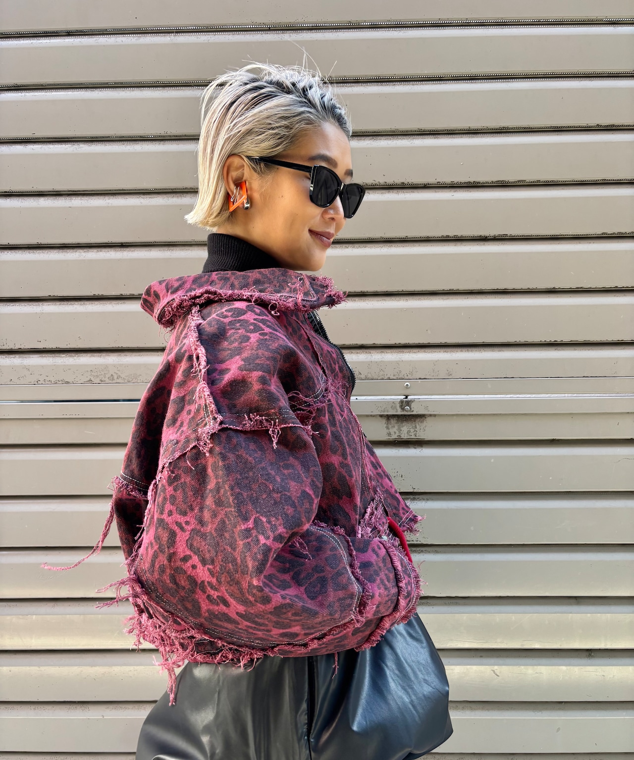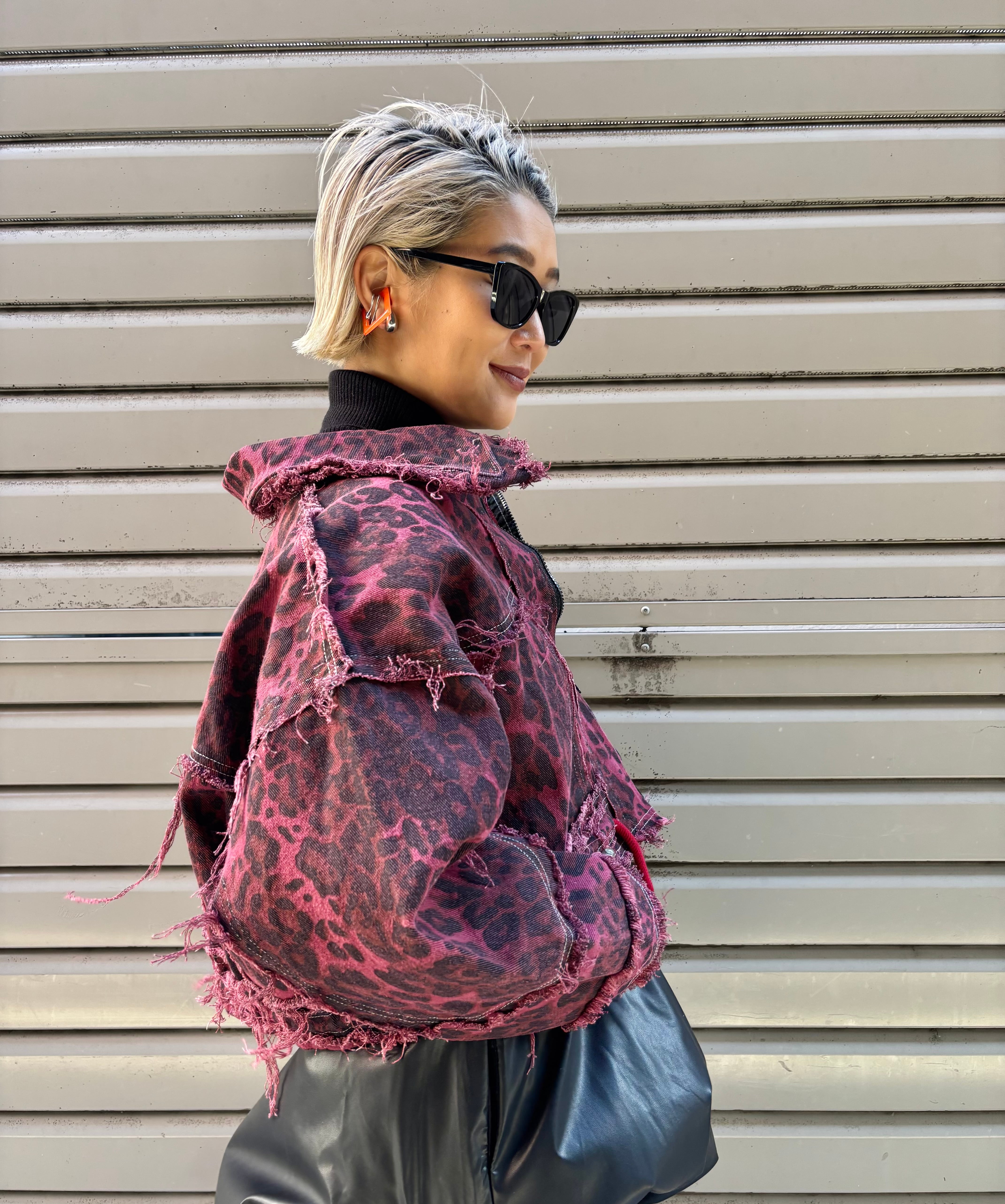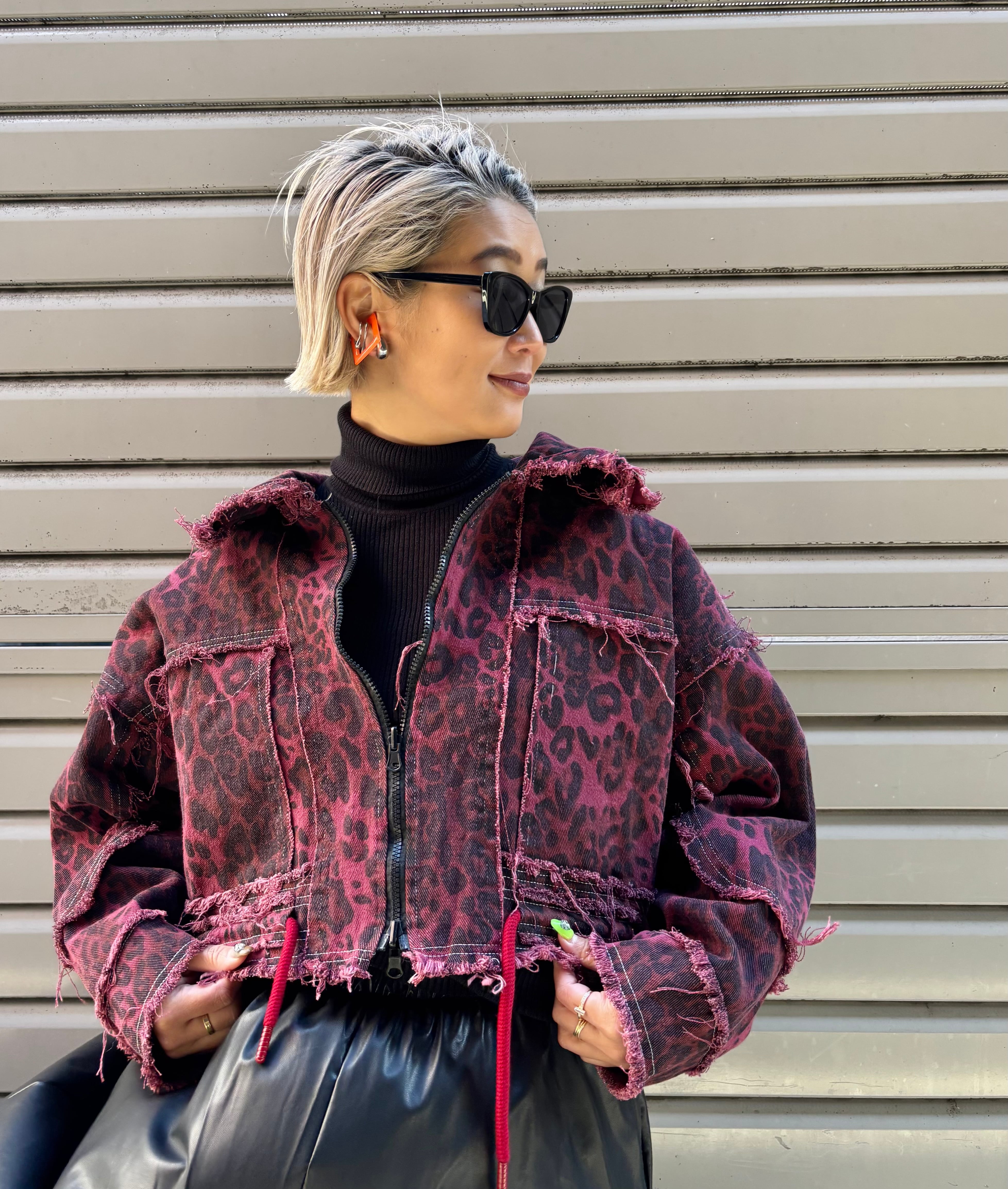 トレンドのレオパード柄とダメージ加工が特徴のデニムジャケットです!