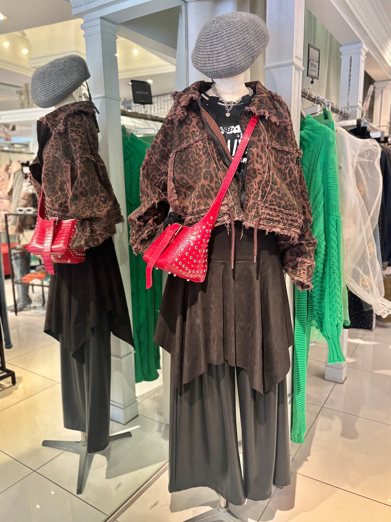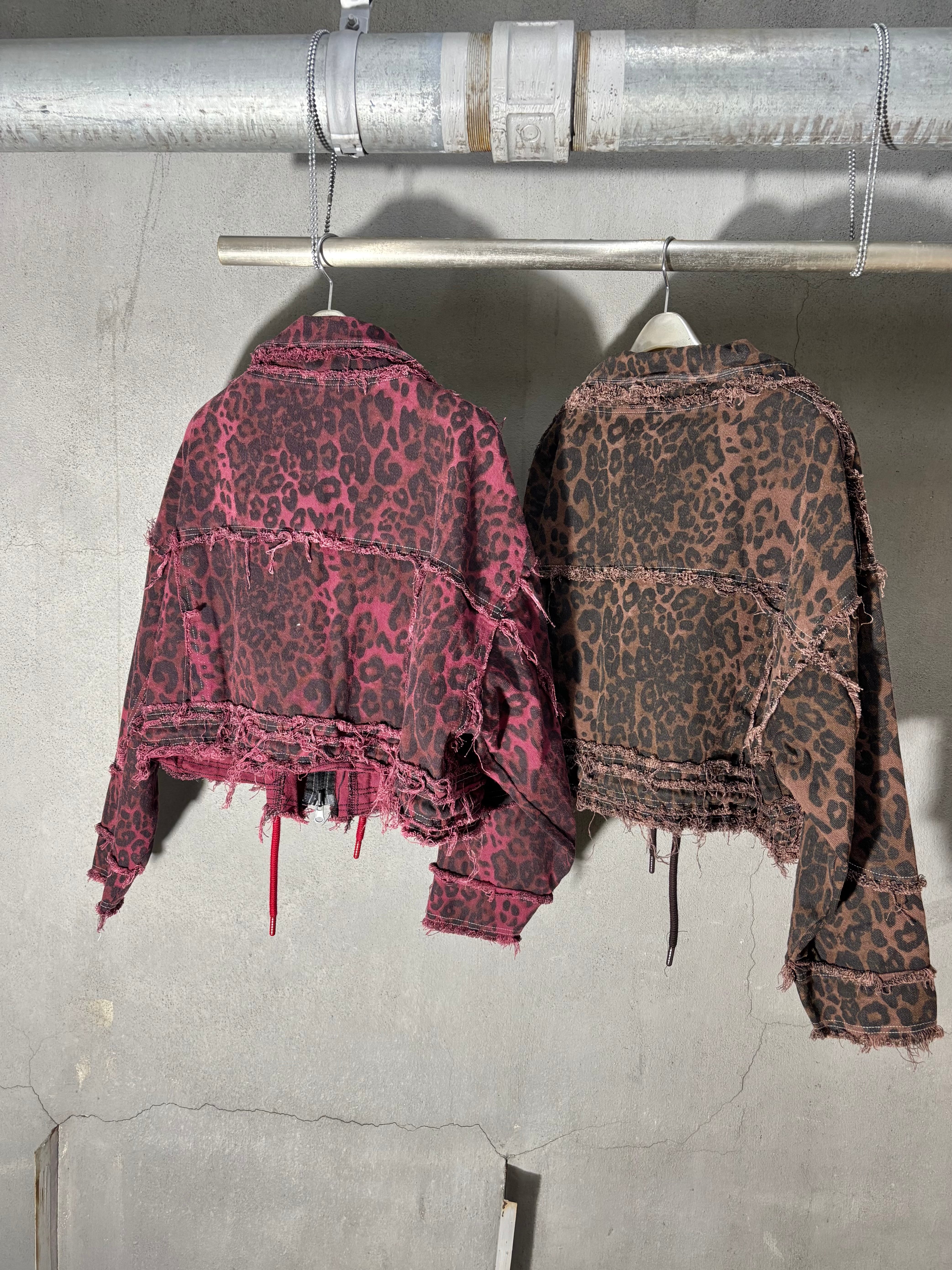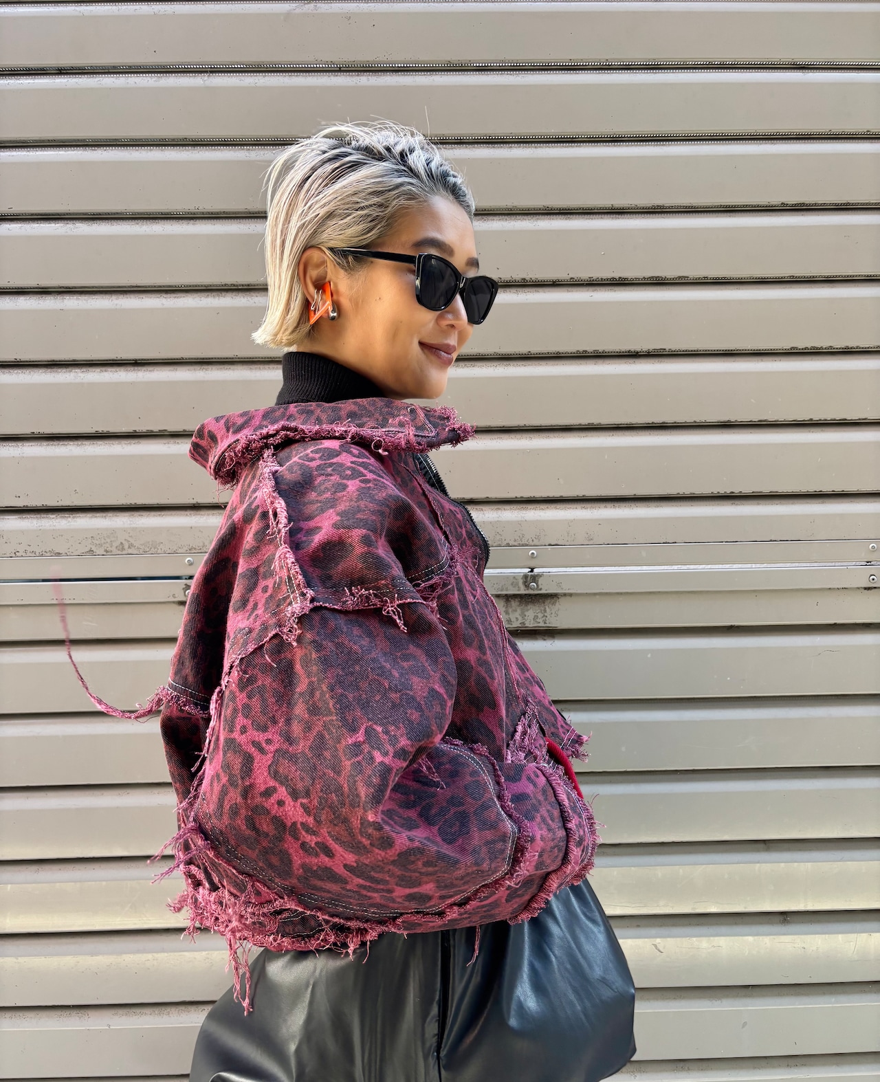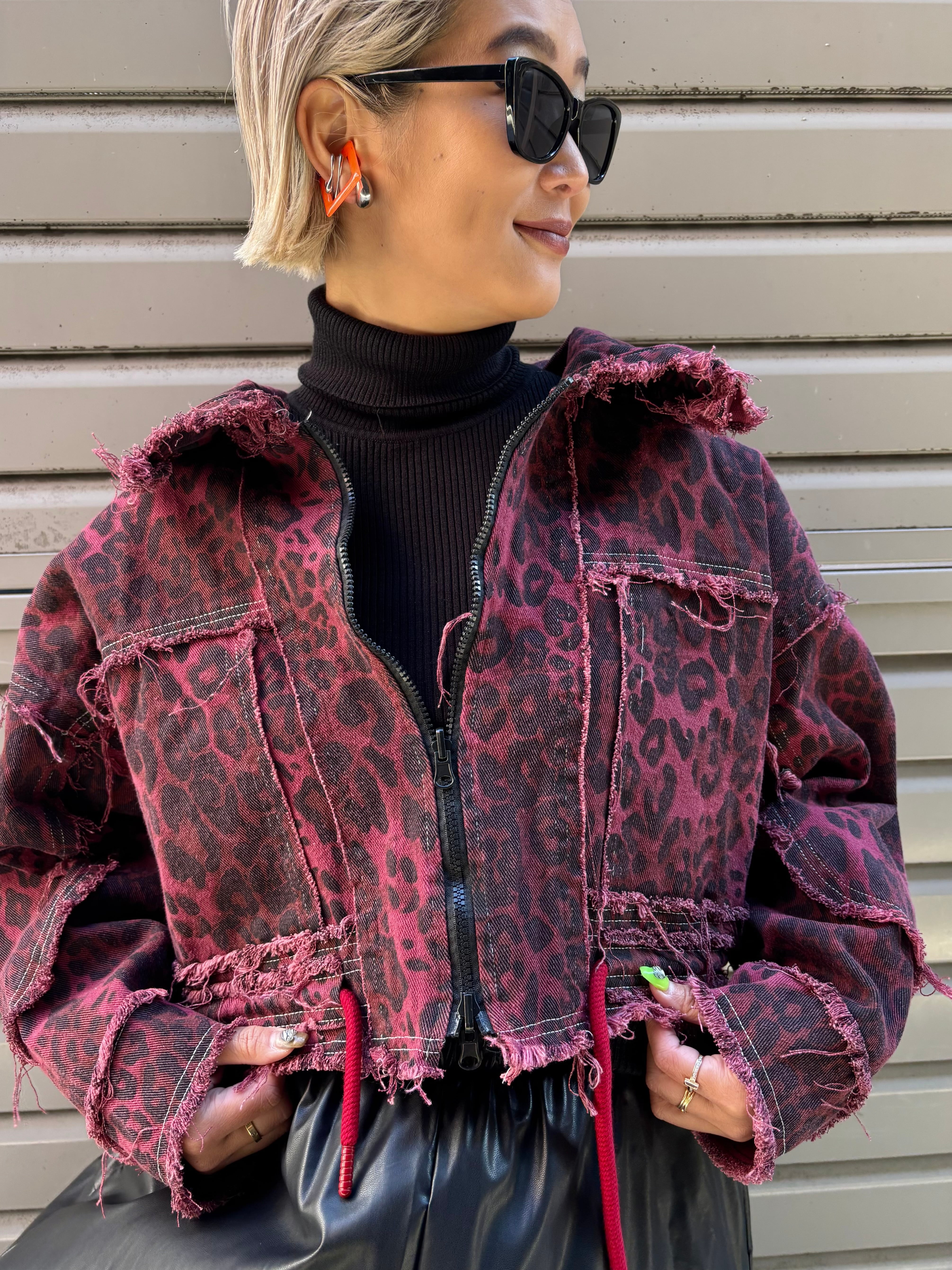 トレンドのレオパード柄とダメージ加工が特徴のデニムジャケットです!