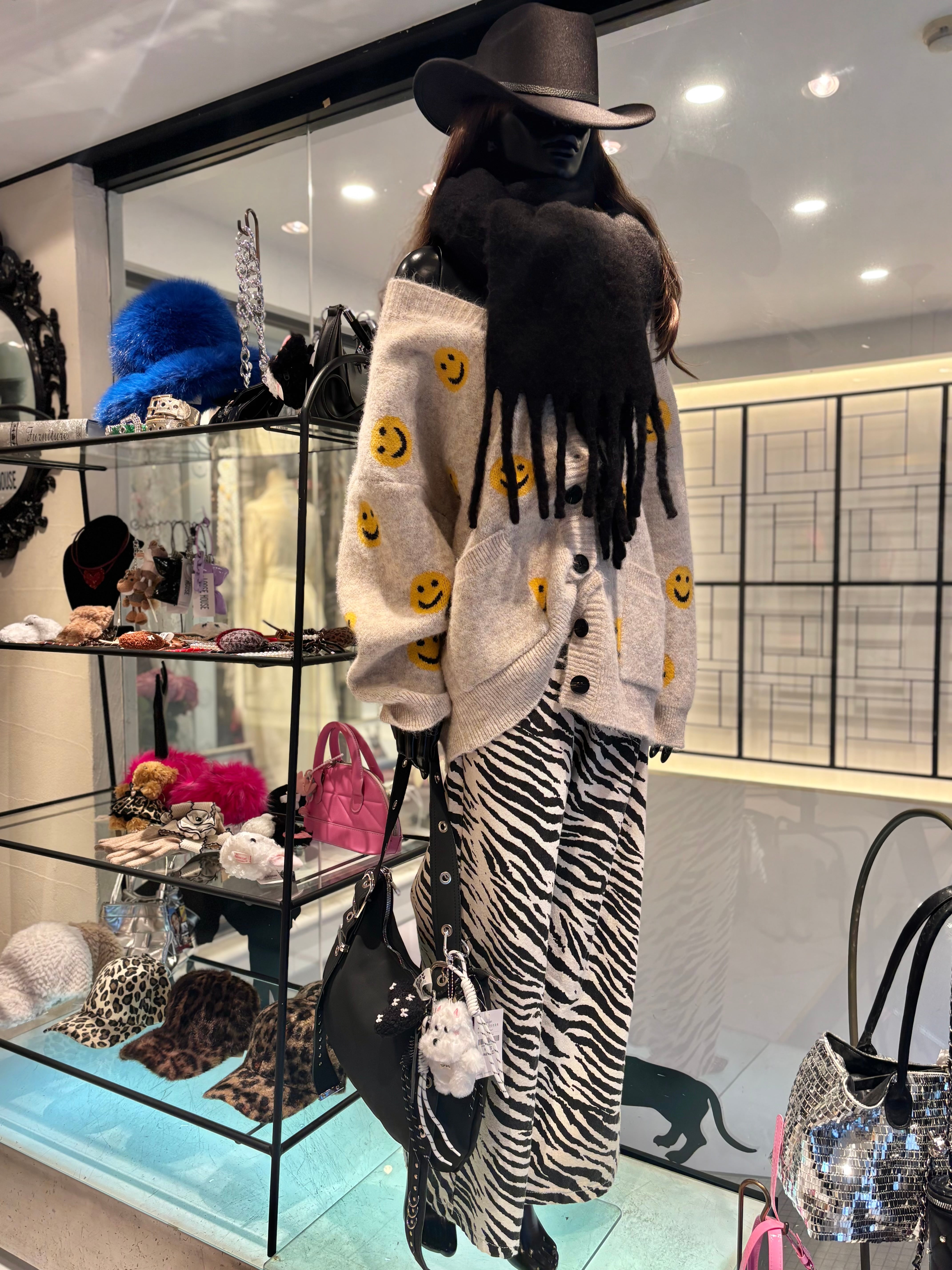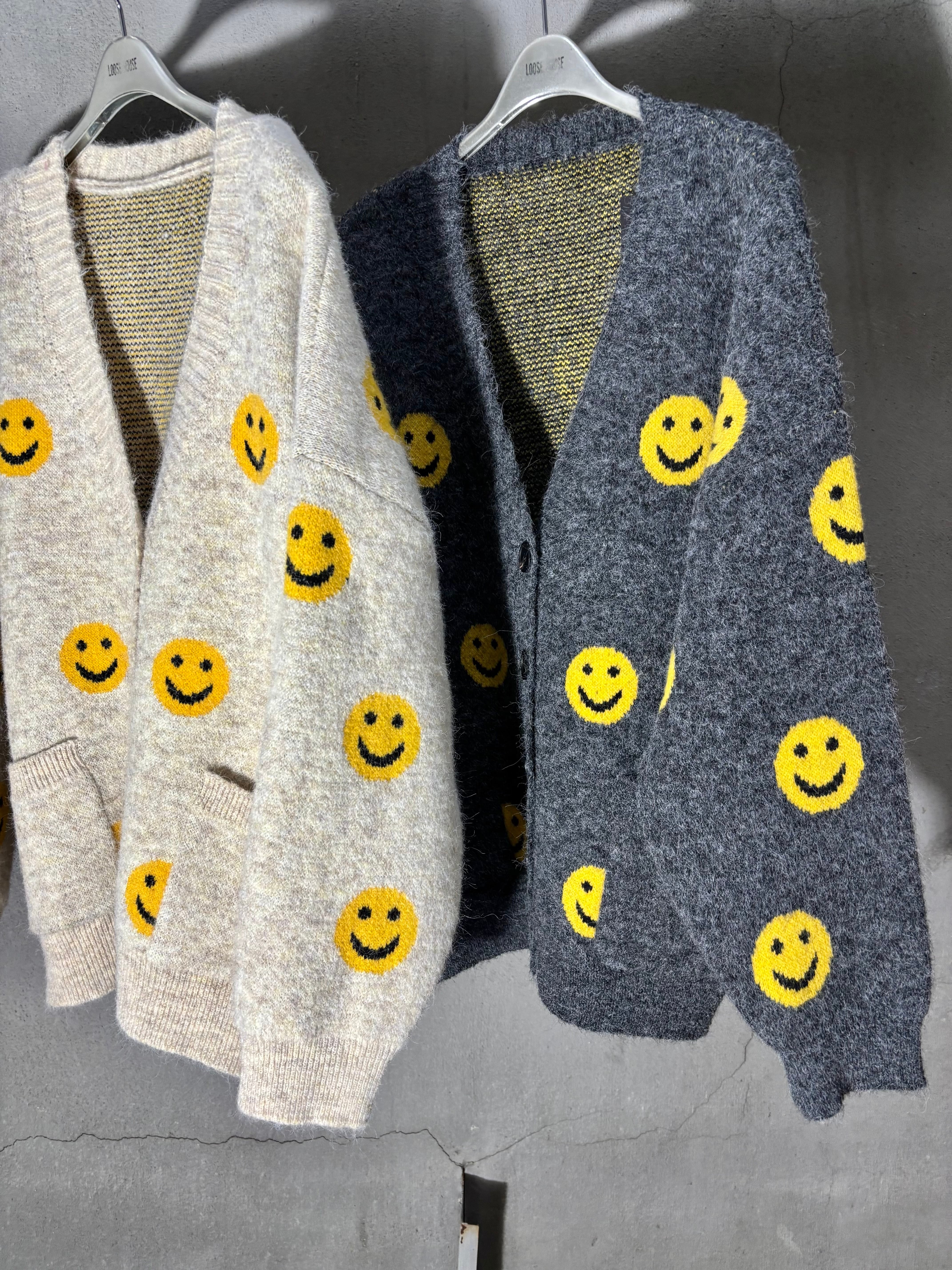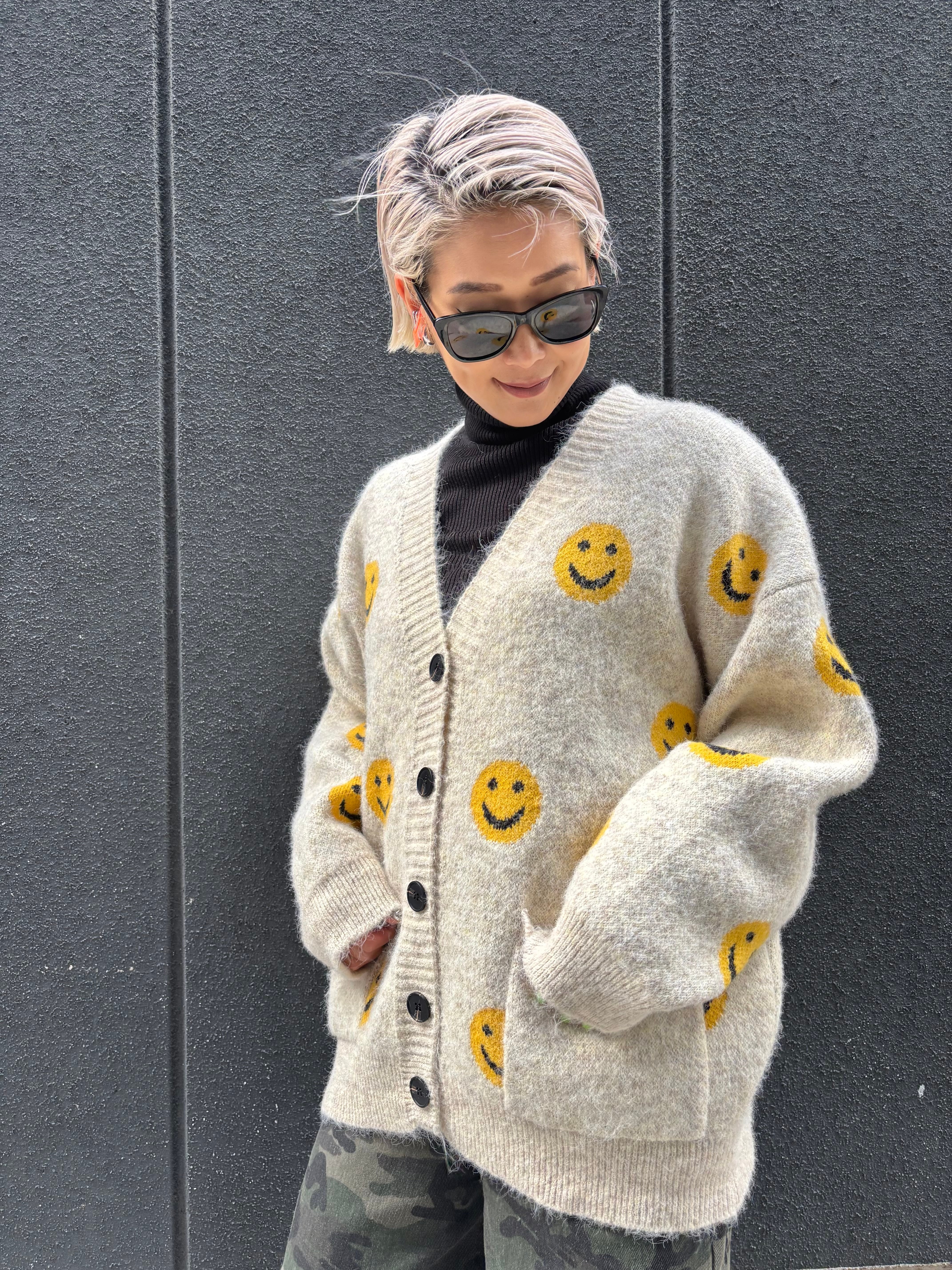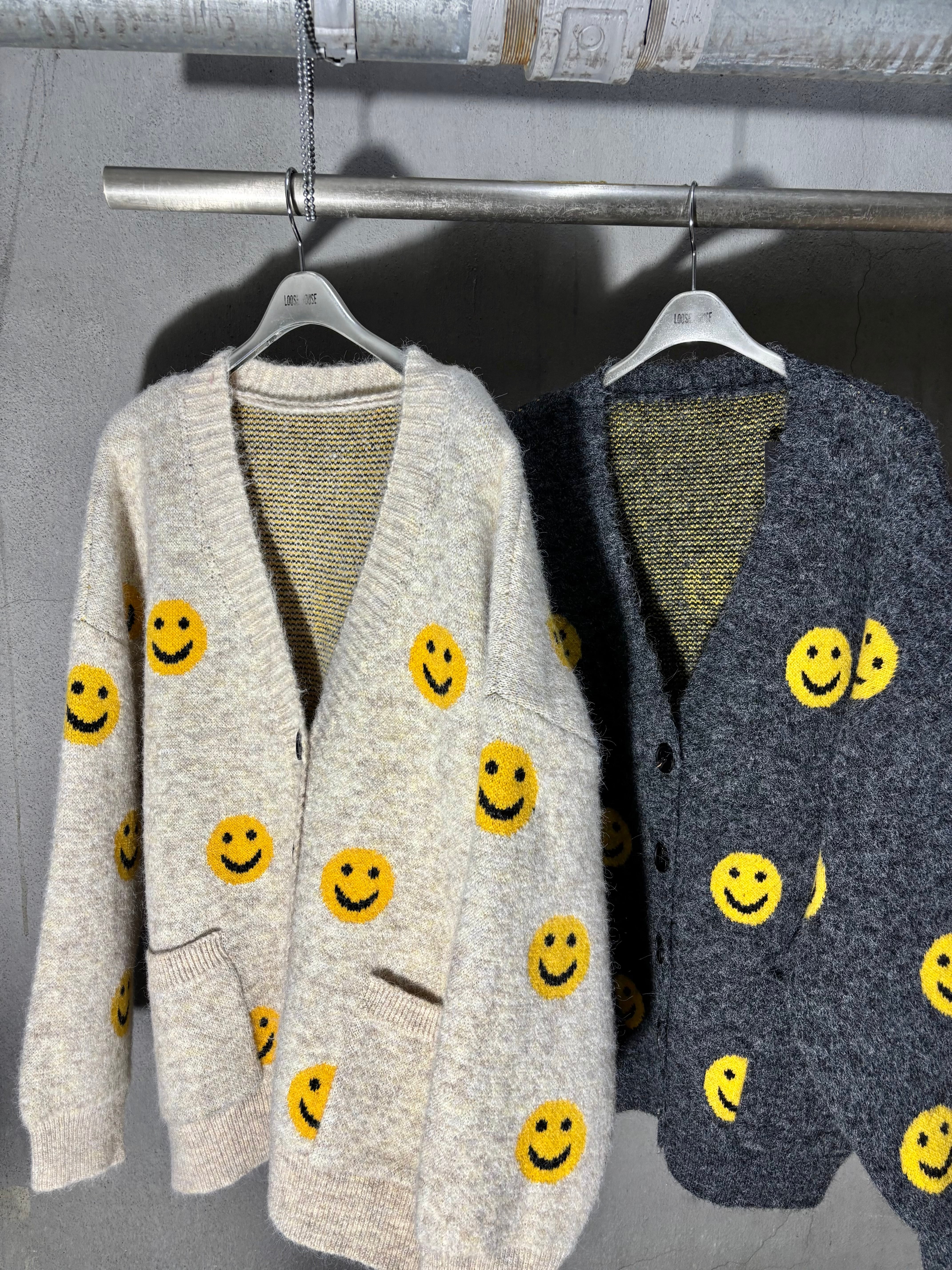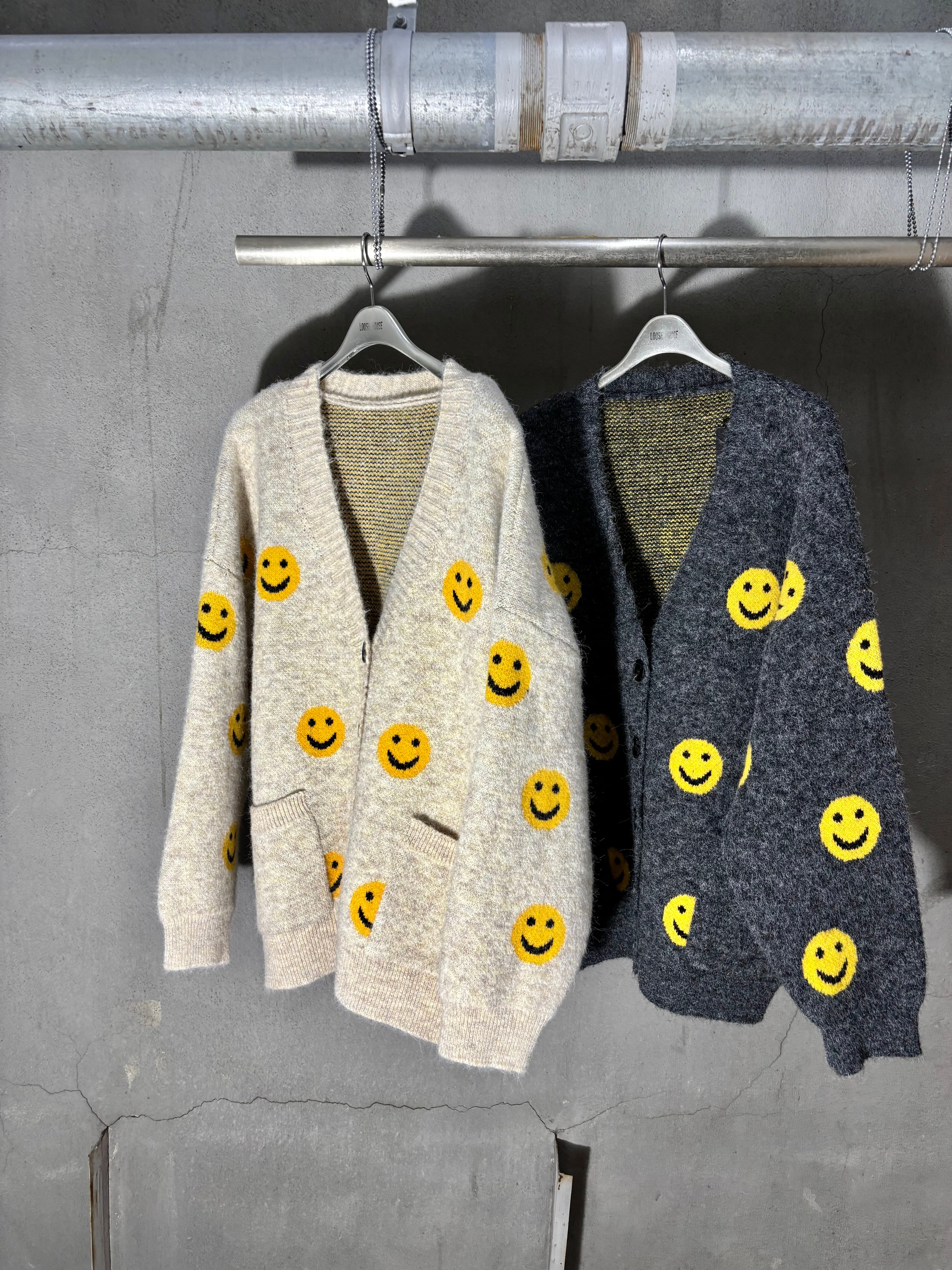 スマイリー・デザインがアクセントの可愛らしいカーディガンです♪