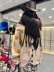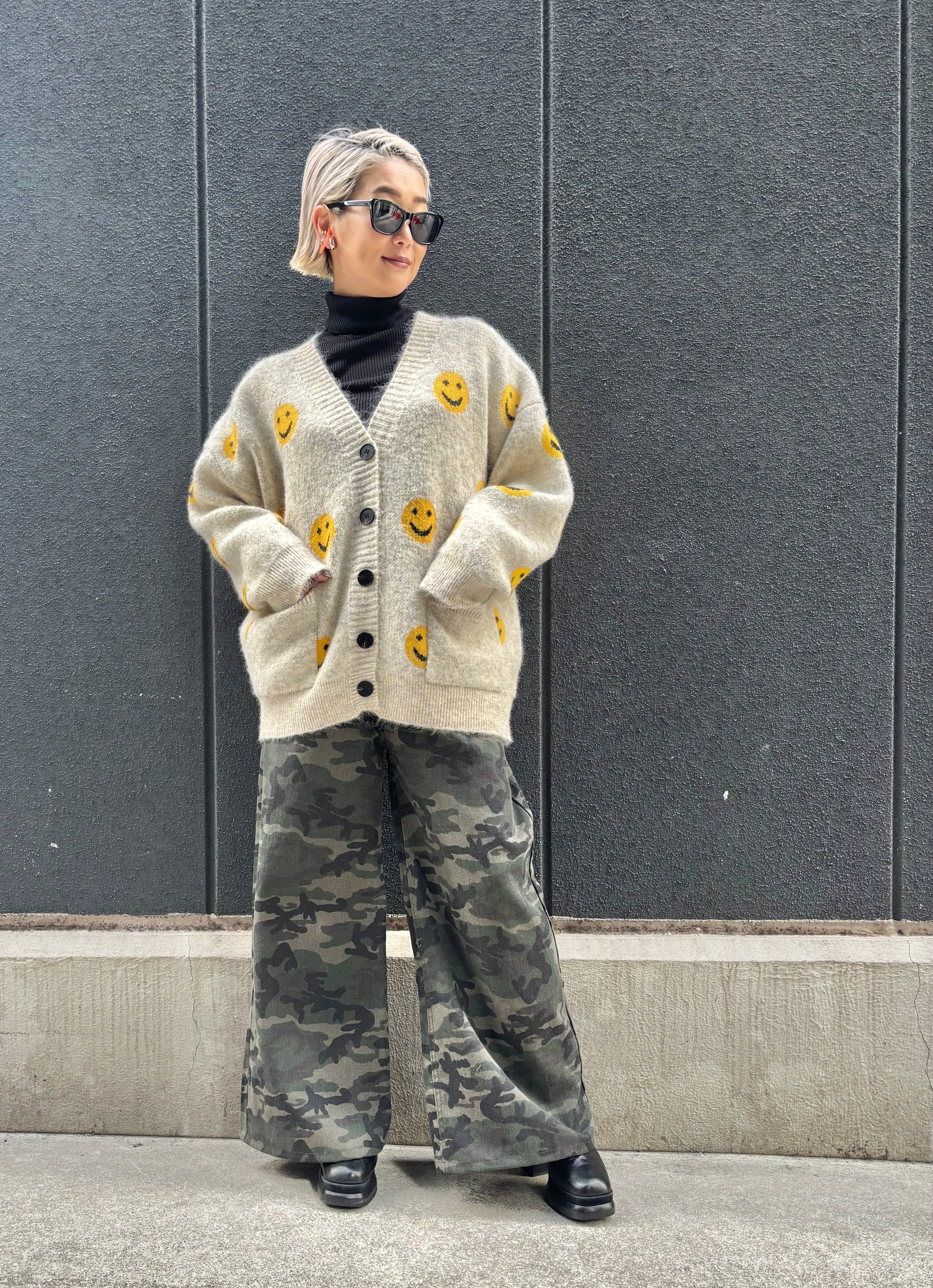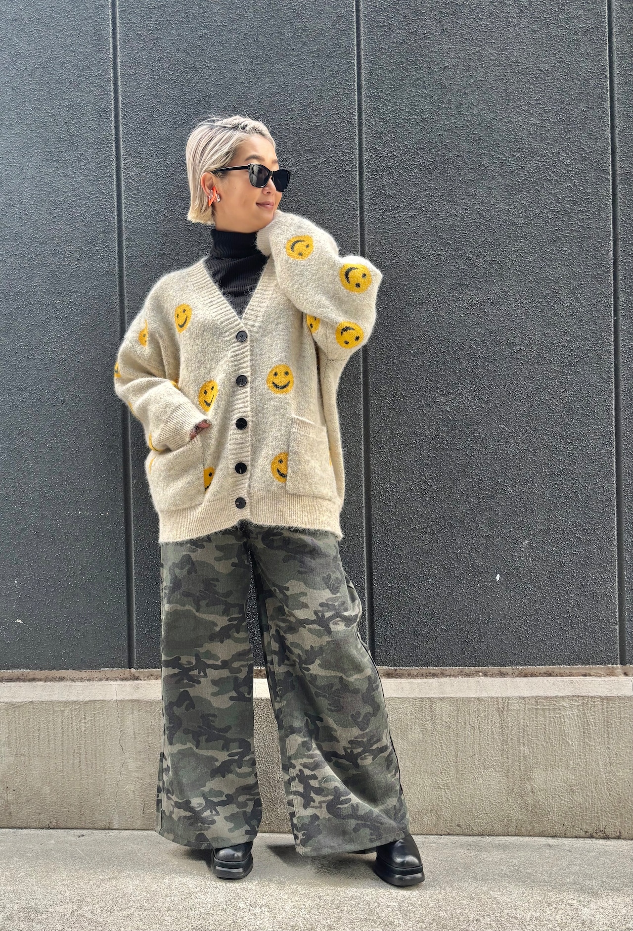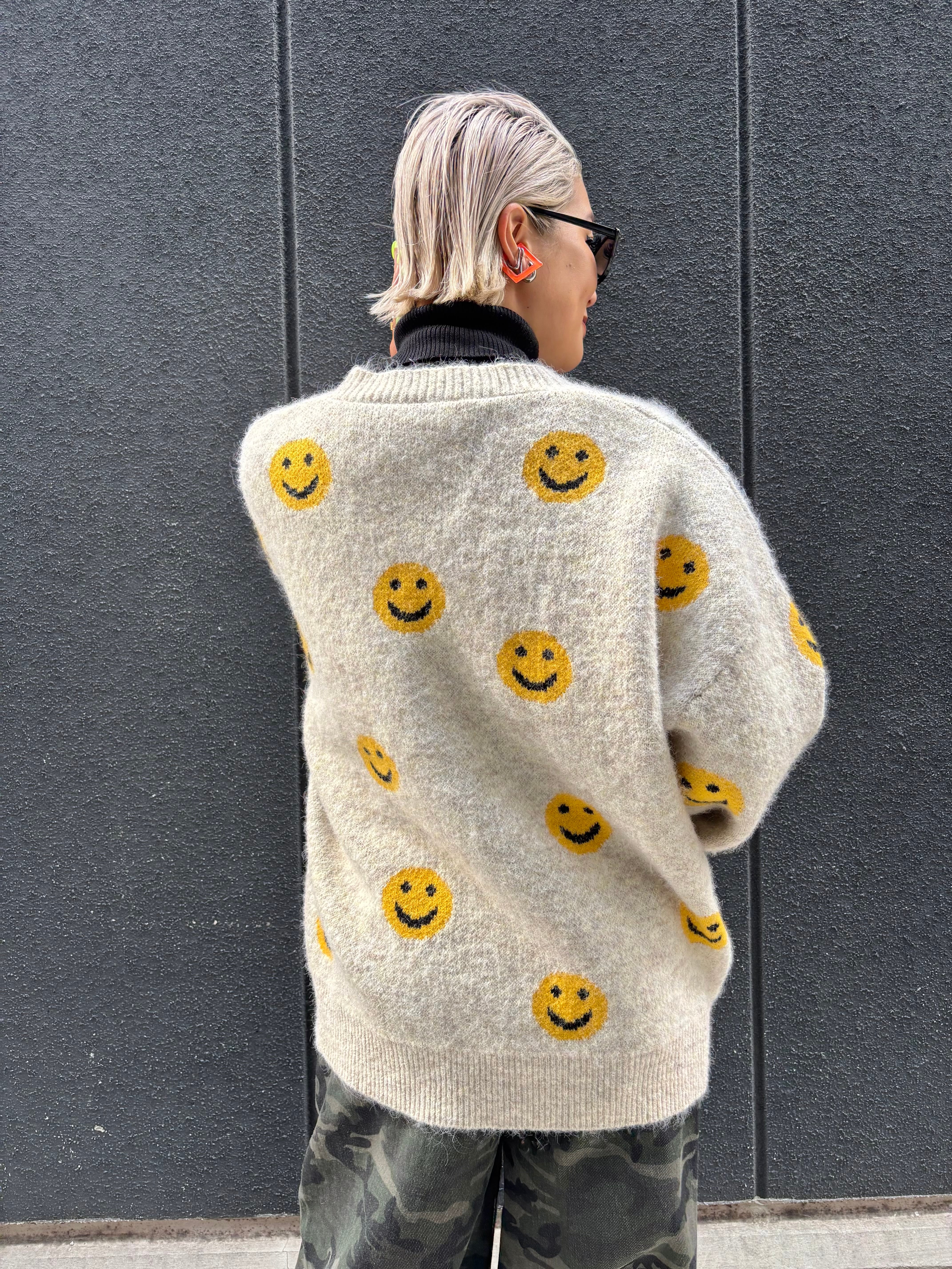 smiley jacquard knit V-neck cardigan ニット カーディガン ジャガード スマイリー ニコちゃん Vネック ポケット