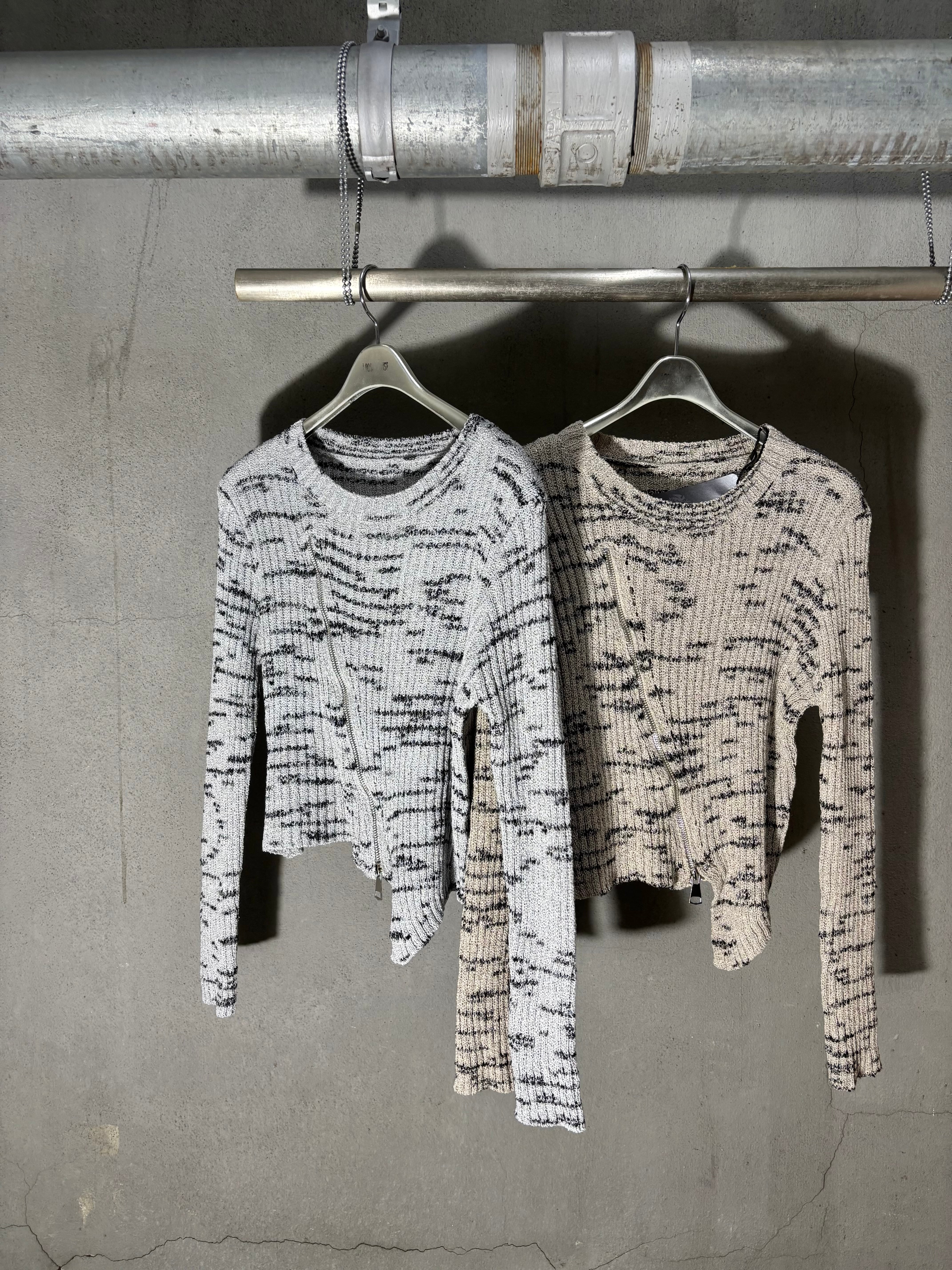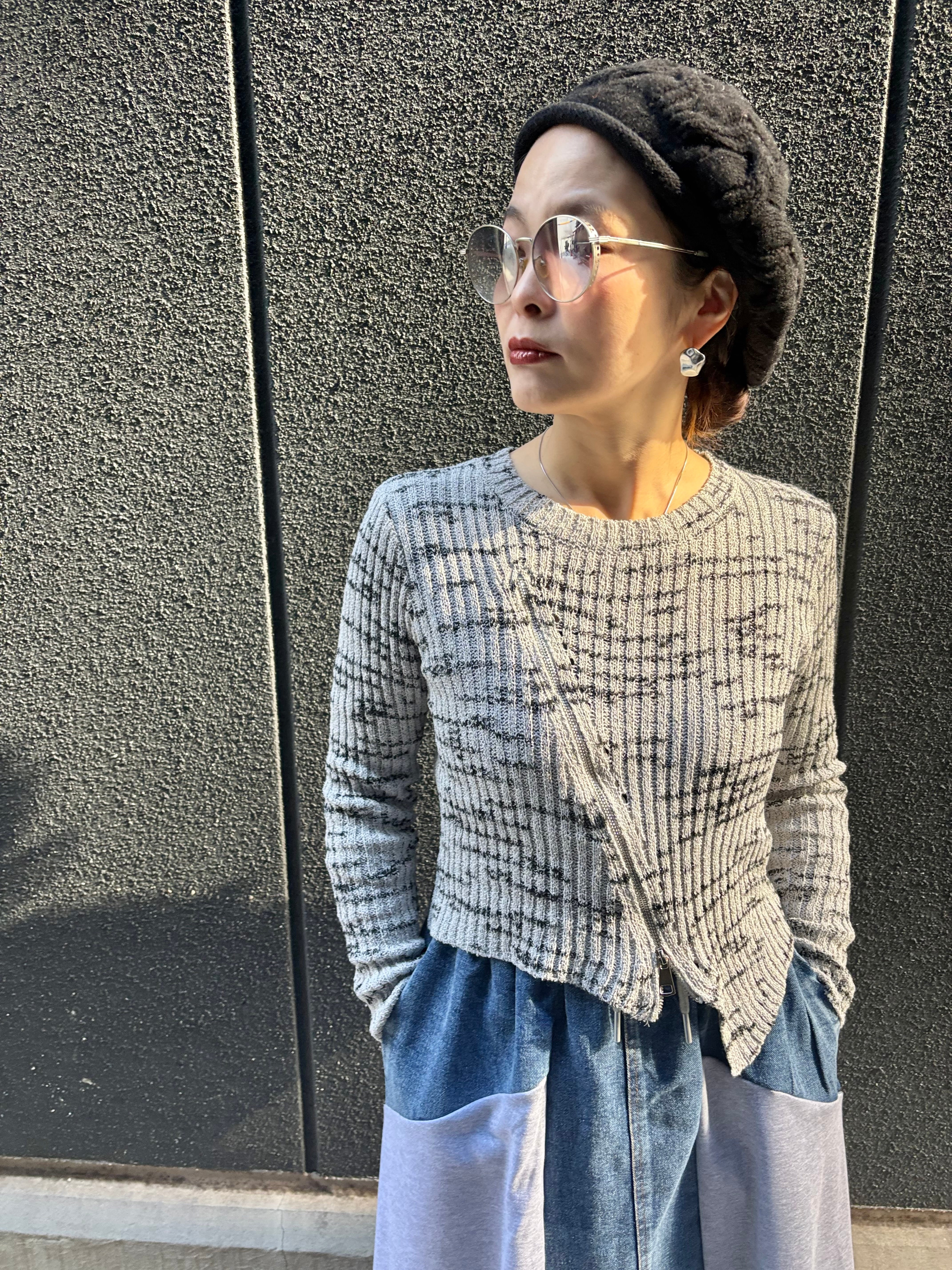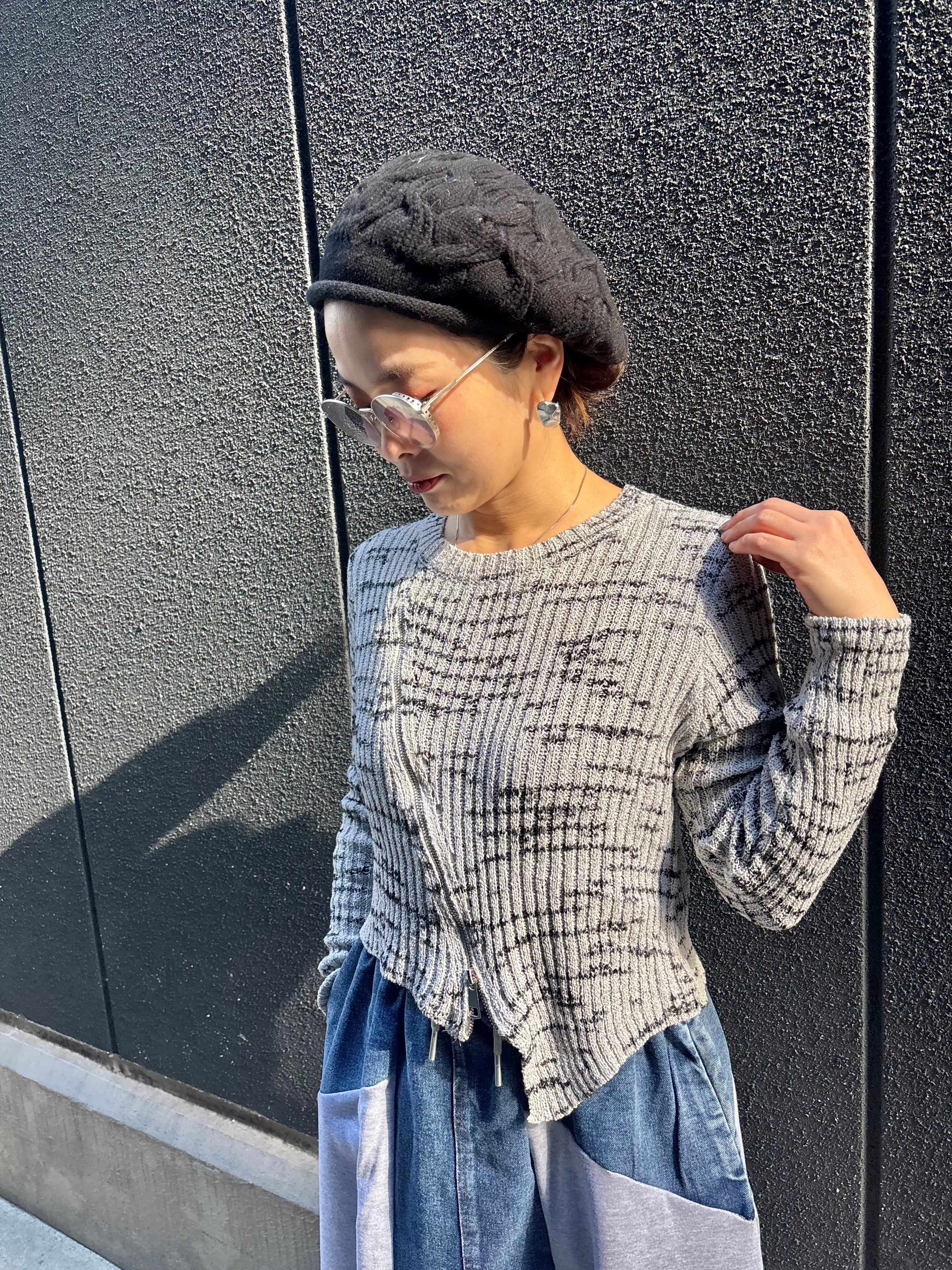 zipper design bias knit tops トップス ニット バイカラー ジッパー