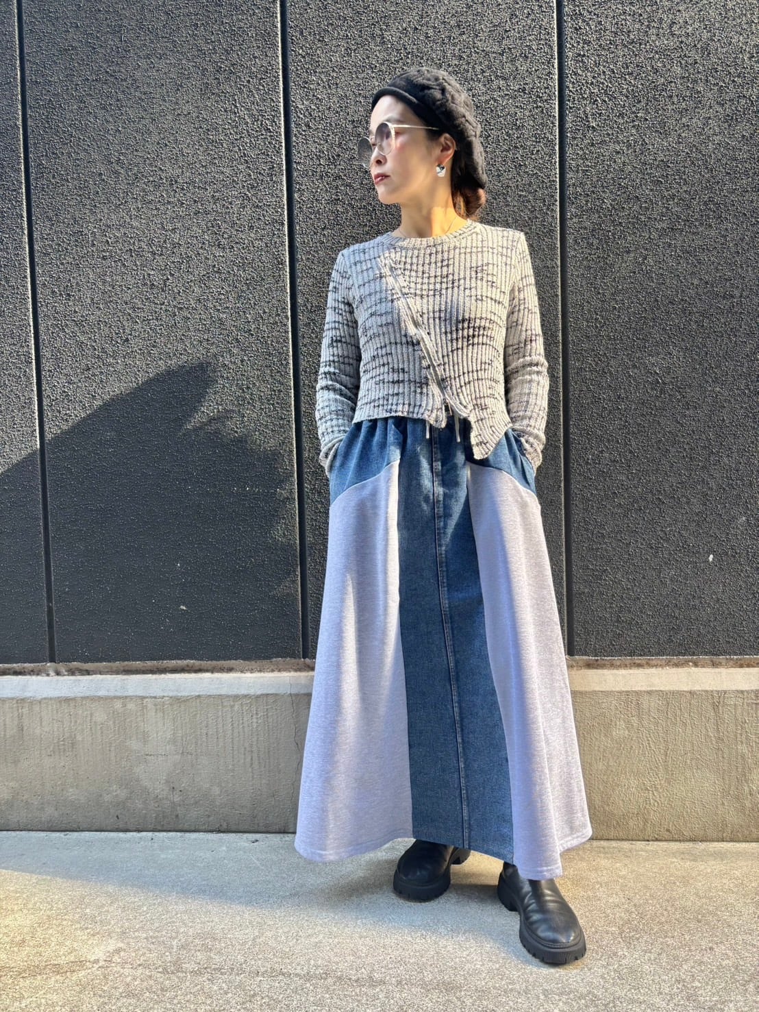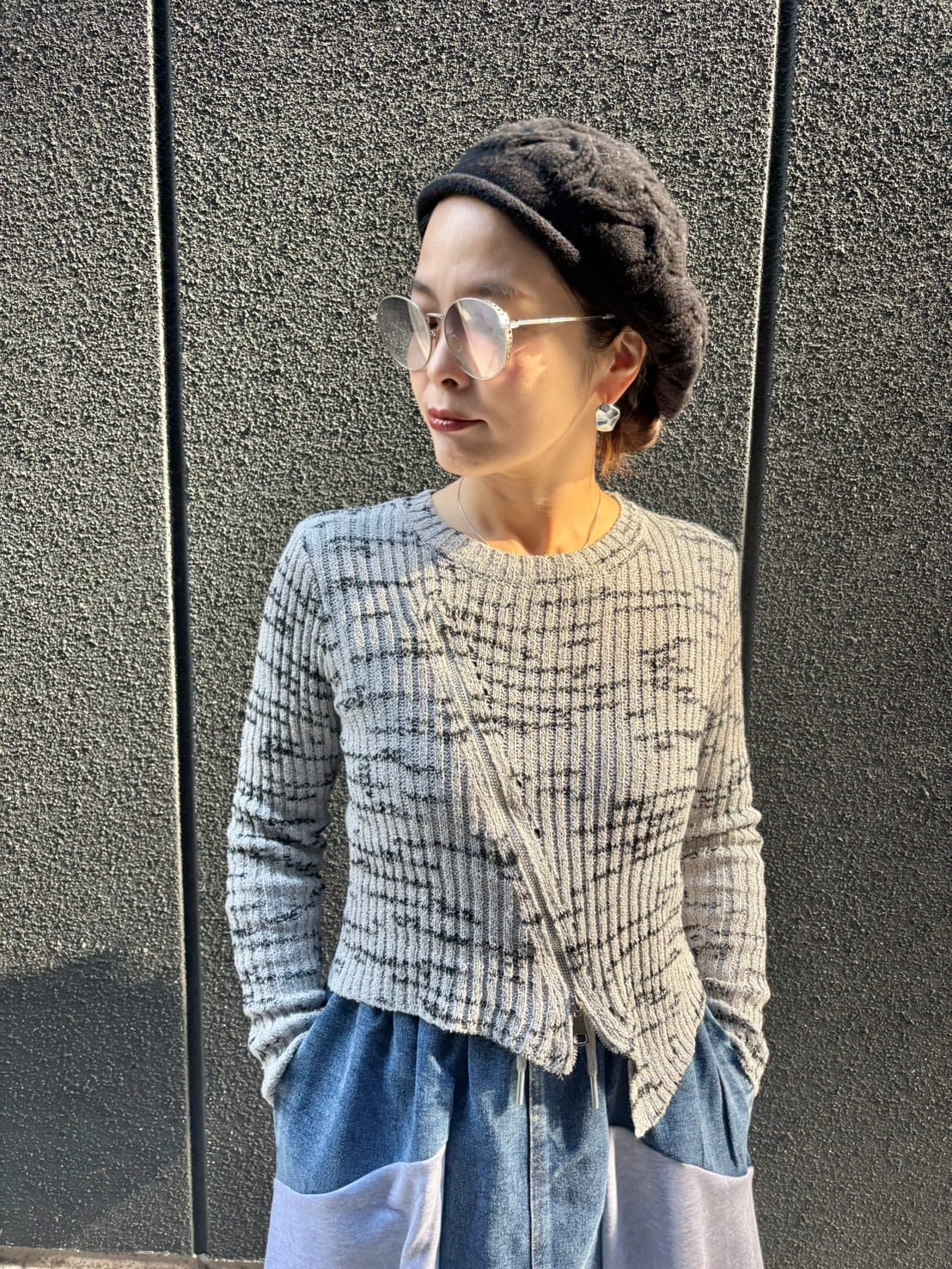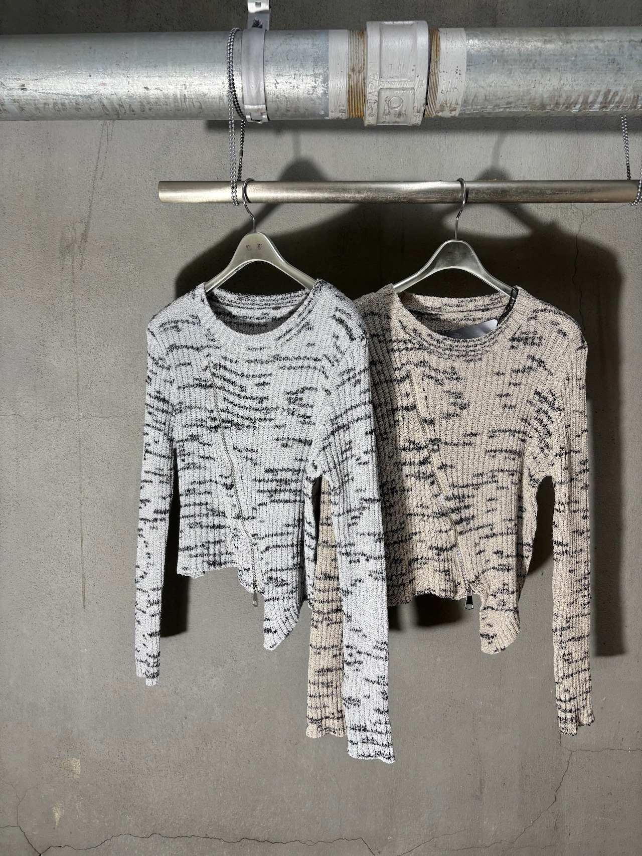 zipper design bias knit tops トップス ニット バイカラー ジッパー
