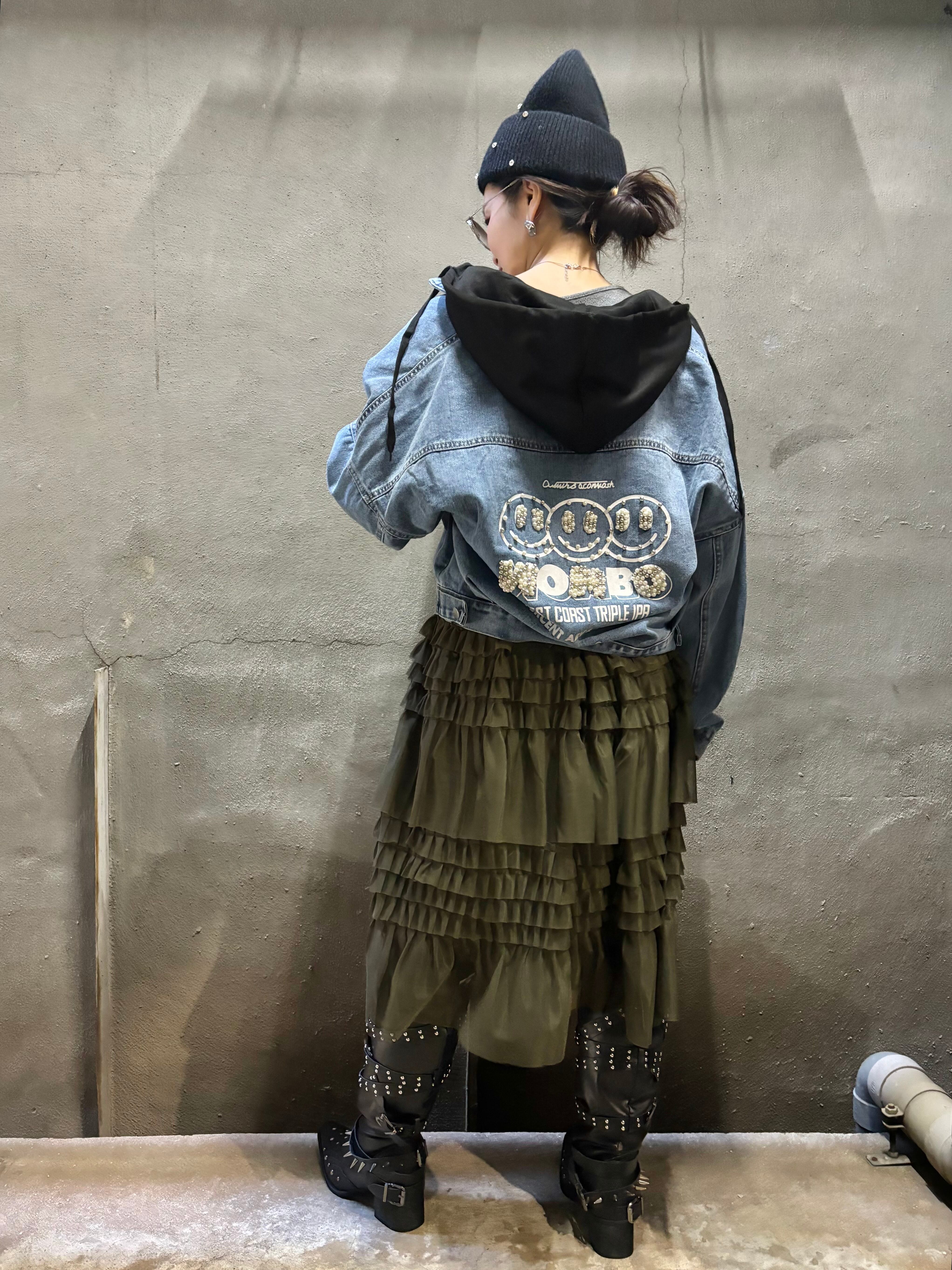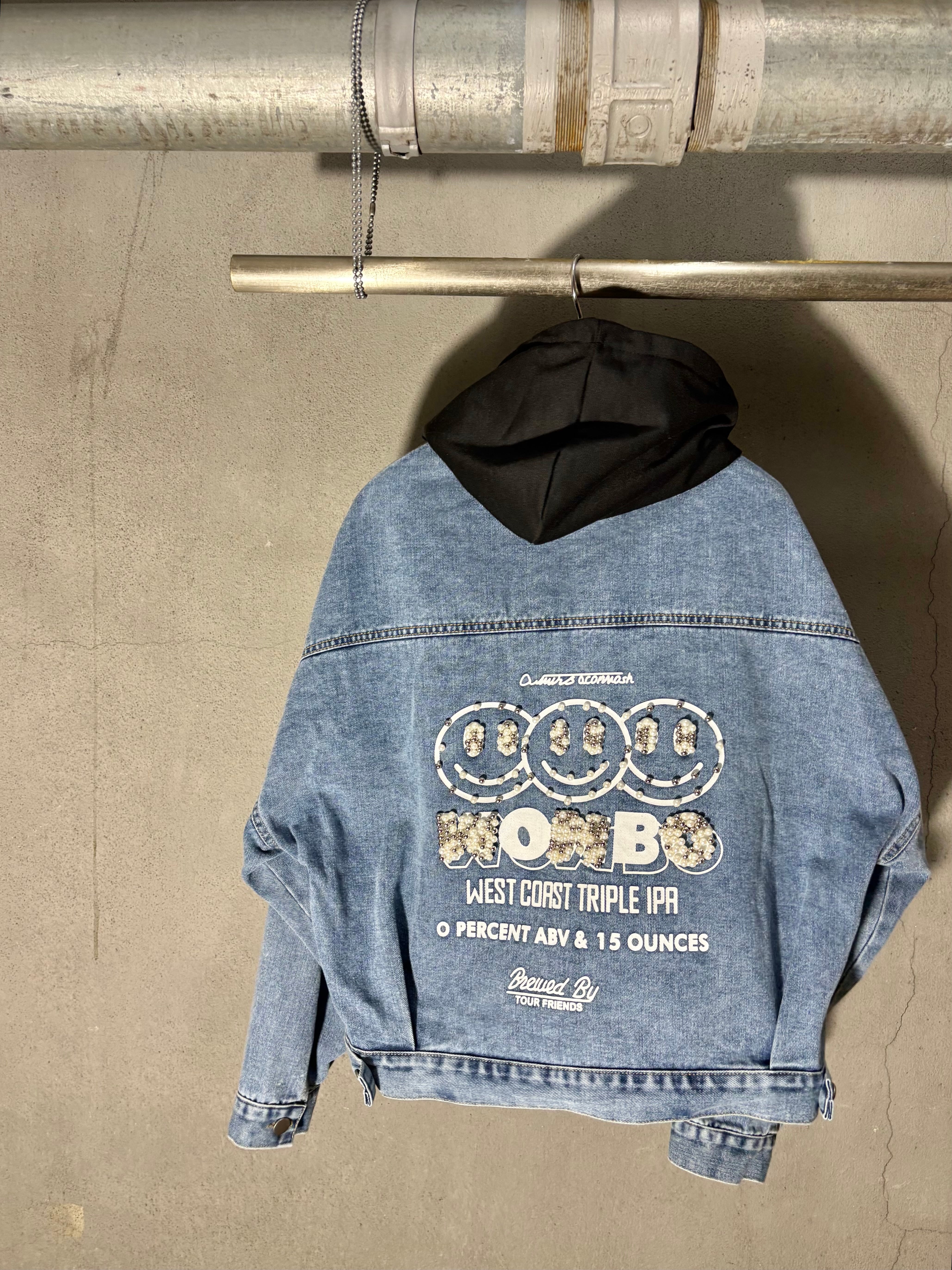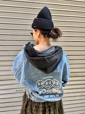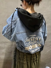 back smiley design hoodie denim jacket デニム ジャケット スマイリー ニコちゃん デコレーション フーディー フード