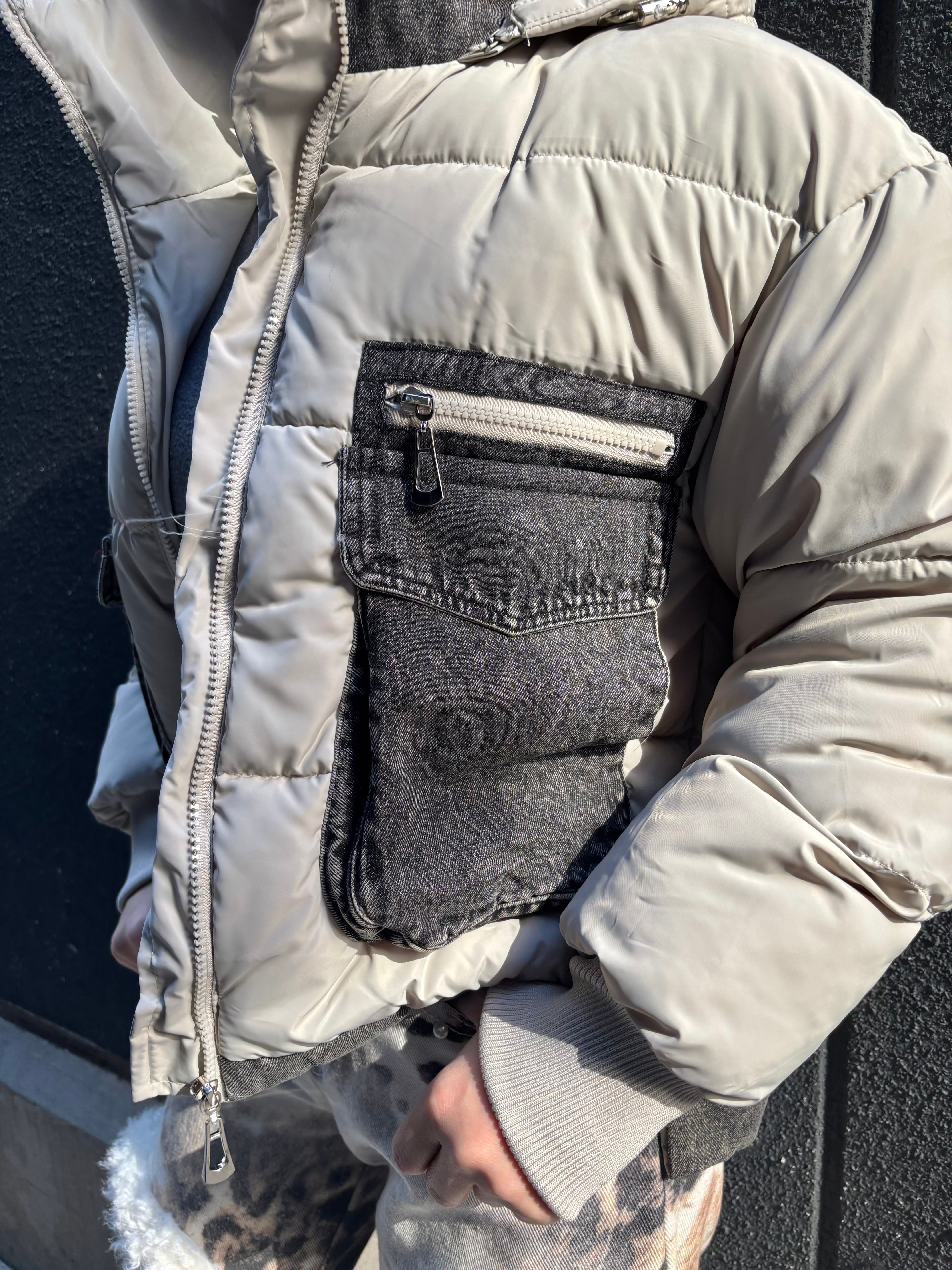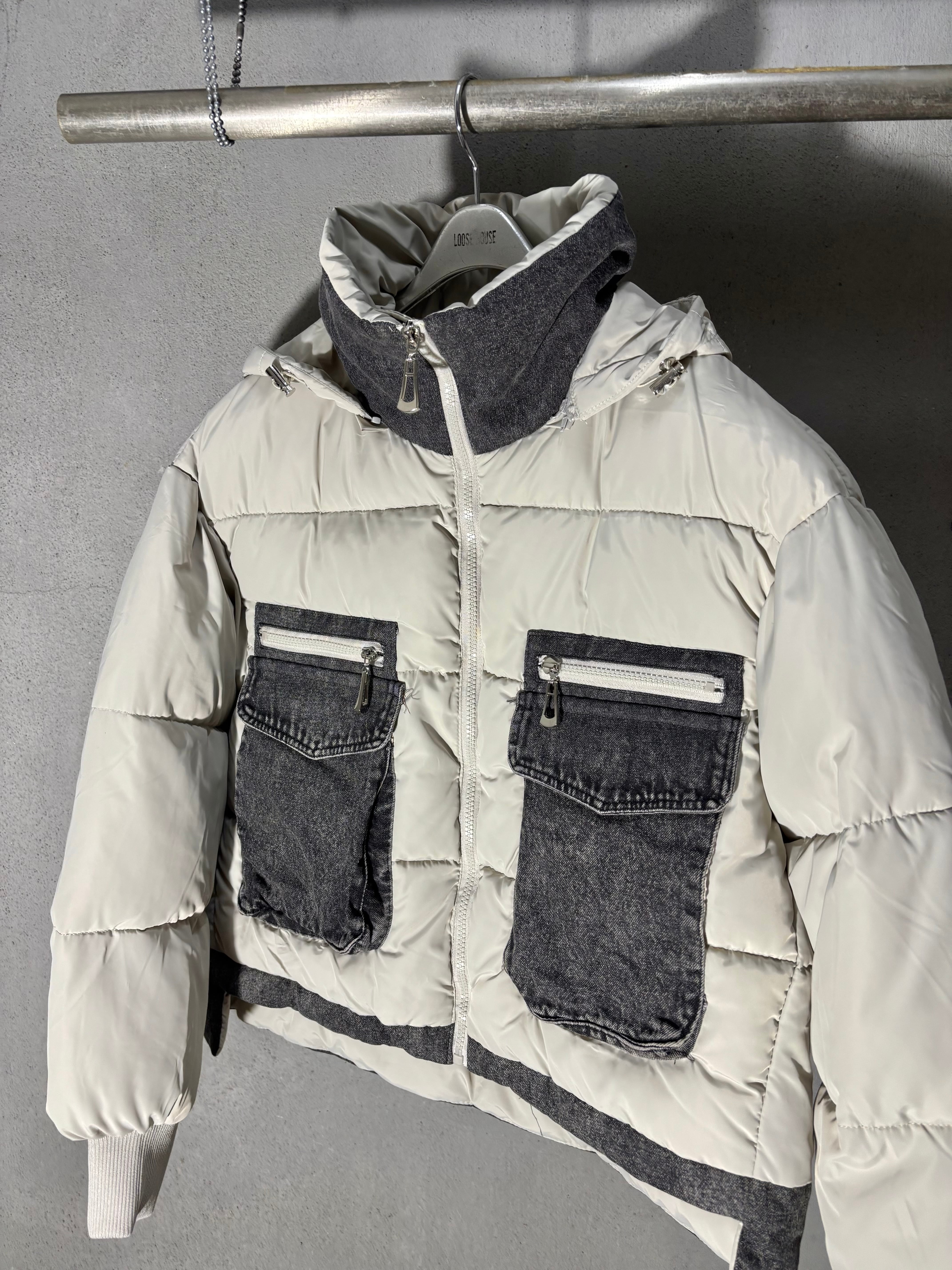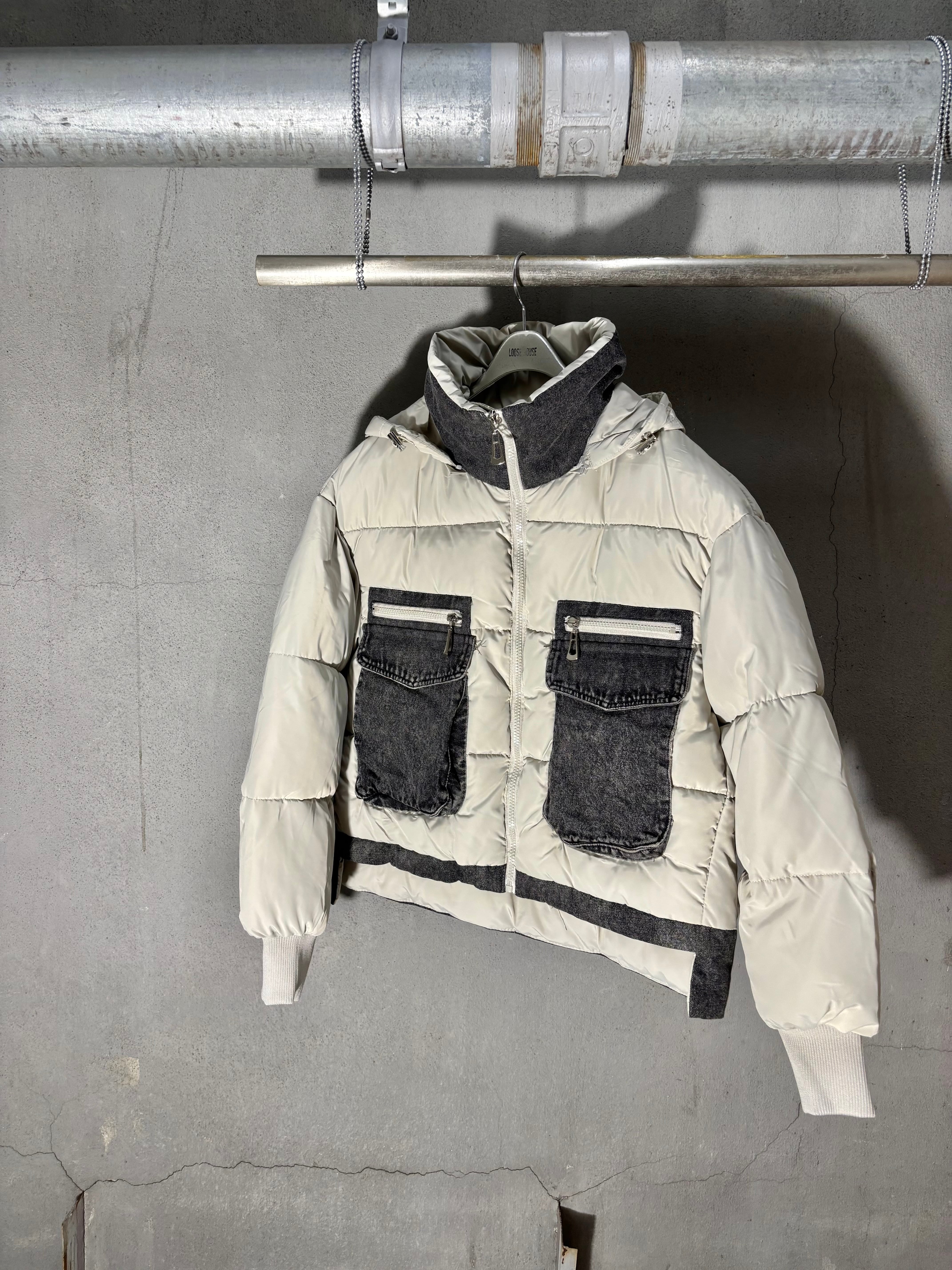 denim mix padded design jacket ジャケット デニム 中綿 切替デザイン アウター 防寒