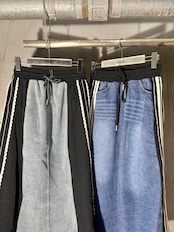 デニムと異素材を組み合わせた斬新なデザインが特徴の、スカートです。