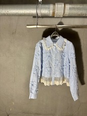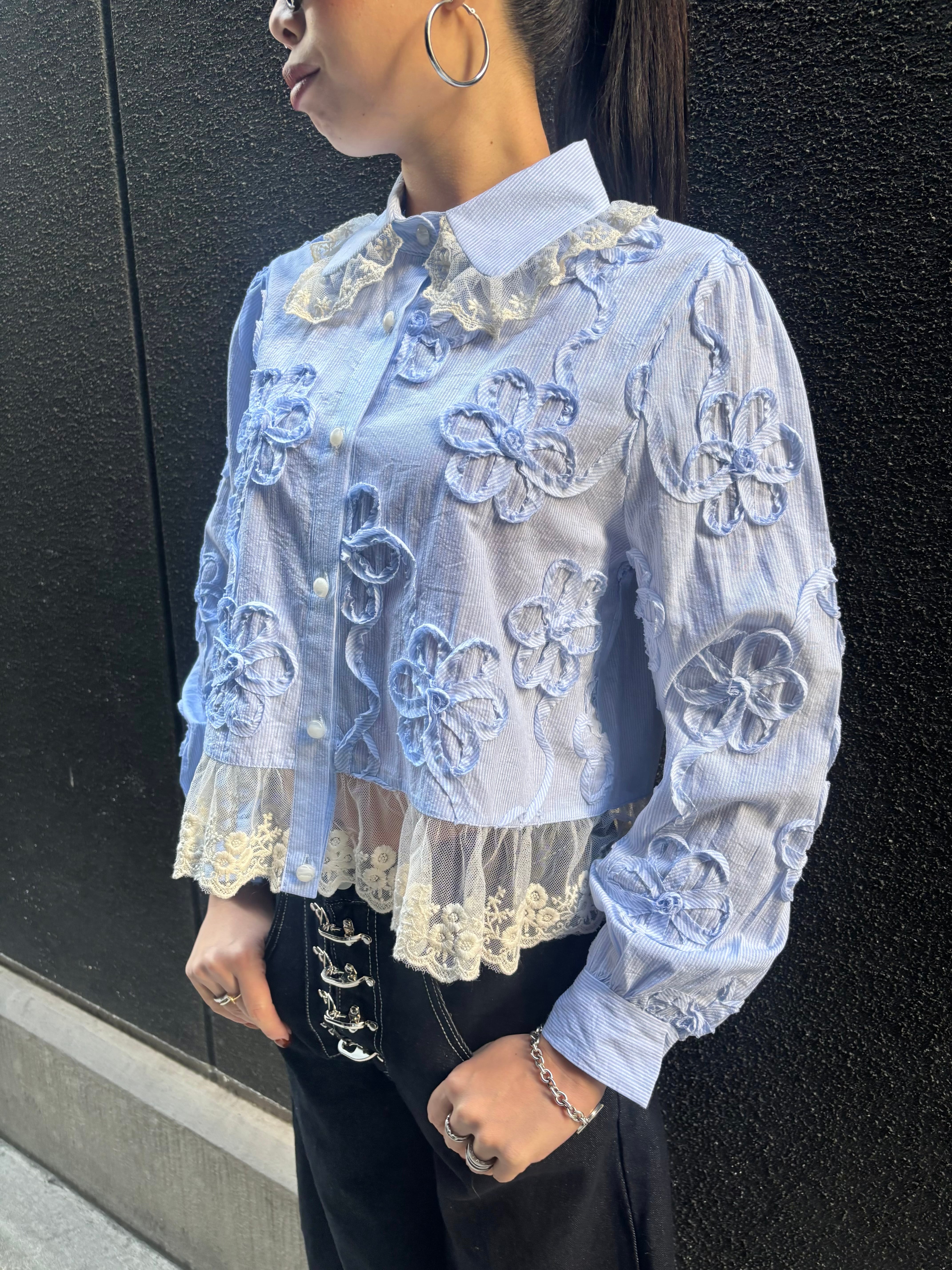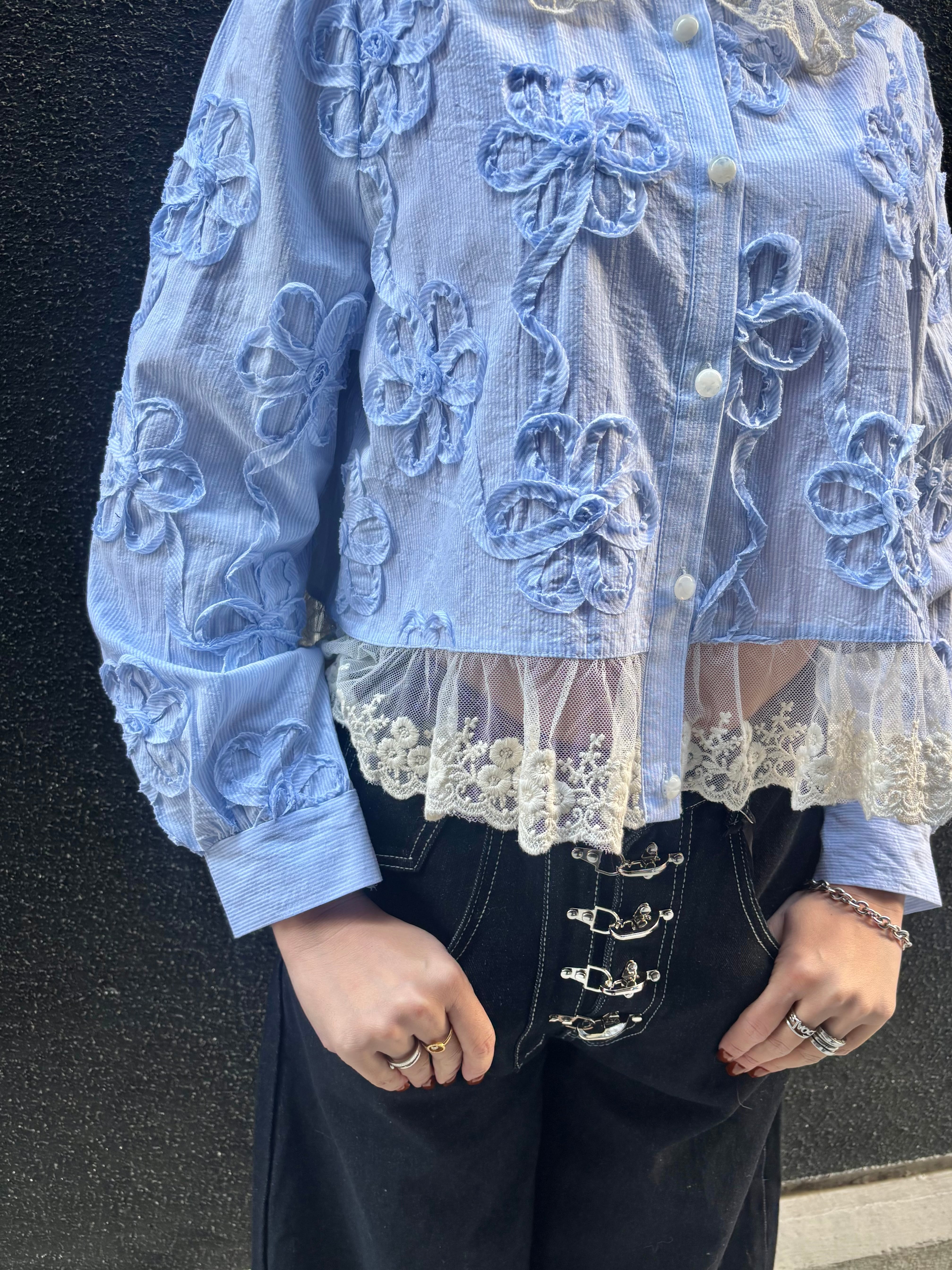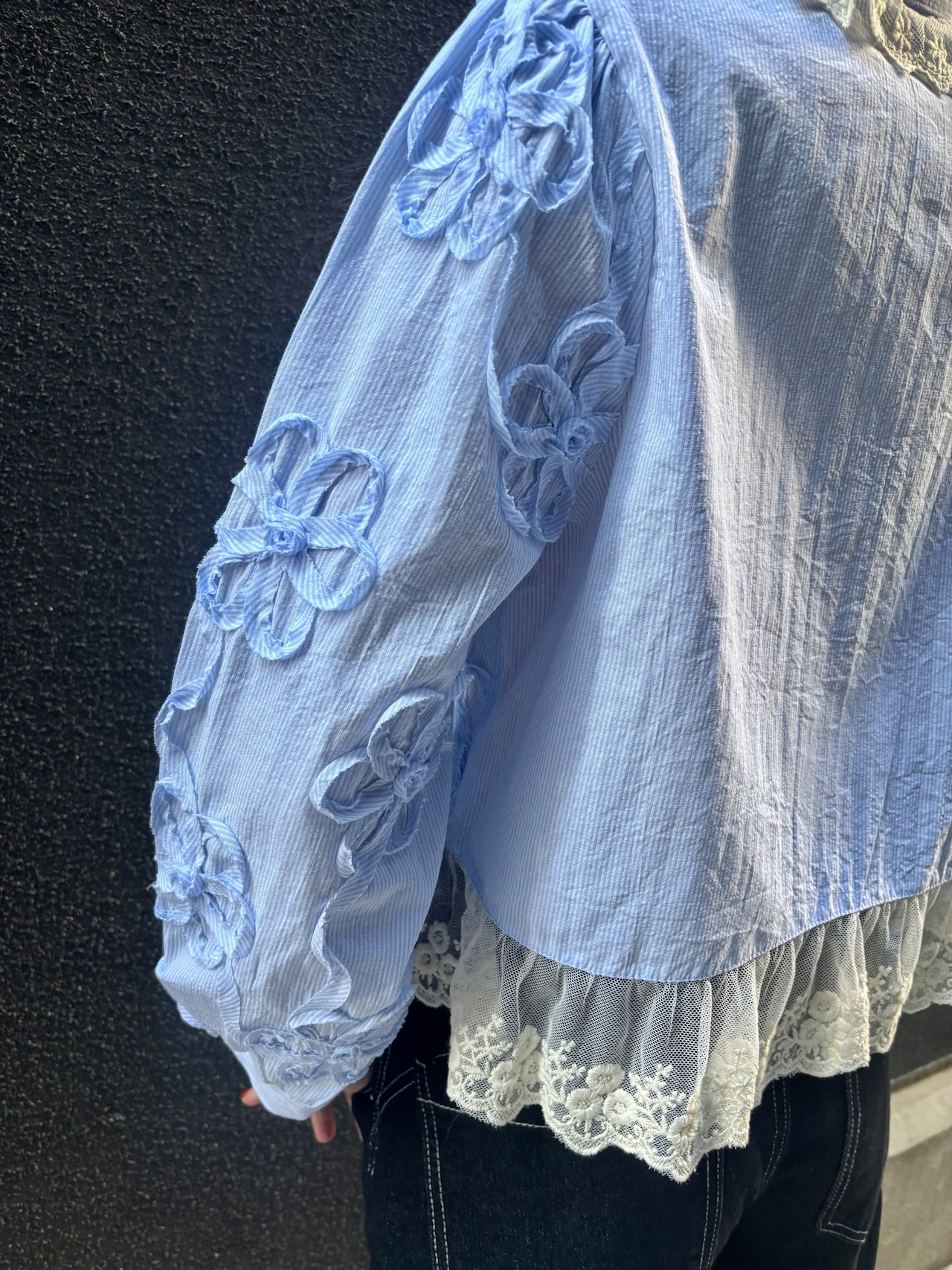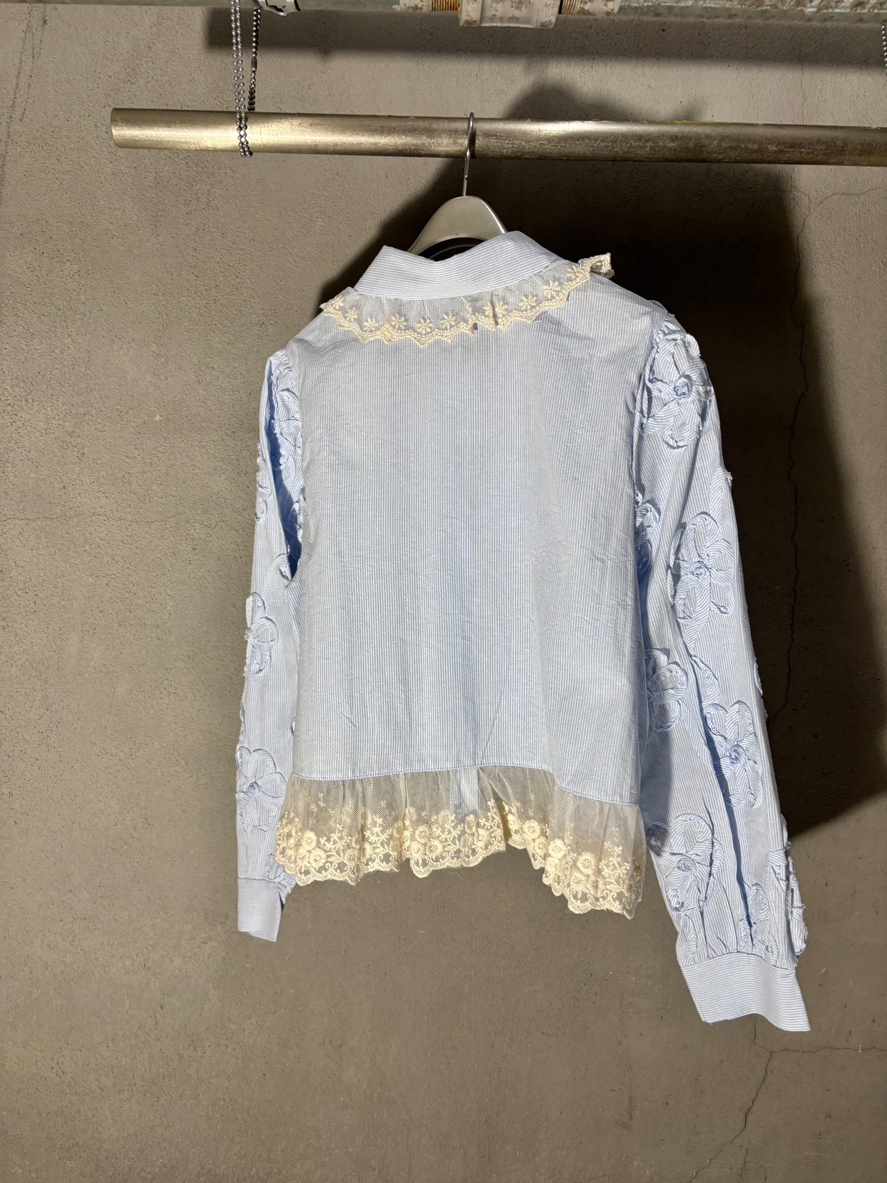 blue stripe code embroidery lace design shirt シャツ ストライプ レース コード 刺繍