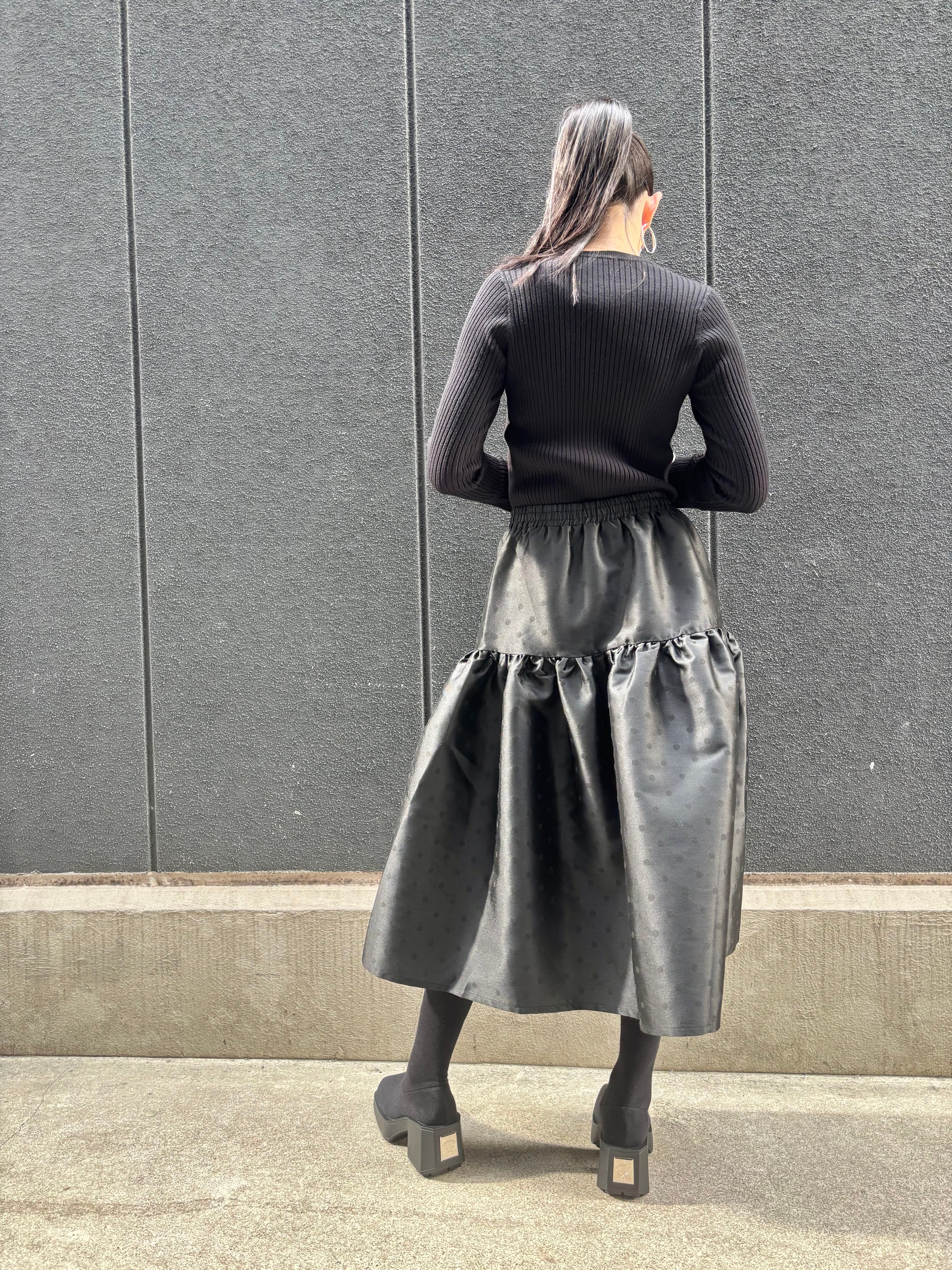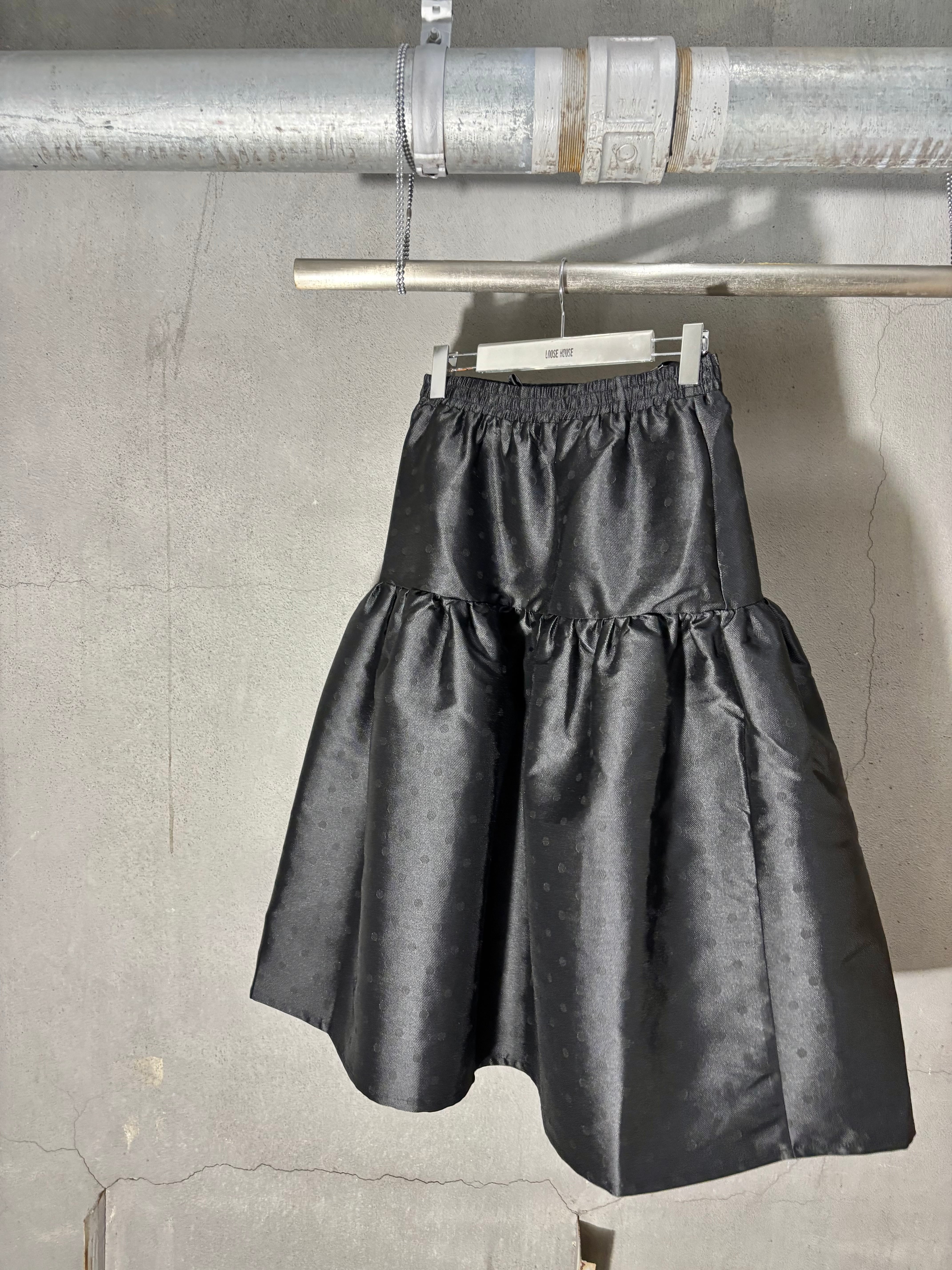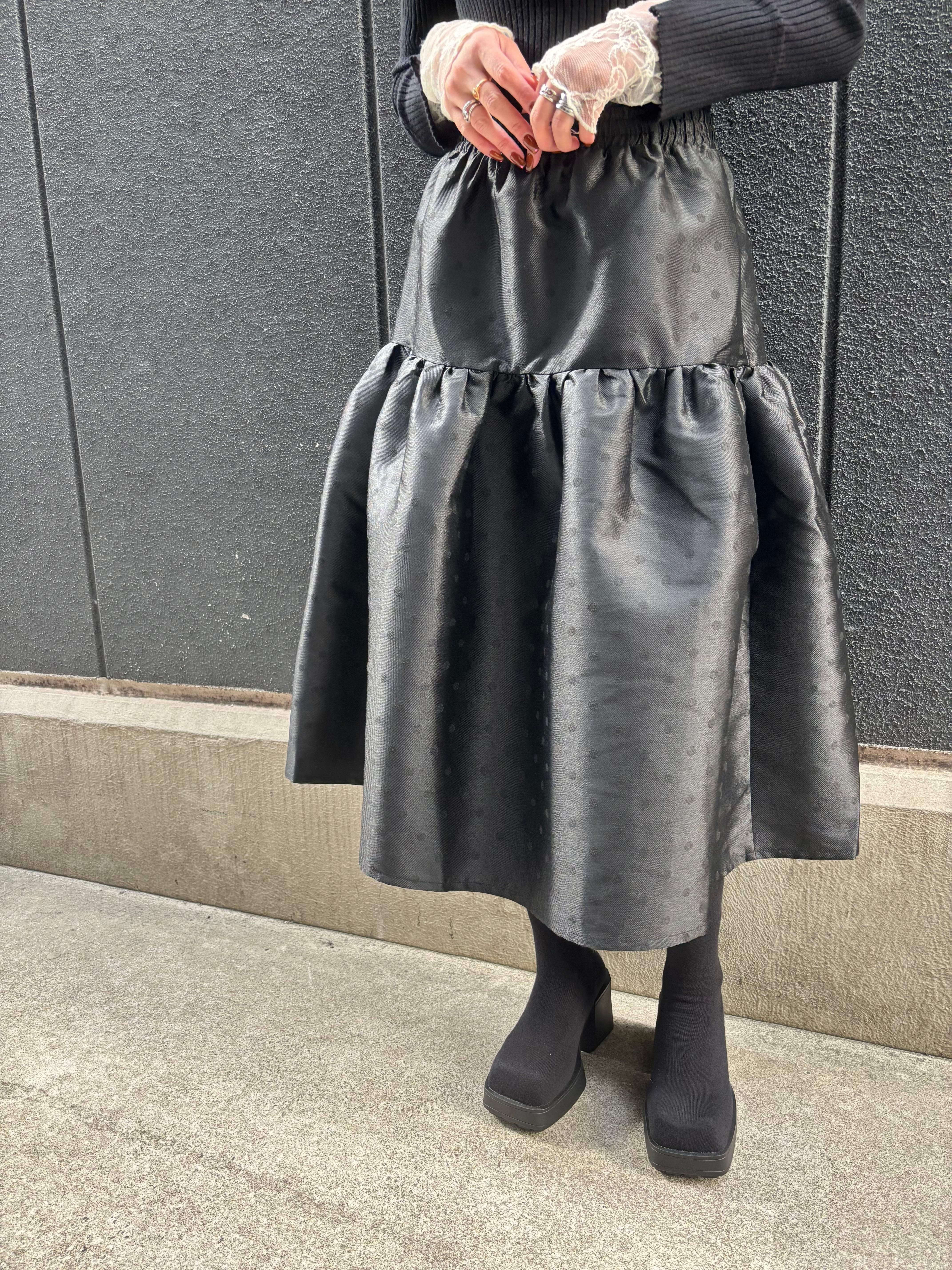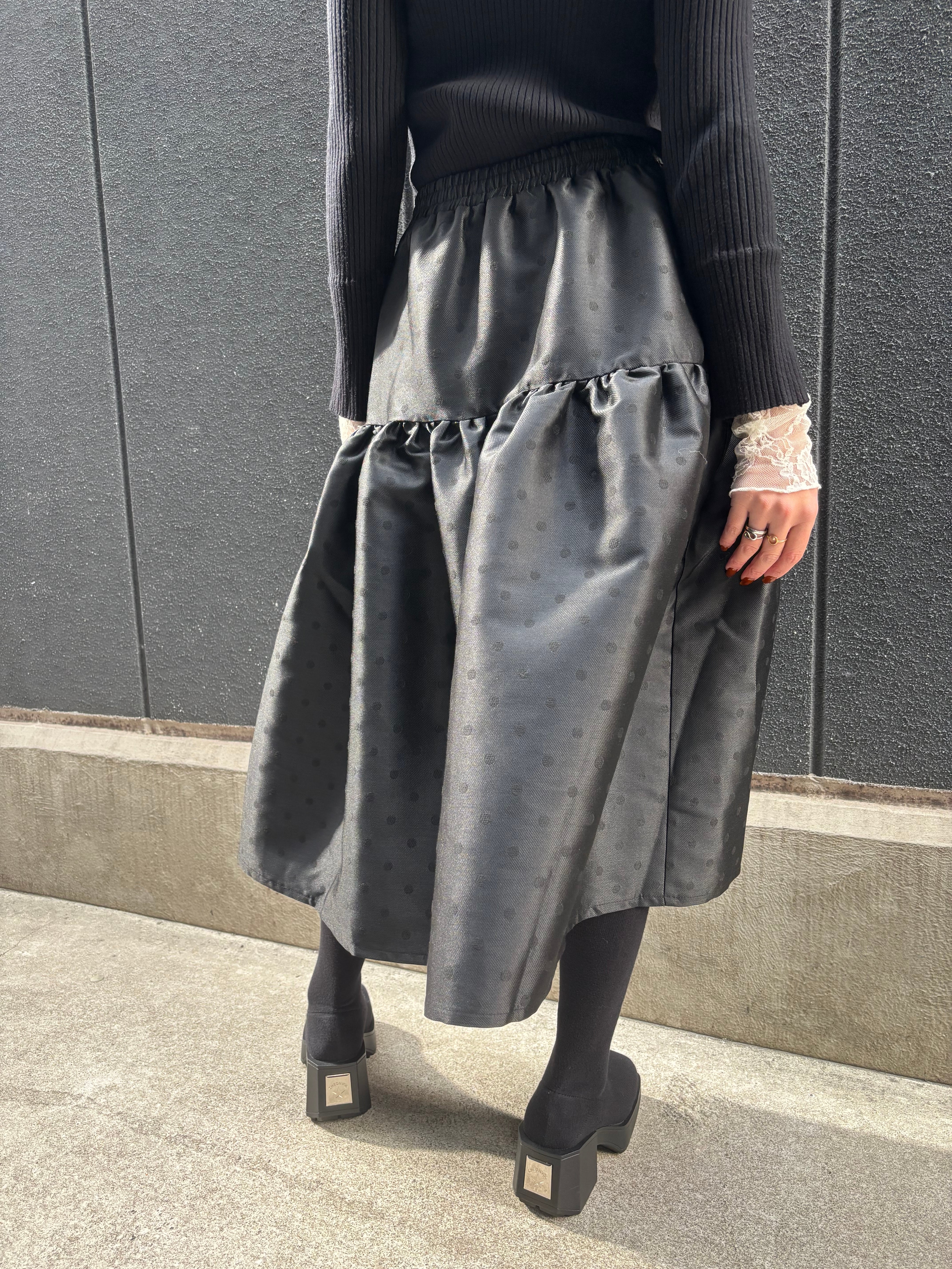 shantung dot gather volume design black skirt スカート ドット ギャザー ゴムウエスト ブラック 黒