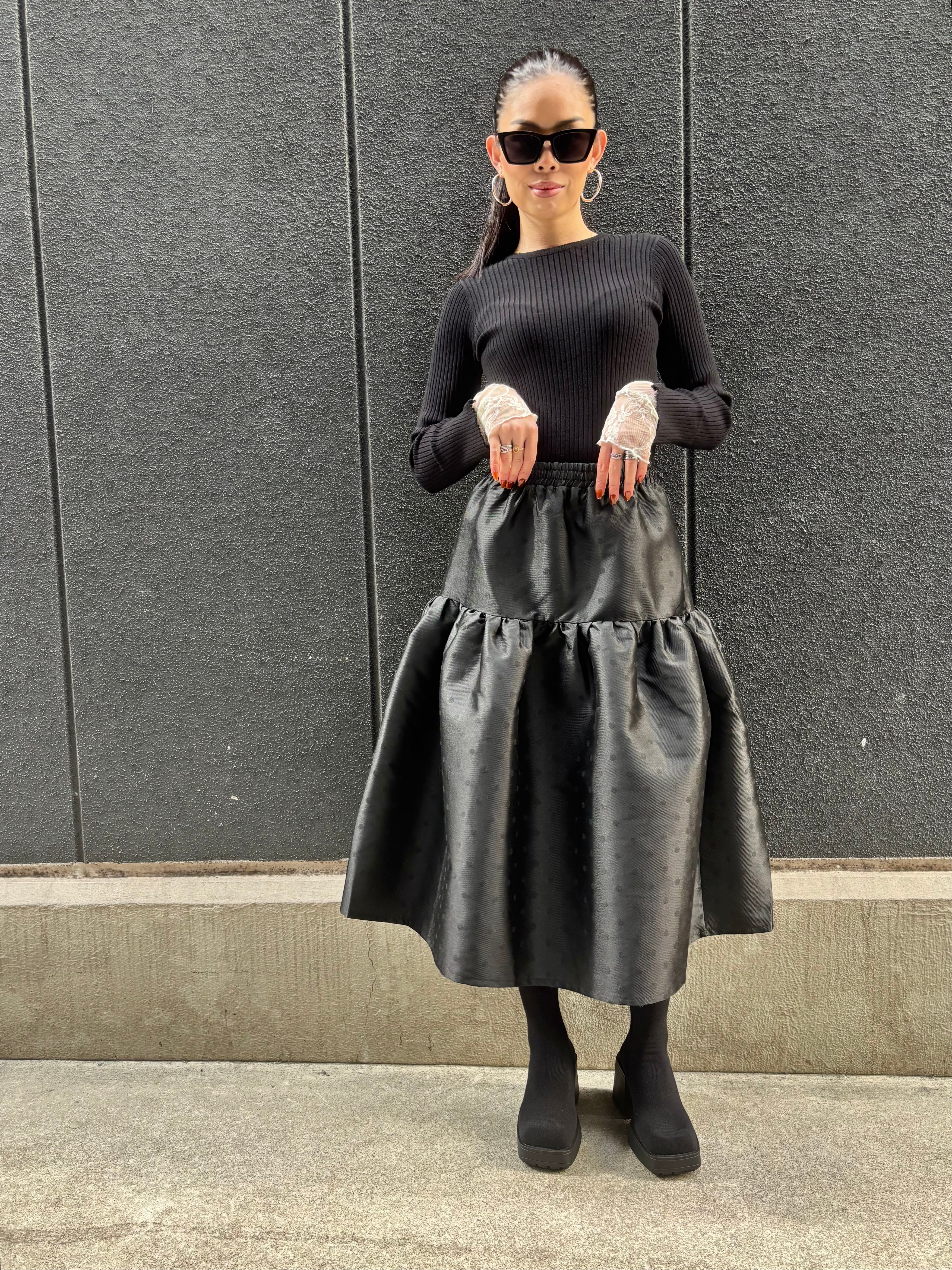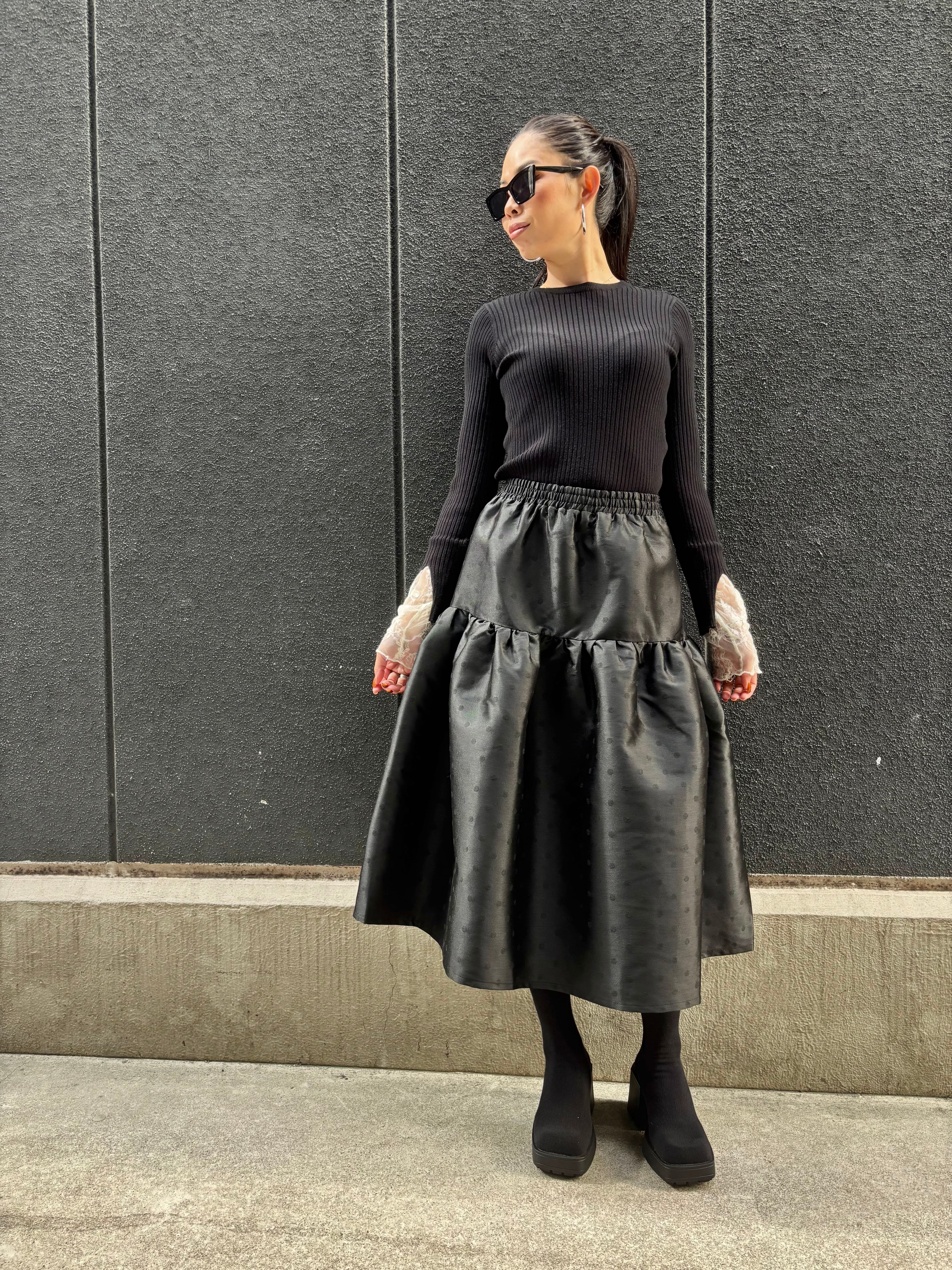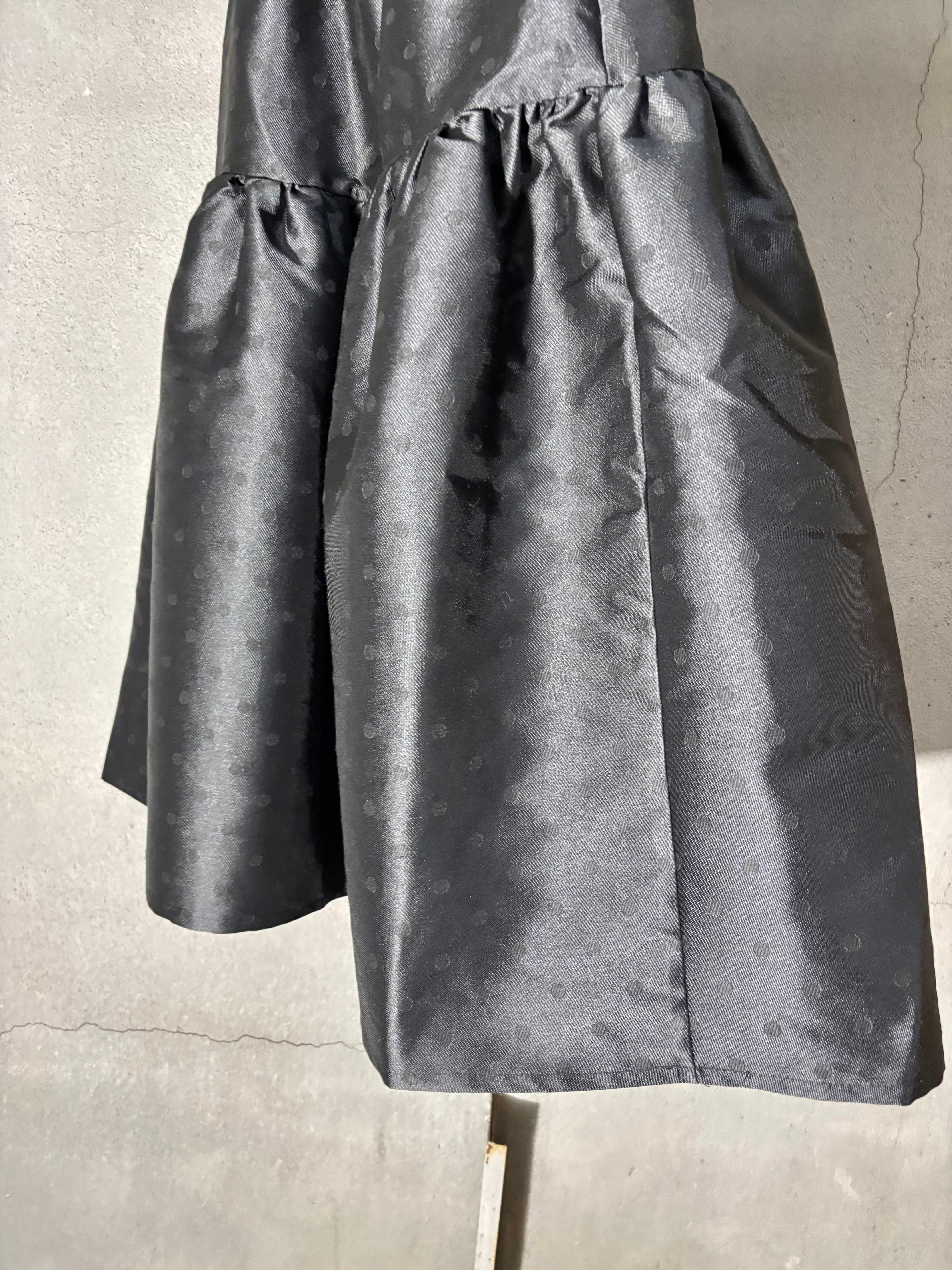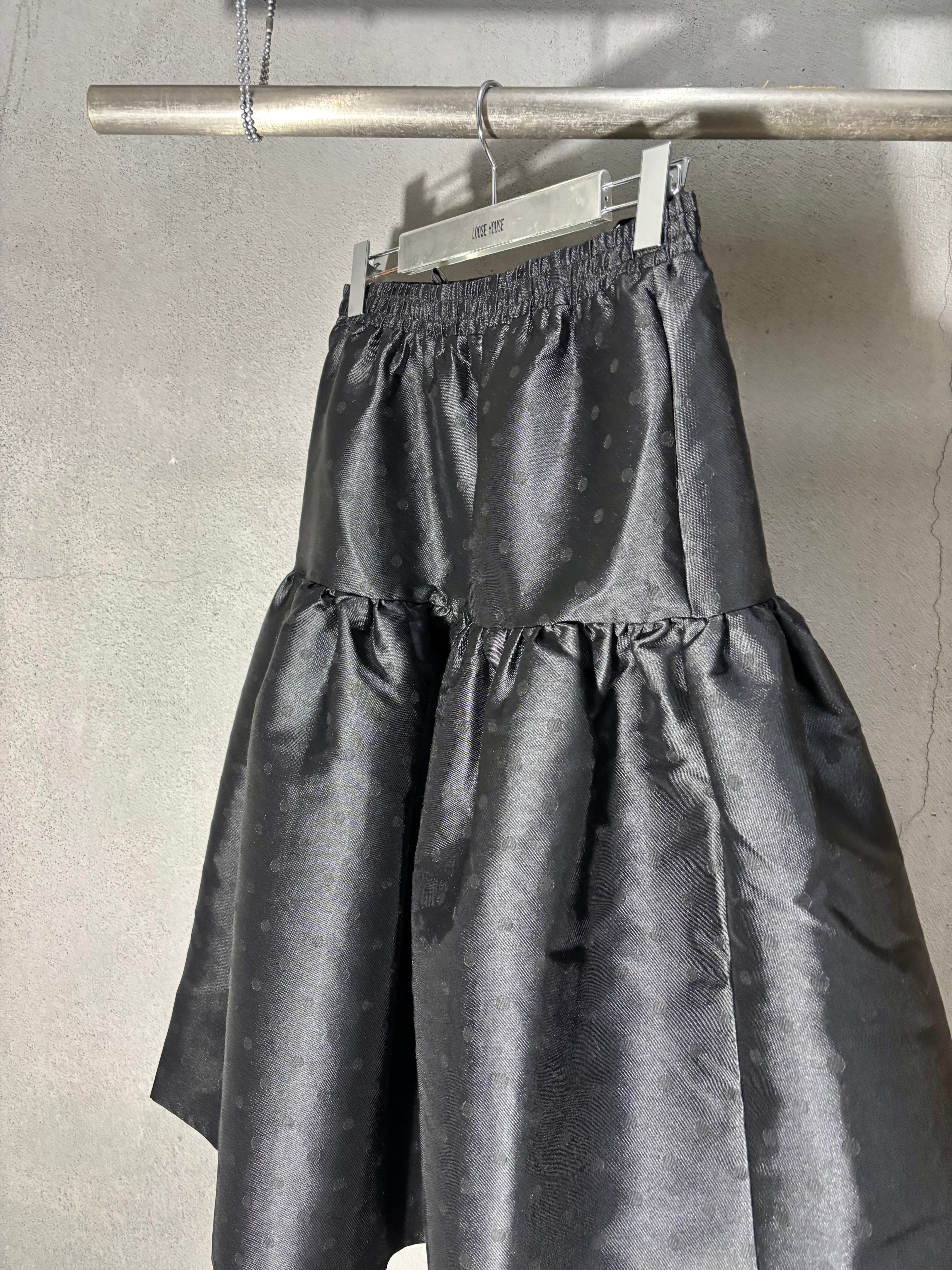 shantung dot gather volume design black skirt スカート ドット ギャザー ゴムウエスト ブラック 黒