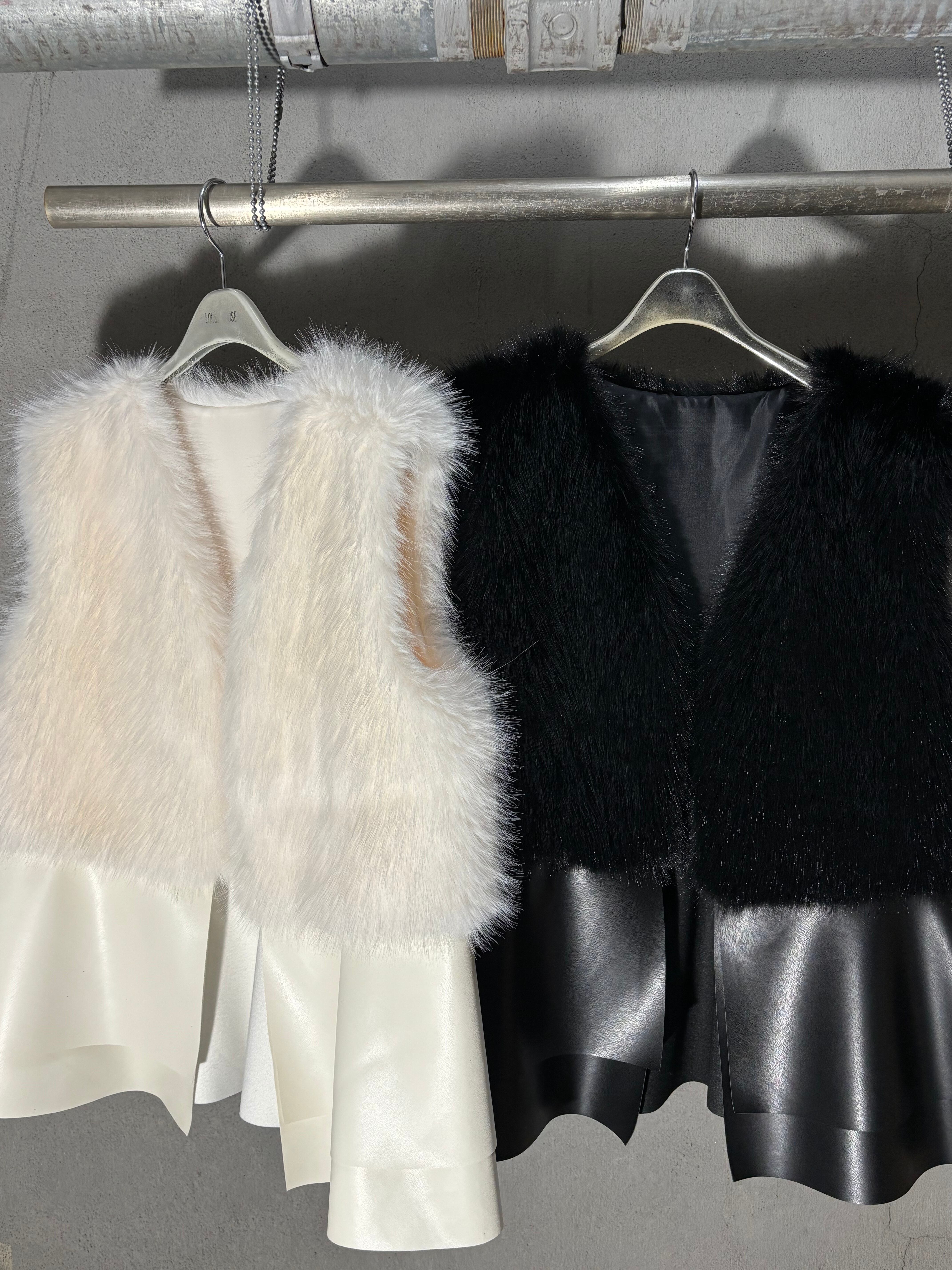 eco fur × eco leather design vest ベスト ファーベスト エコレザー フェイクレザー 切替デザイン 重ね着