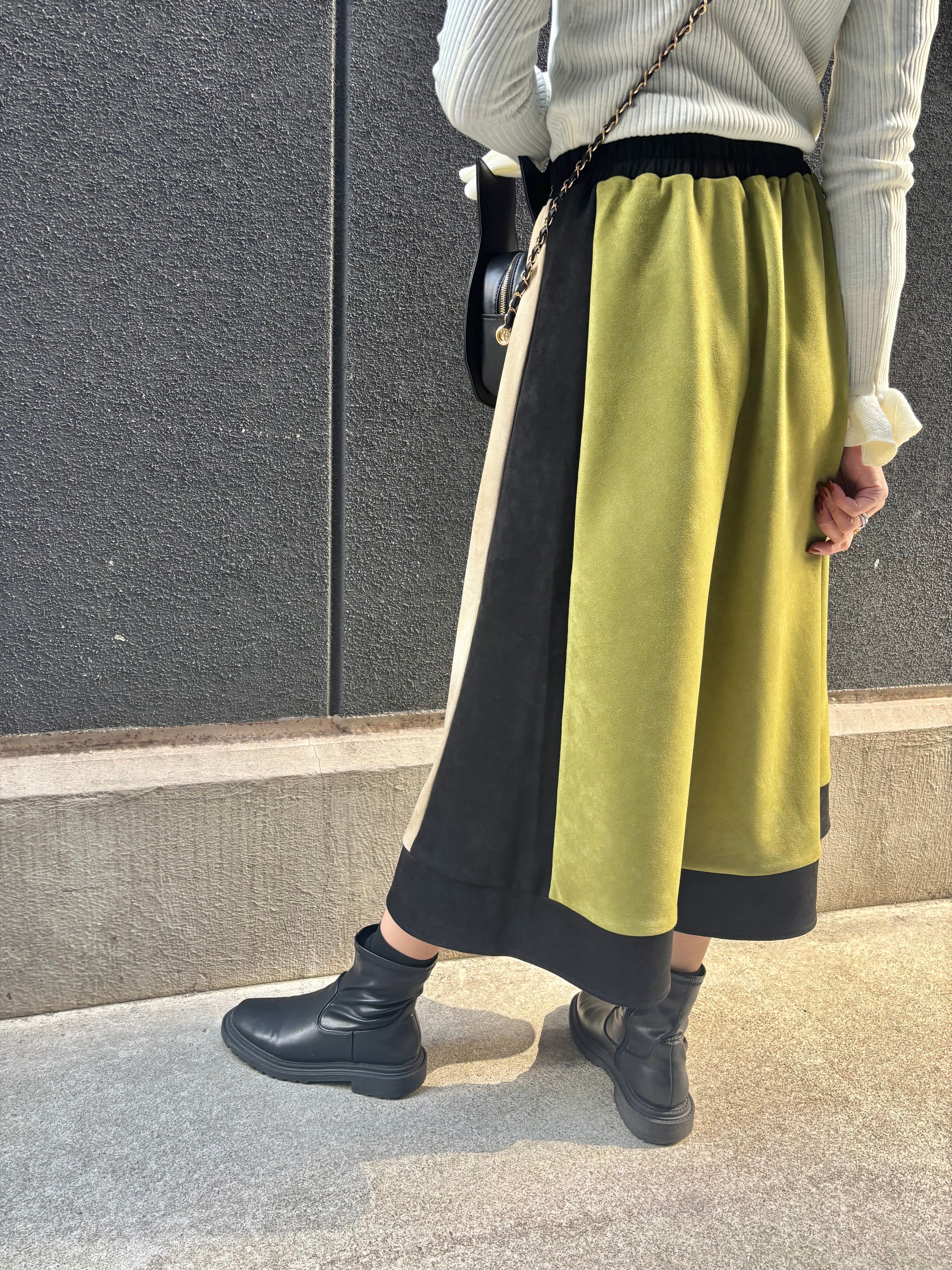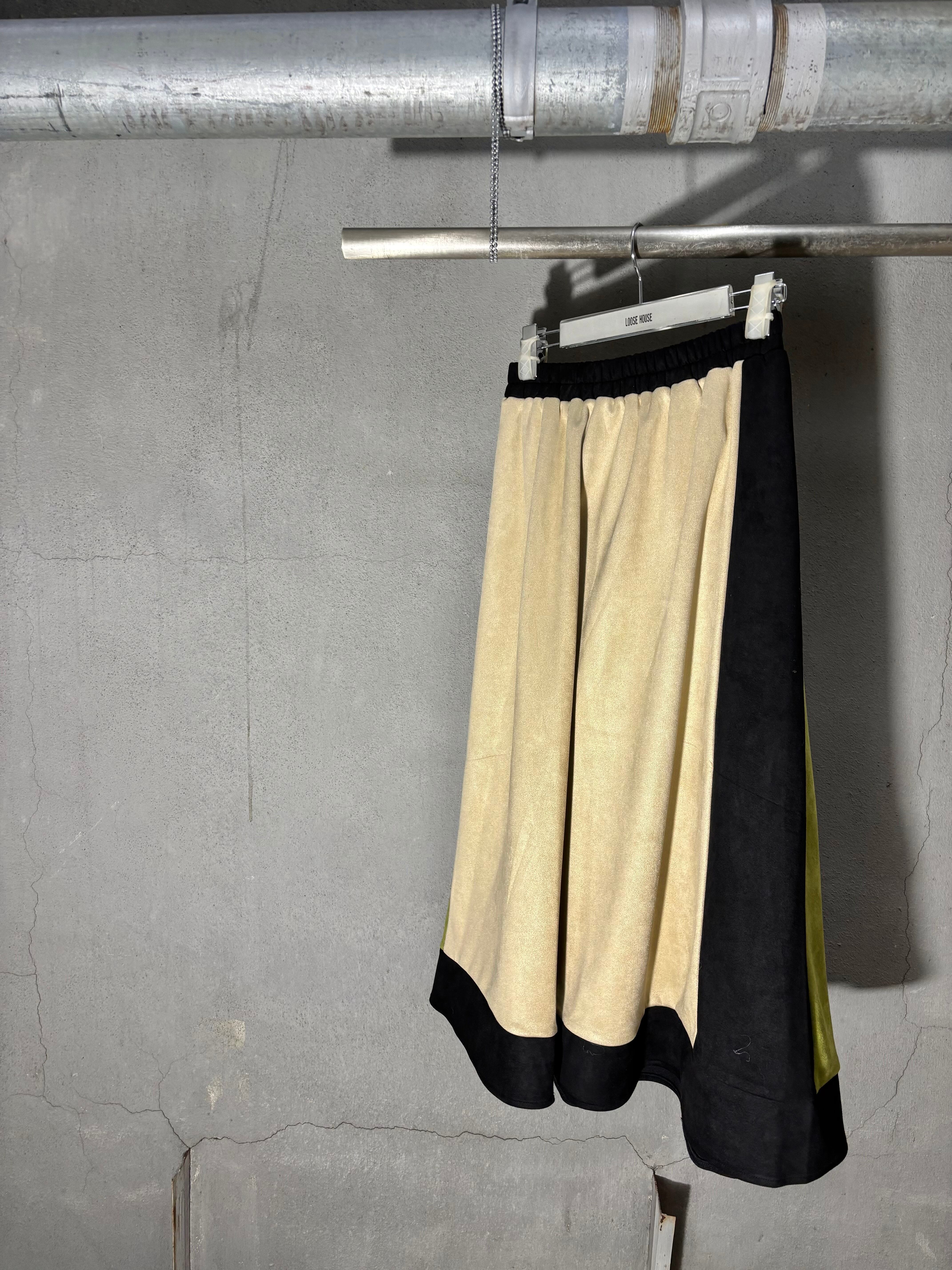 peach suede mix color skirt スカート スエード風 ゴムウエスト 配色