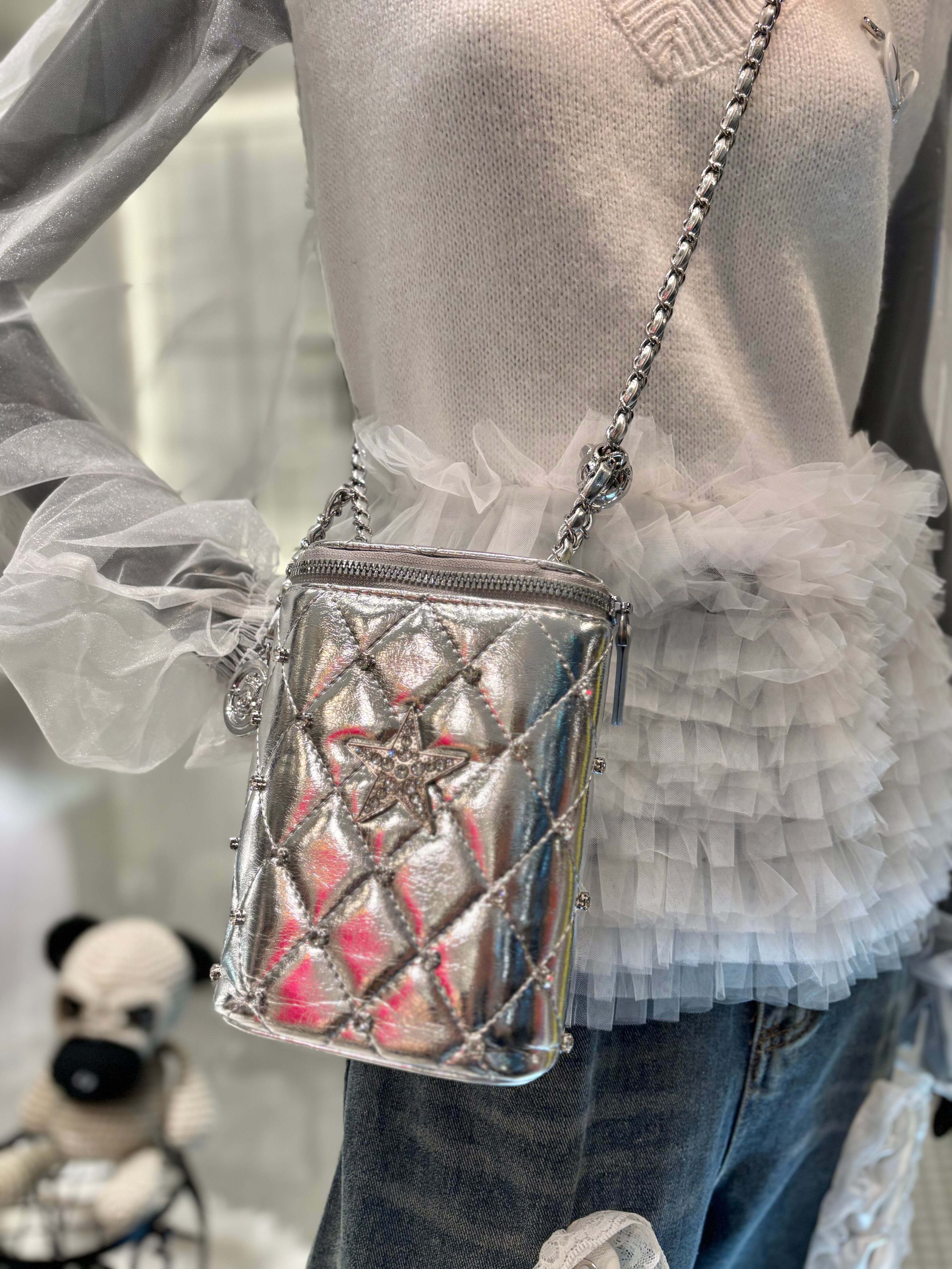 キルティングデザイン×ビジューの輝きが魅力的なミニポシェットが登場です!カッコイイスタイルを演出するこのミニバッグは、高級感のある合成皮革を使用し、普段使いから特別なイベントまで対応可能なデザインです♡