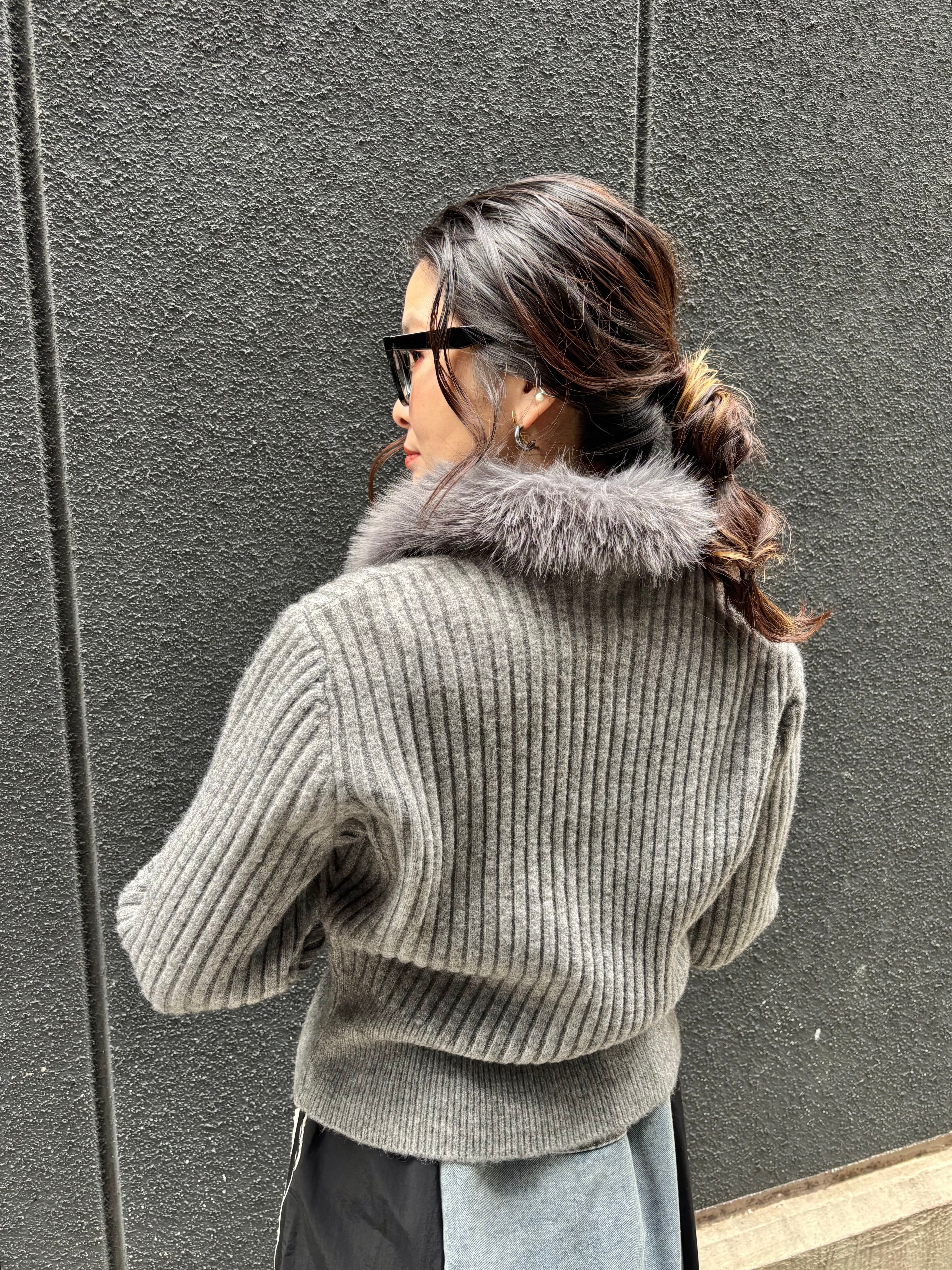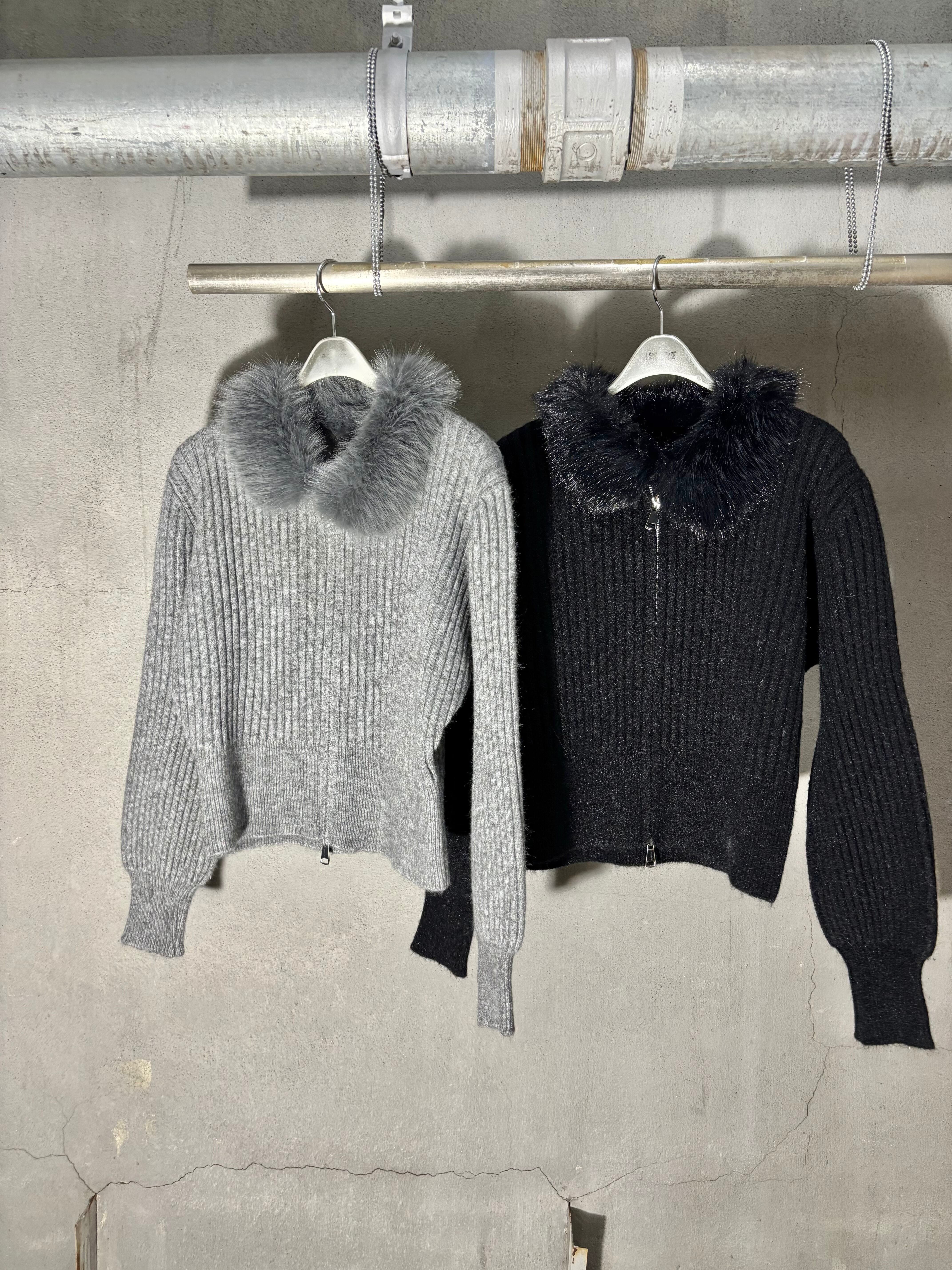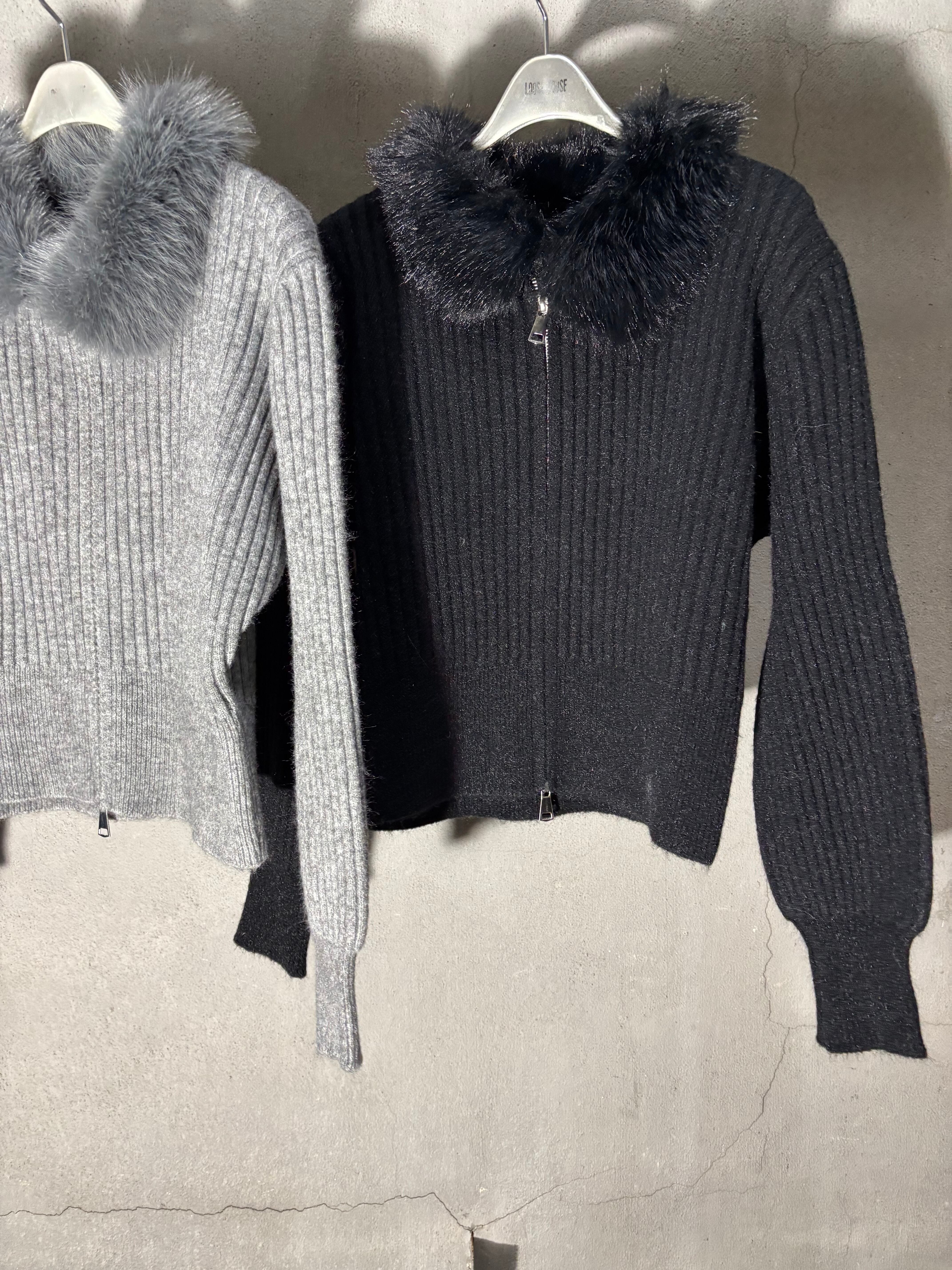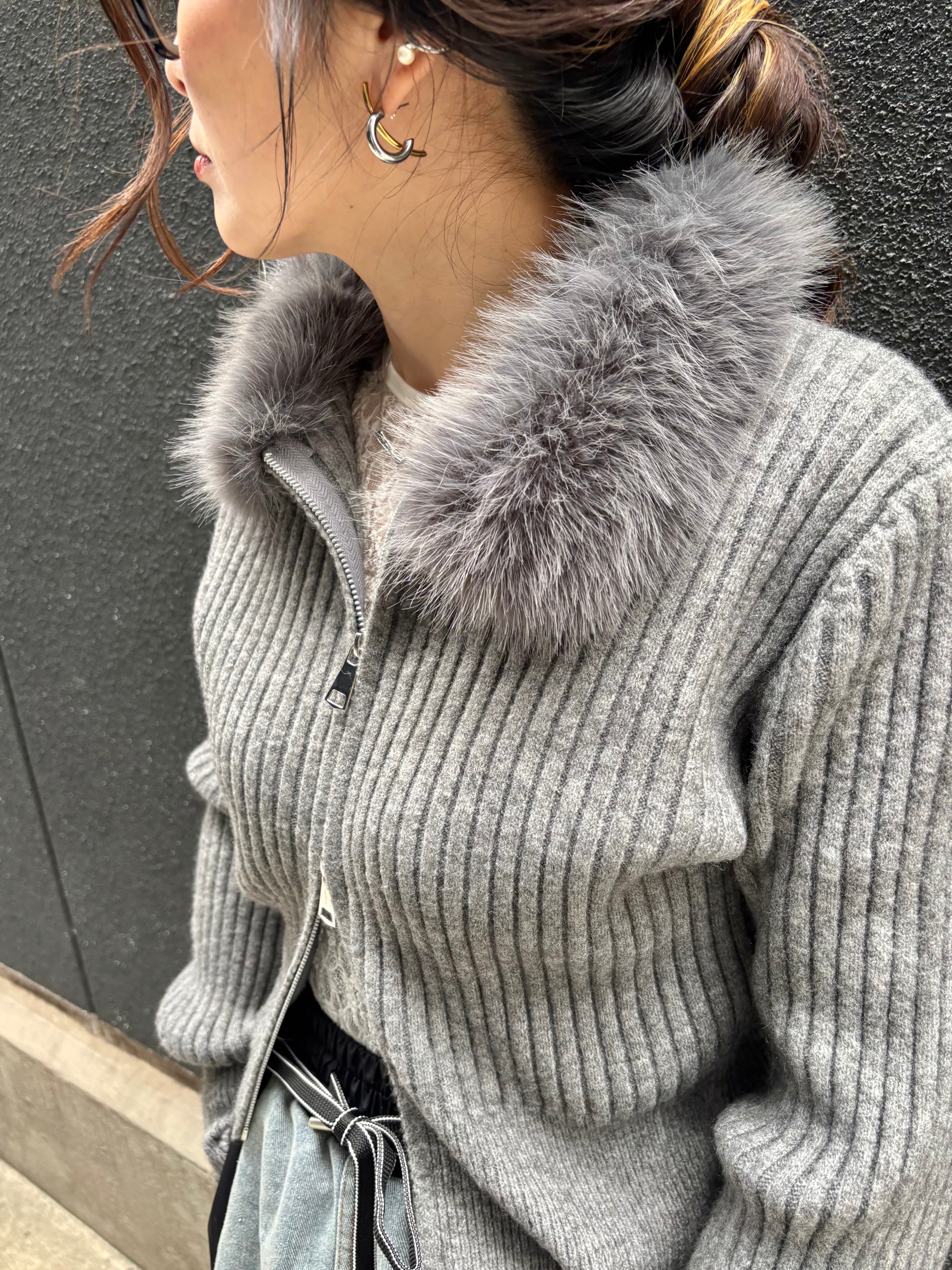 eco fur collar double zip up design jacket ニット ジャケット ファー付き ジップアップ