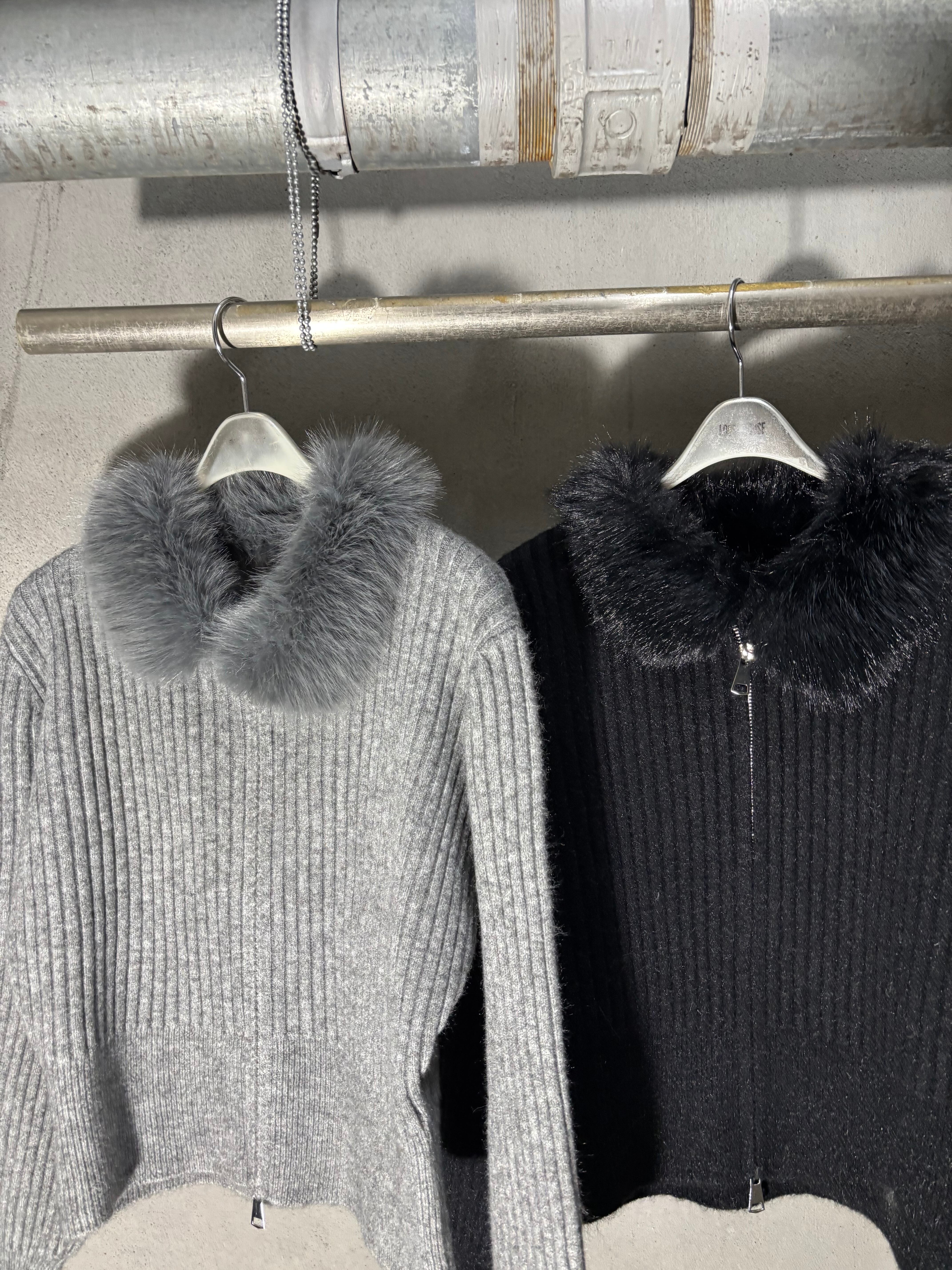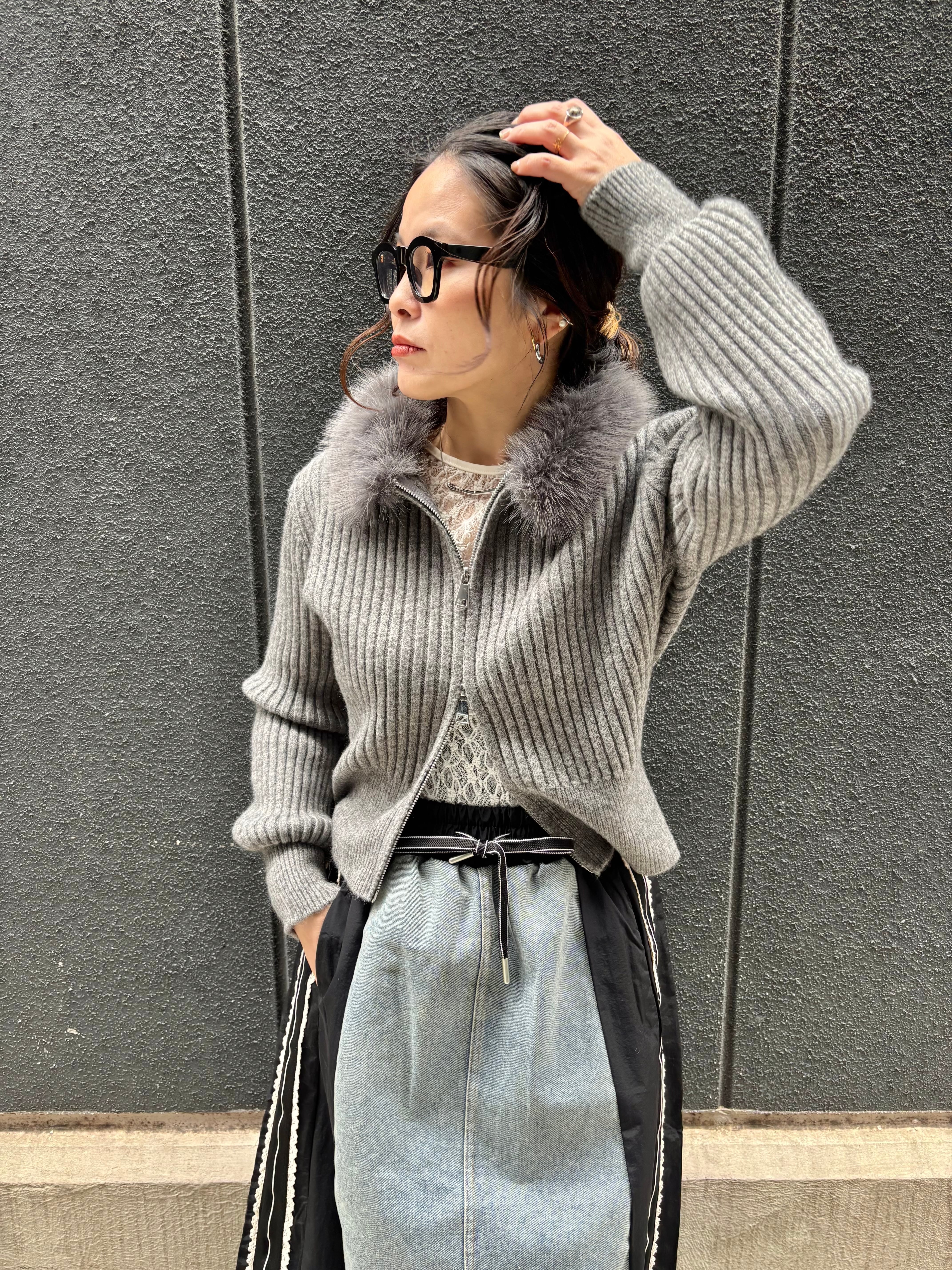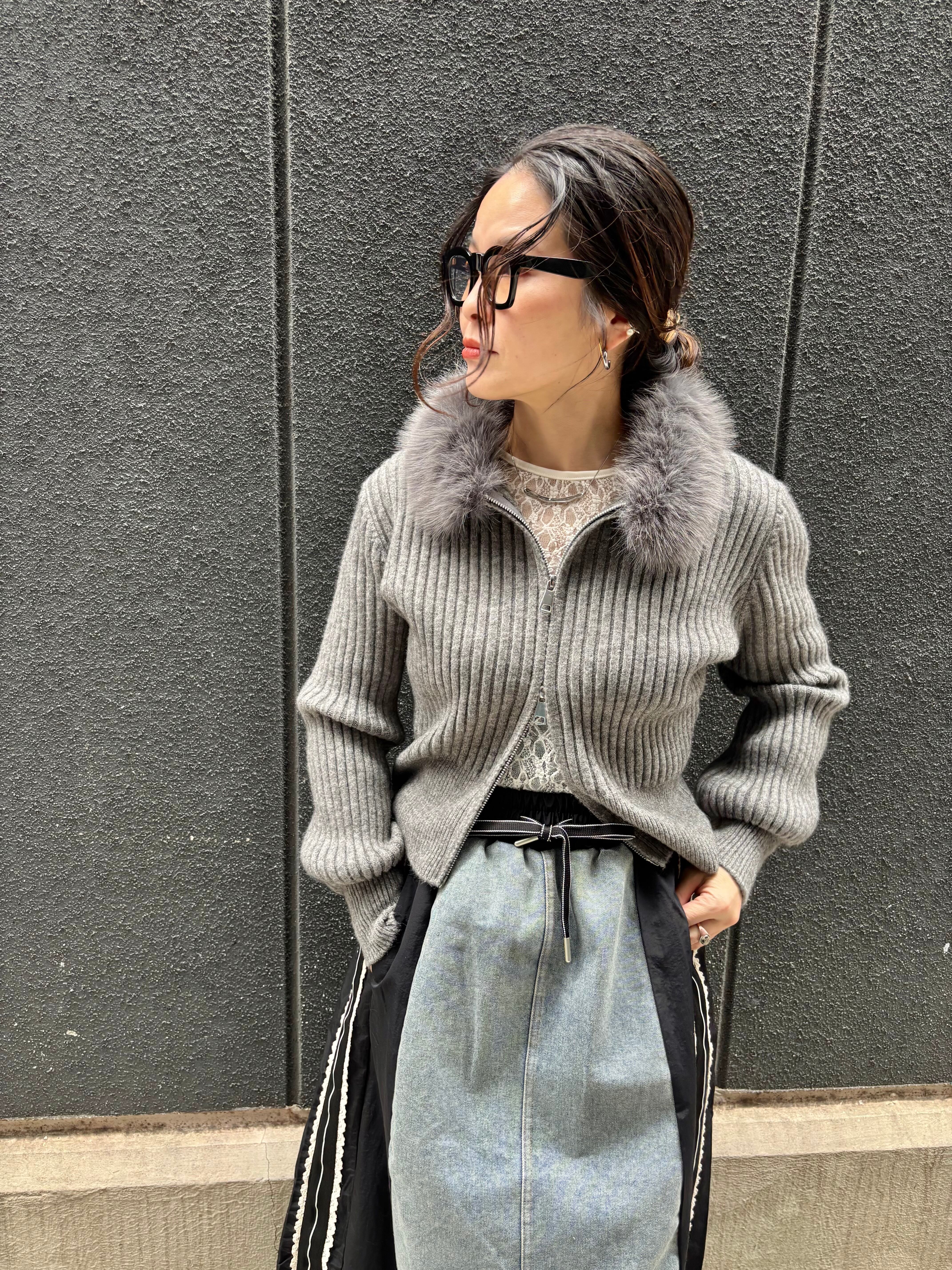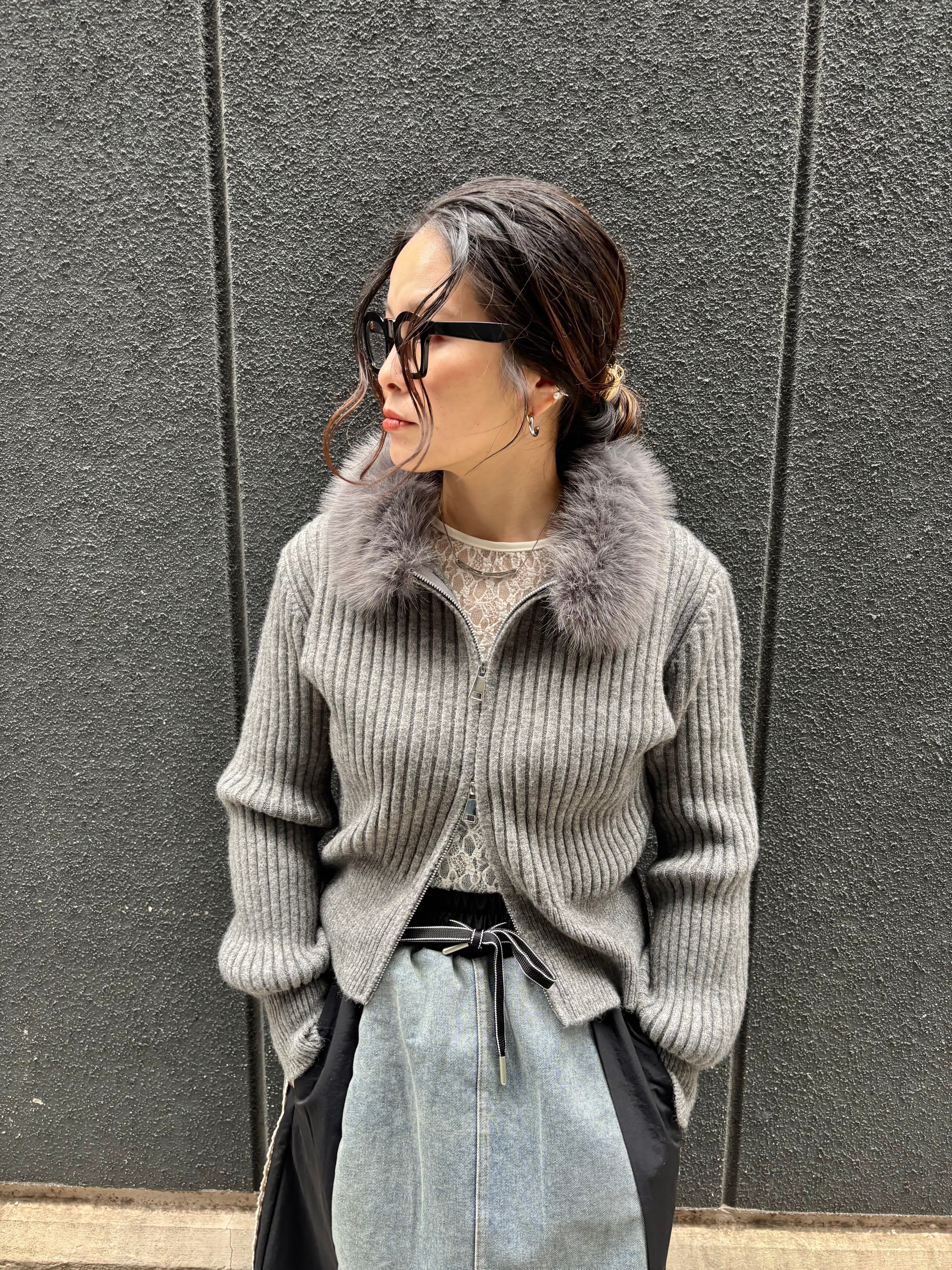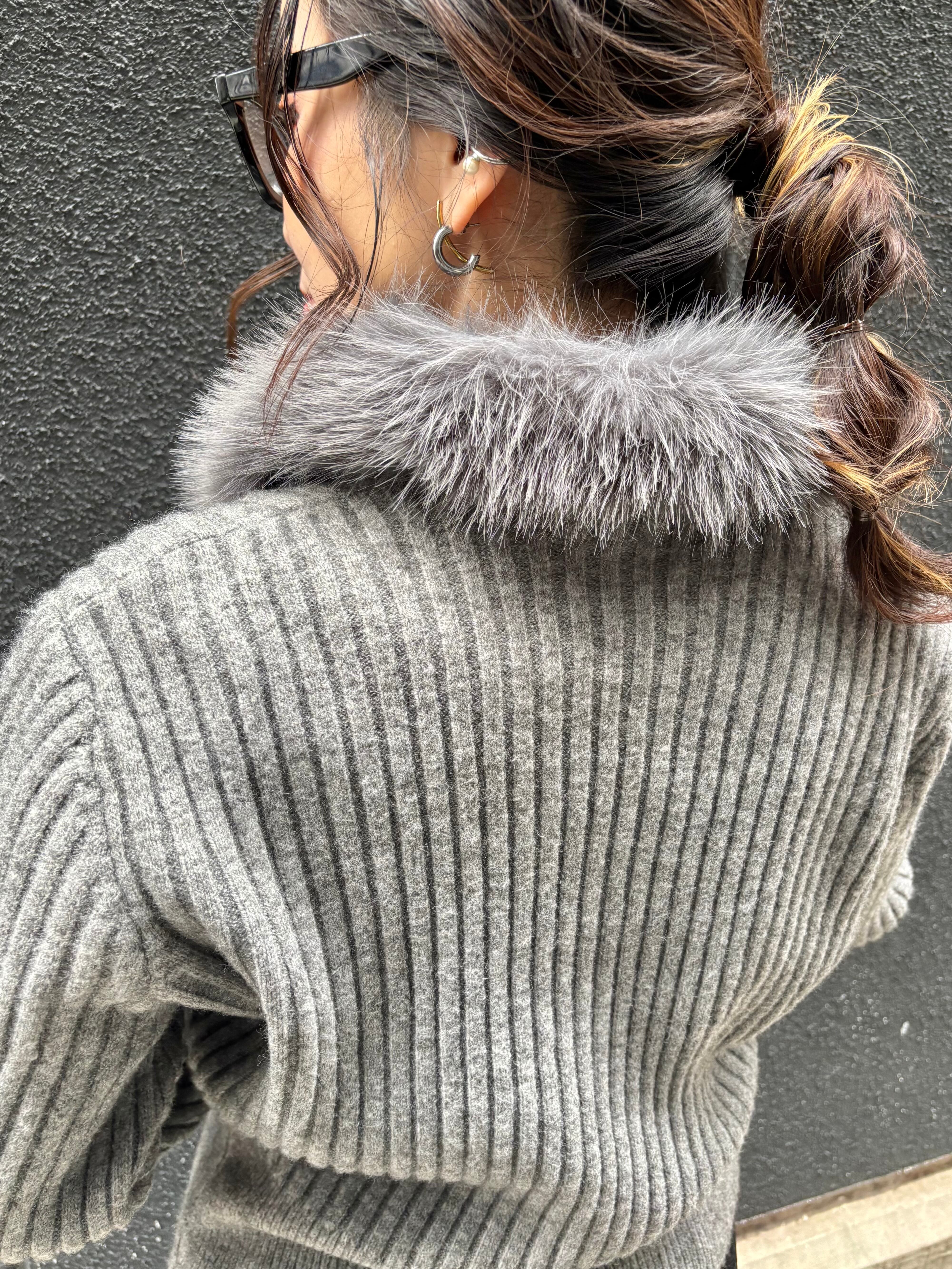eco fur collar double zip up design jacket ニット ジャケット ファー付き ジップアップ