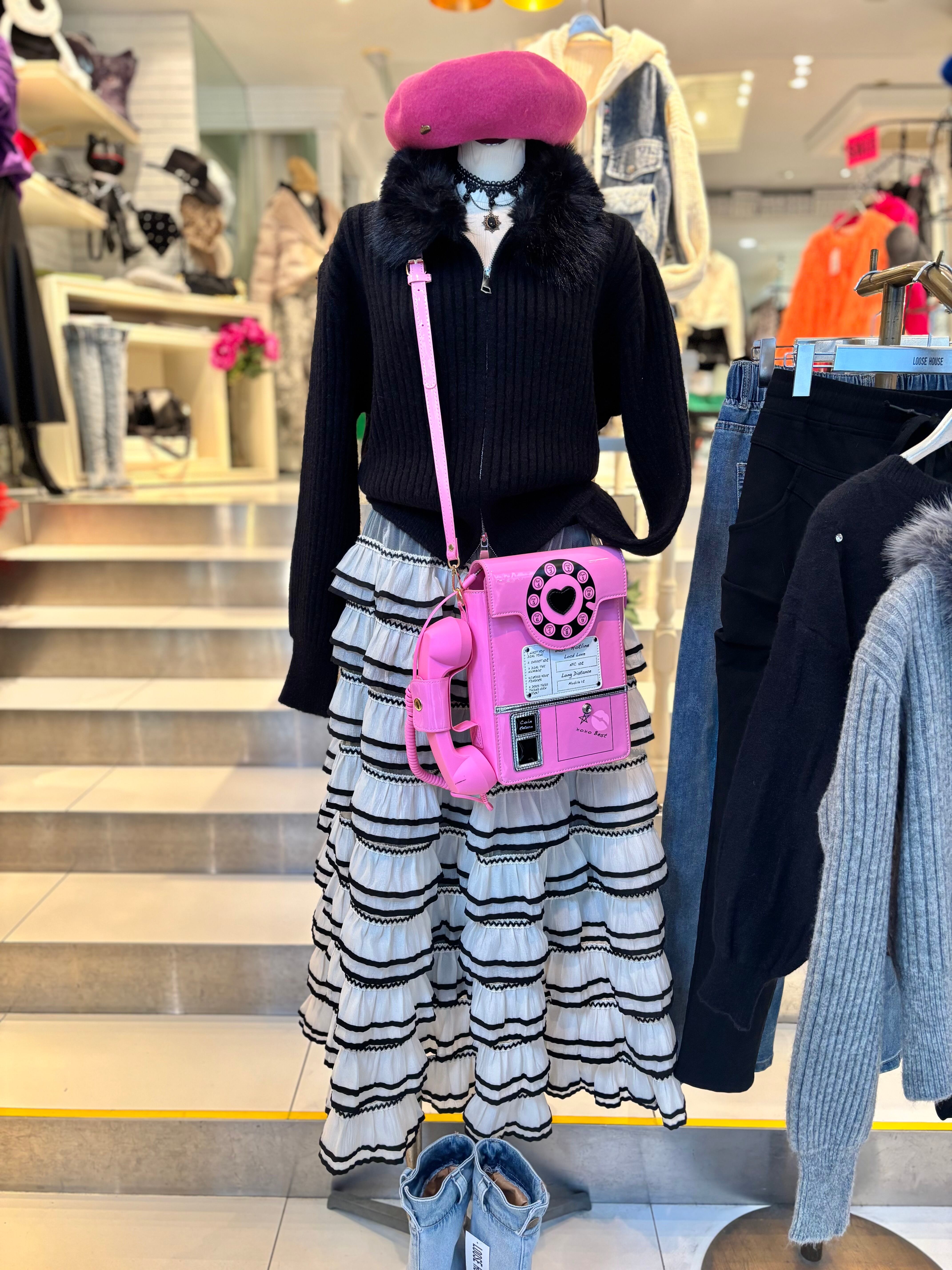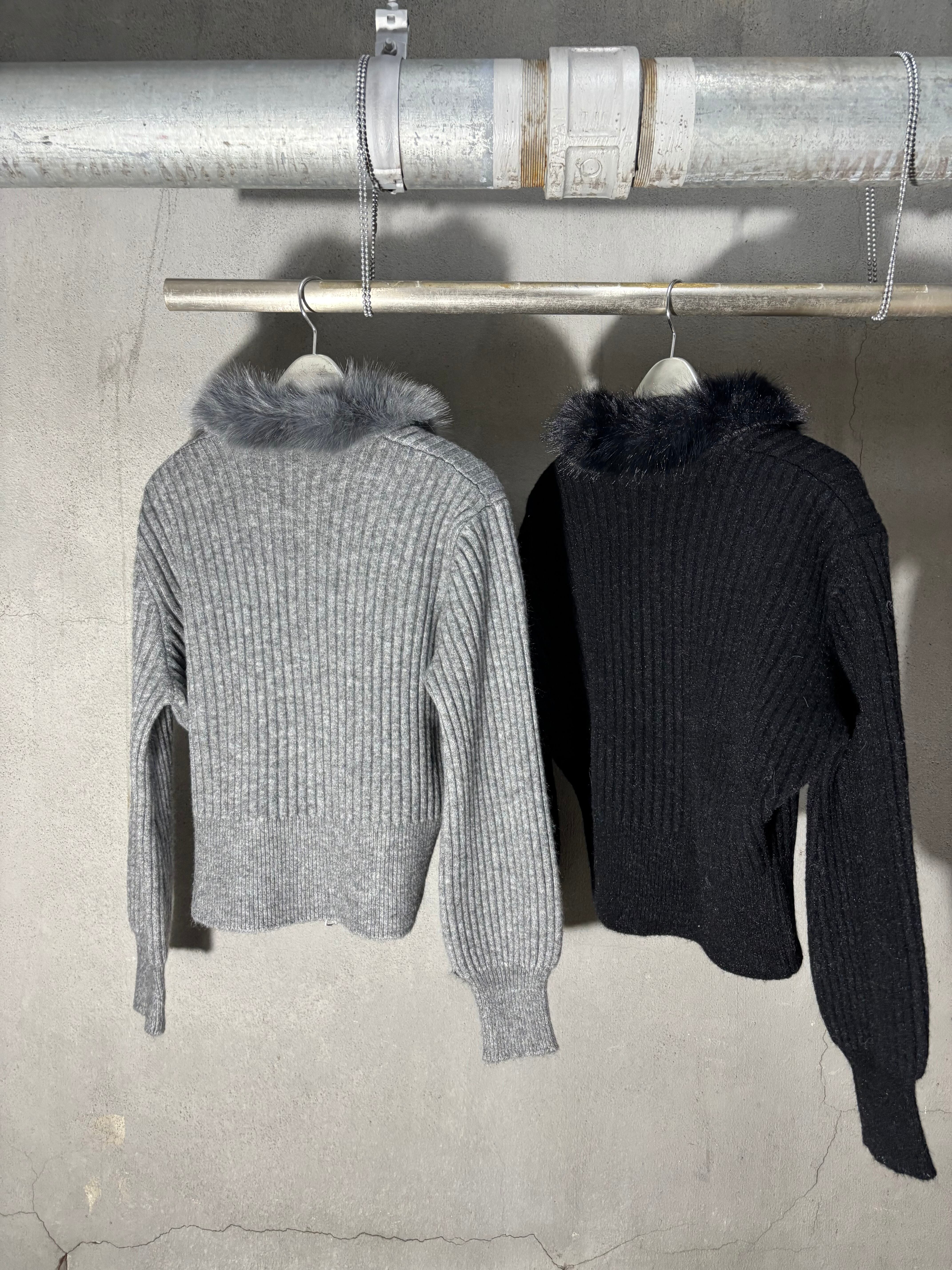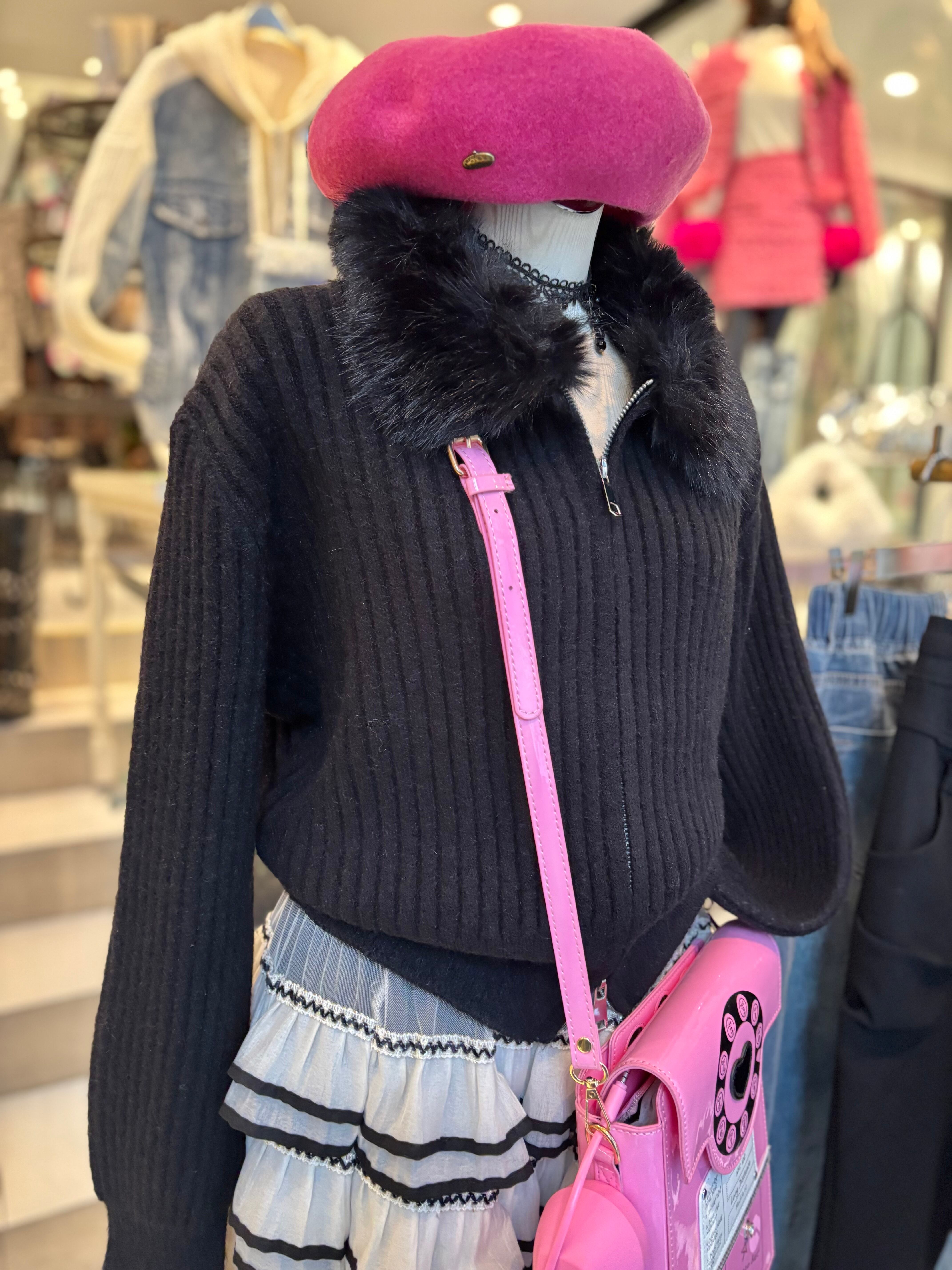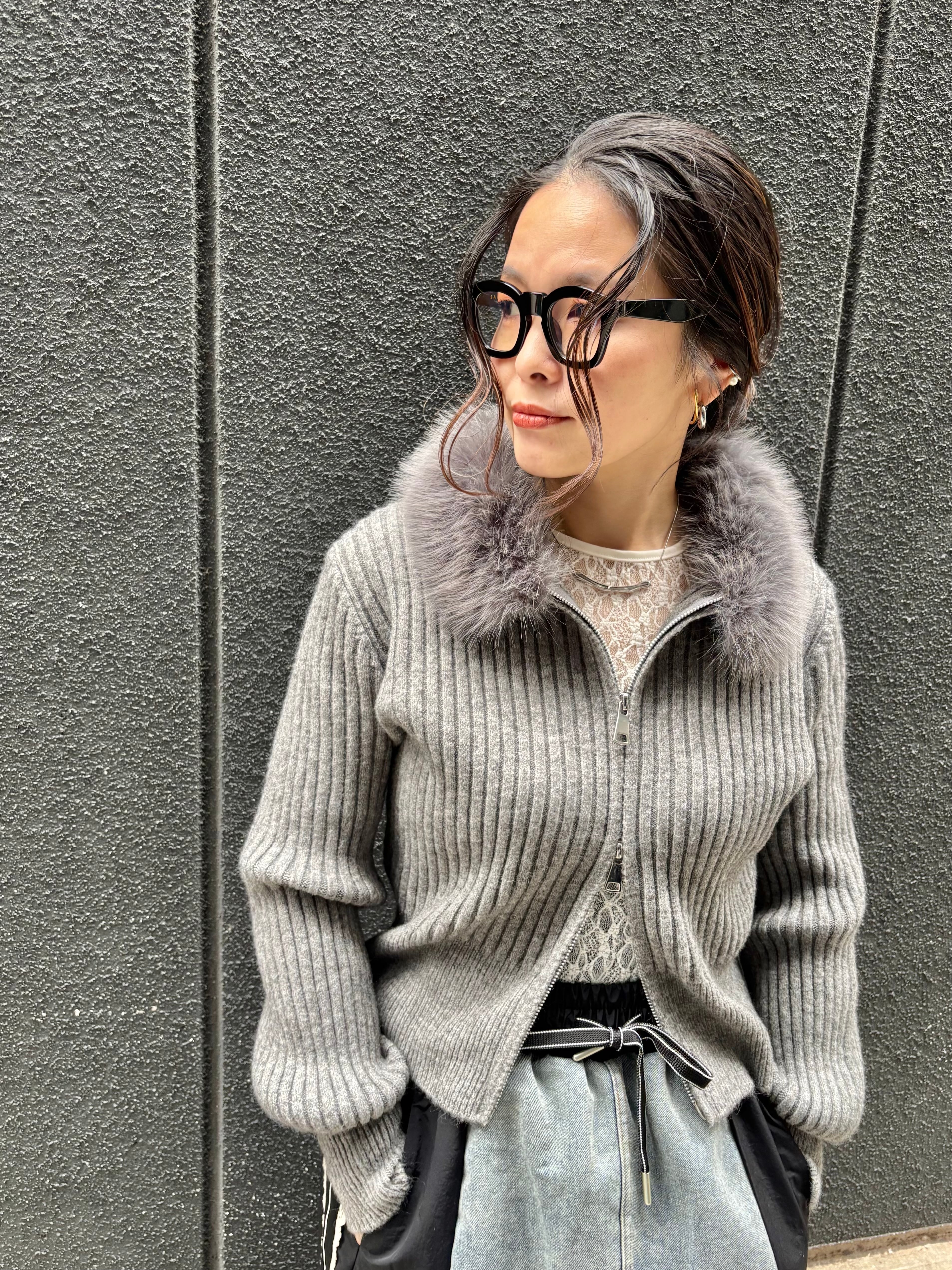 eco fur collar double zip up design jacket ニット ジャケット ファー付き ジップアップ