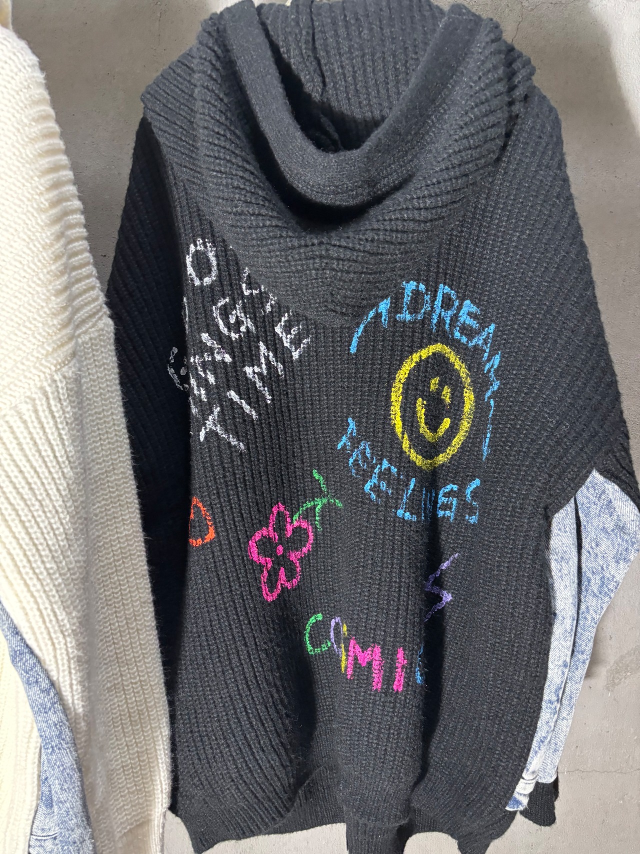 denim docking zip up design hoodie knit jacket ジャケット ニット デニム 切替デザイン バッグ プリント スマイリー