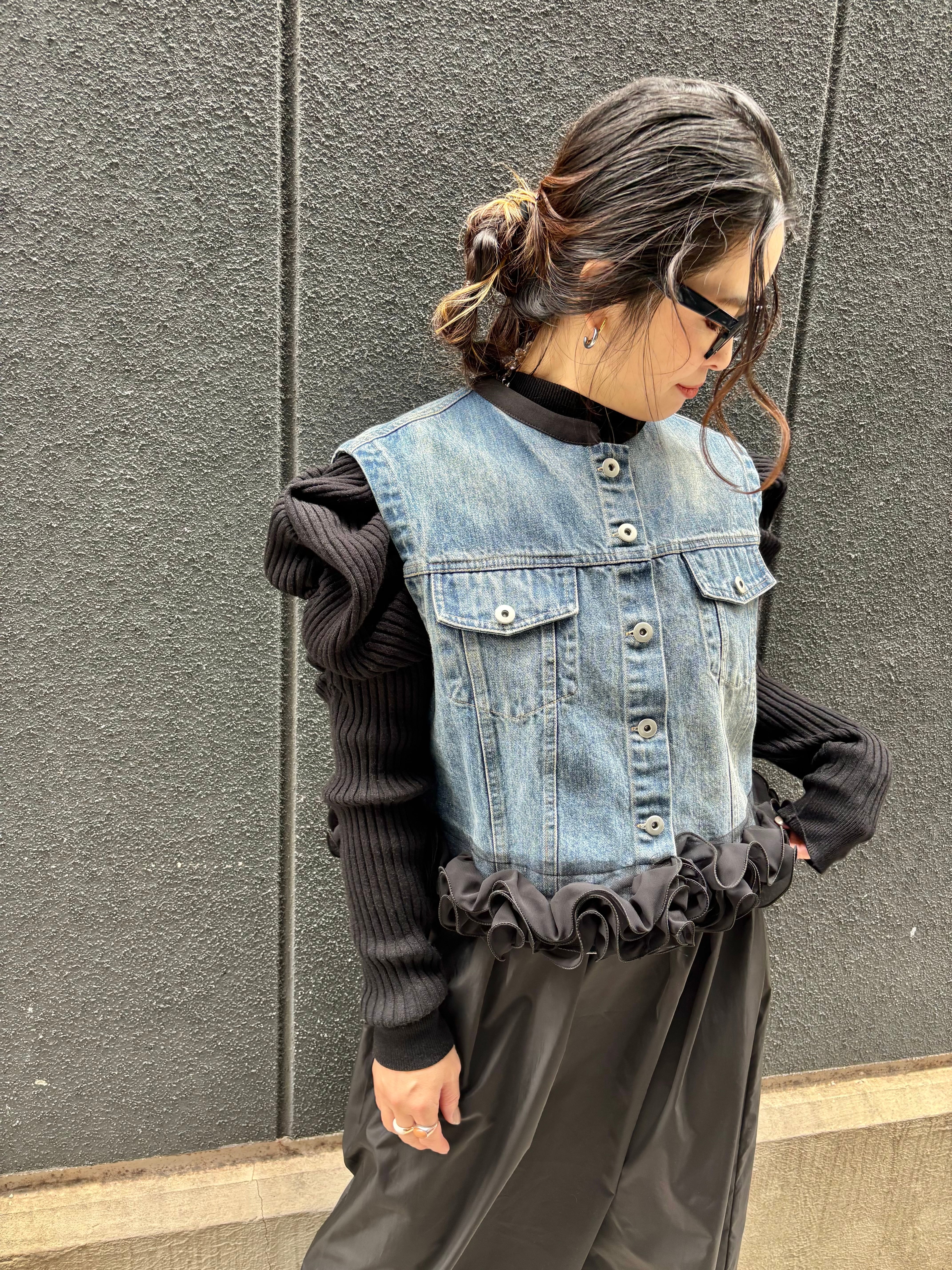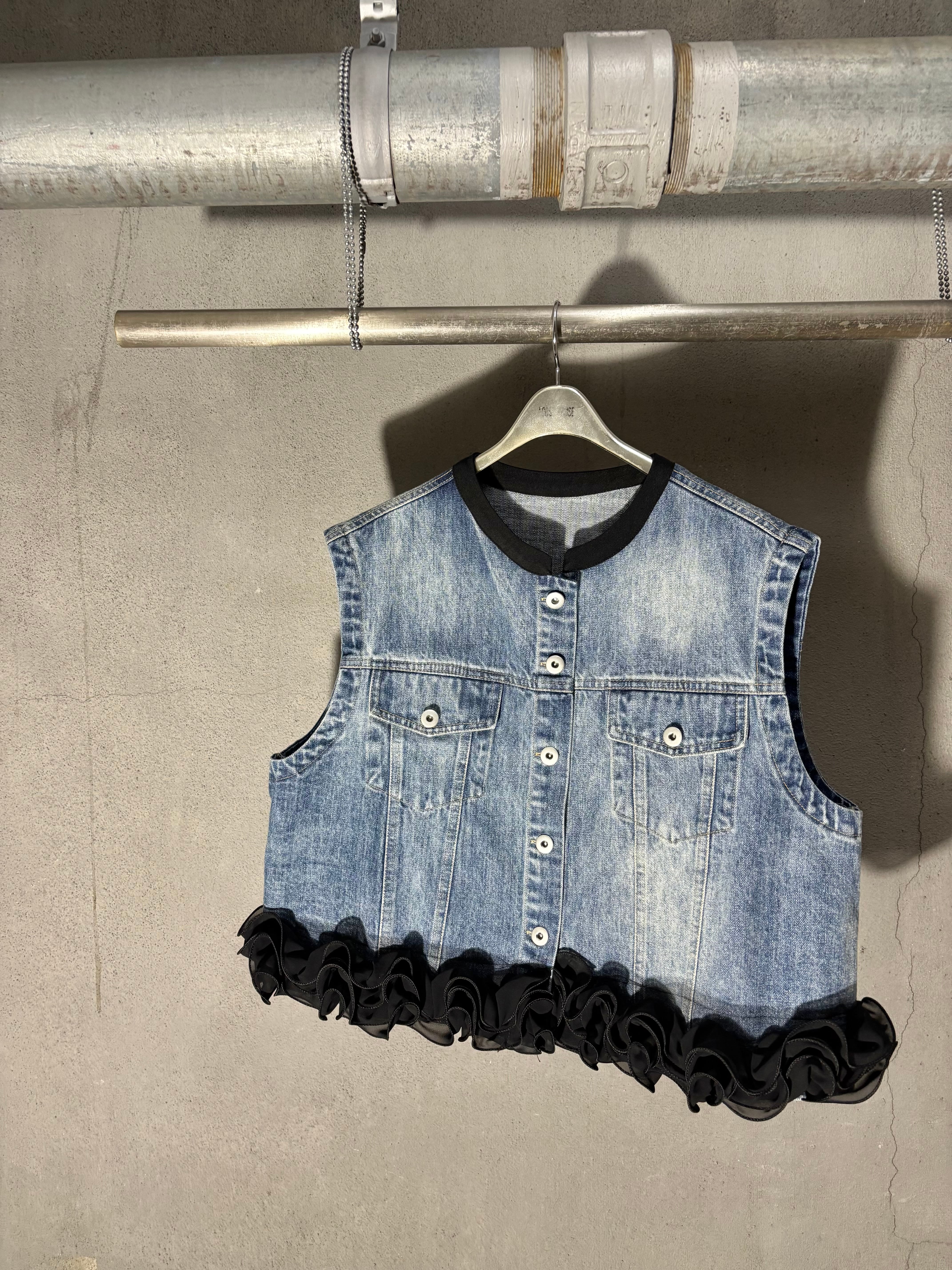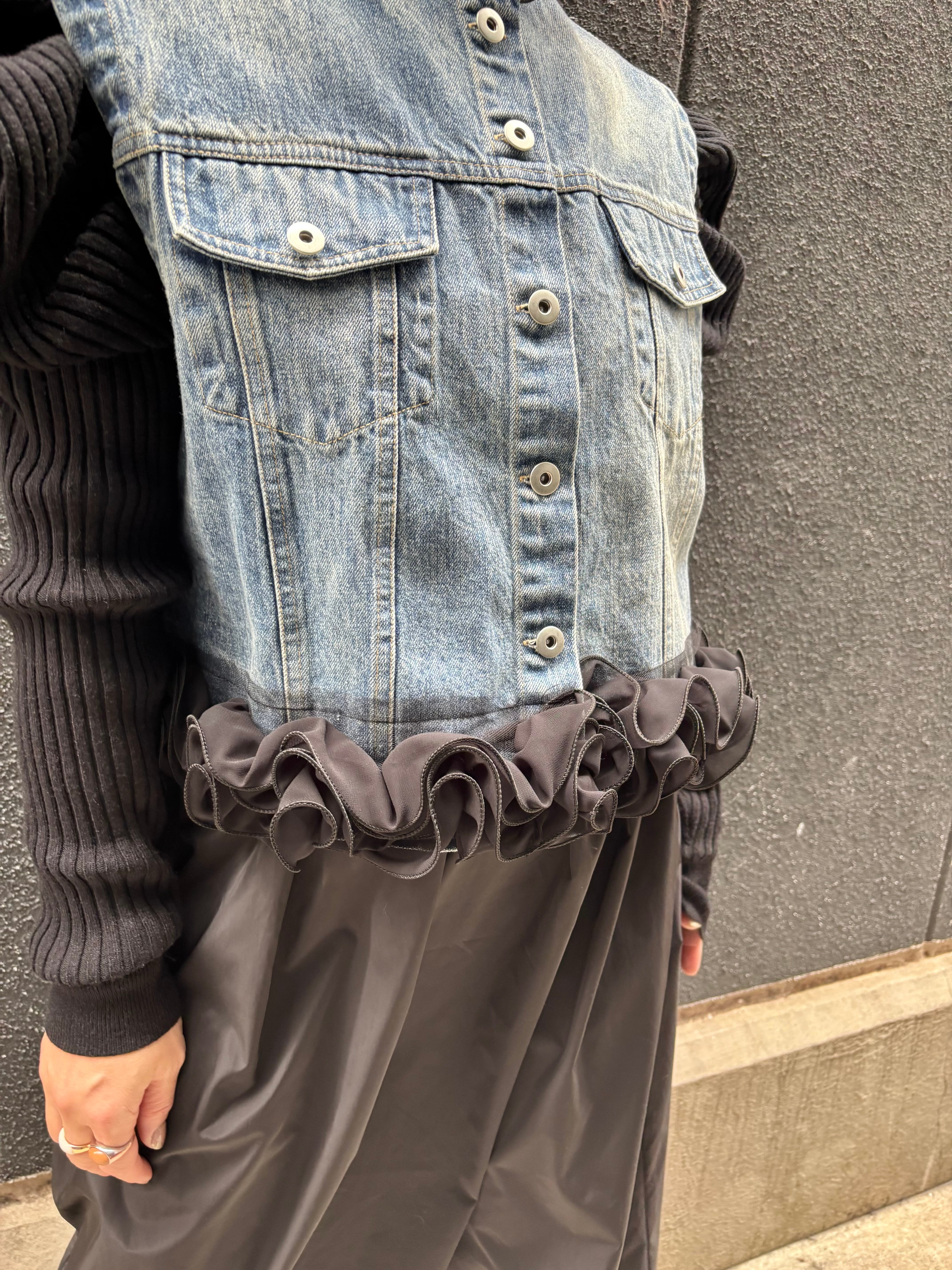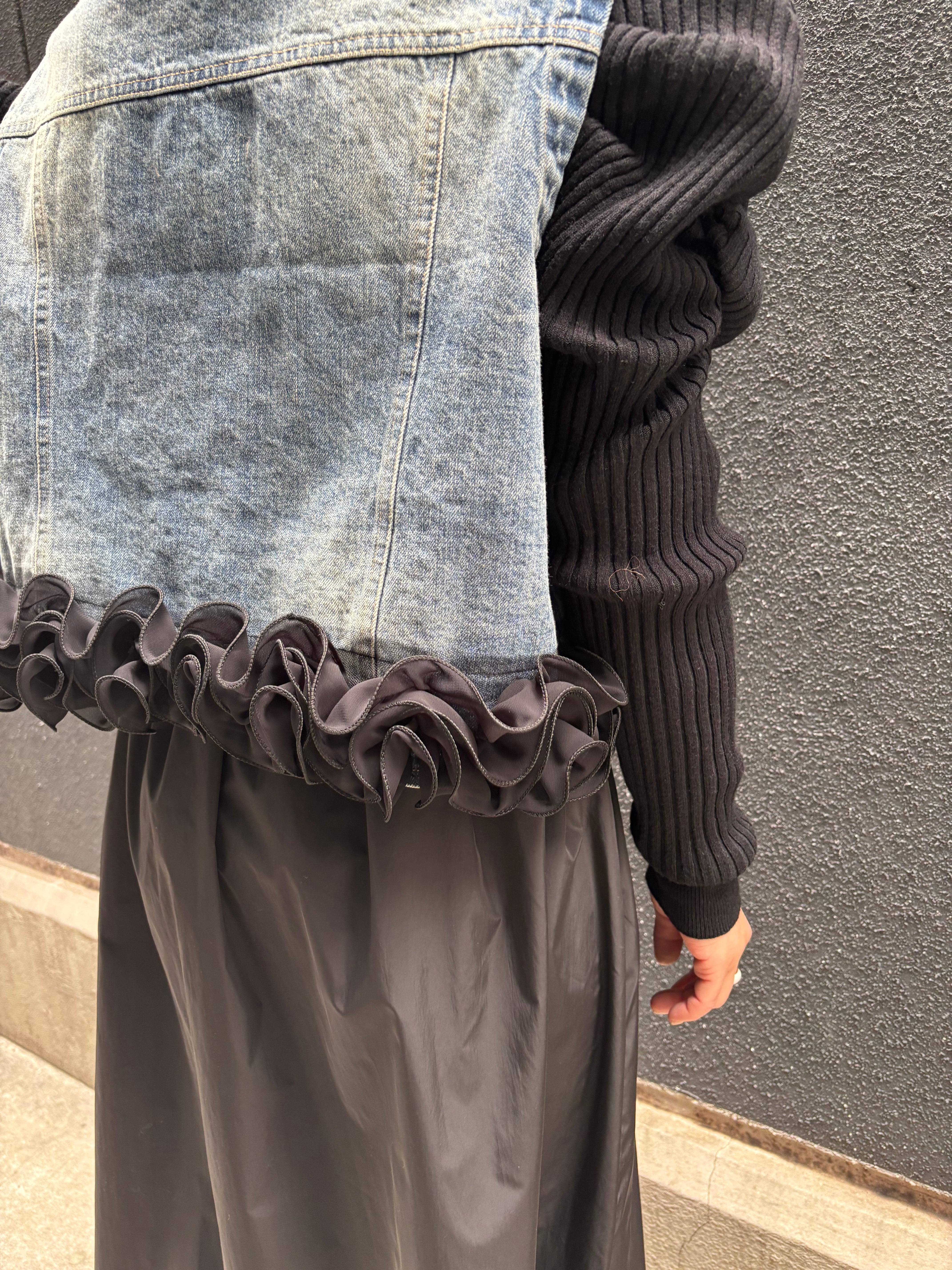 black frill trimming design denim vest ベスト デニム フリル 重ね着