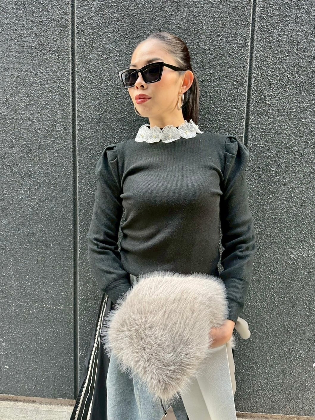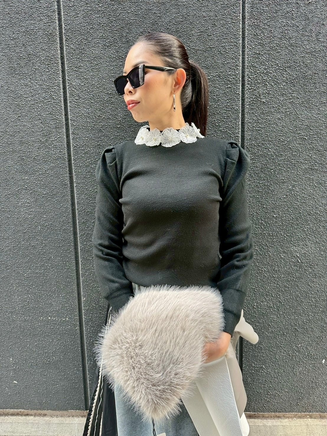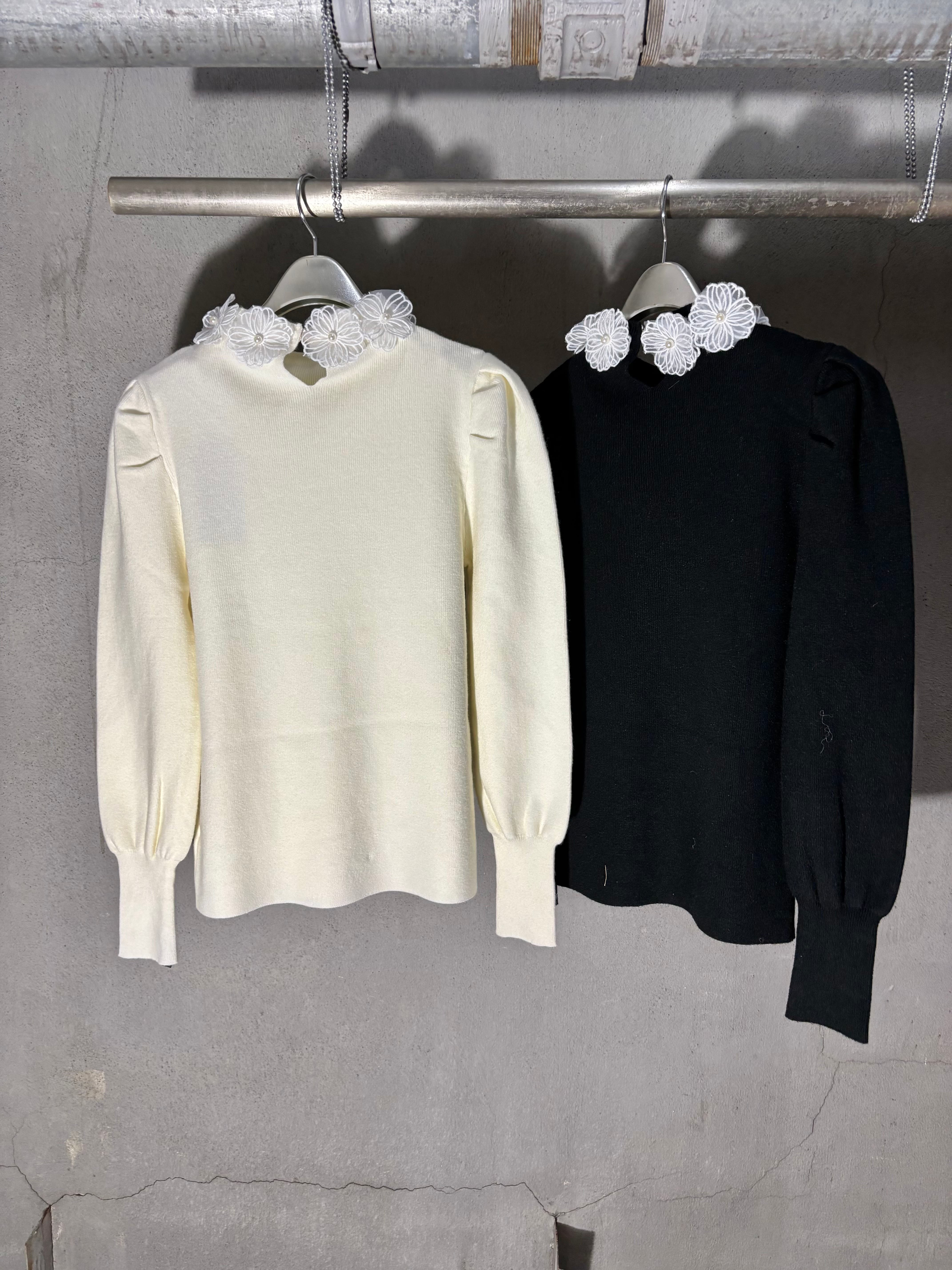 white flower lace collar design knit tops トップス ニット レース 襟 デザイントップス