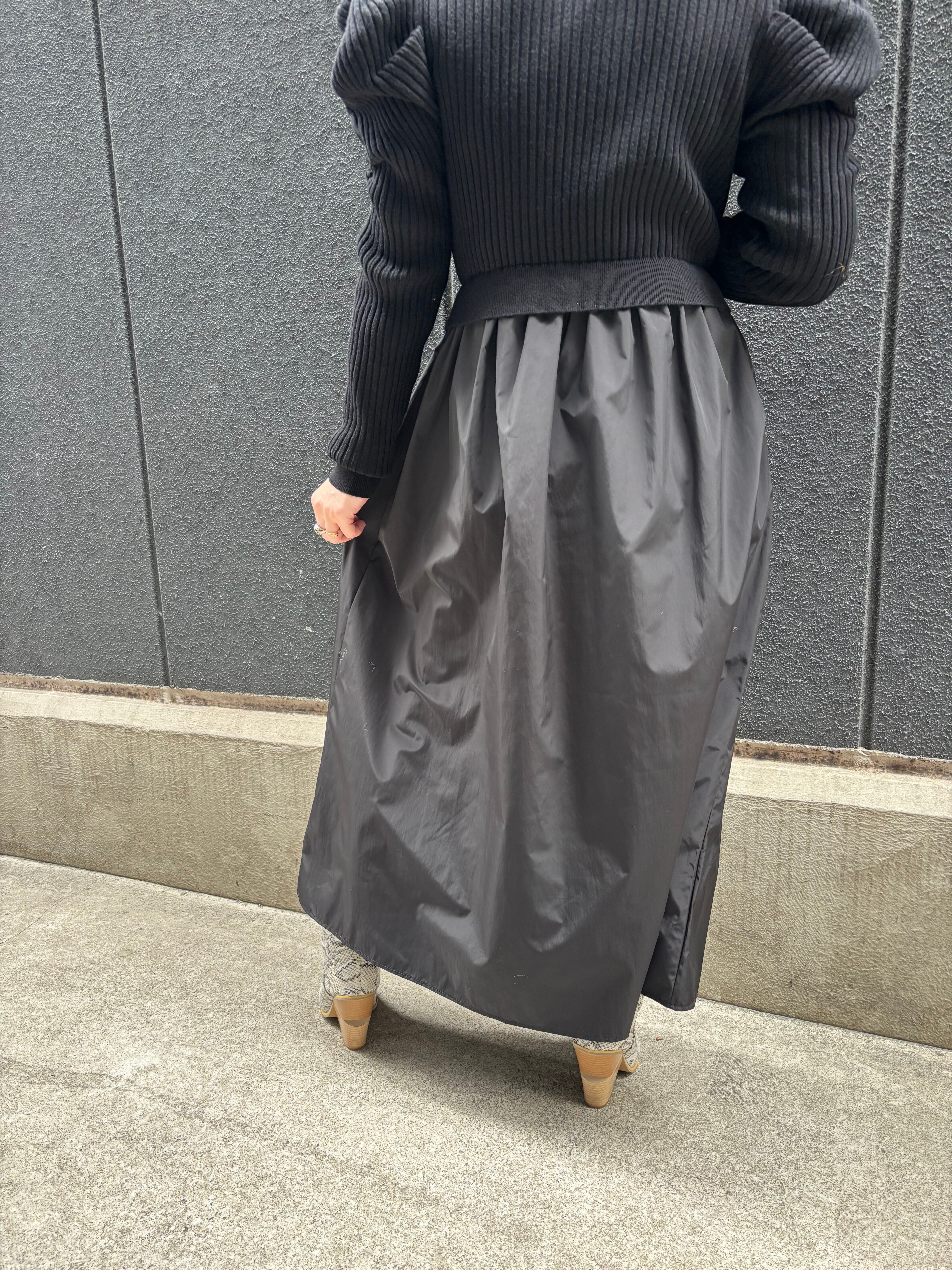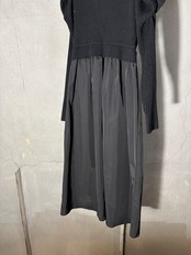 different fabrics change design one-piece ワンピース ニットワンピ 異素材切替 ブラック 黒 ギャザースリーブ