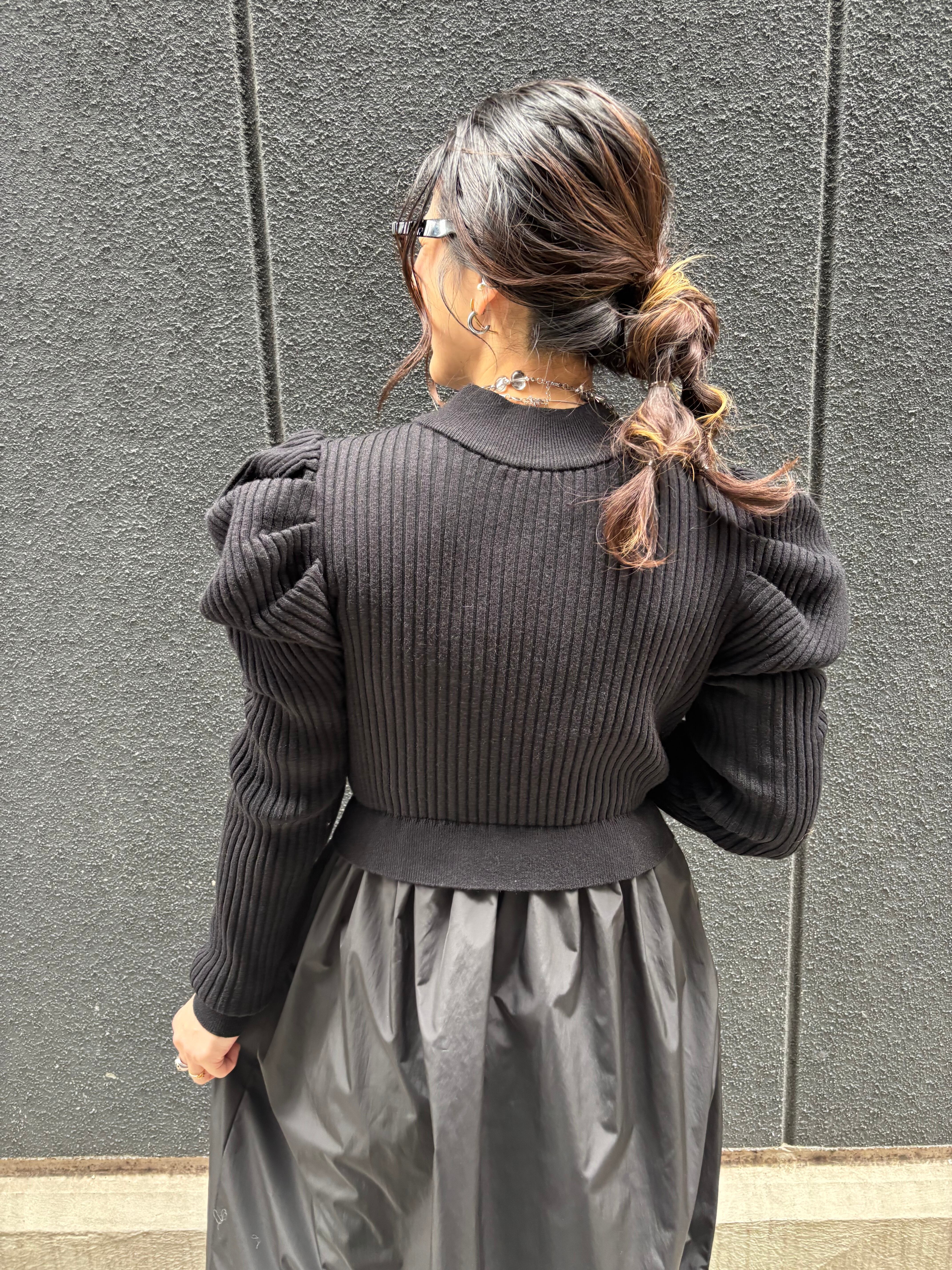 ニット切替とパフスリーブが絶妙に組み合わさっており、リラックスした雰囲気を演出します。デイリーユースから特別な日のお出かけまで、シーンを選ばず活躍する一枚です♪