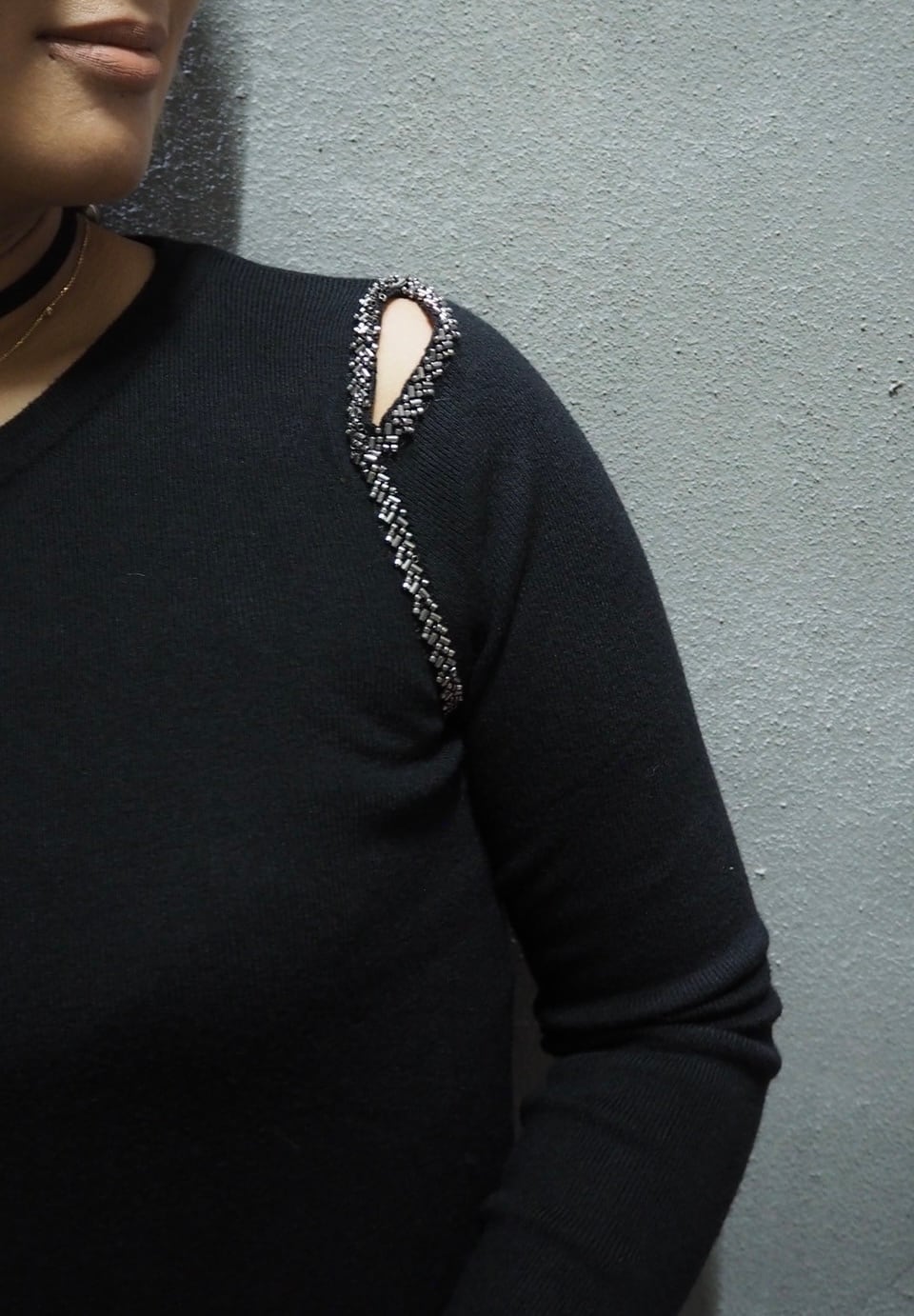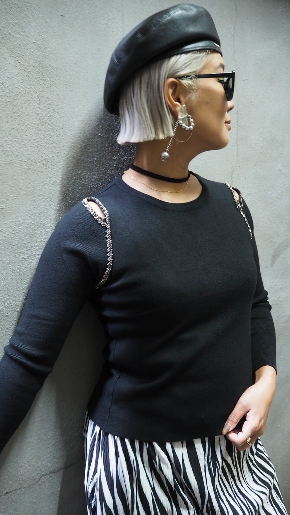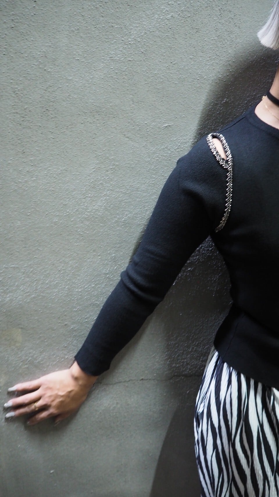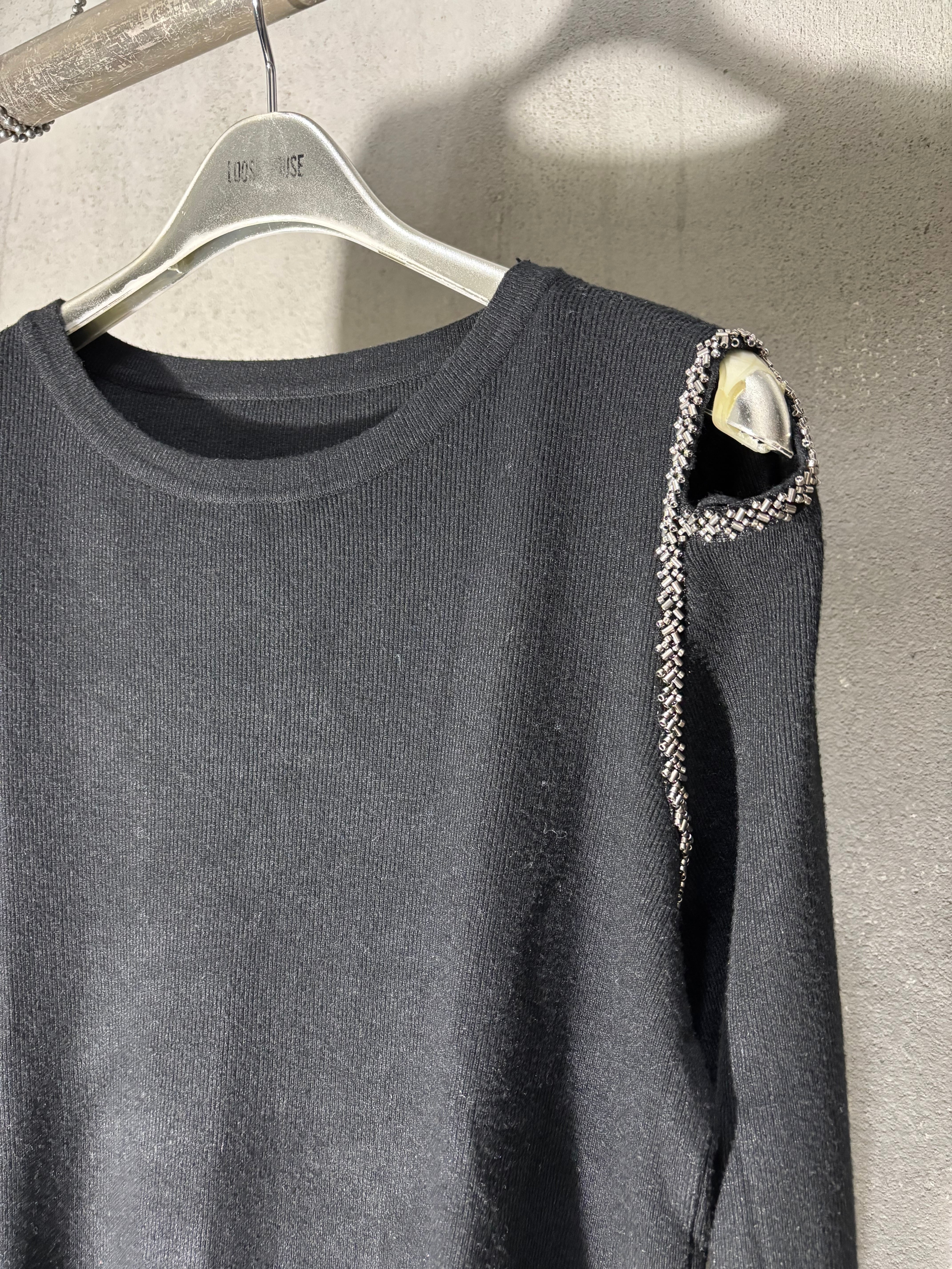 open shoulder × beads design knit tops トップス デザイン 肩開き ビーズ 刺繍 肌触り