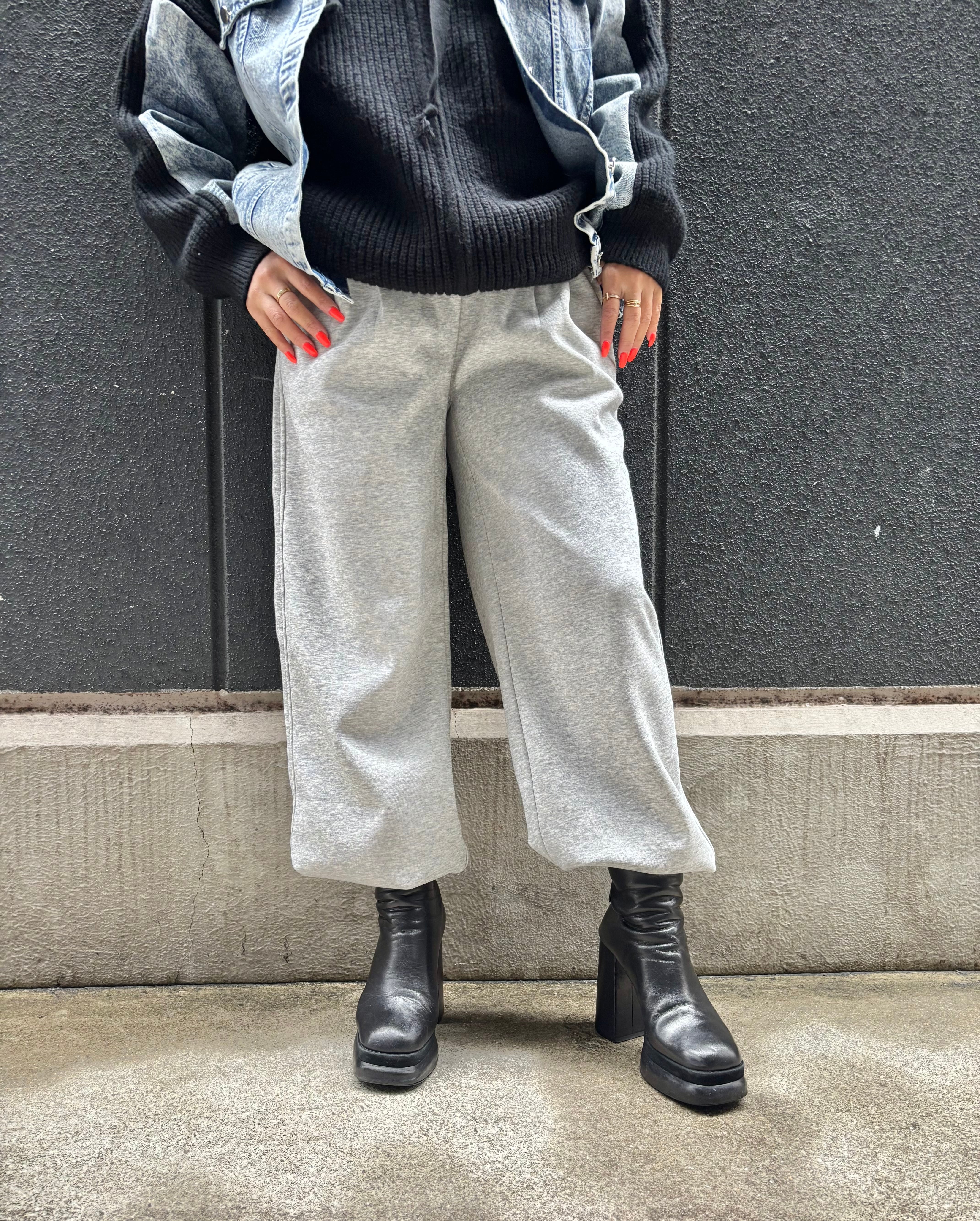 wide leg sweat pants パンツ スウェット ゴムウエスト グレー ラフ トレンド