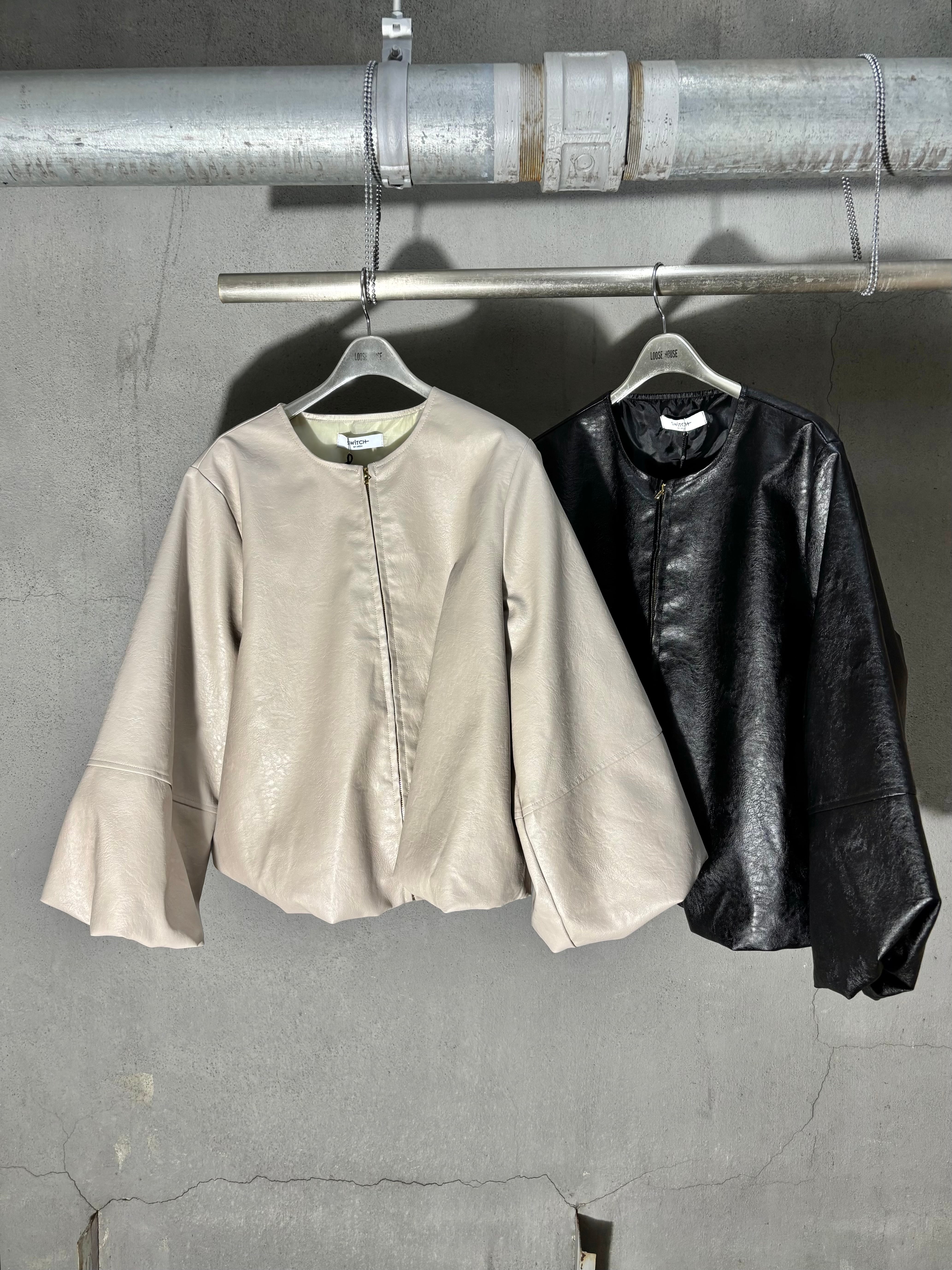 eco leather balloon sleeve zip up design jacket ジャケット エコレザー フェイクレザー 合皮 バルーン ボリューム ジップアップ