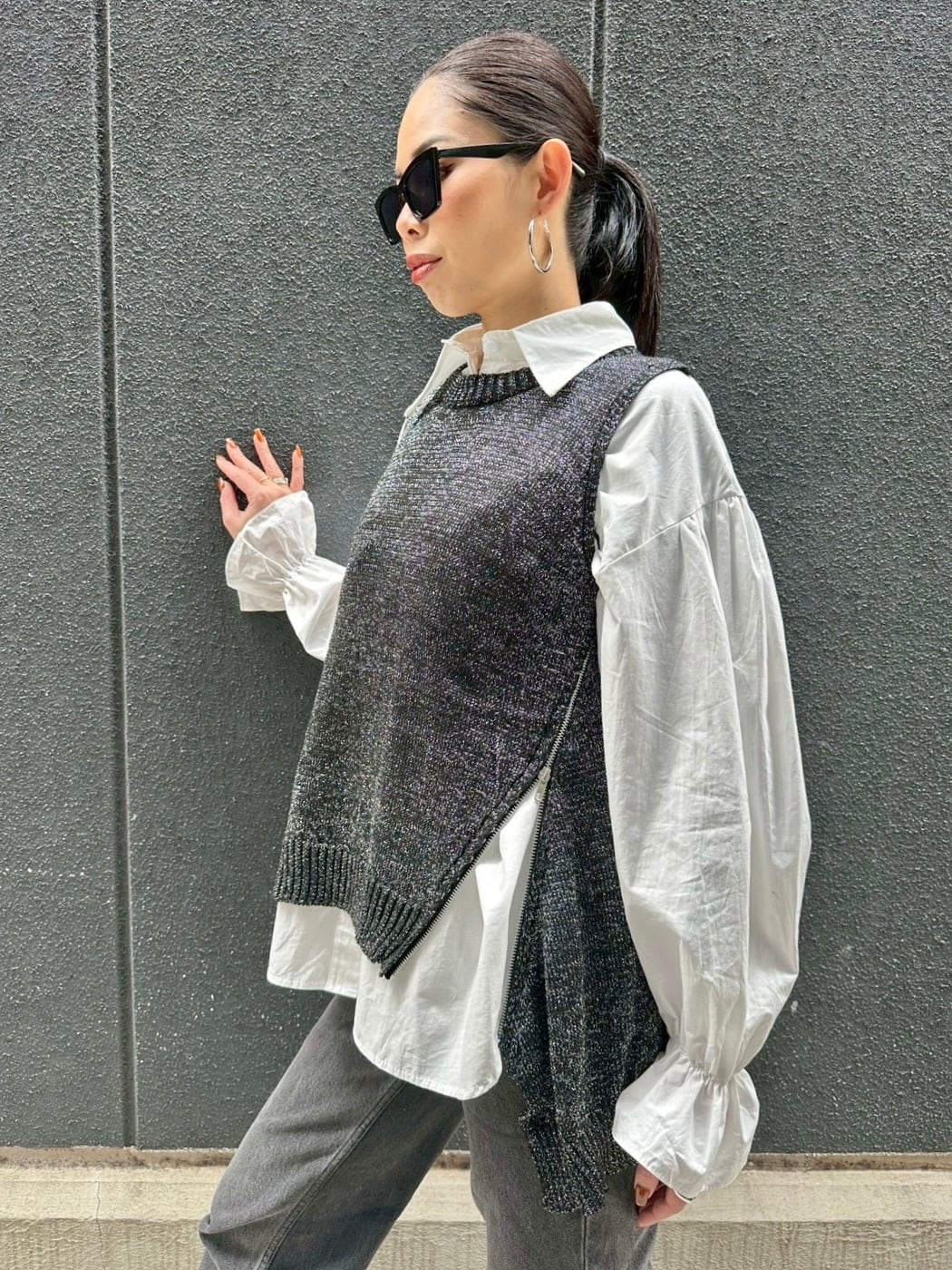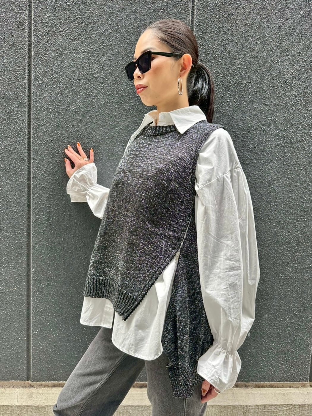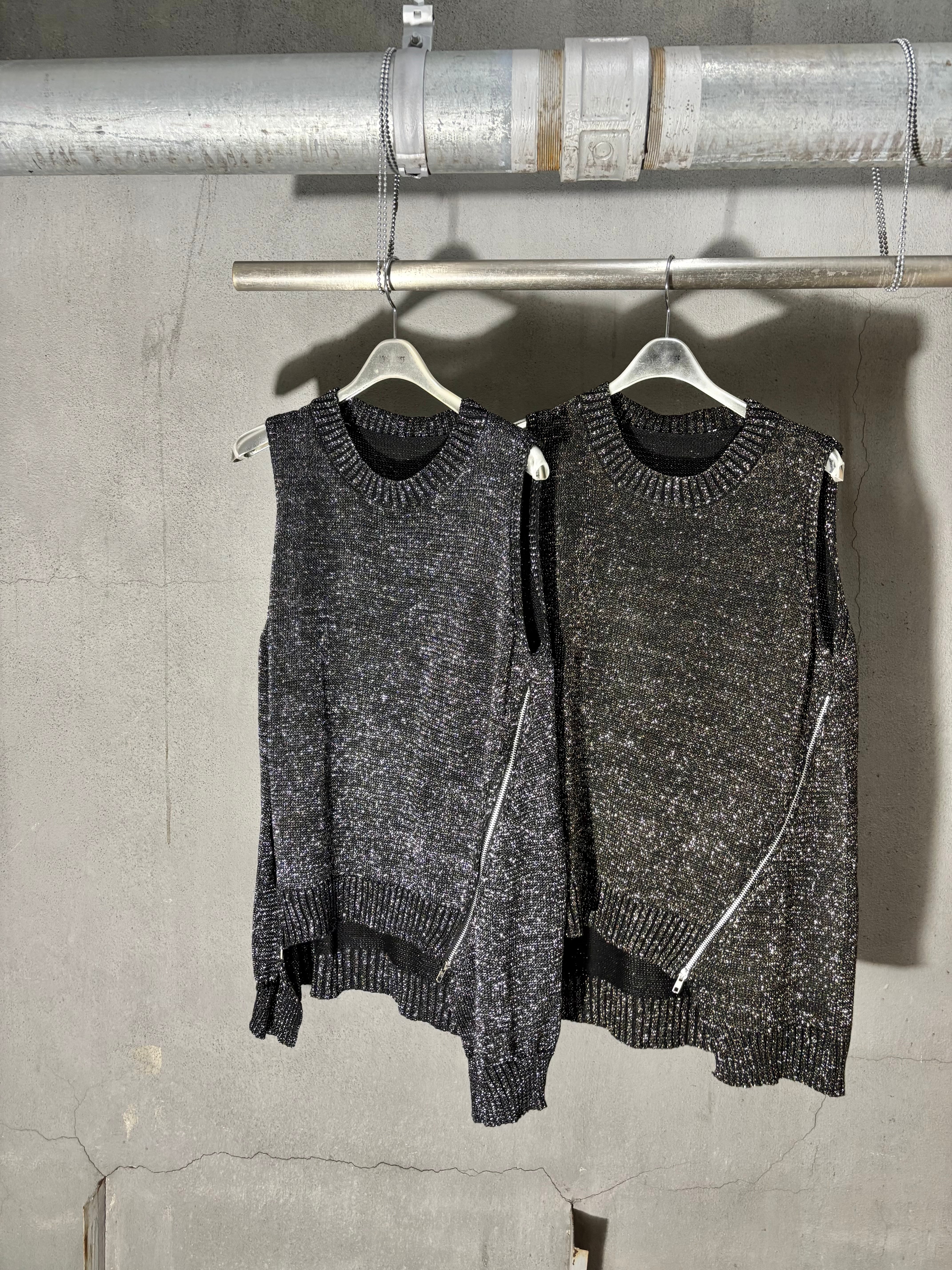 lame mix side zip design knit vest tops トップス ベスト ラメ ジッパー 重ね着 レイヤード