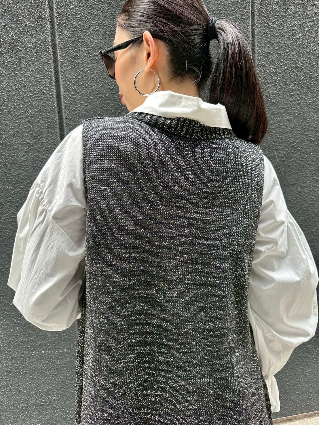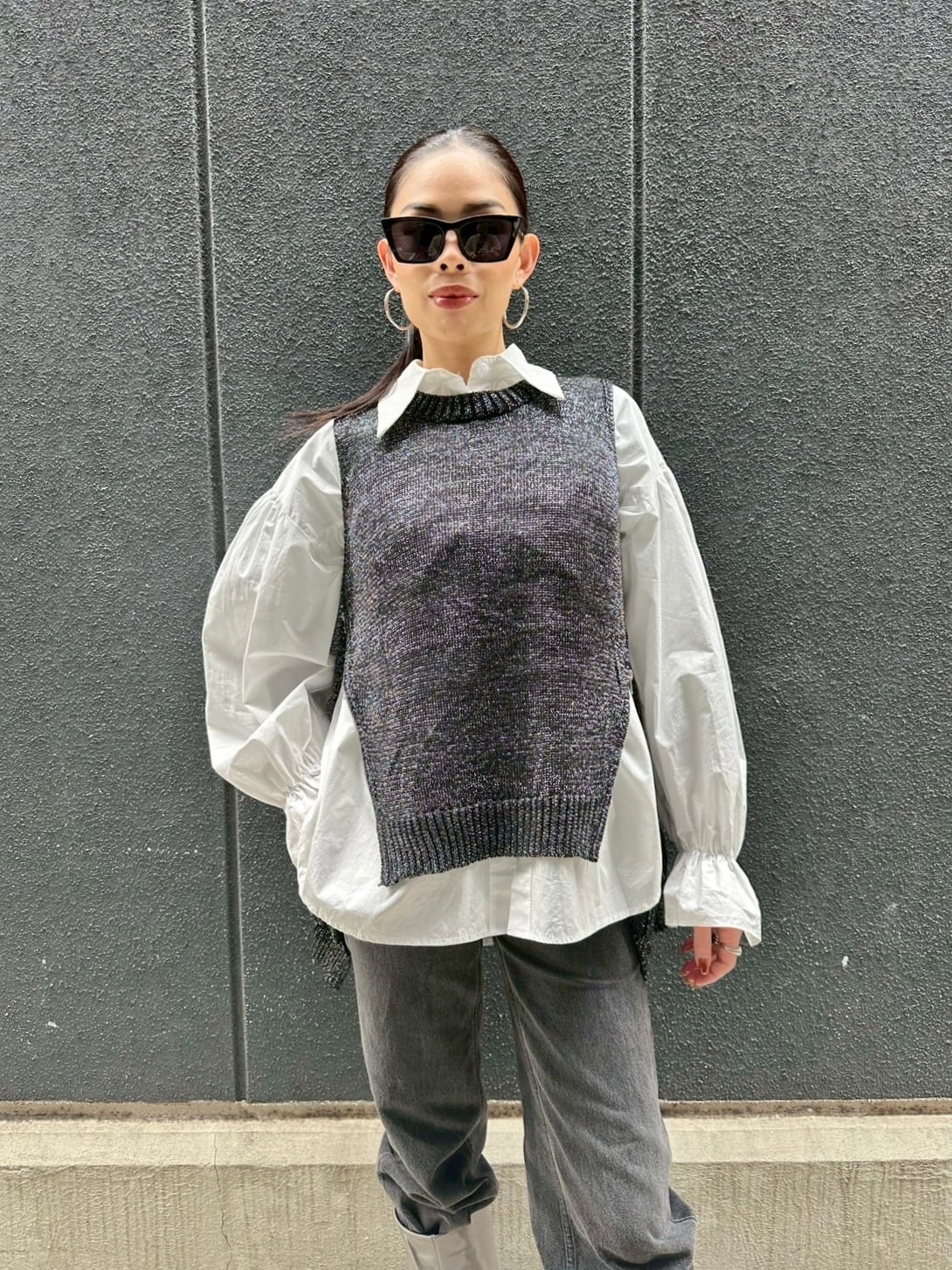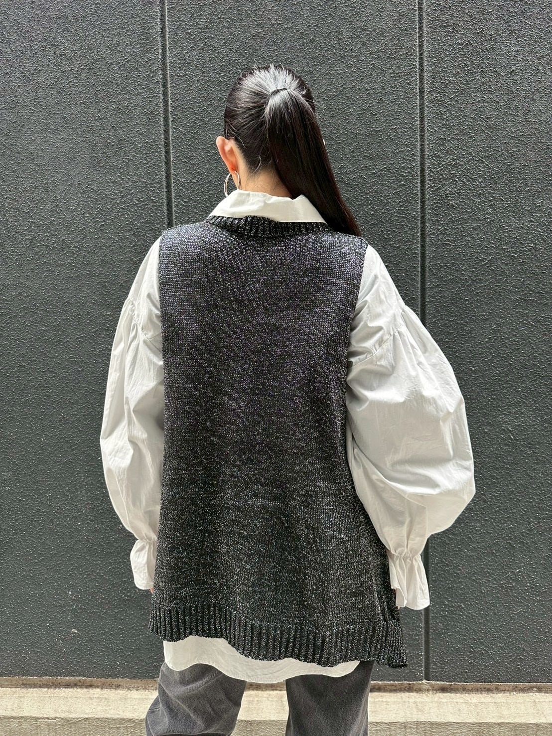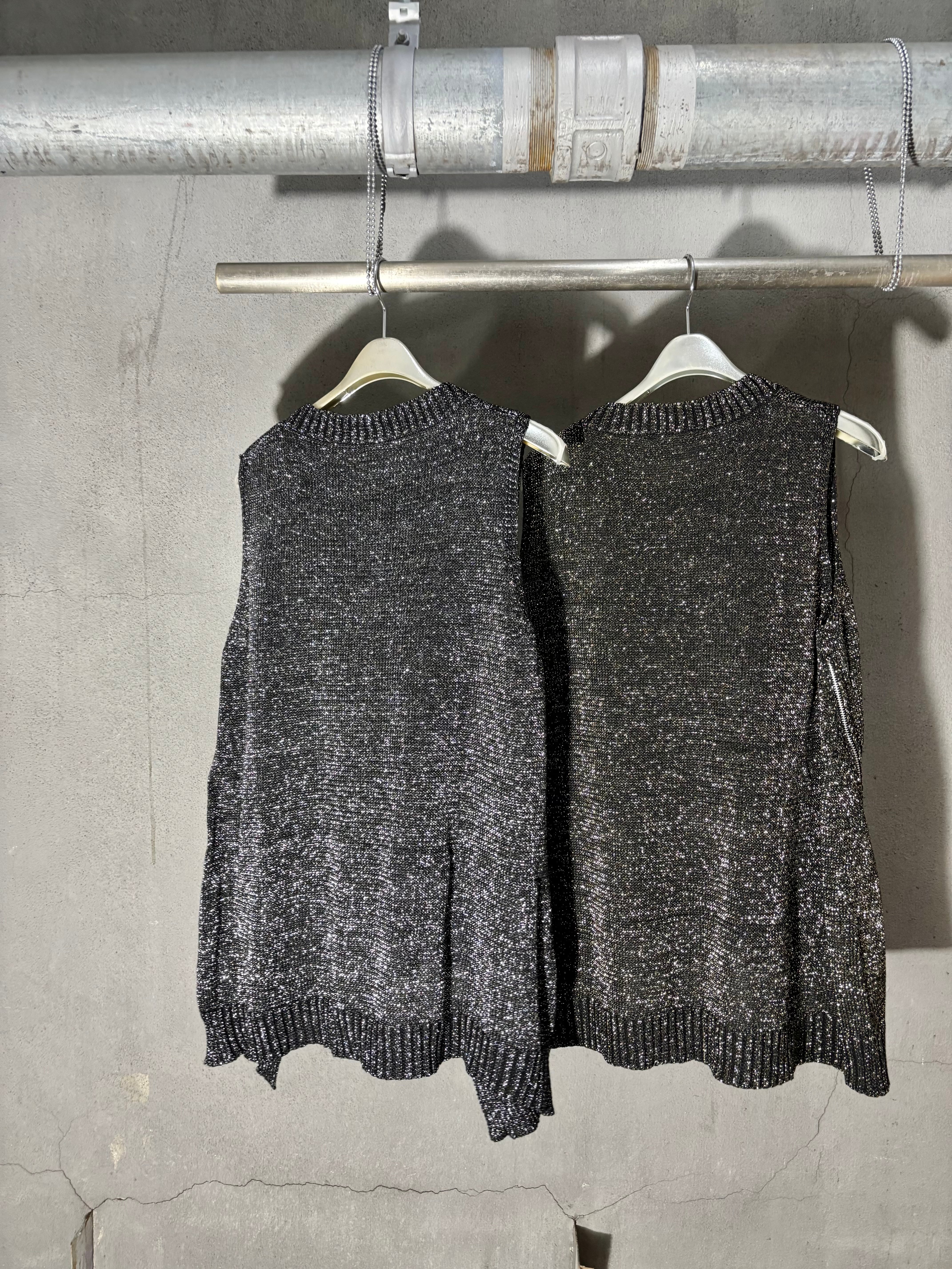 lame mix side zip design knit vest tops トップス ベスト ラメ ジッパー 重ね着 レイヤード