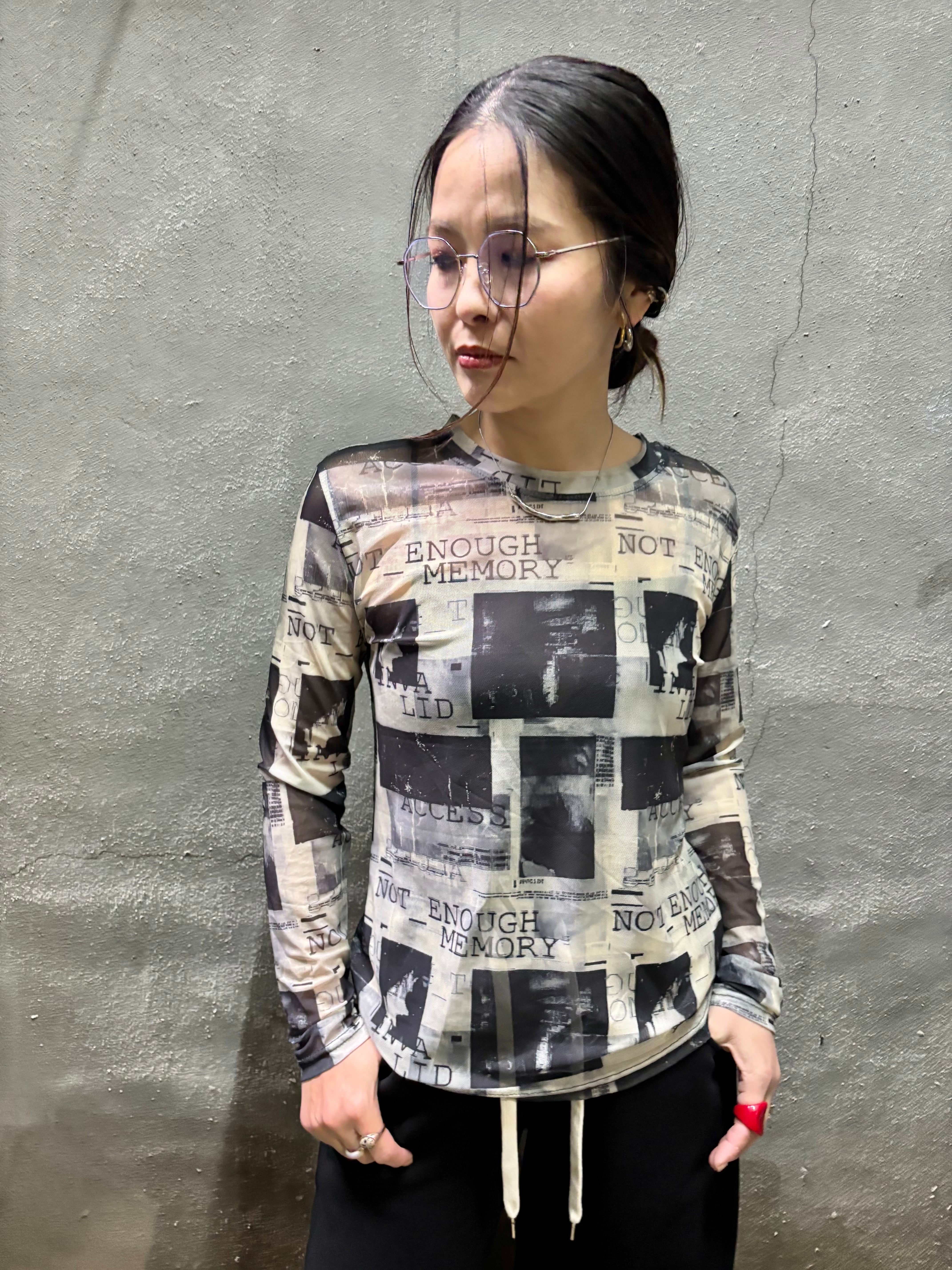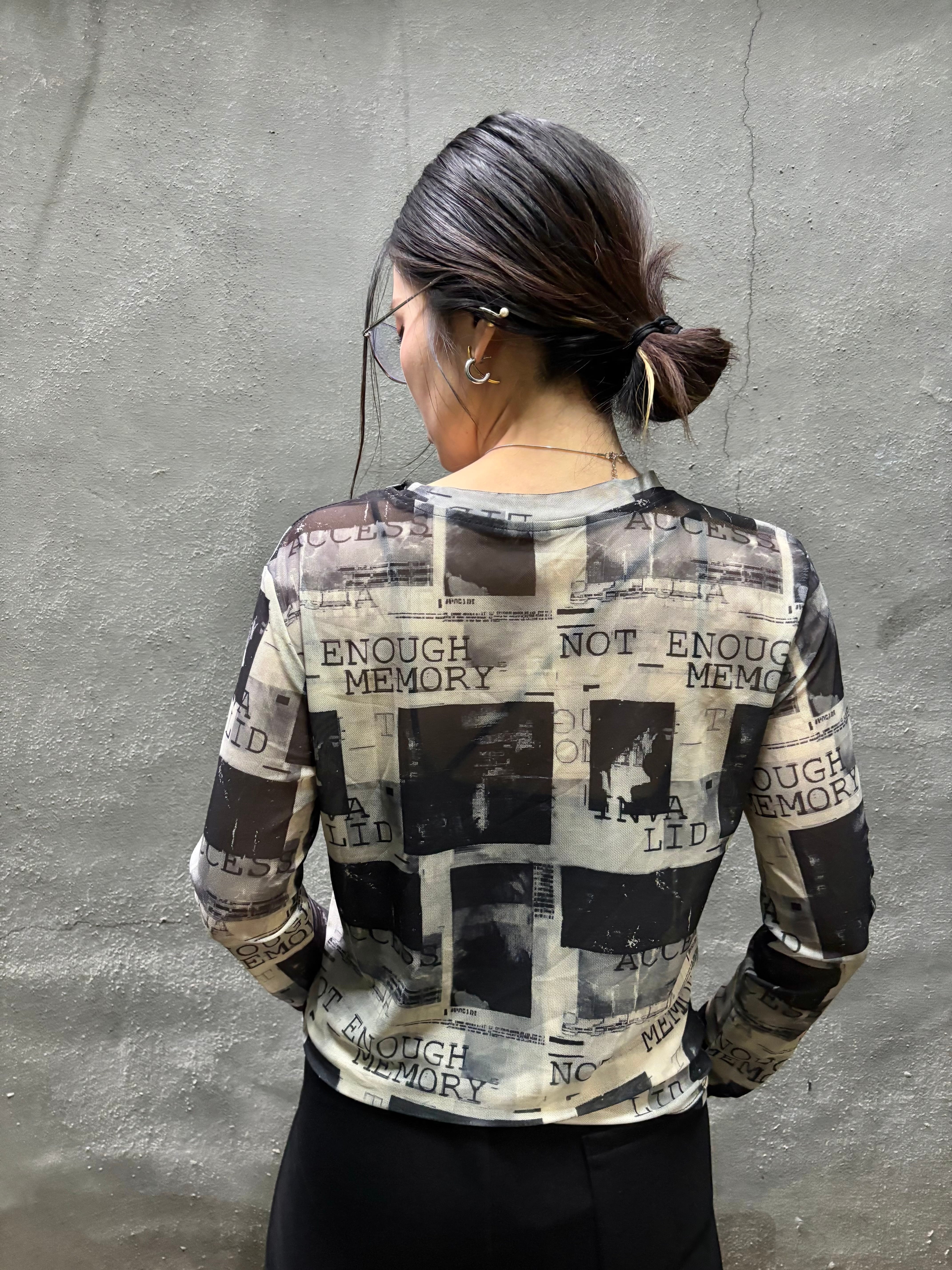 stretch mesh print tops トップス メッシュ ストレッチ プリント