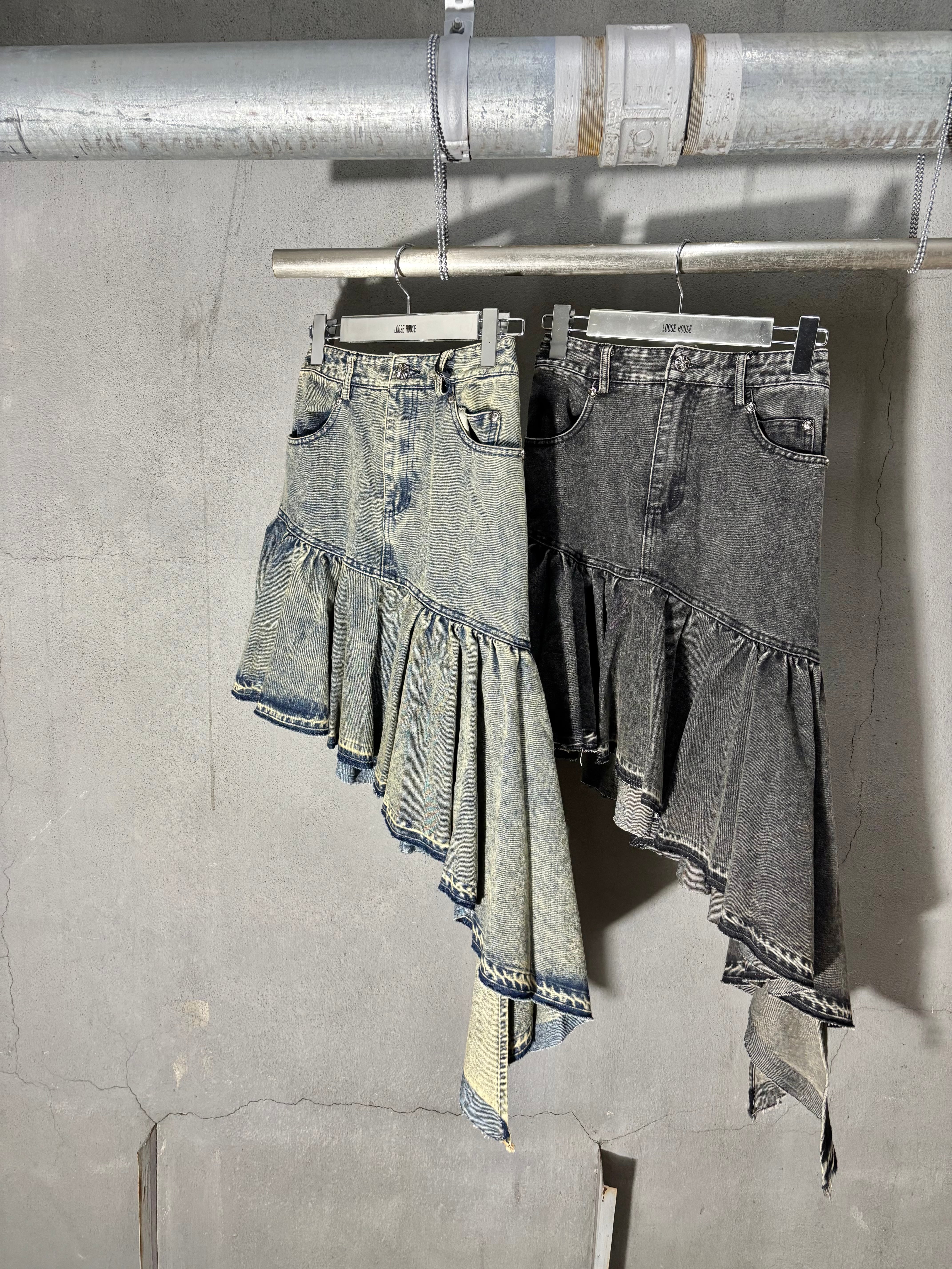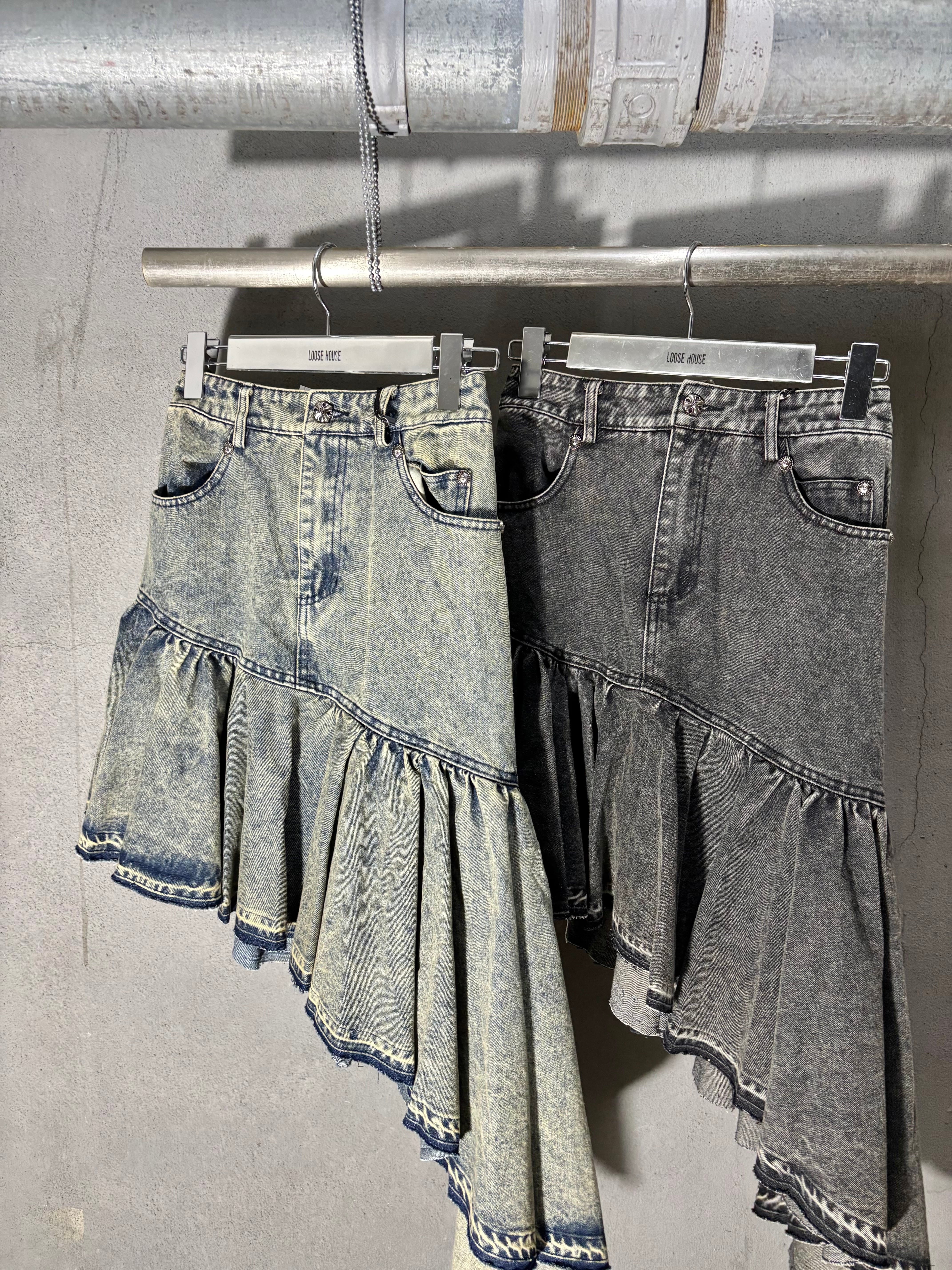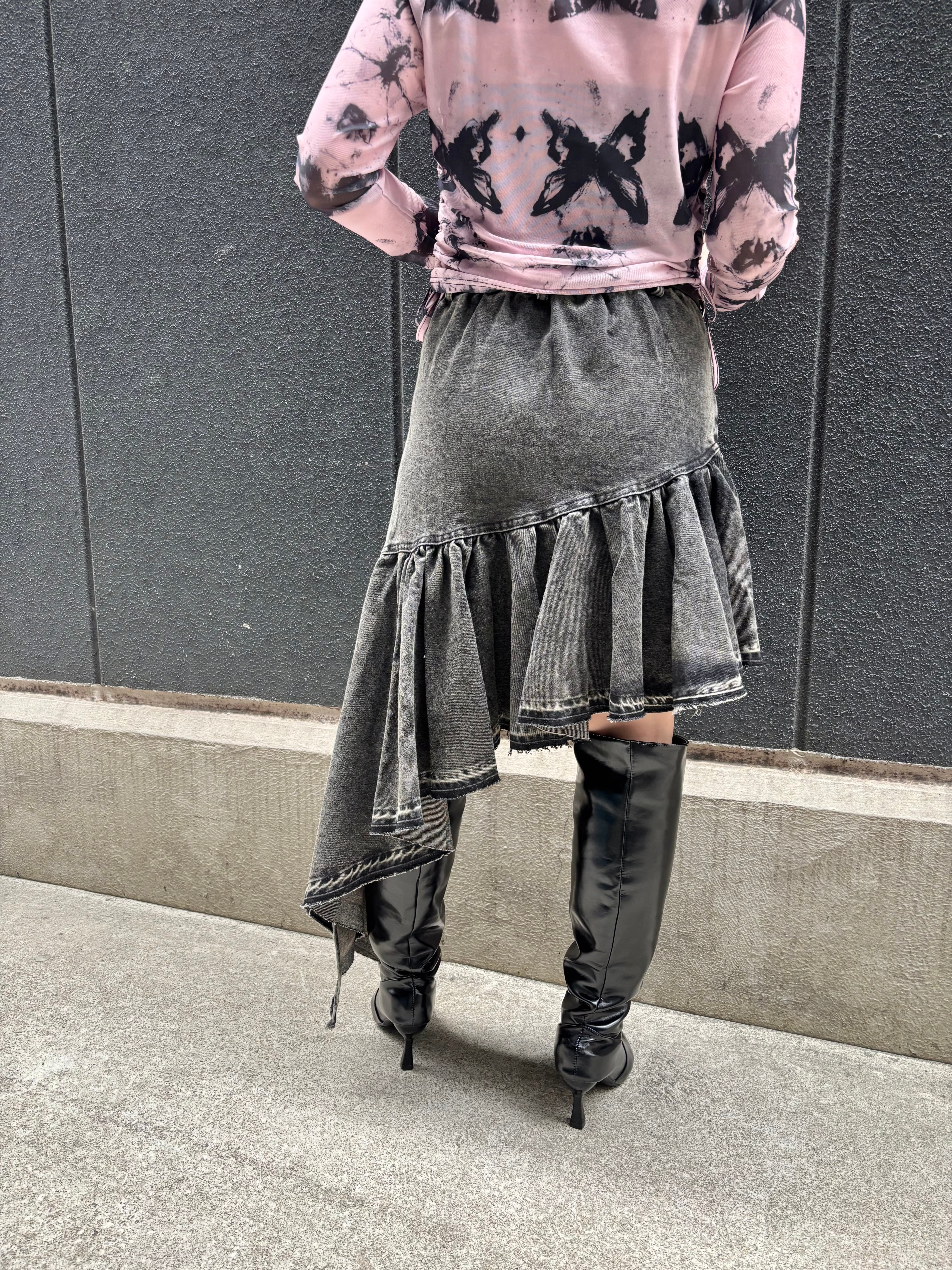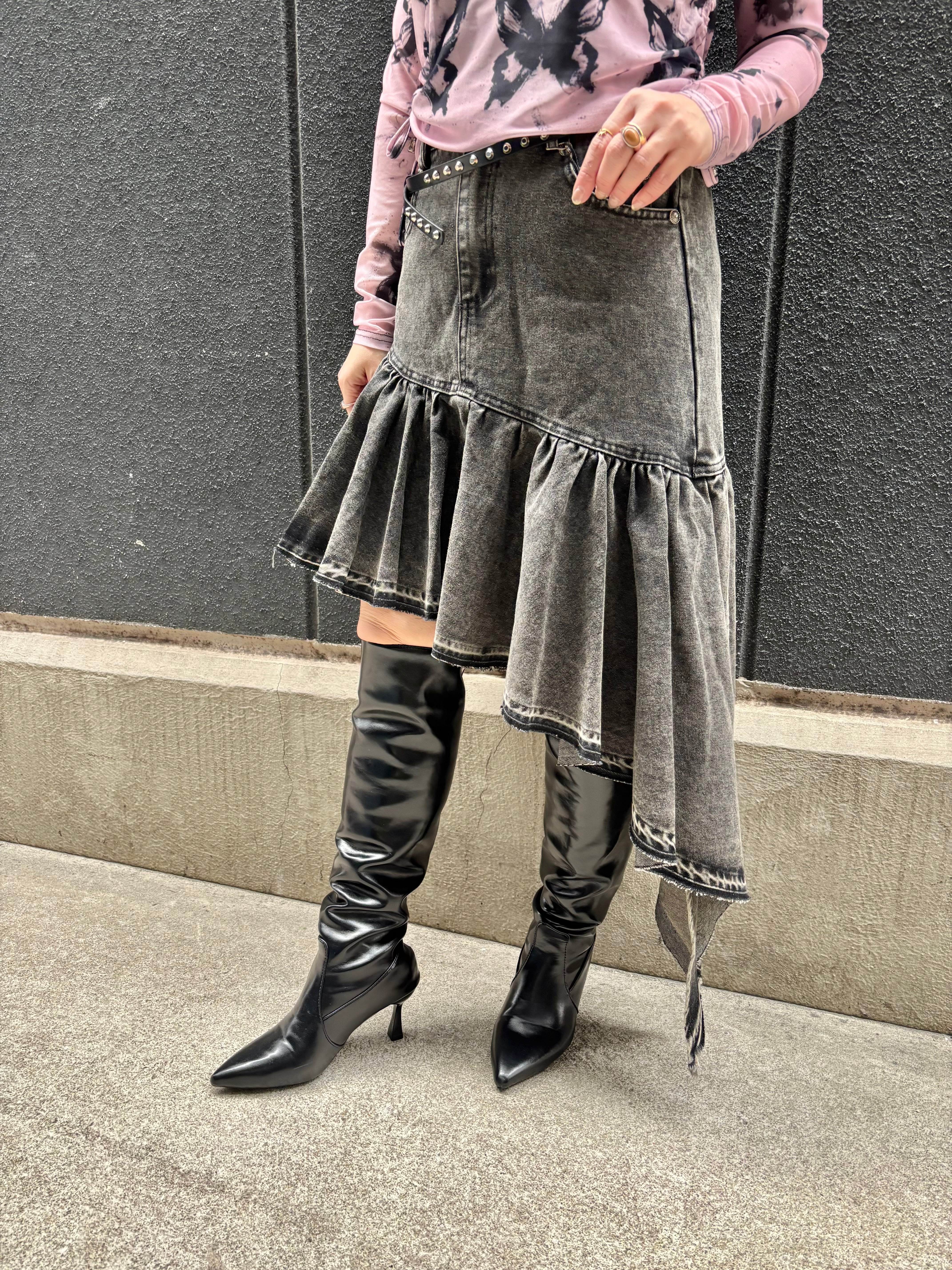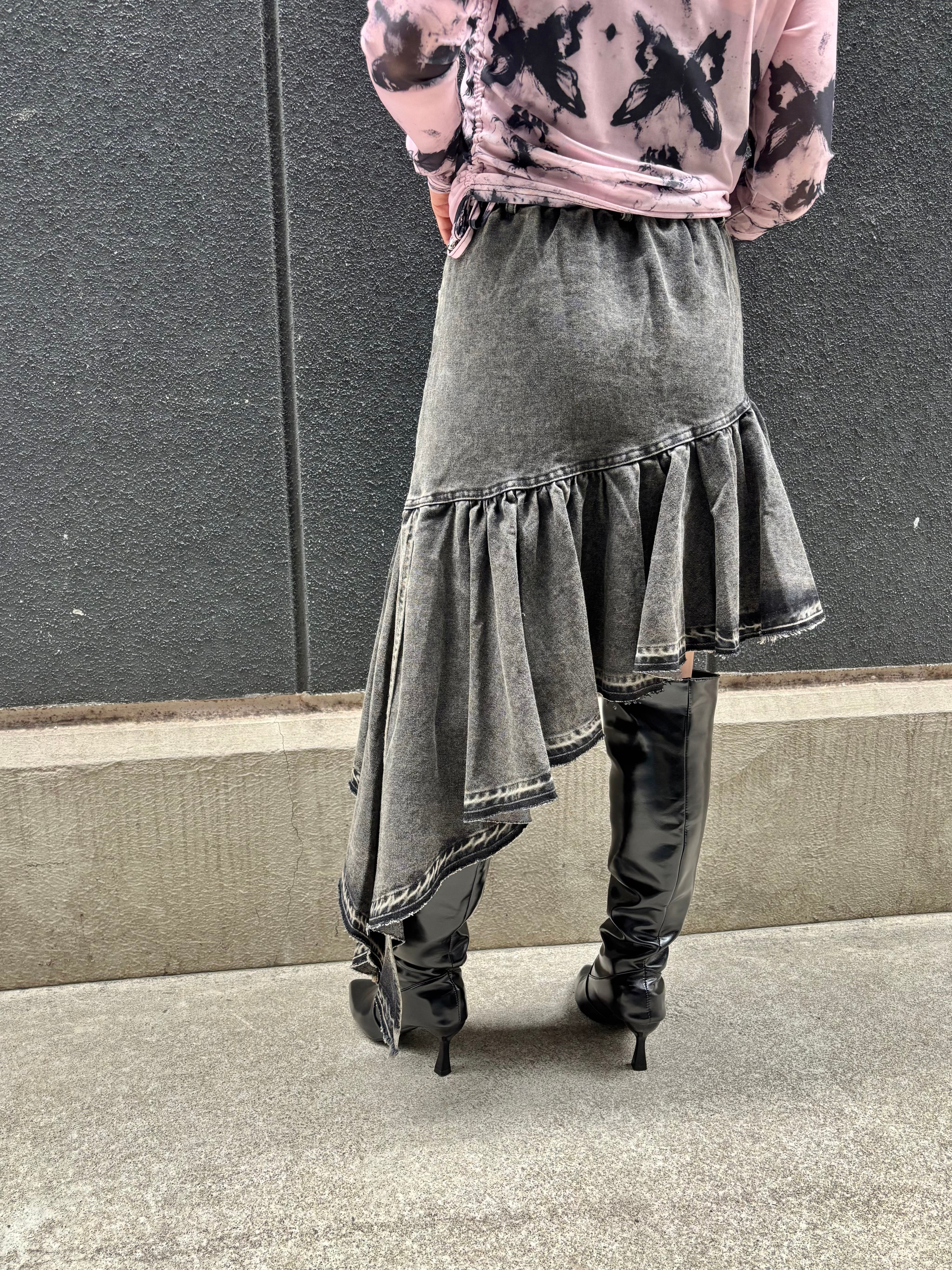 irregular asymmetry frill denim skirt スカート デニム スカート アシンメトリー イレギュラー