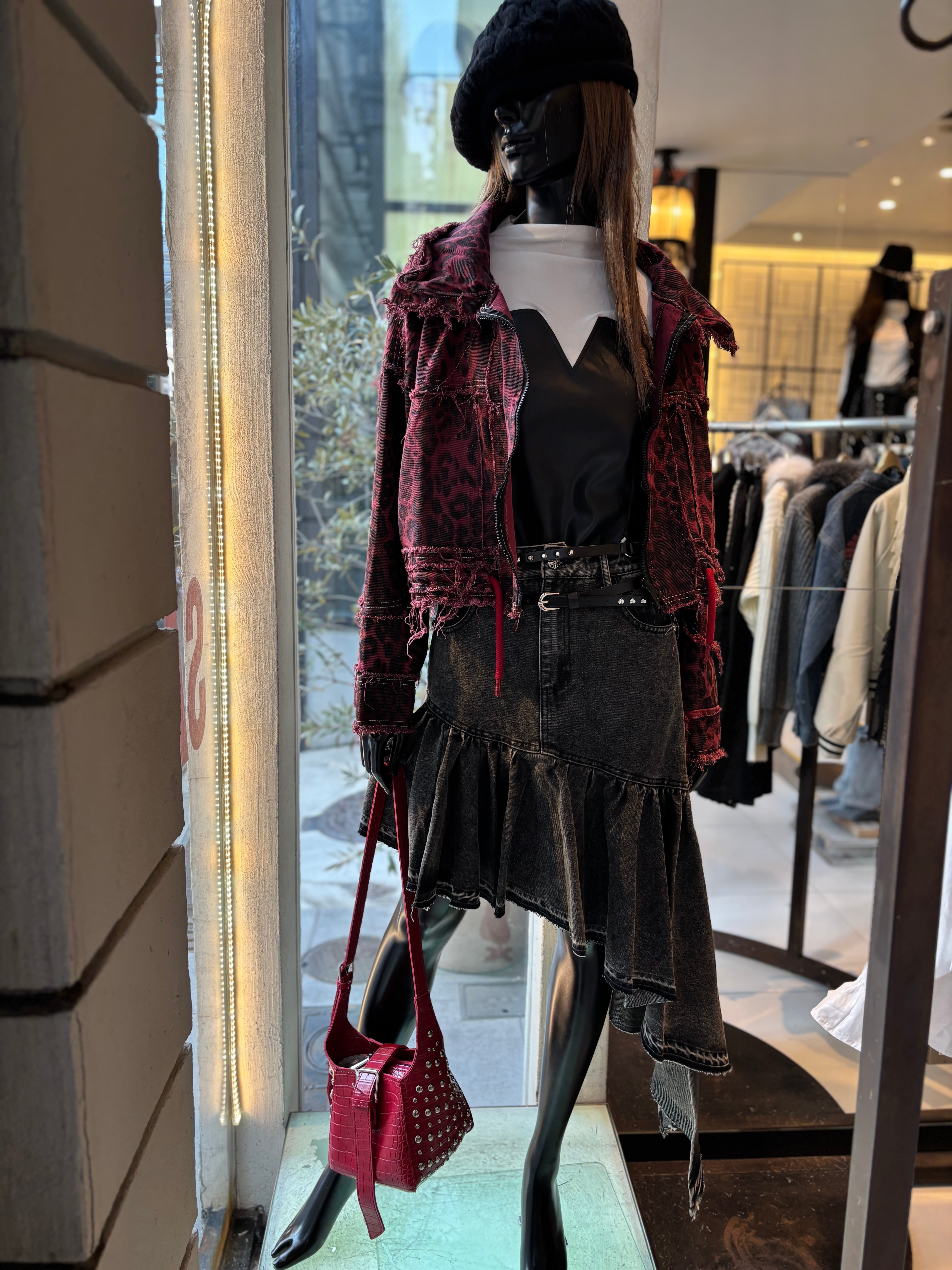 このイレギュラーアシンメトリーフリルデニムスカートは、独特なシルエットがスタイリングのアクセントになります。重ね着にもぴったりのデザインなので、シーズンを問わず活躍する一枚です。トレンド感を引き立てるフリルが、さりげなく女性らしさを演出してくれます。