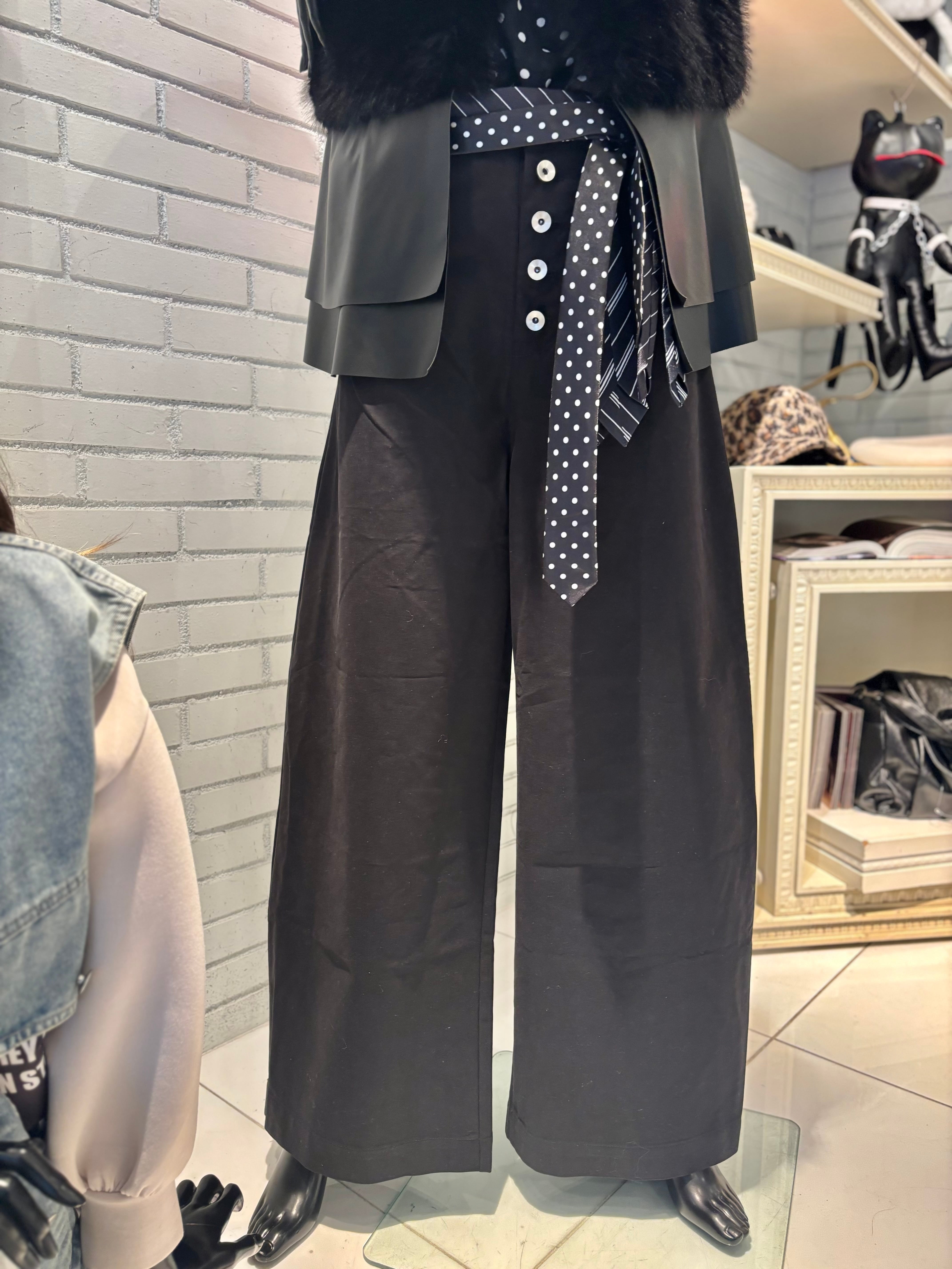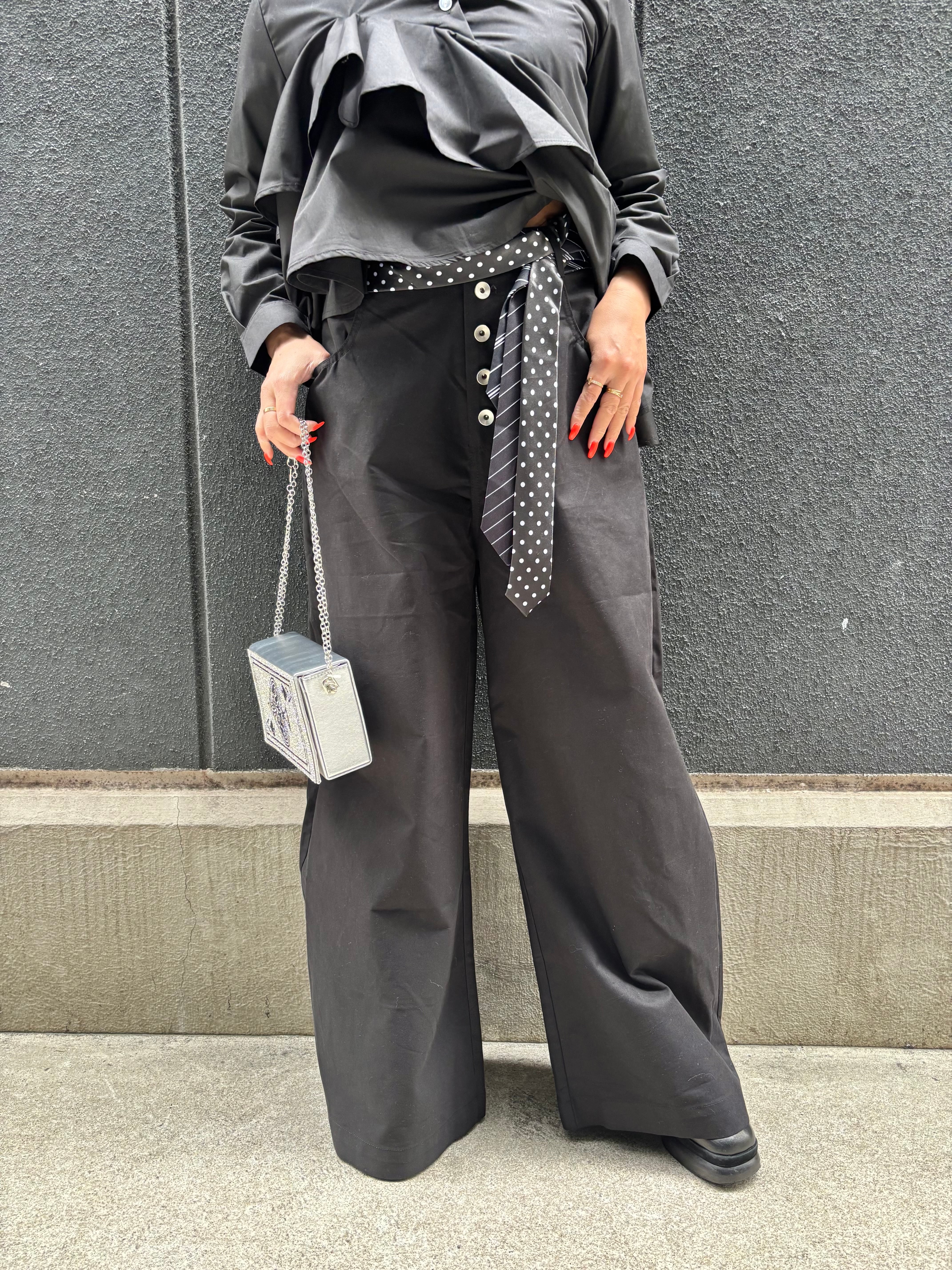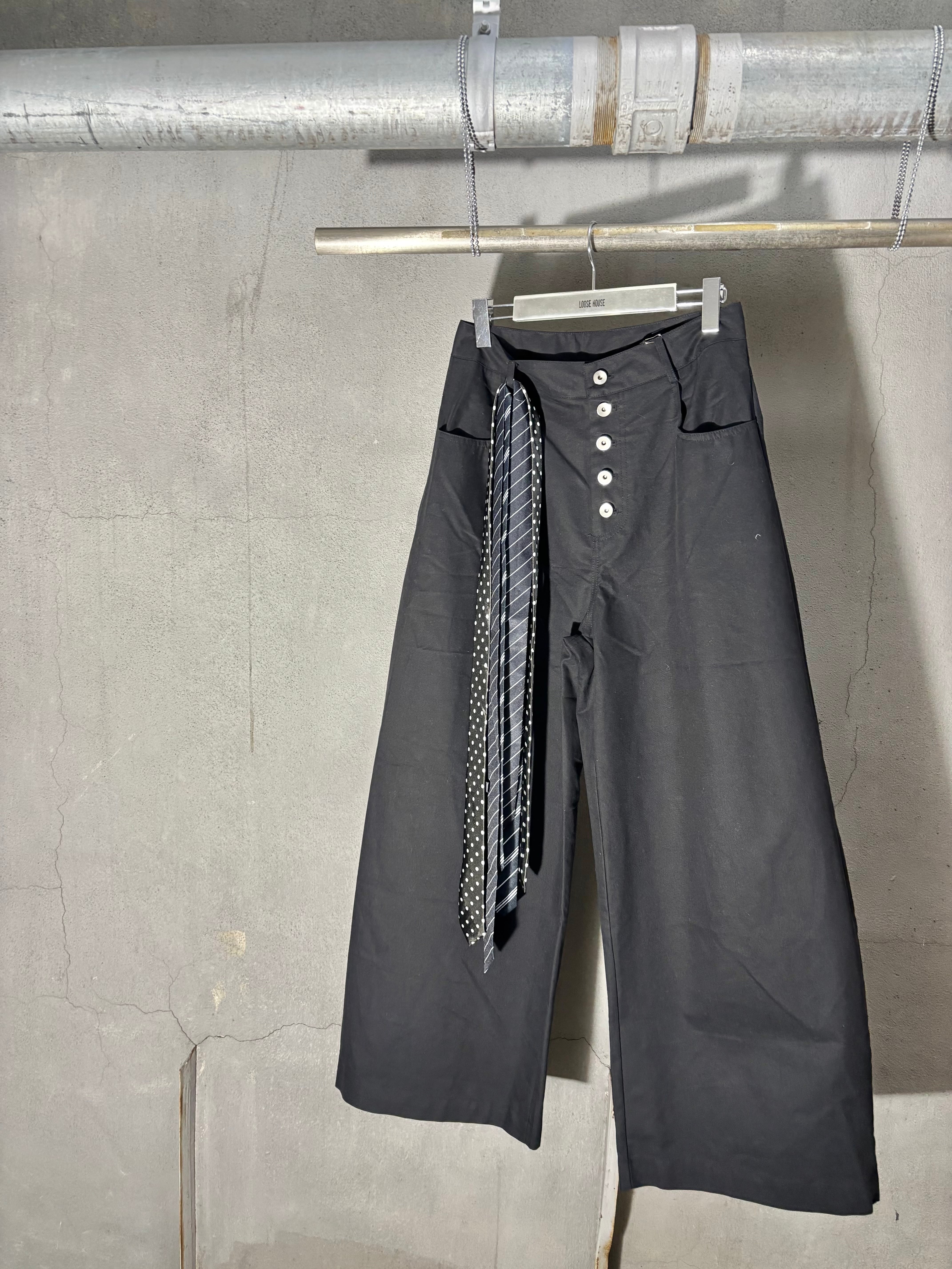 button waist × tie belt design cotton wide pants パンツ ワイドパンツ コットン タイ ベルト ブラック 黒