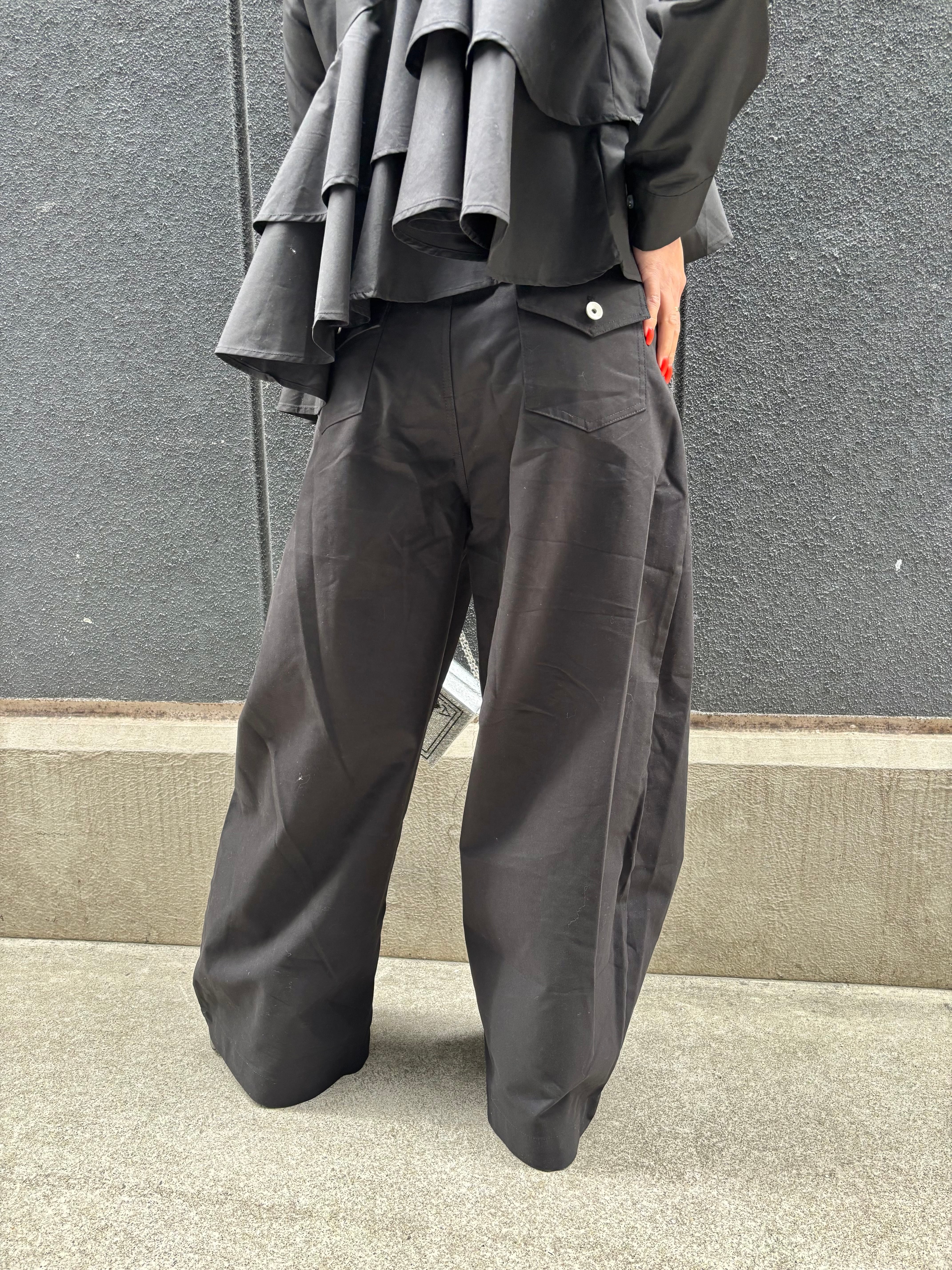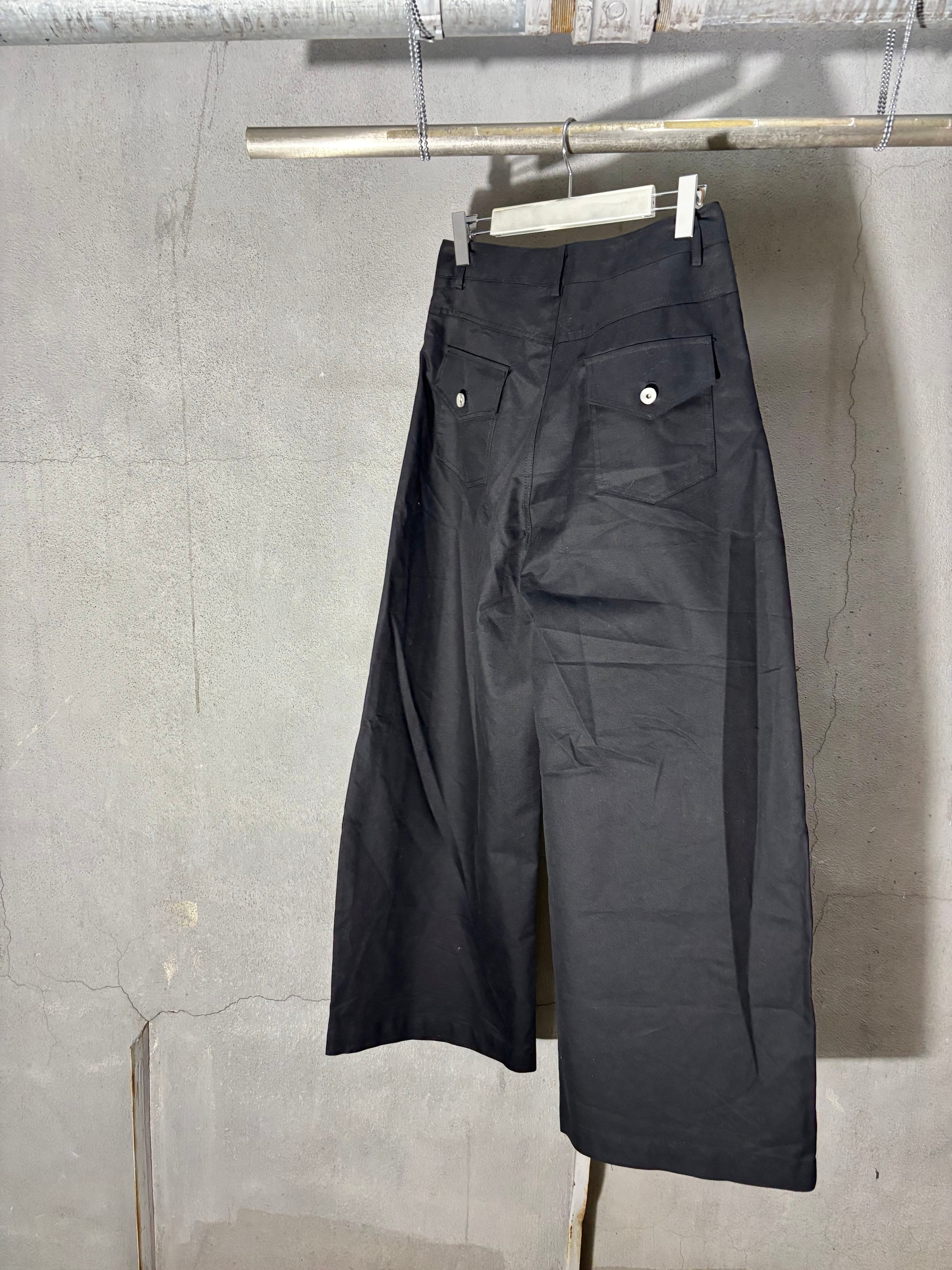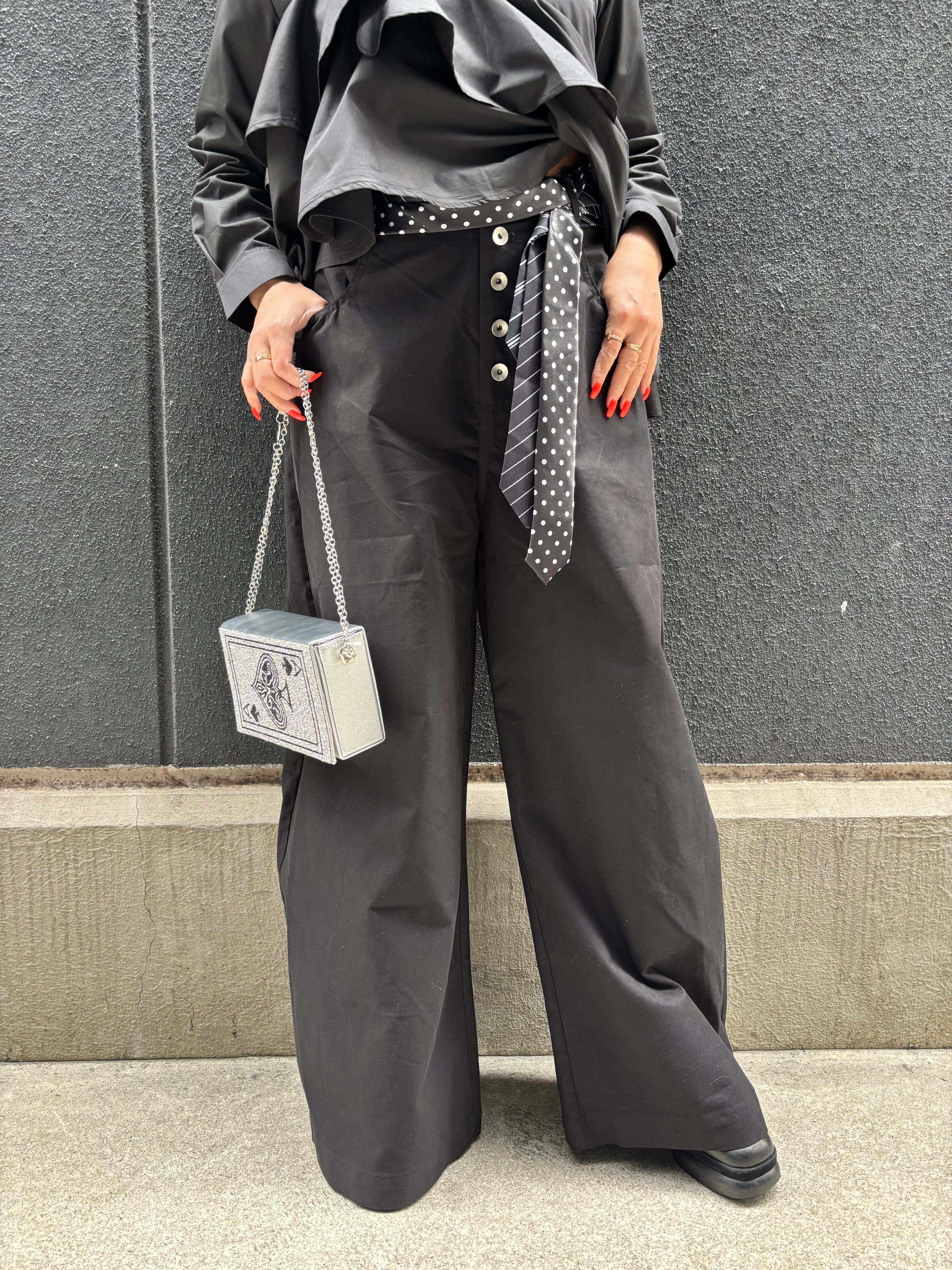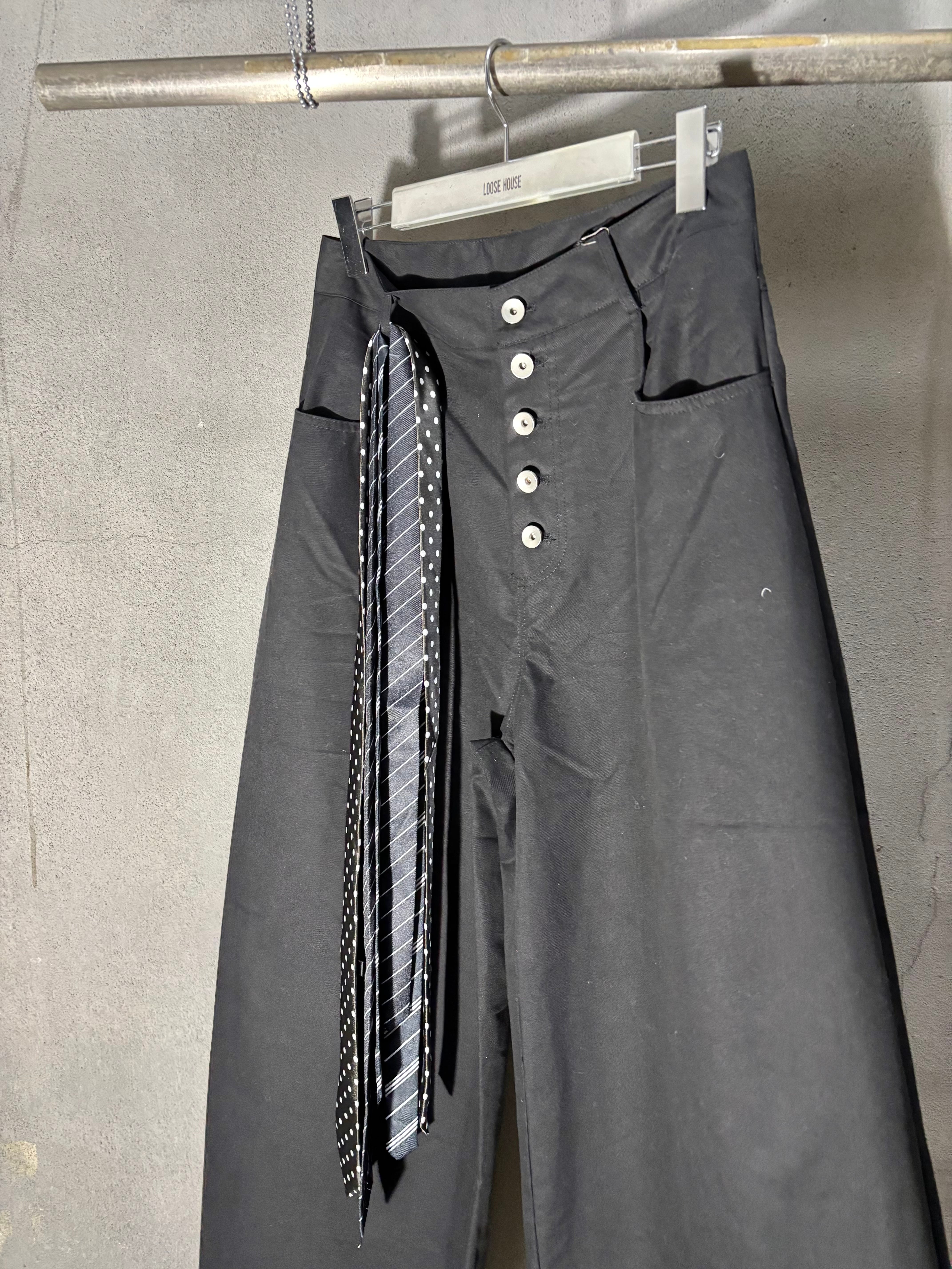 button waist × tie belt design cotton wide pants パンツ ワイドパンツ コットン タイ ベルト ブラック 黒