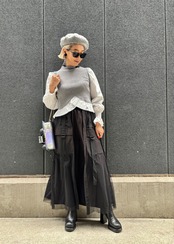 ポケットとチュールの組み合わせが個性的です。