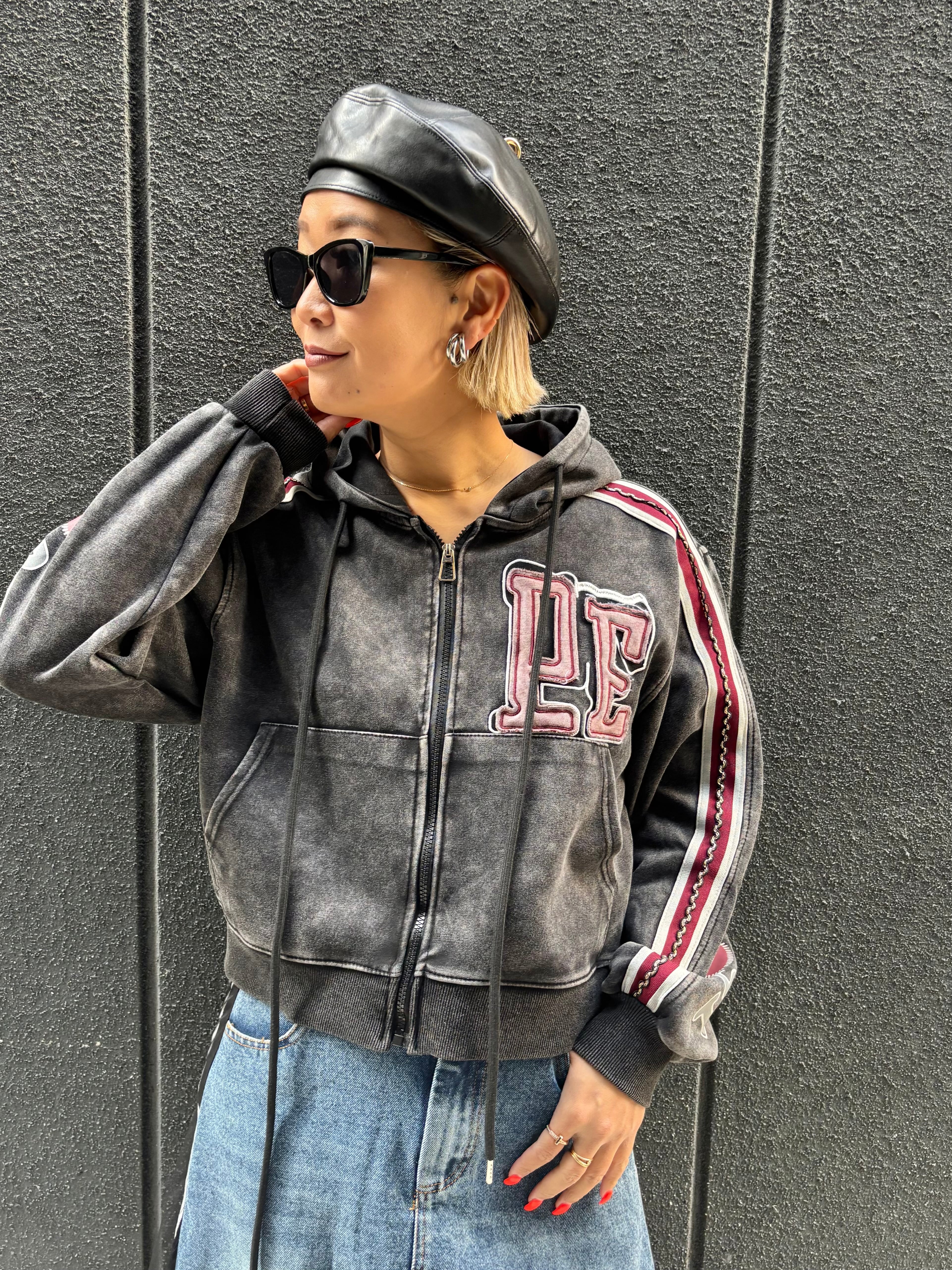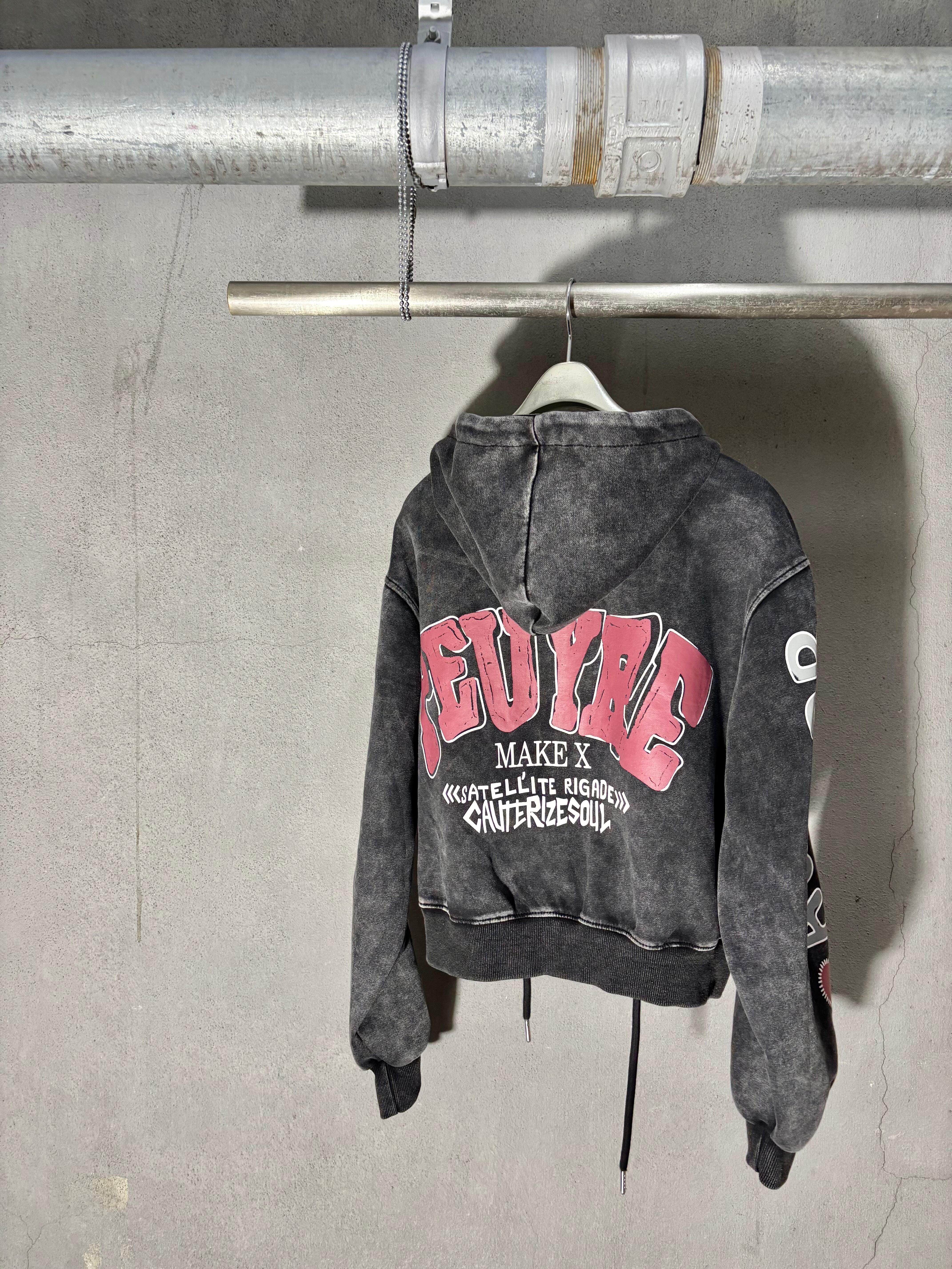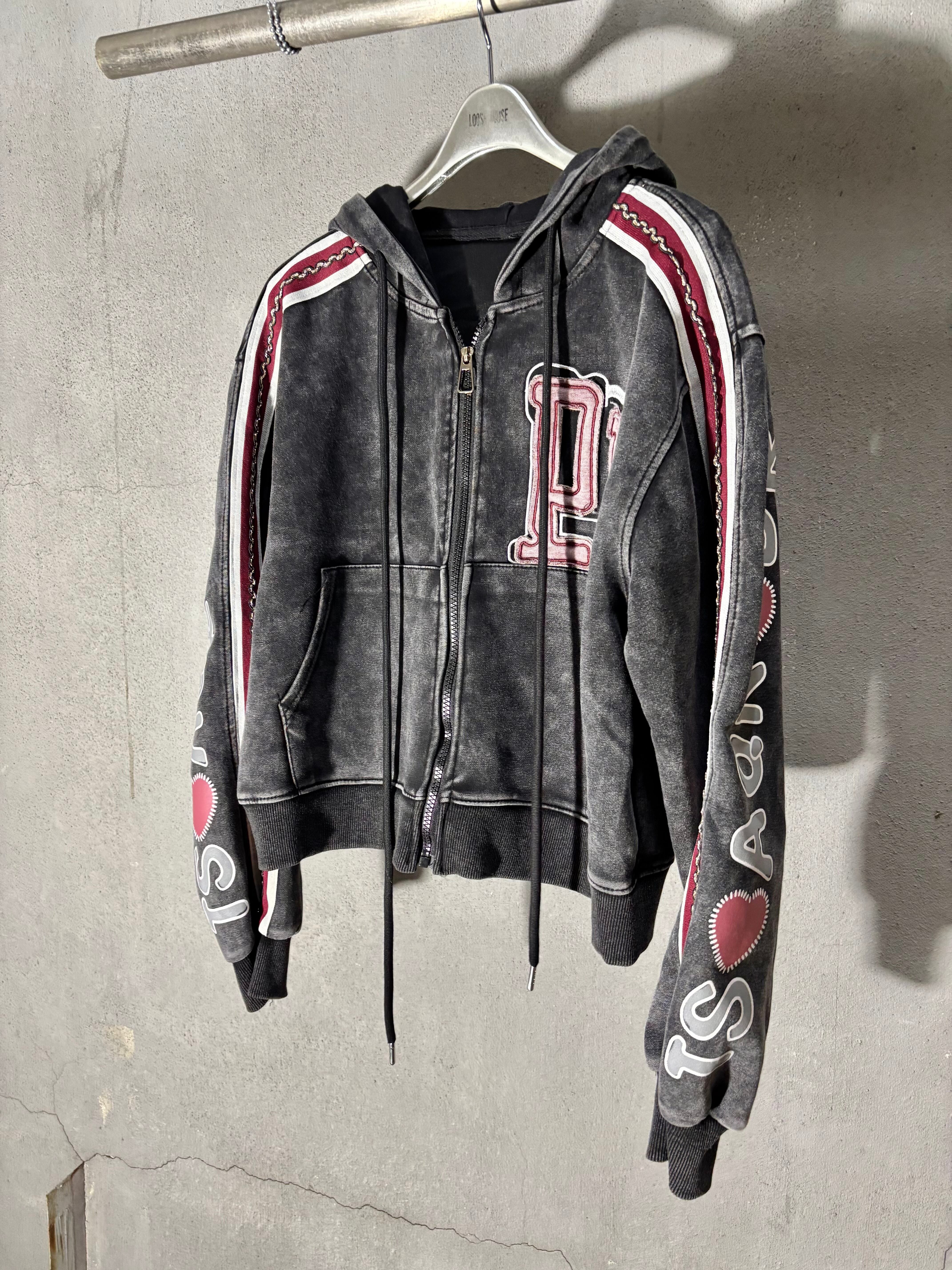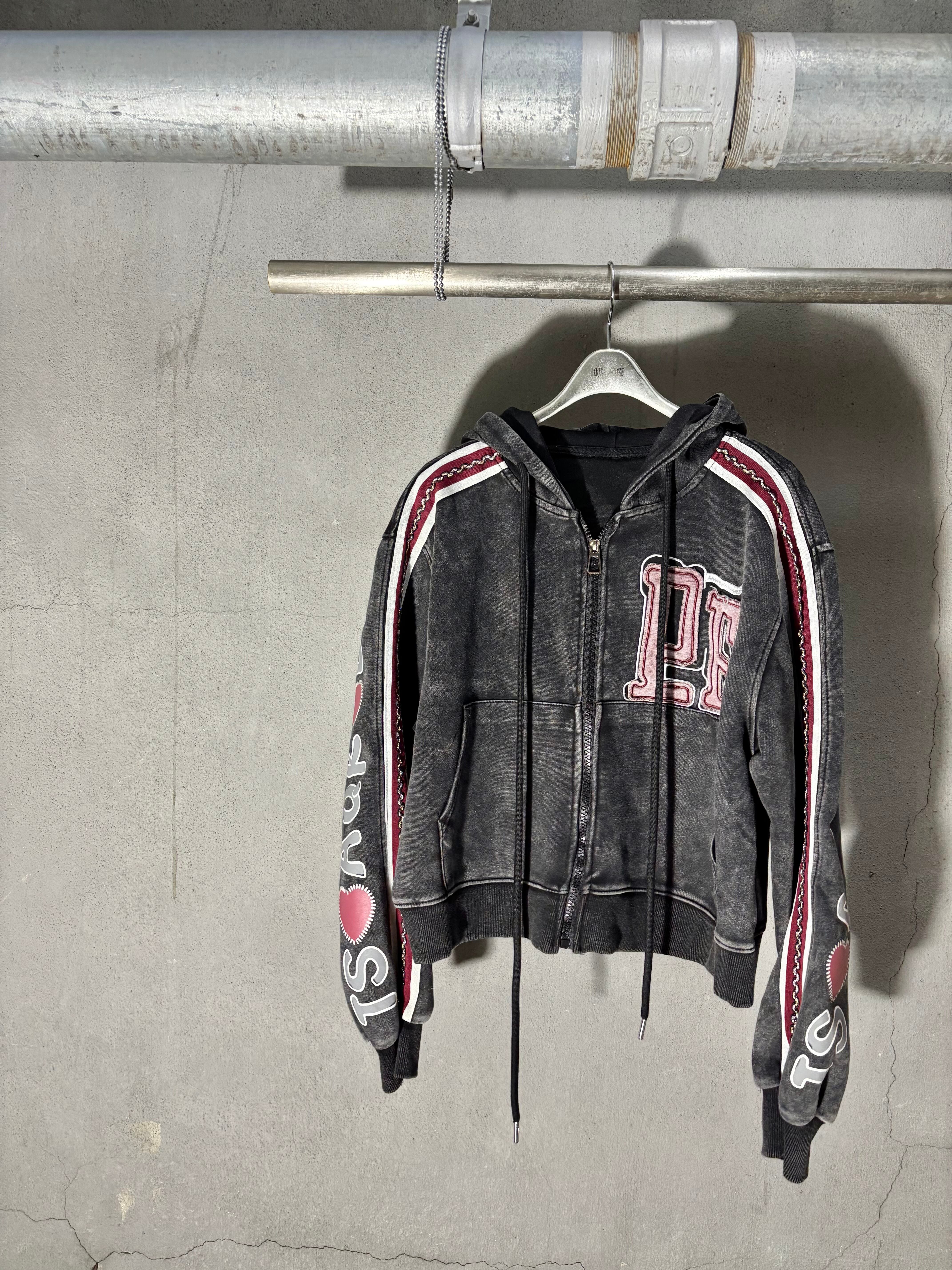 bleach wash × paint patch design hoodie jacket ジャケット フーディー フード ダメージ ブリーチ ライン入り ジップアップ