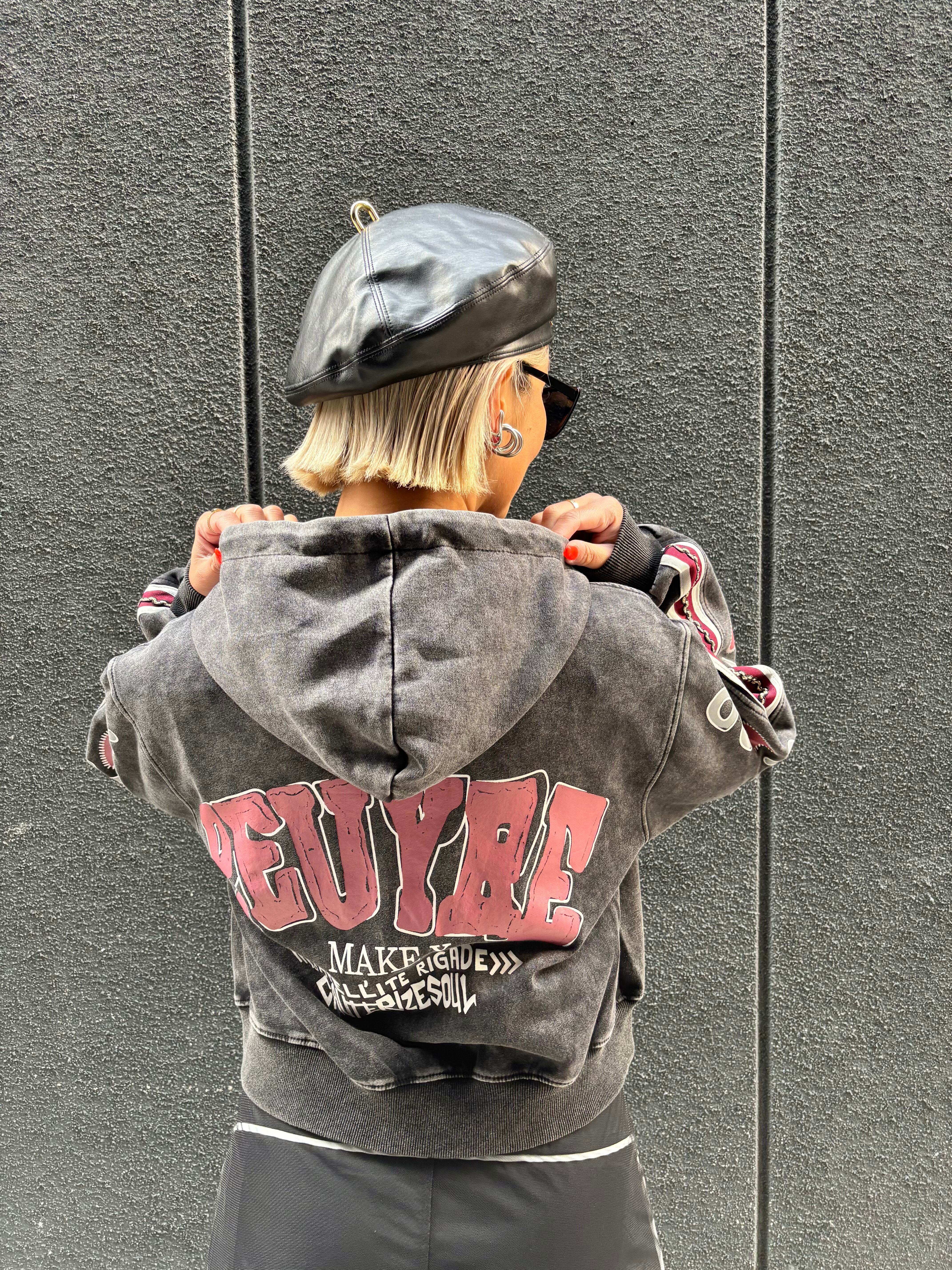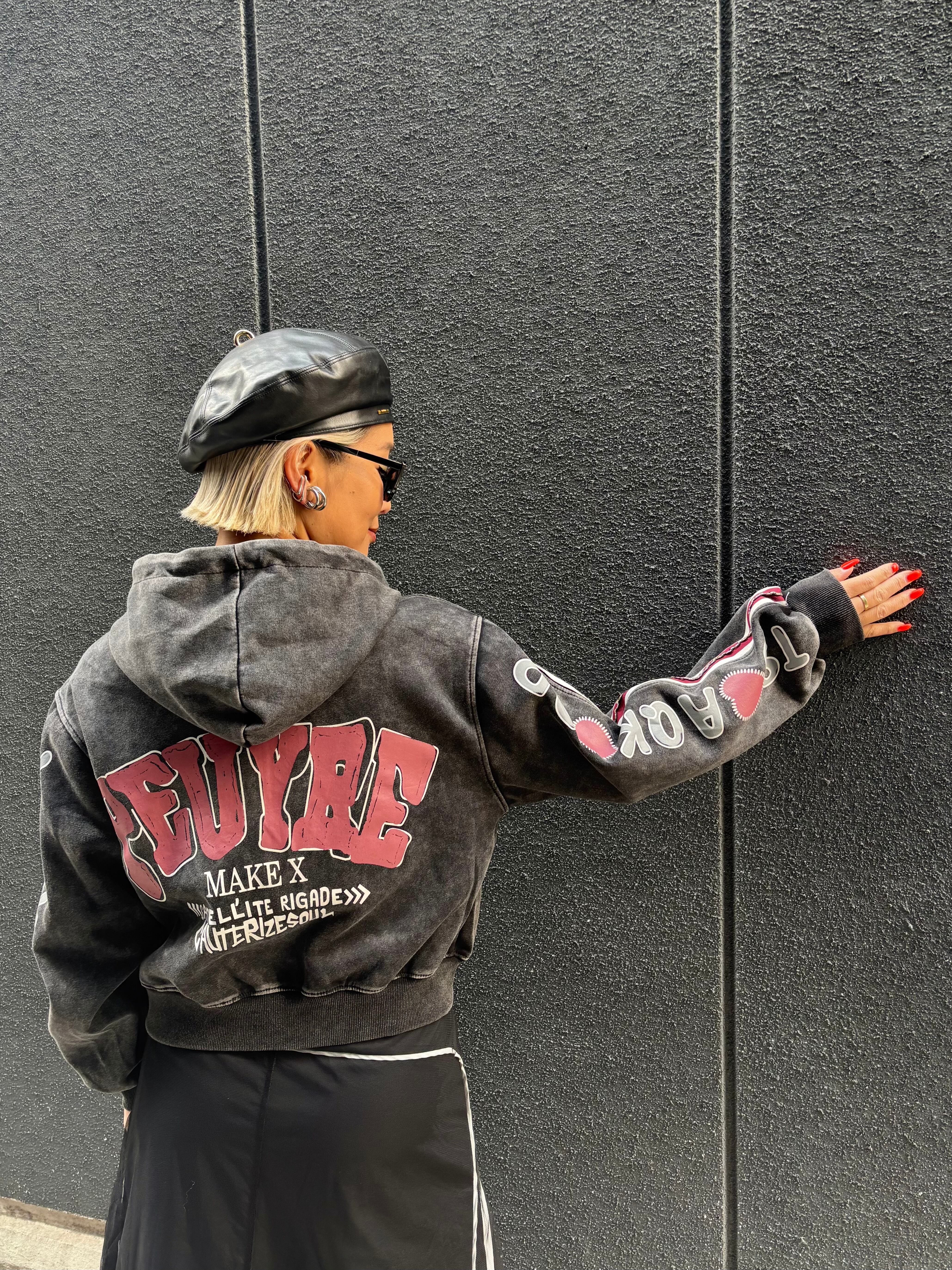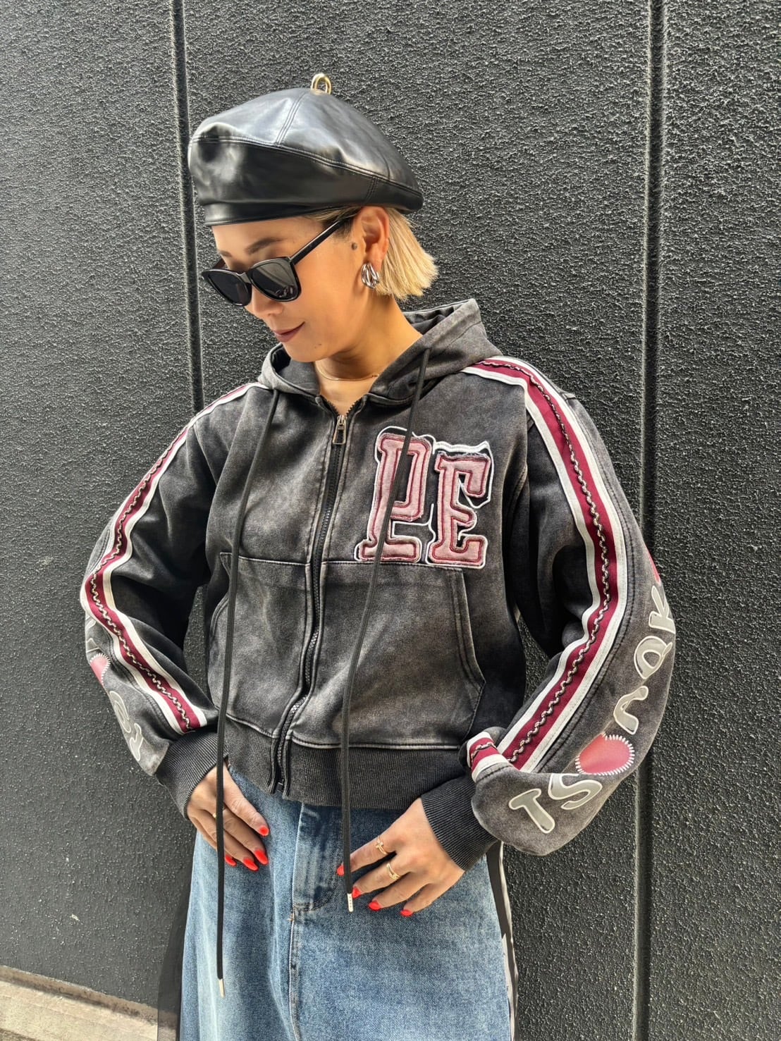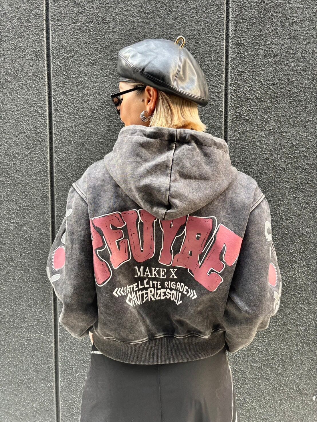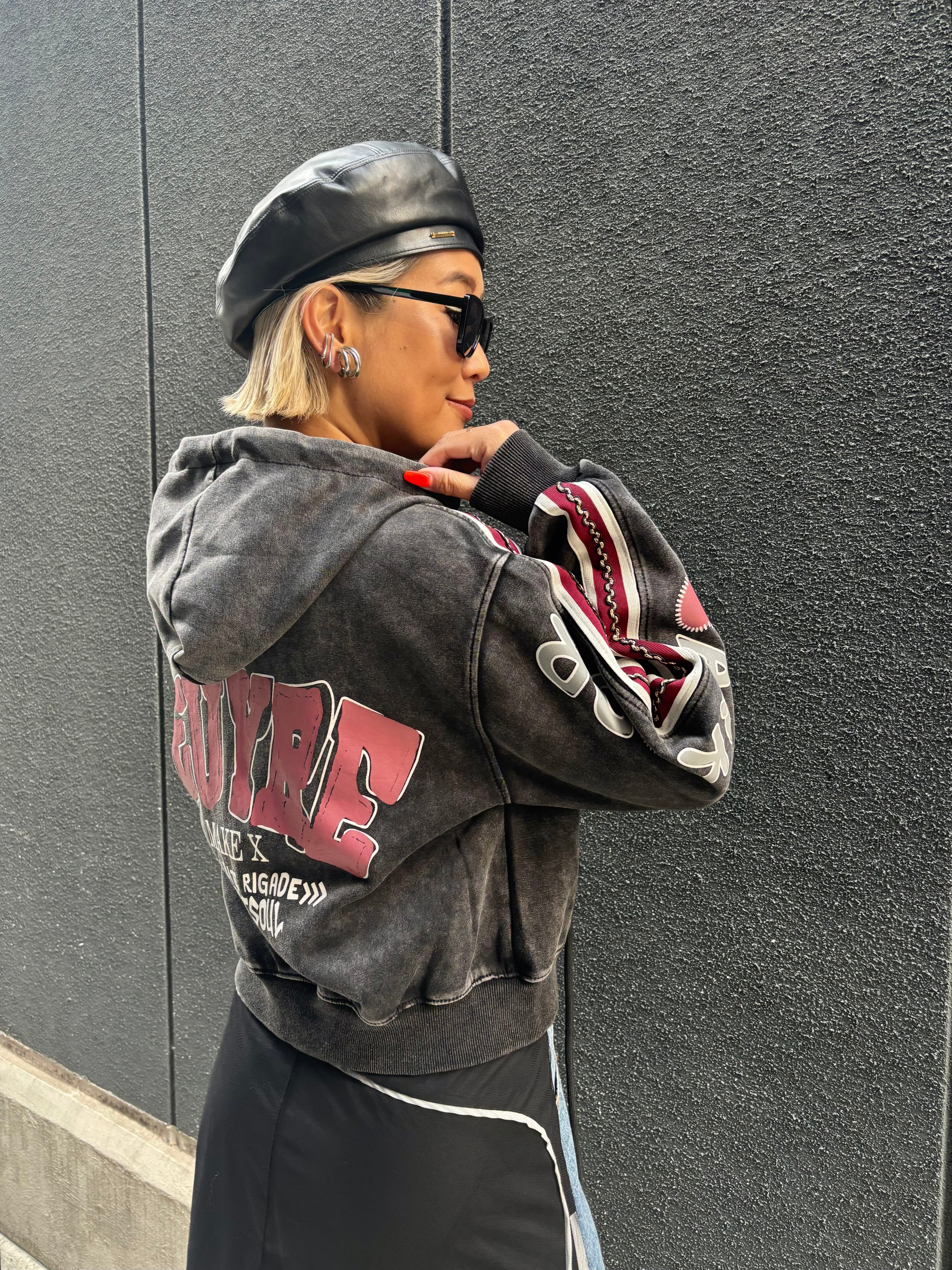 bleach wash × paint patch design hoodie jacket ジャケット フーディー フード ダメージ ブリーチ ライン入り ジップアップ