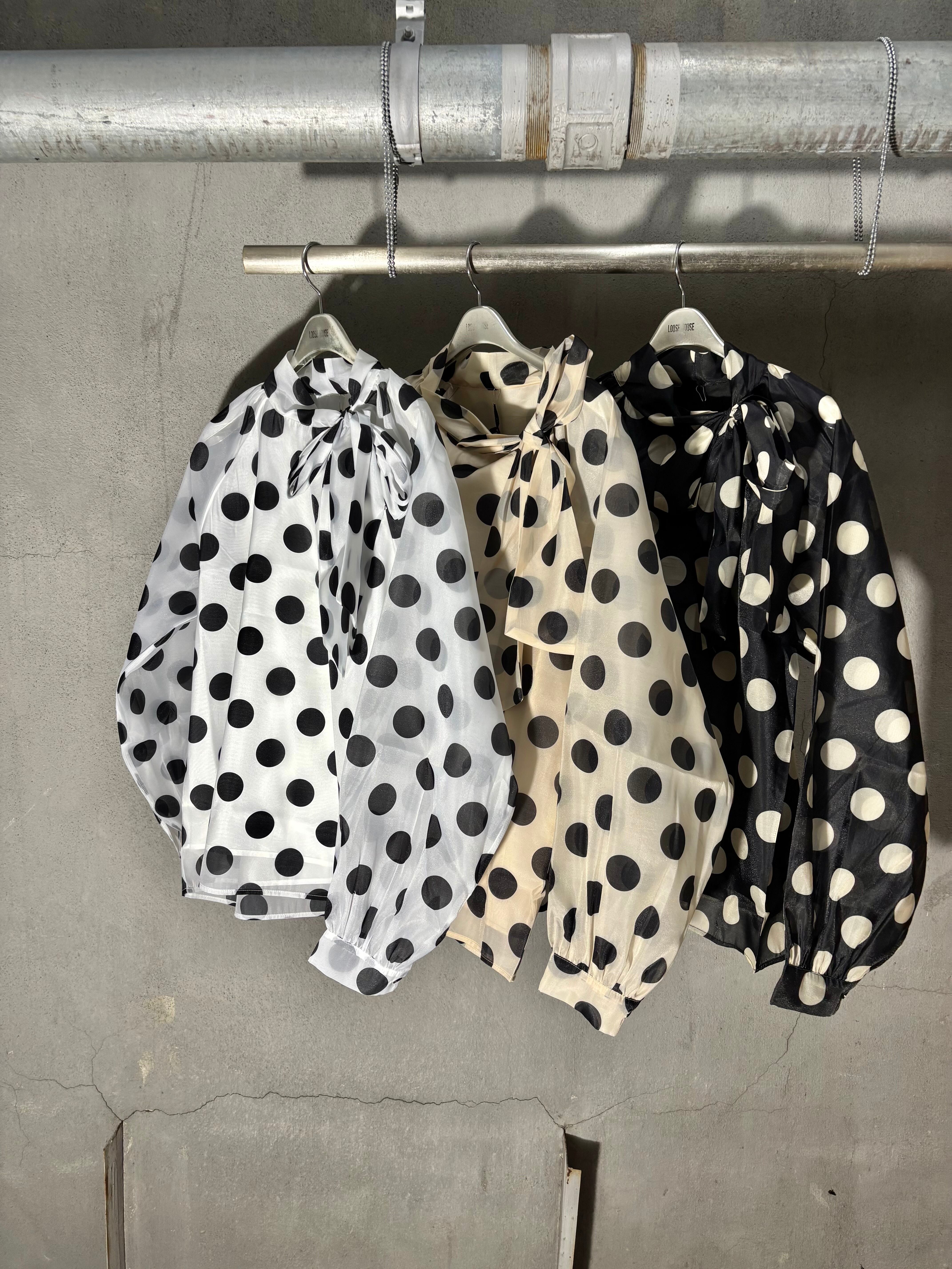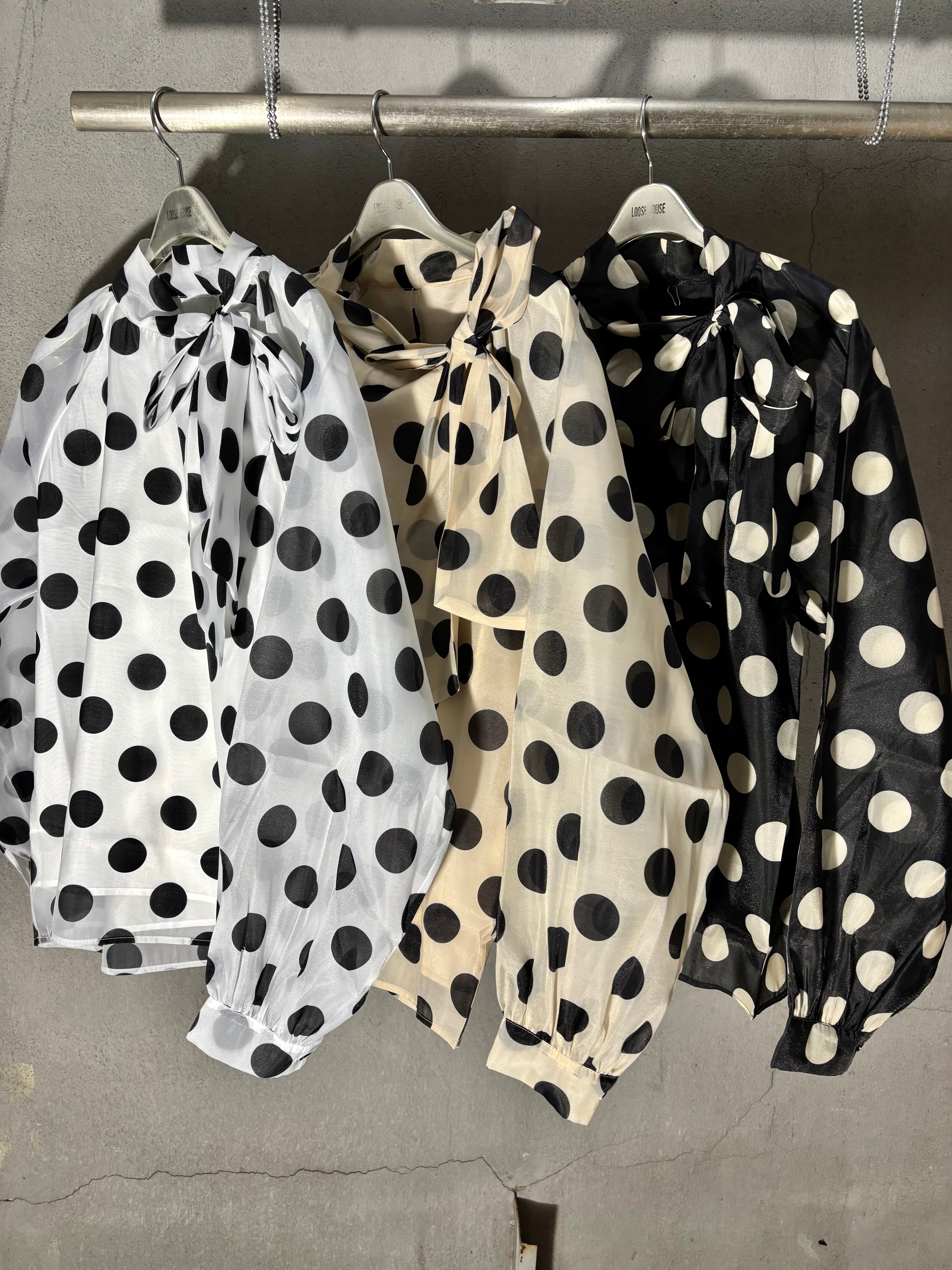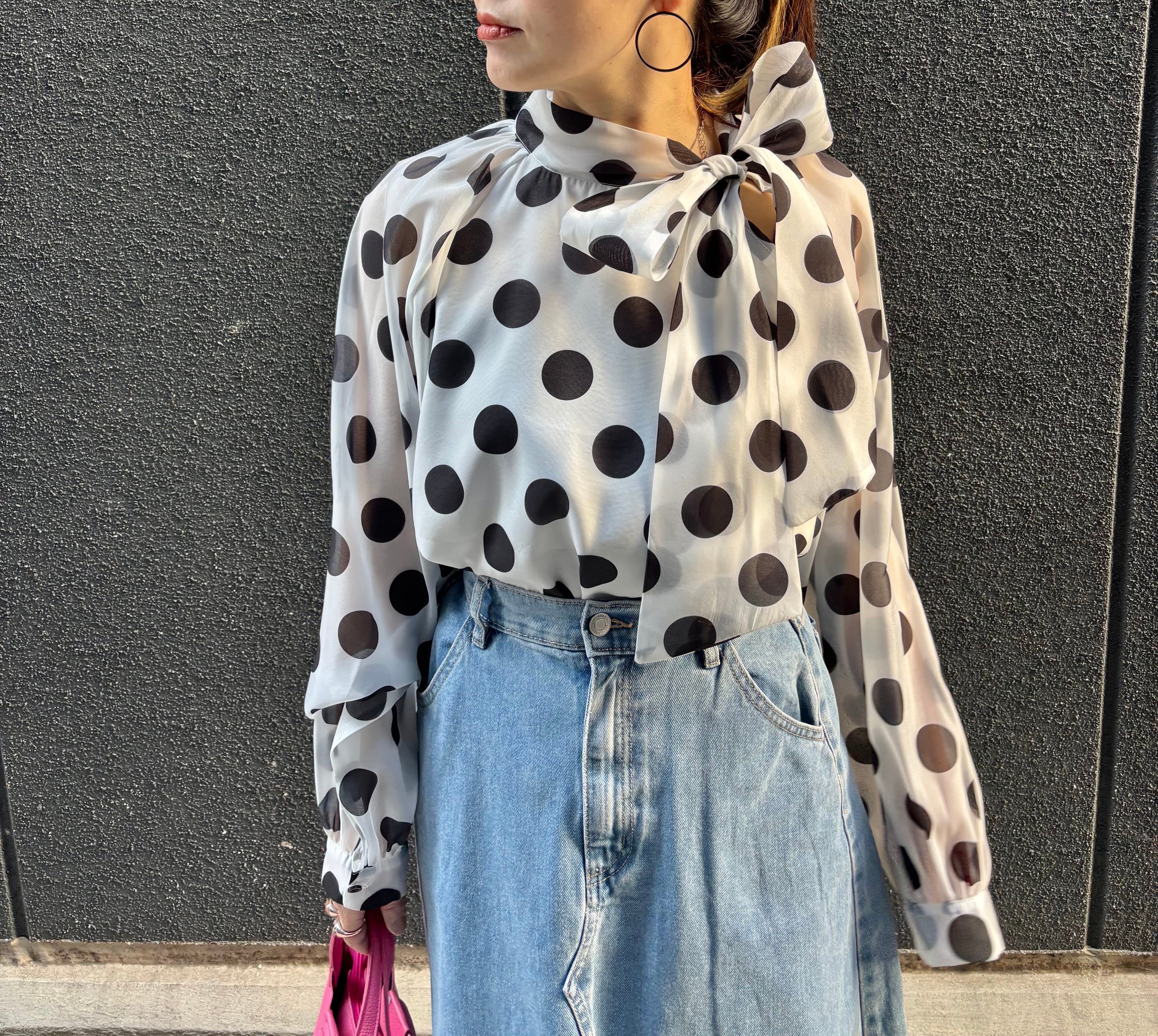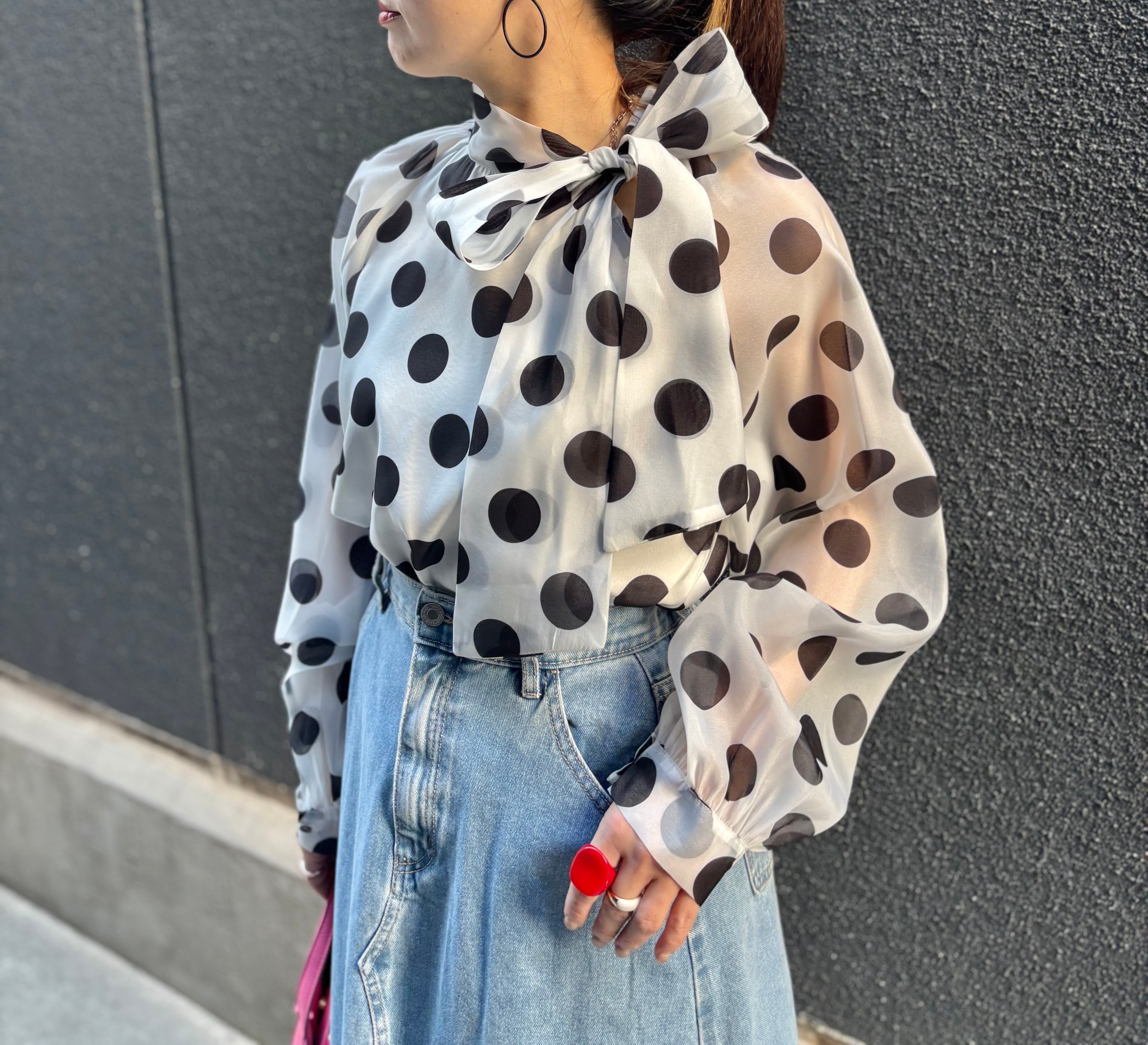 dot × chiffon bow-tie design tops blouse トップス ブラウス ドット 水玉 リボン タイ