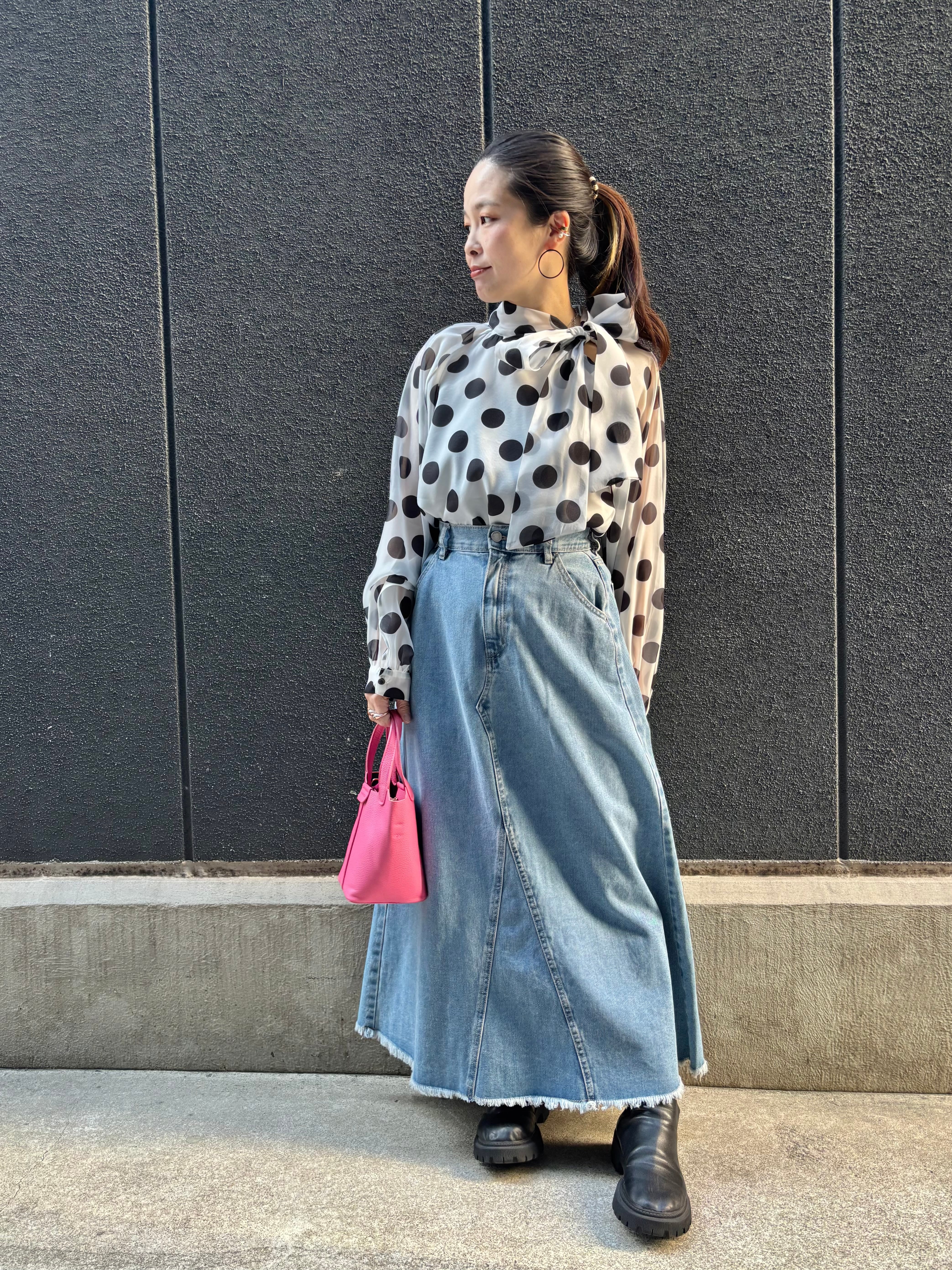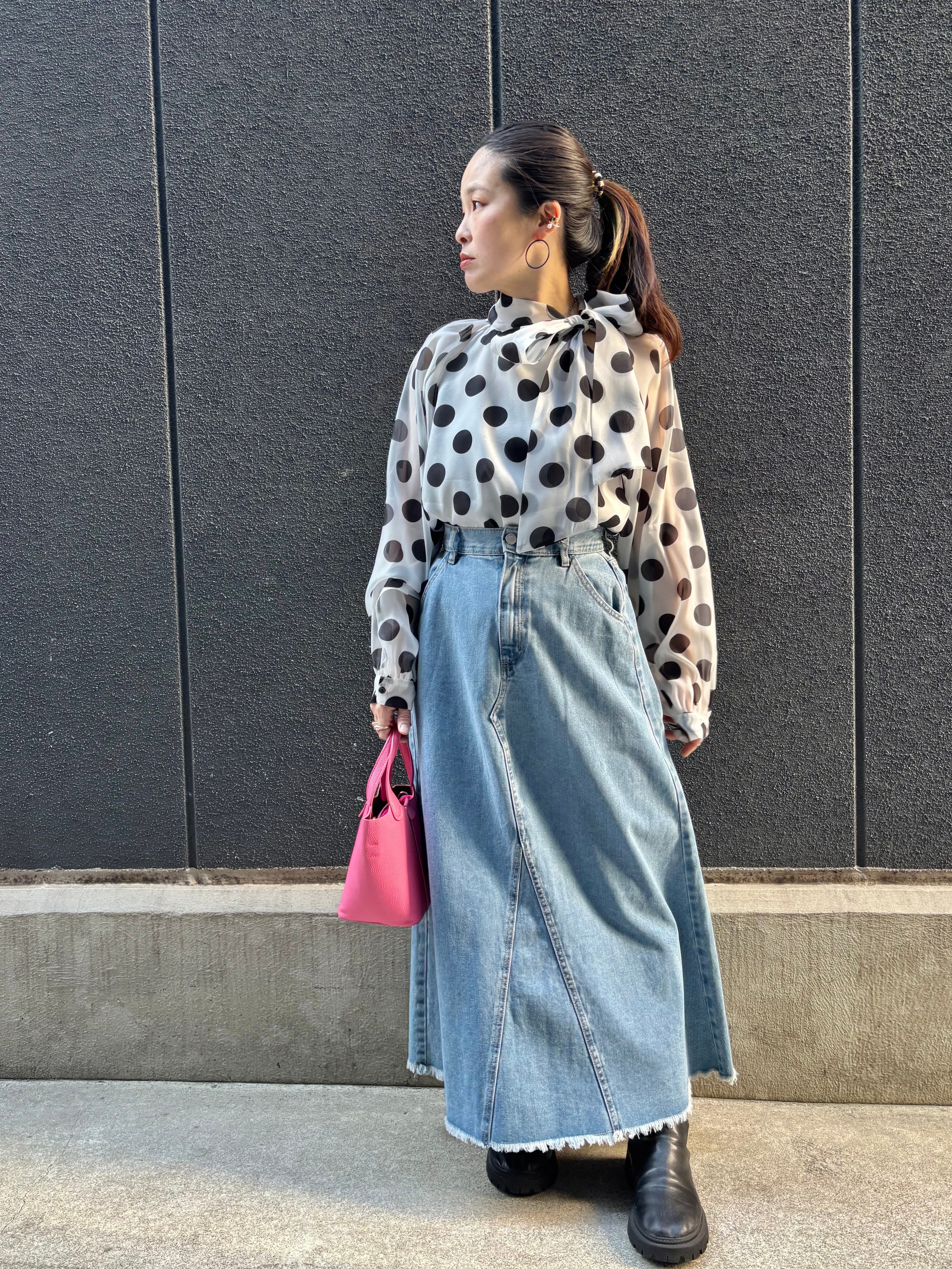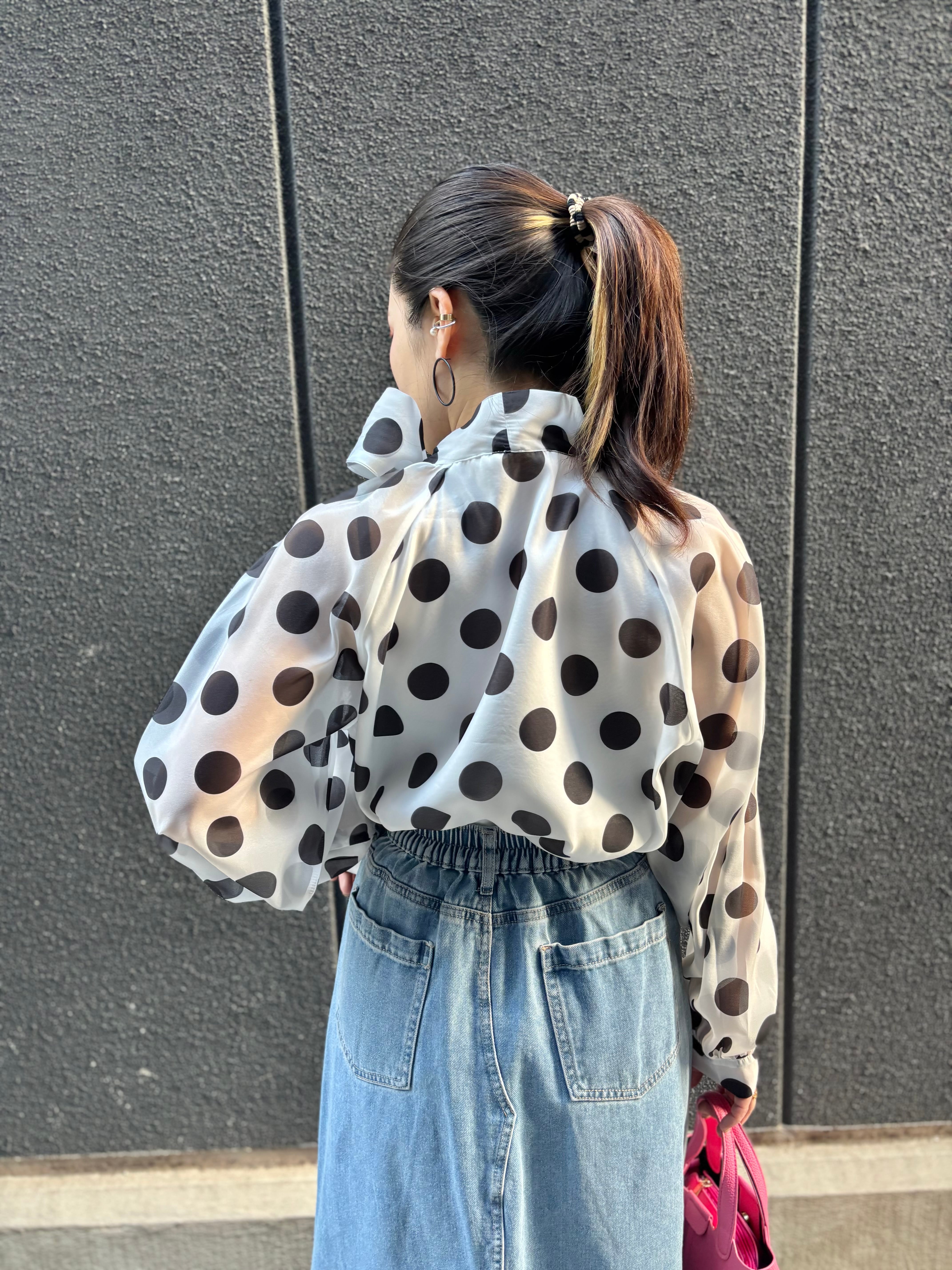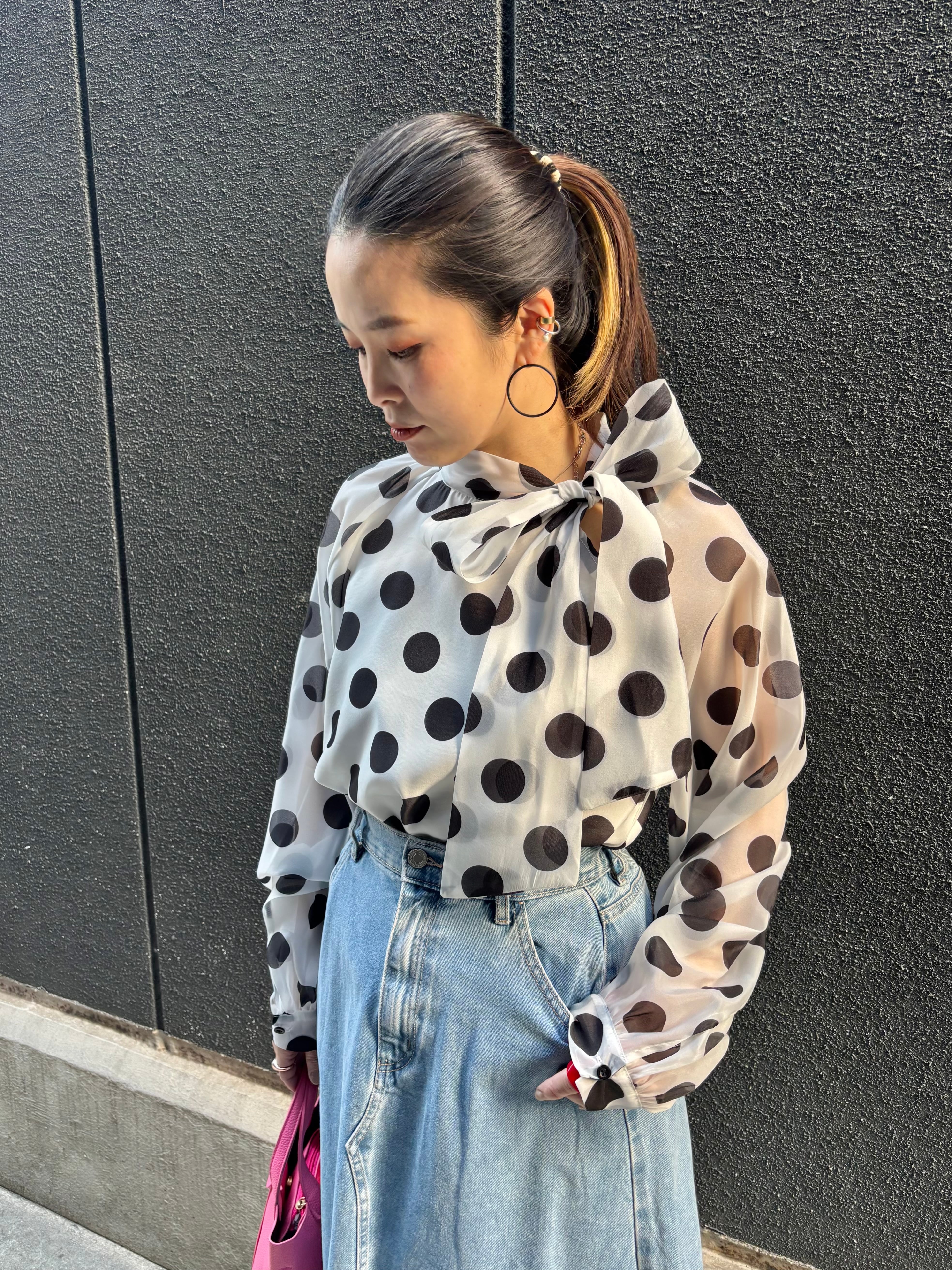 dot × chiffon bow-tie design tops blouse トップス ブラウス ドット 水玉 リボン タイ