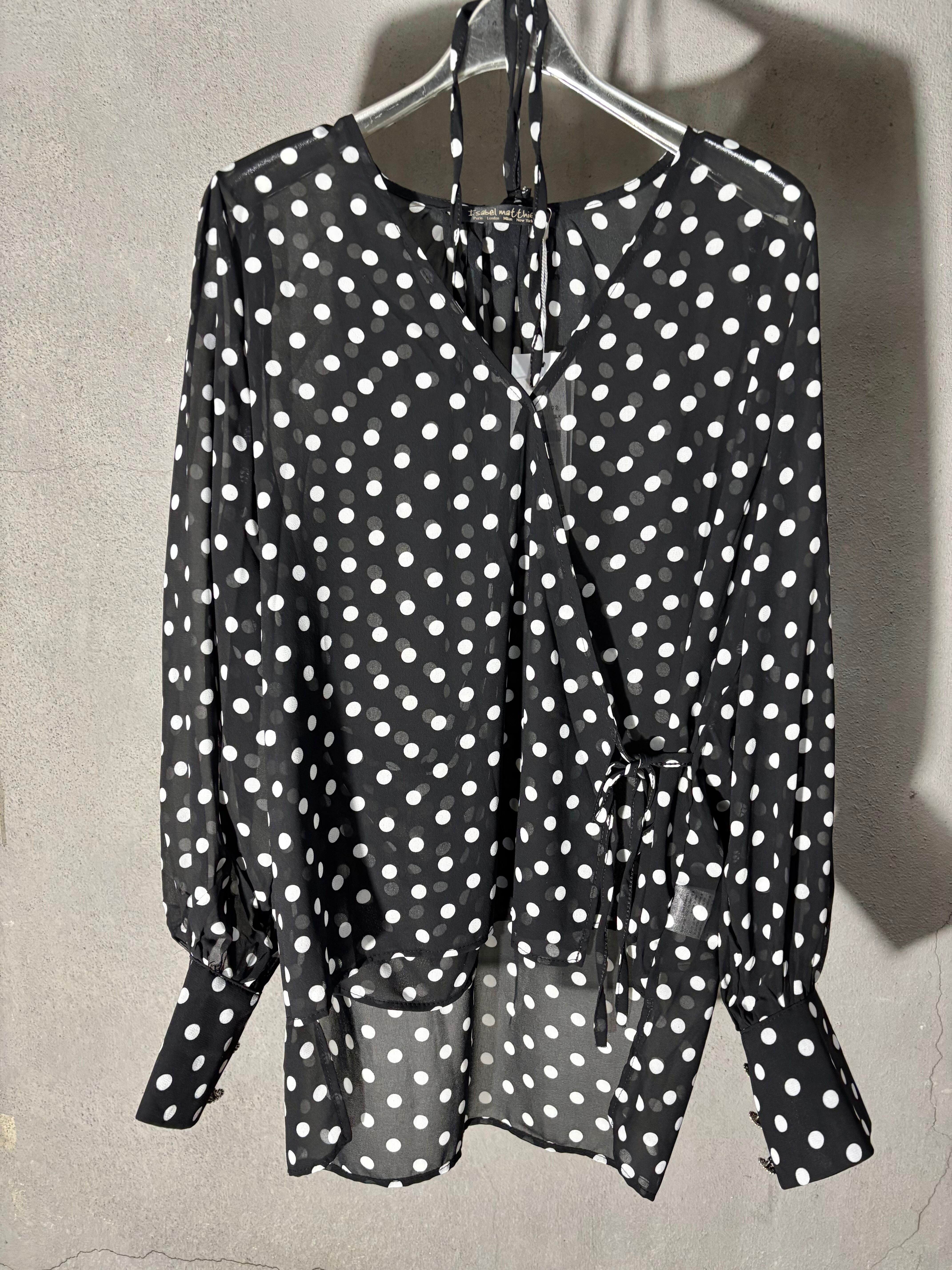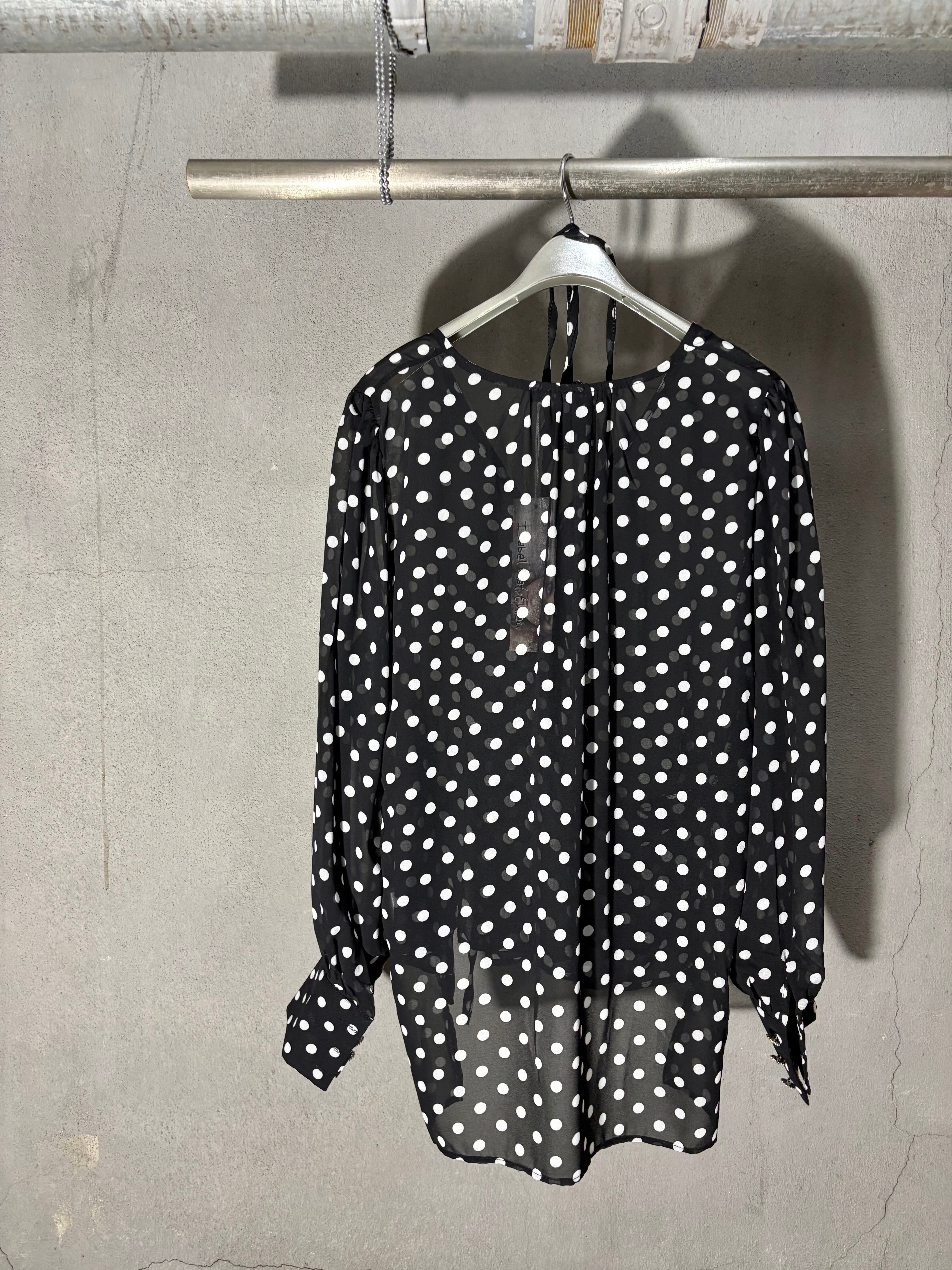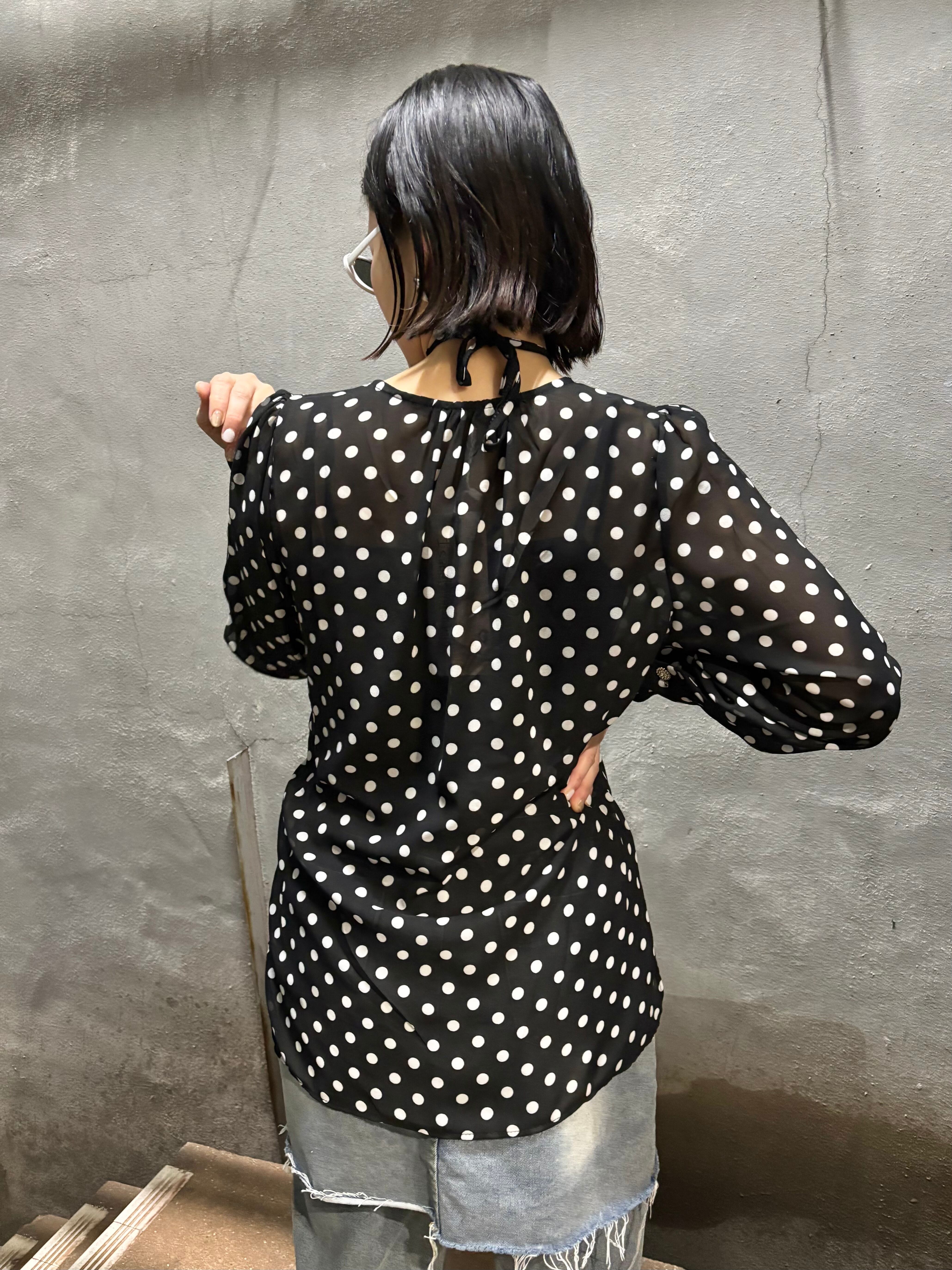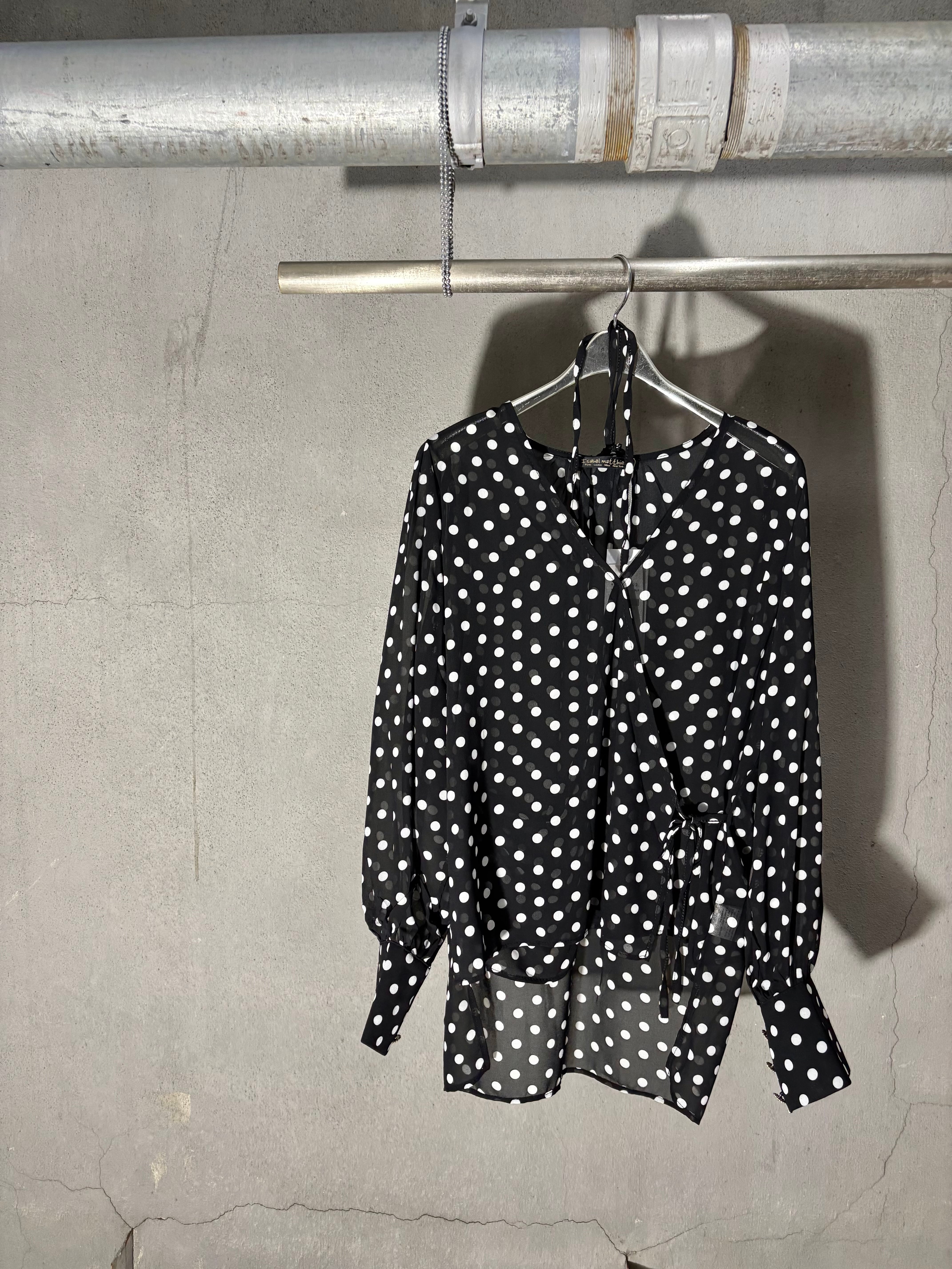 dot × chiffon cache-coeur V-neck design tops トップス カシュクール ドット 水玉 シフォン 白黒 シースルー