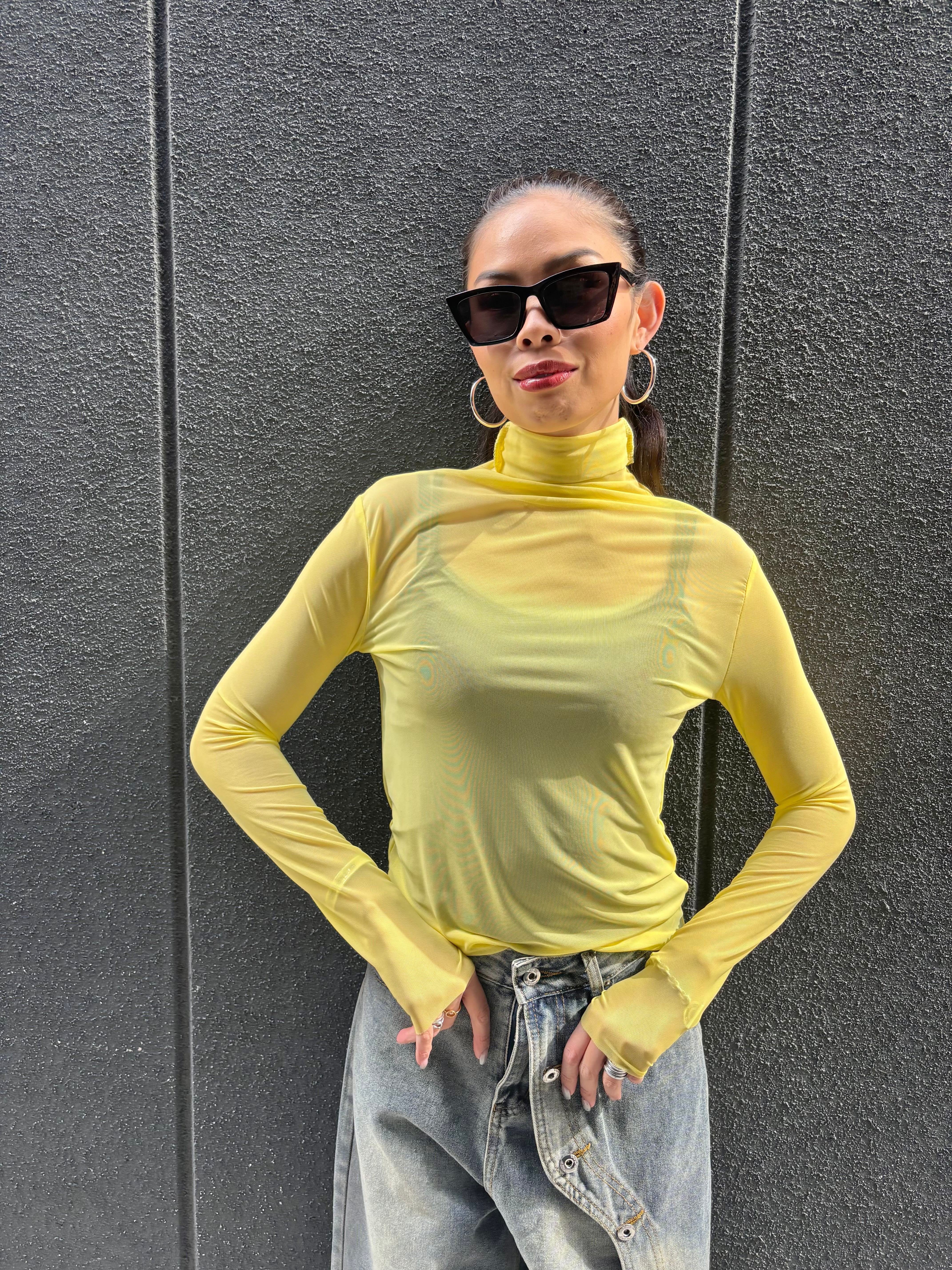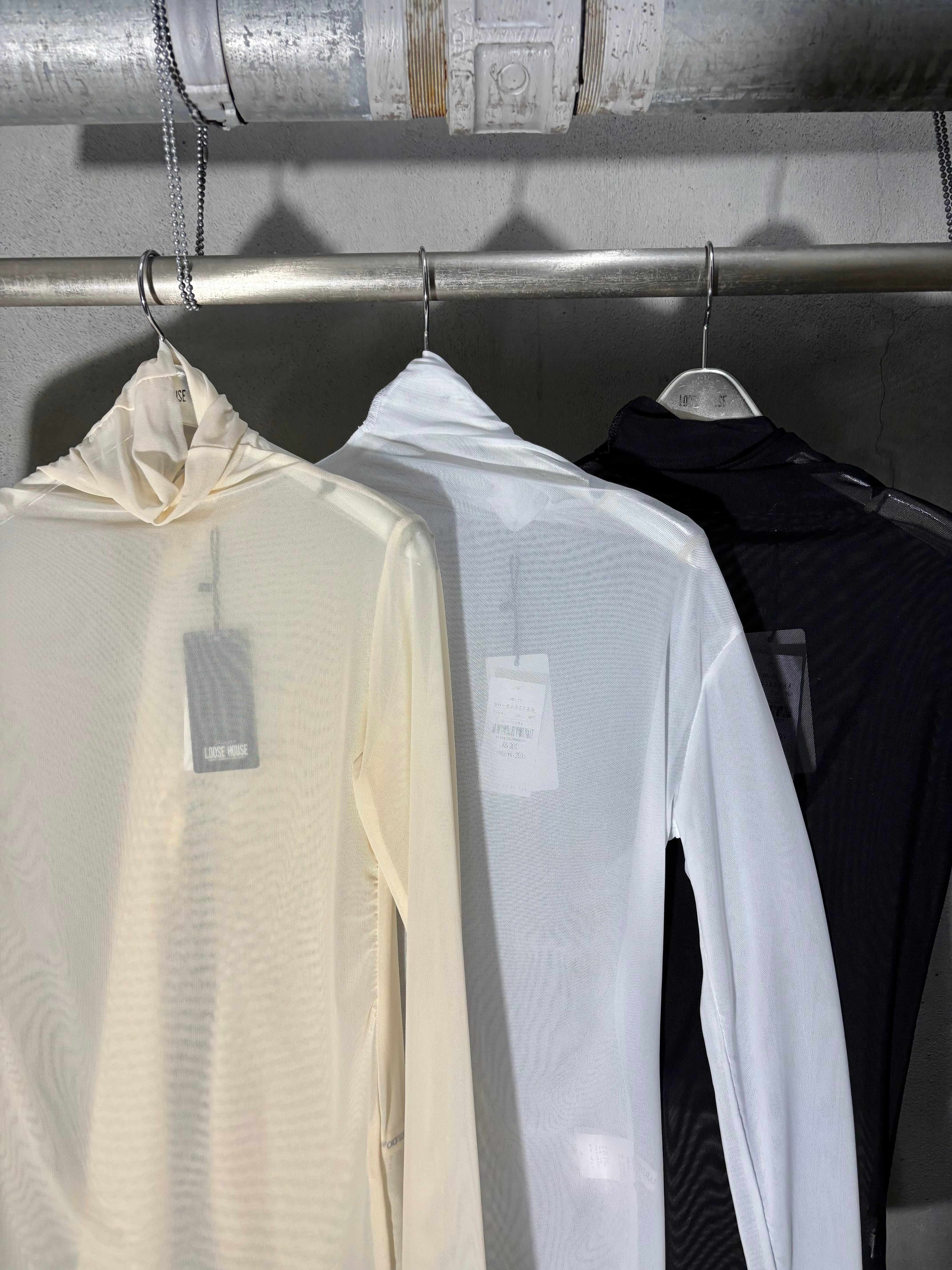 stretch mesh high neck design tops トップス ストレッチ メッシュ ハイネック 重ね着