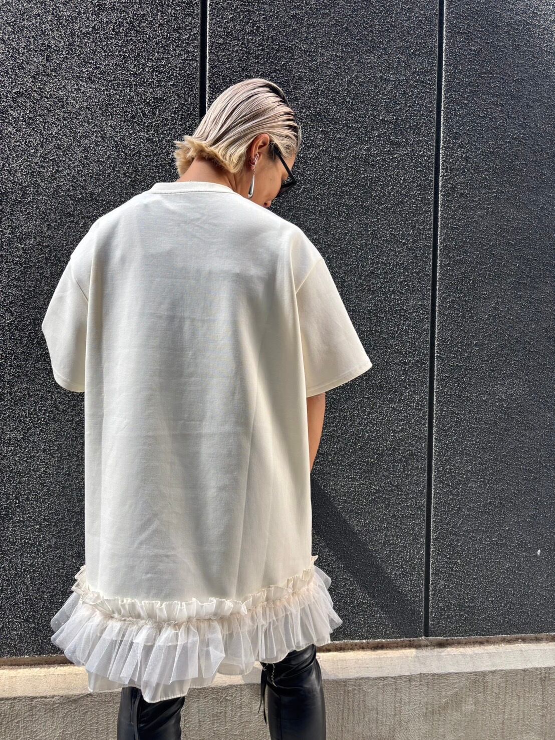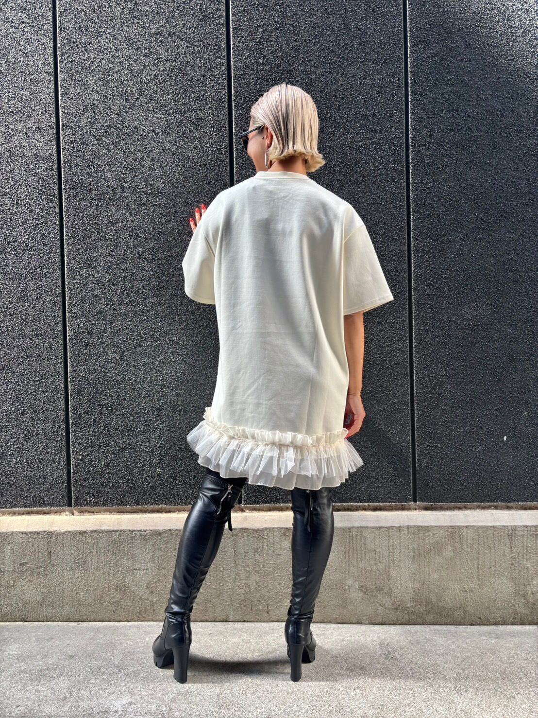 ミニワンピ風な着こなしにブーツを合わせるのも可愛い♡