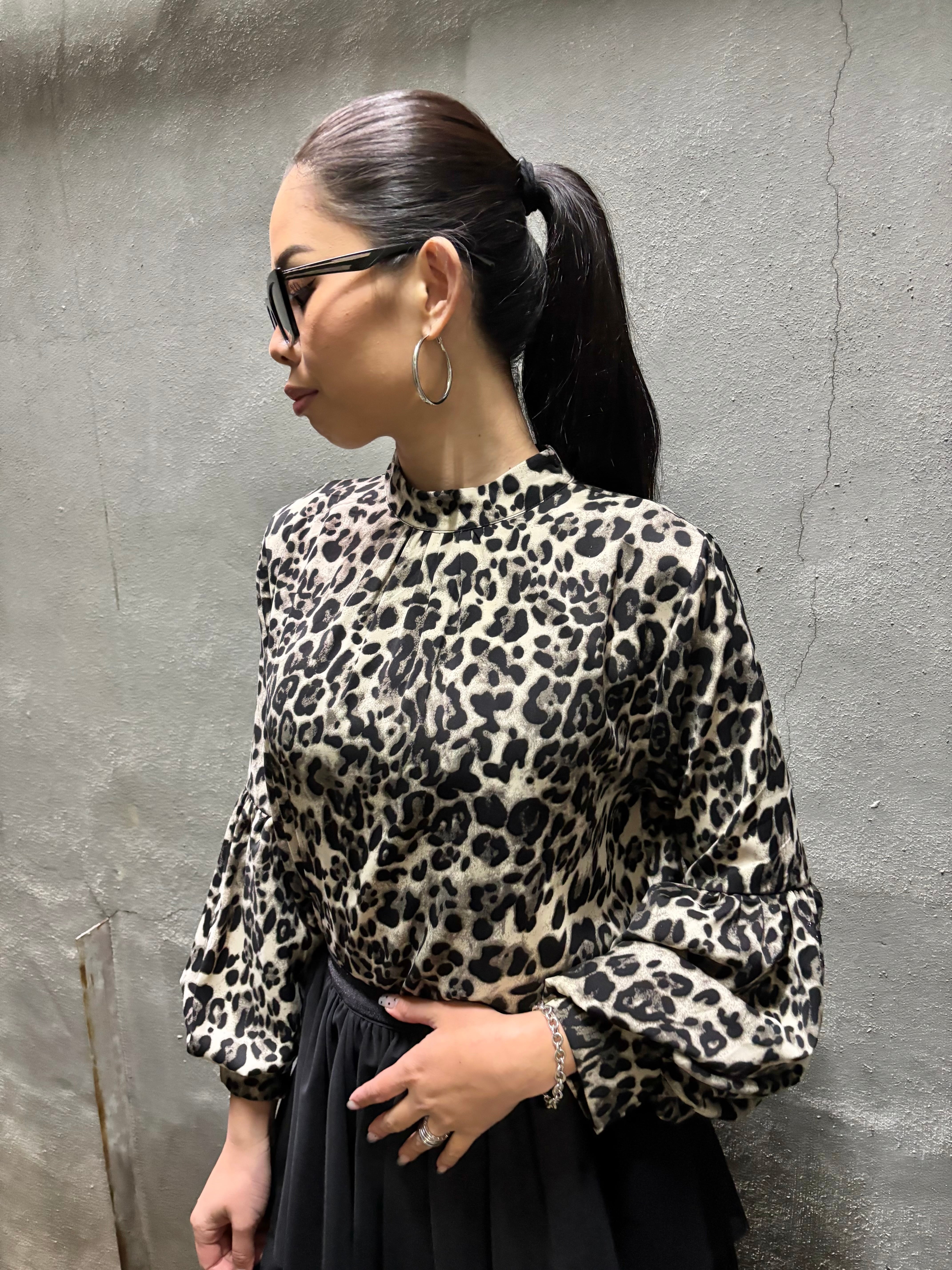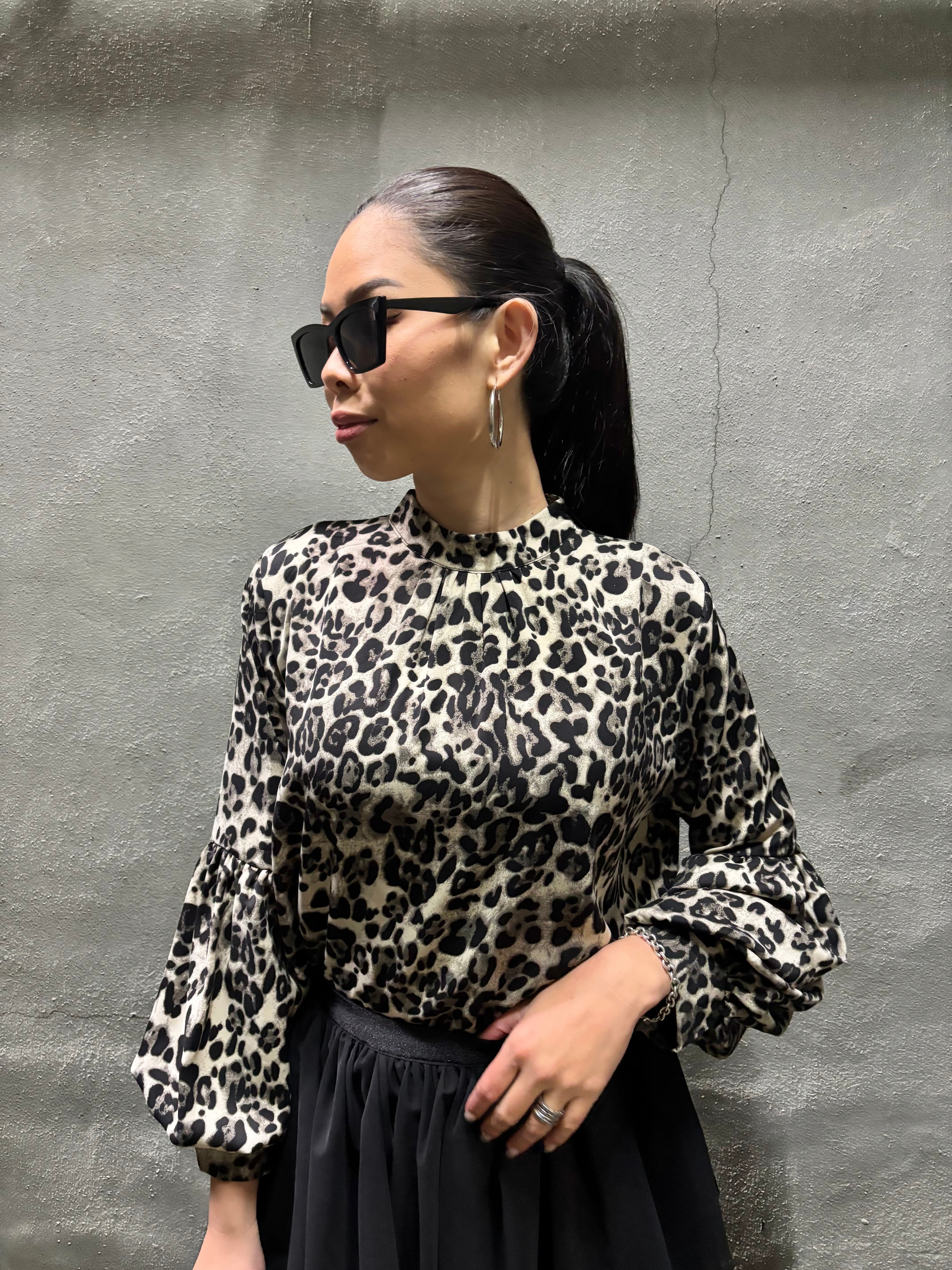 leopard print lantern sleeve design tops トップス レオパード 豹柄 ヒョウ柄 ランタンスリーブ