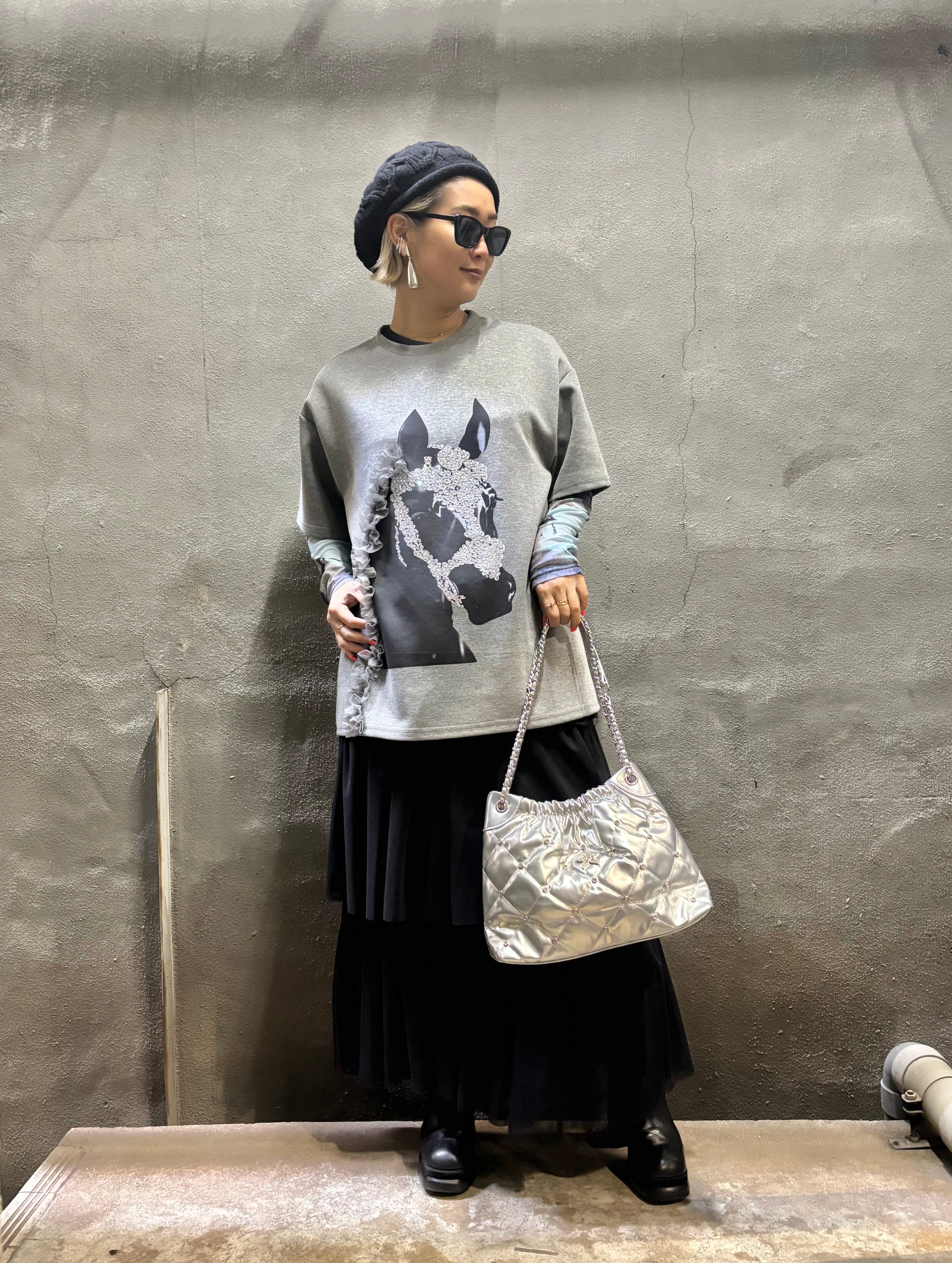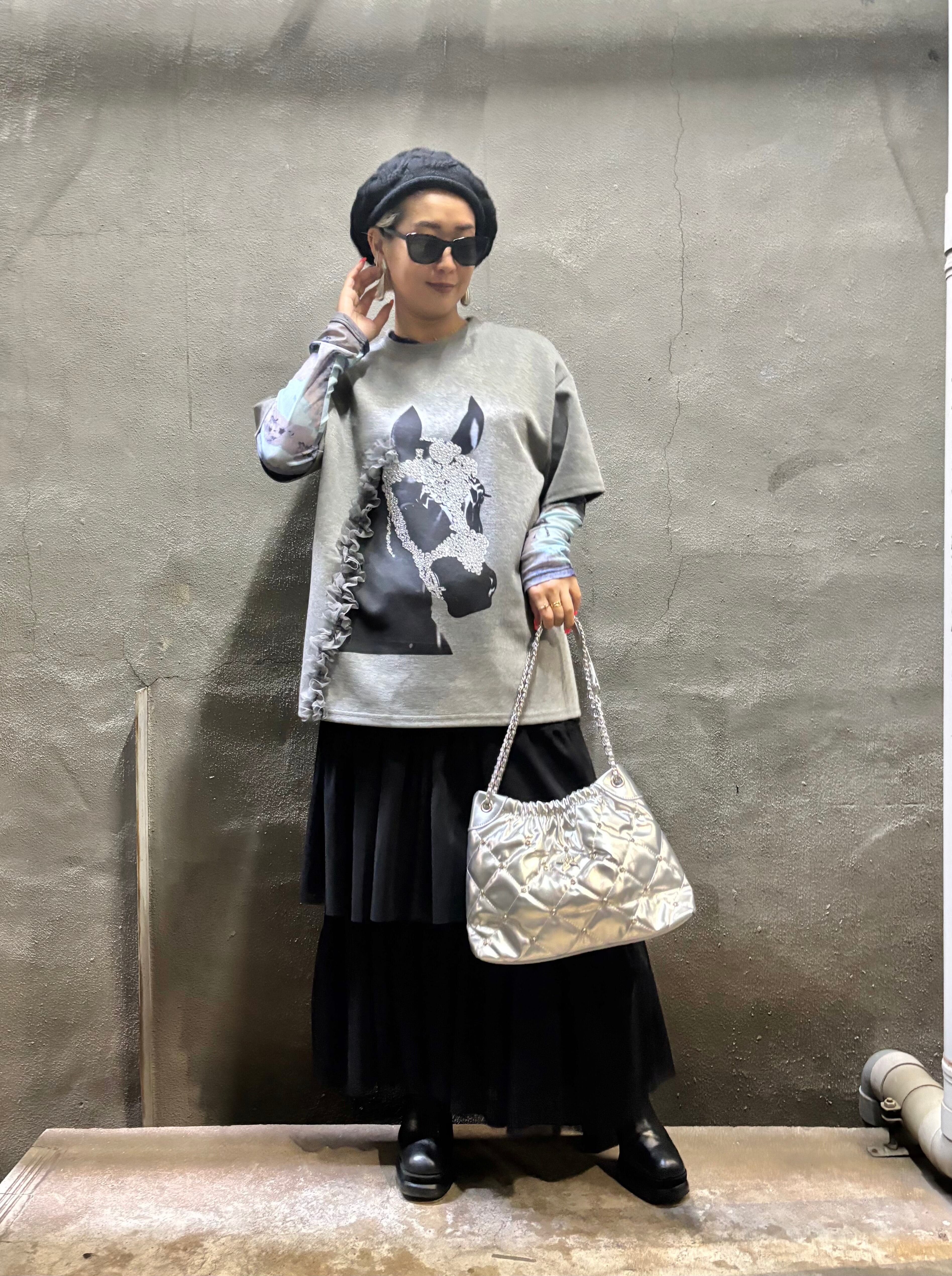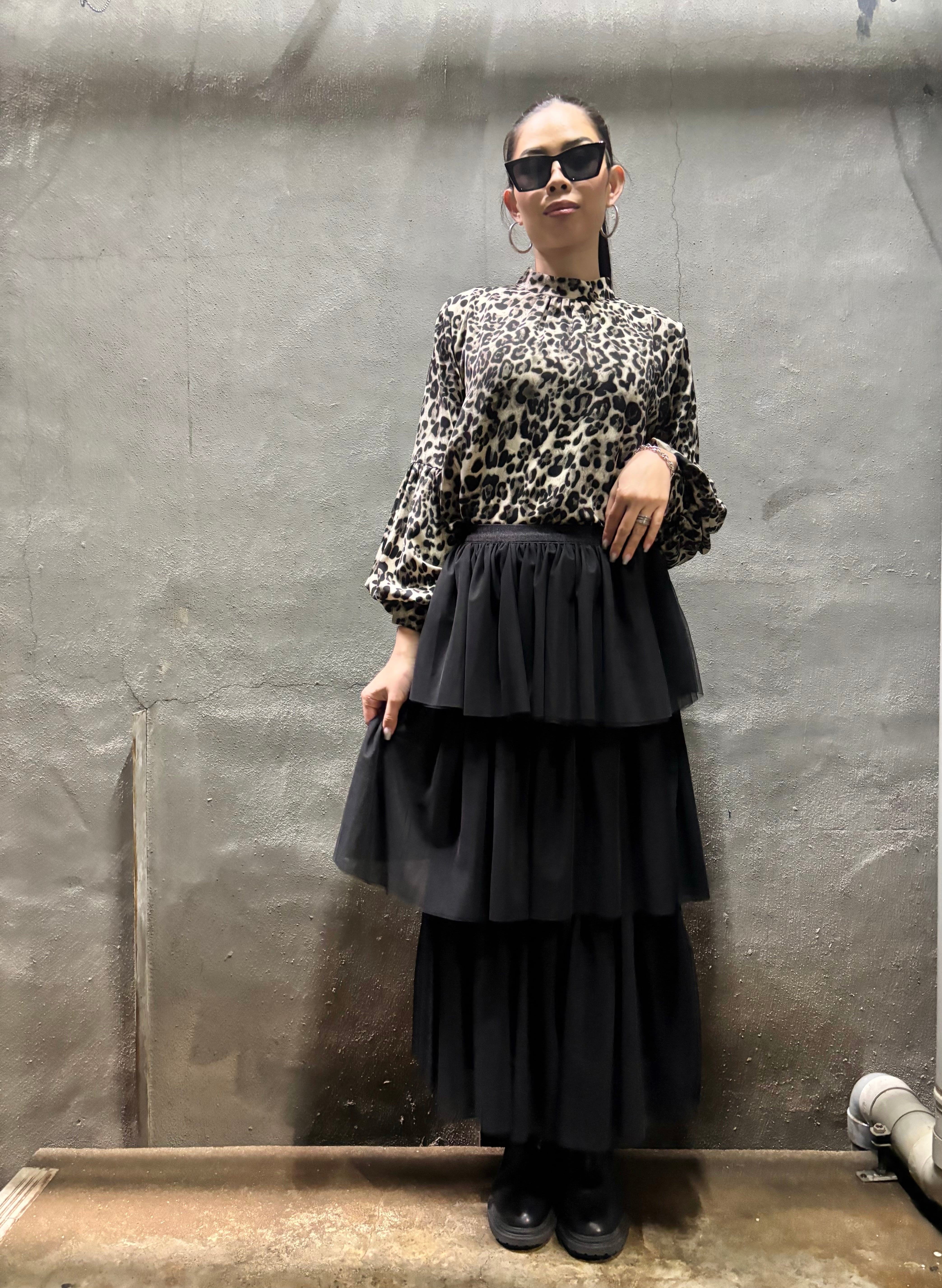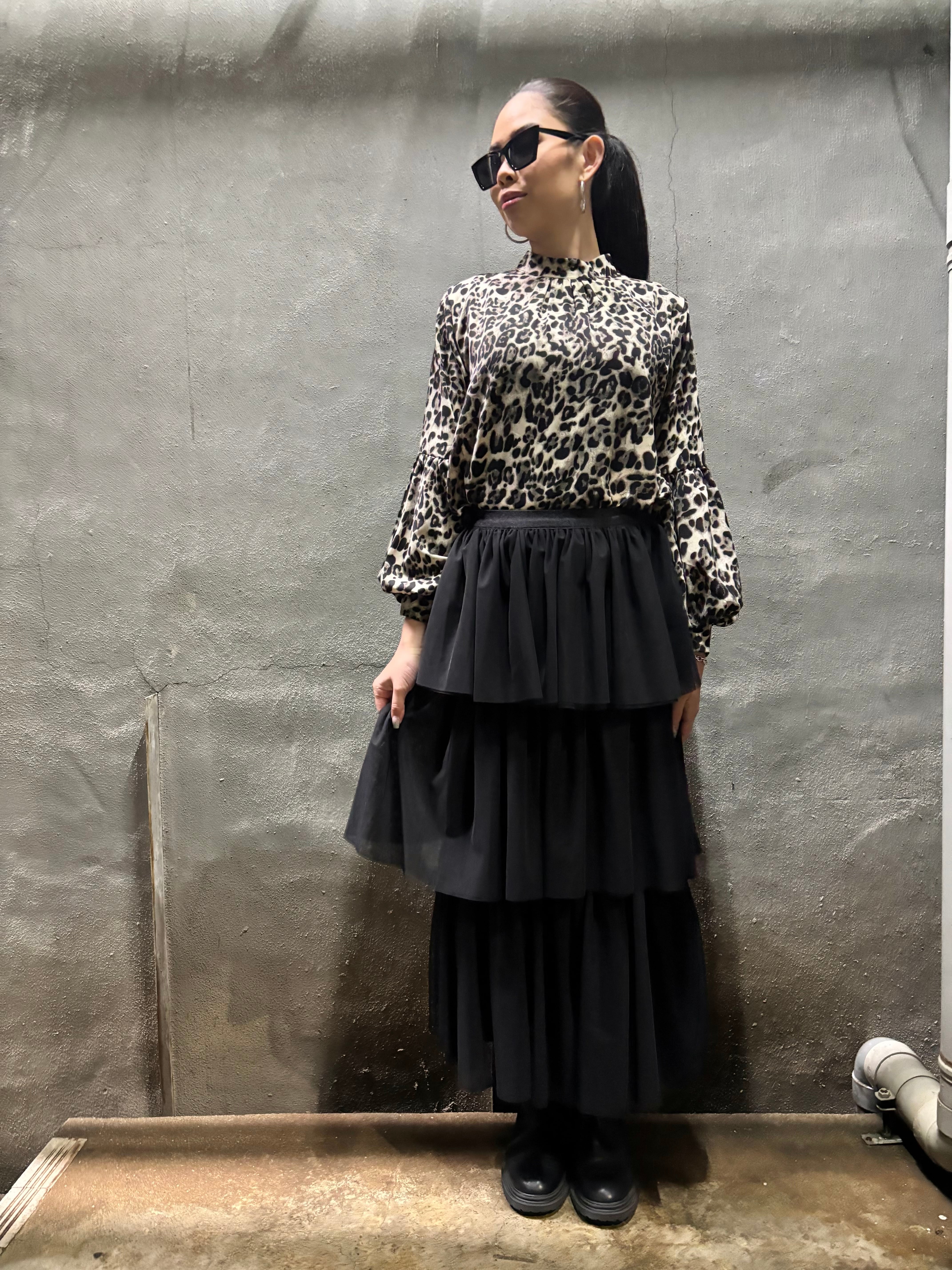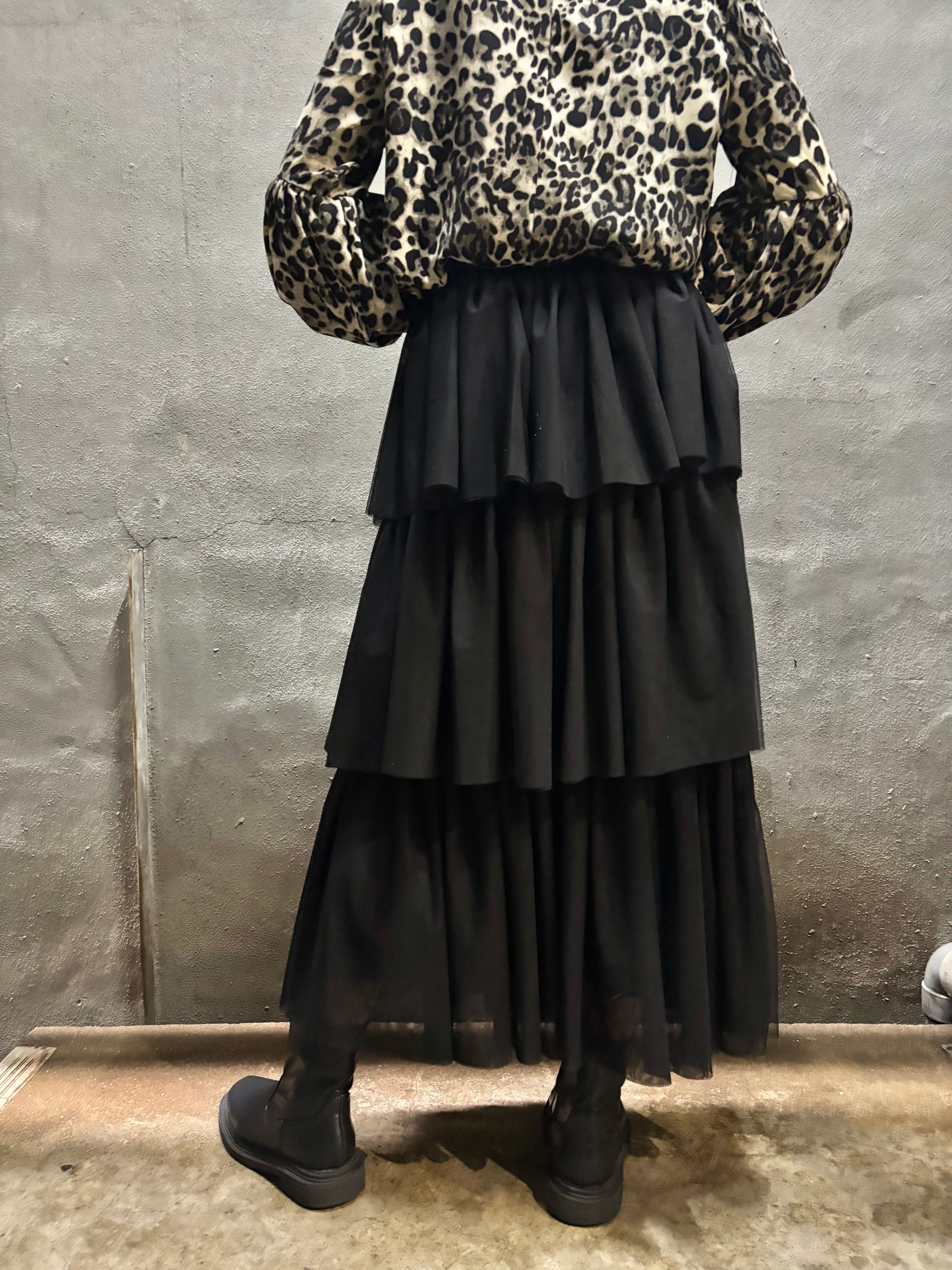 tulle mesh tiered gather frill design long skirt スカート ロングスカート チュール メッシュ フリル ゴムウエスト ブラック 黒